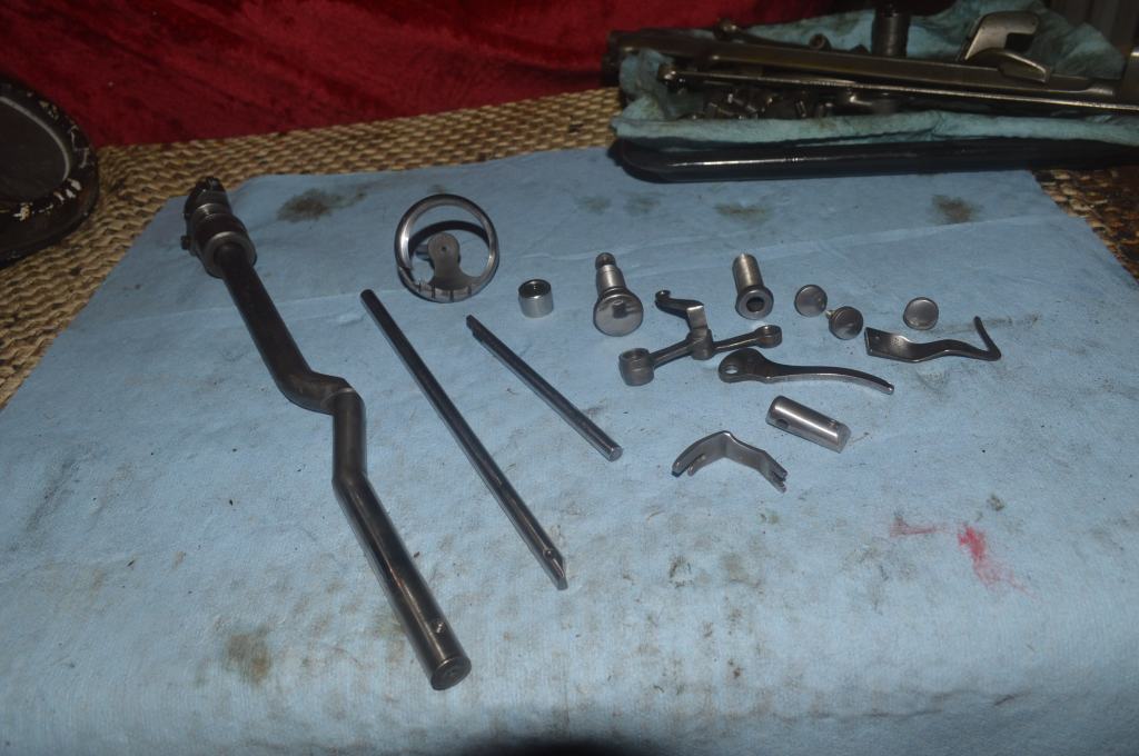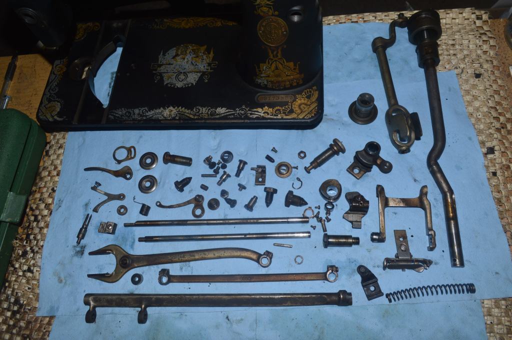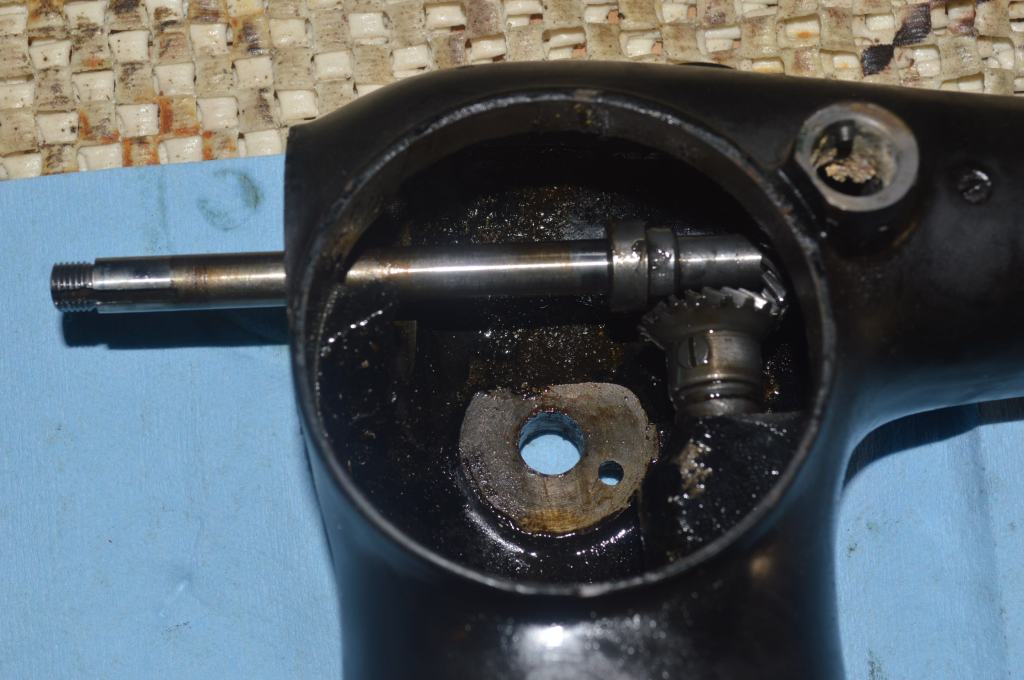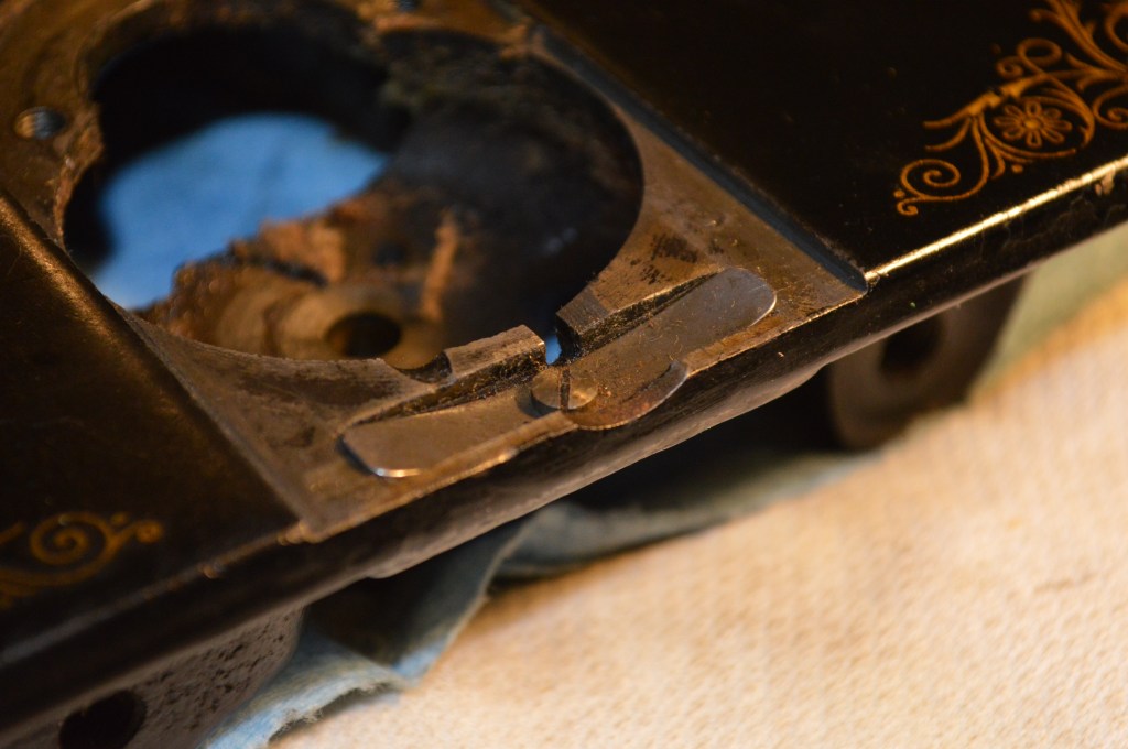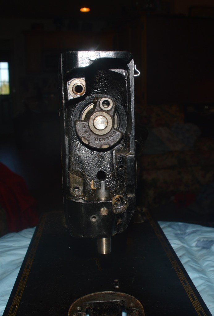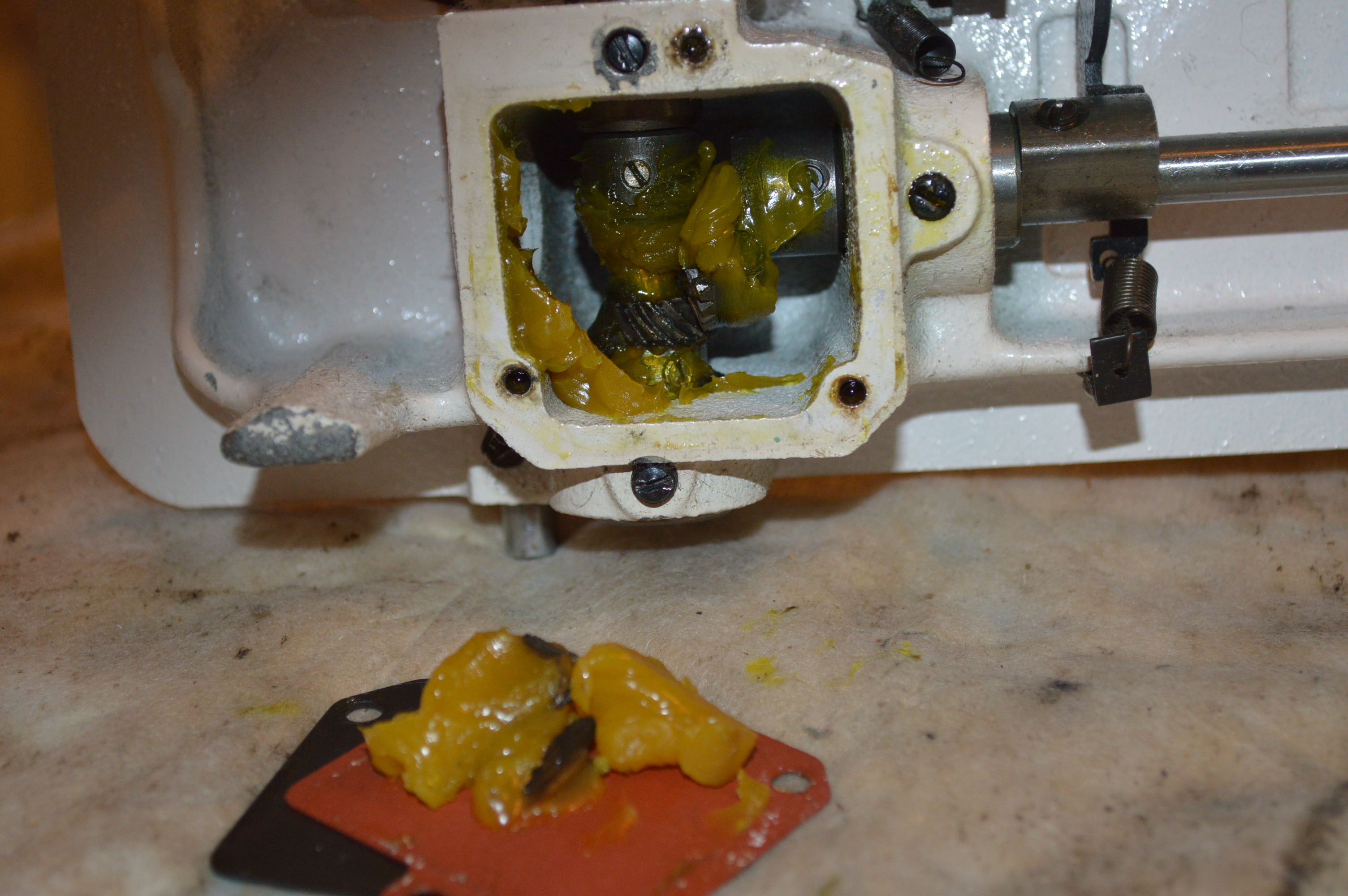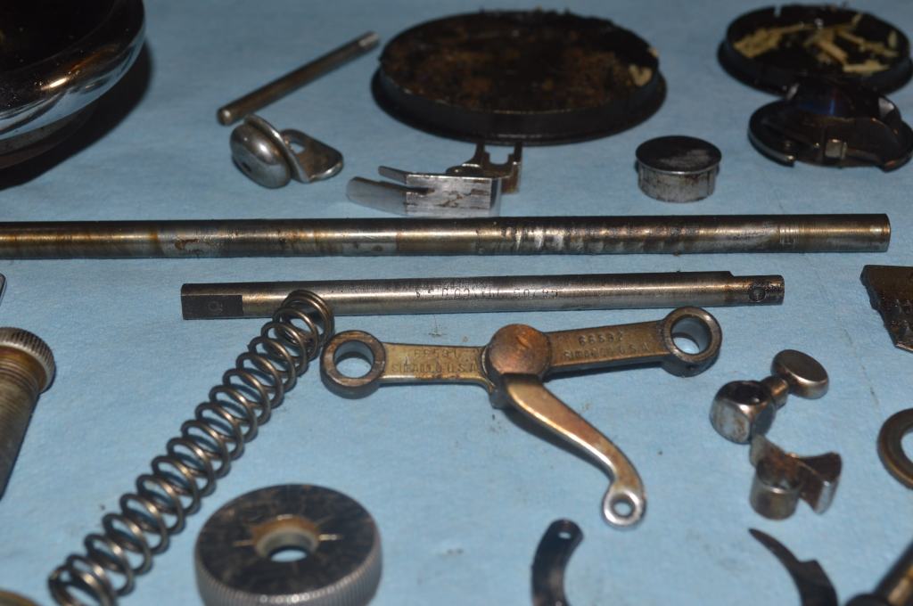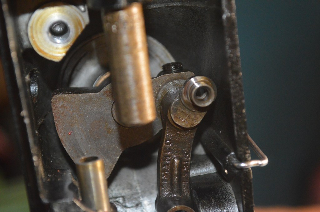 The plan included the disassembly of the top shaft and stitch length fork… The following picture convinced me not to attept this.