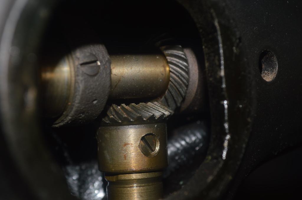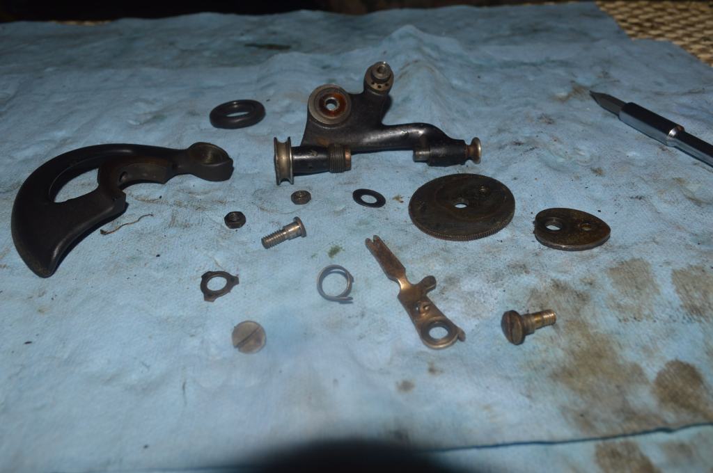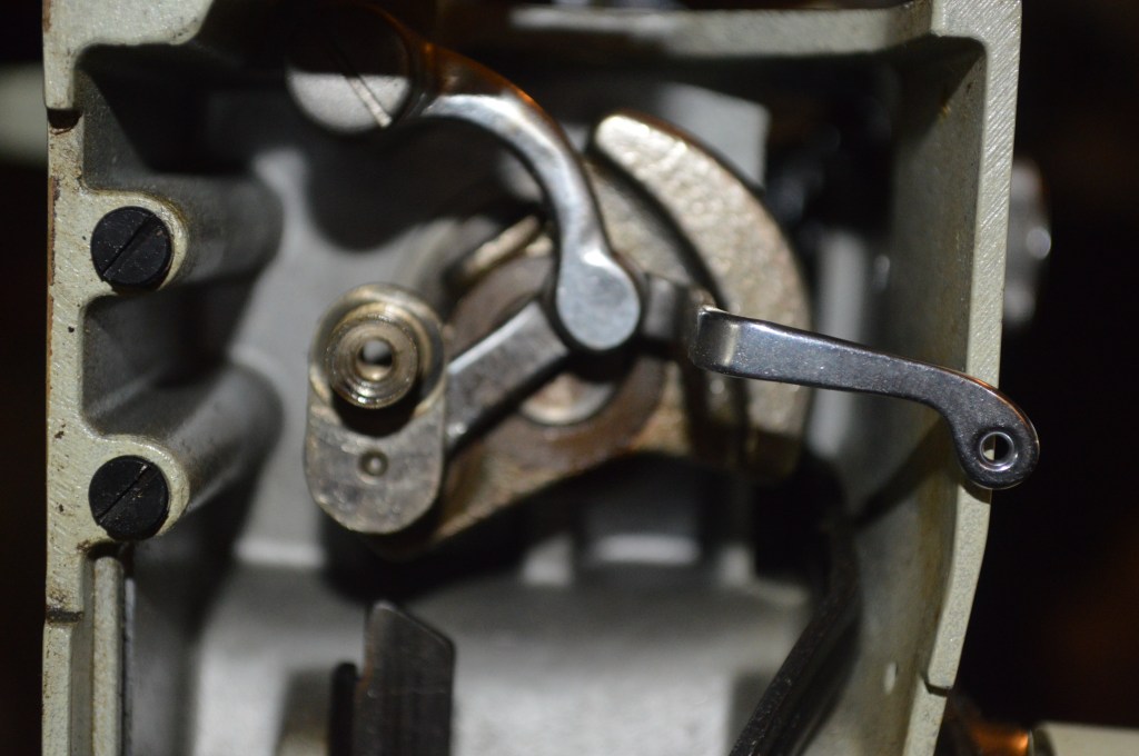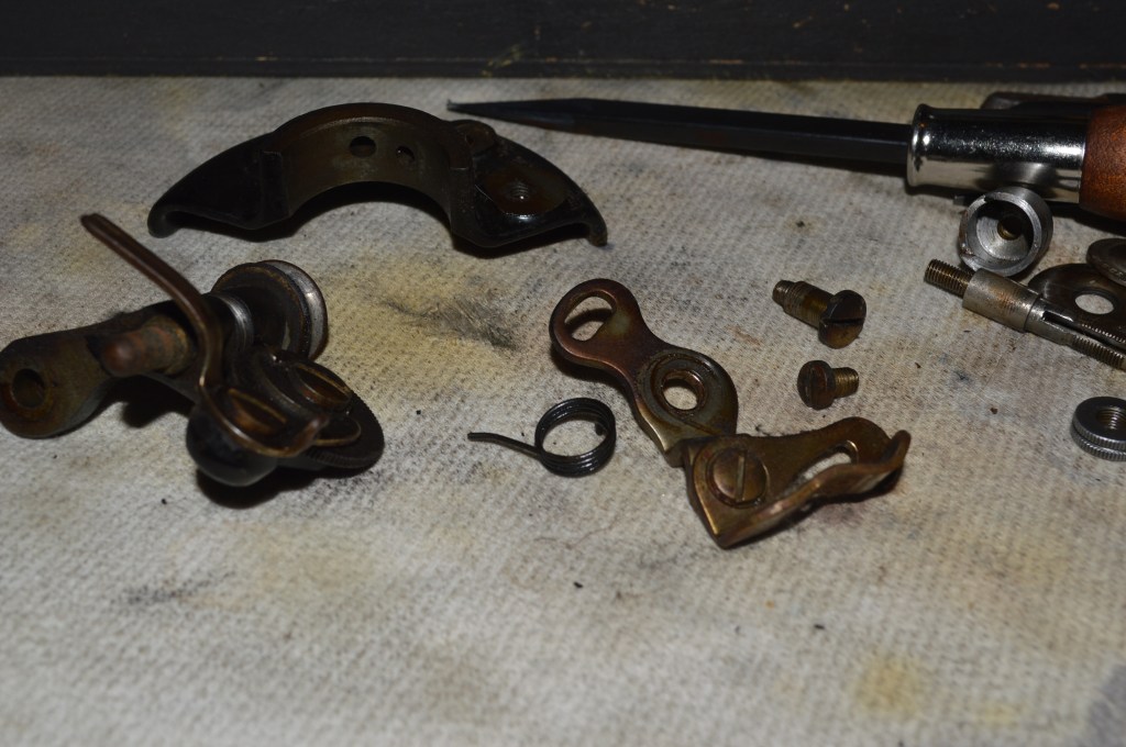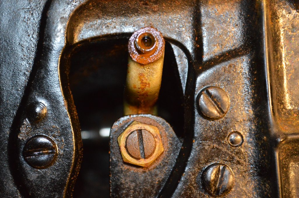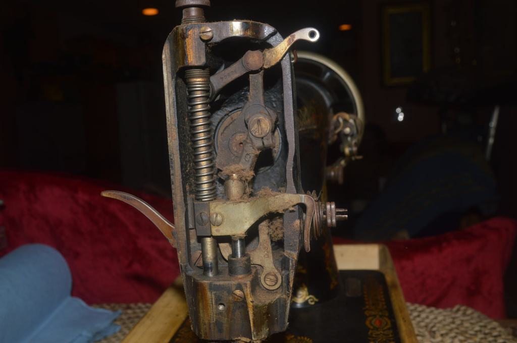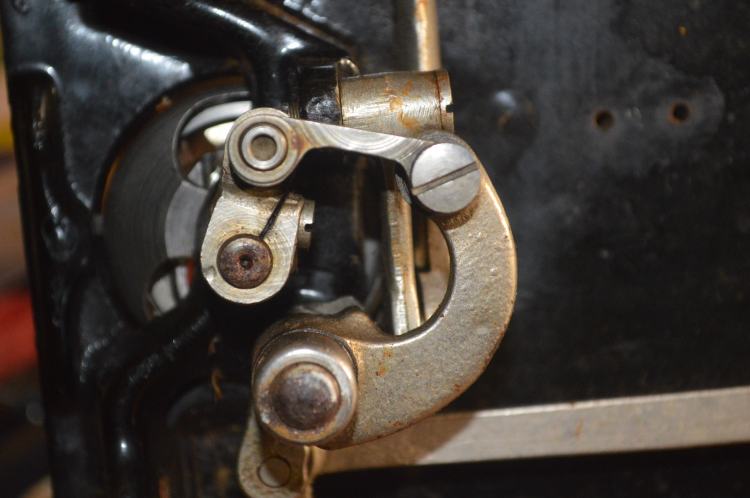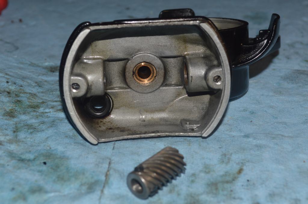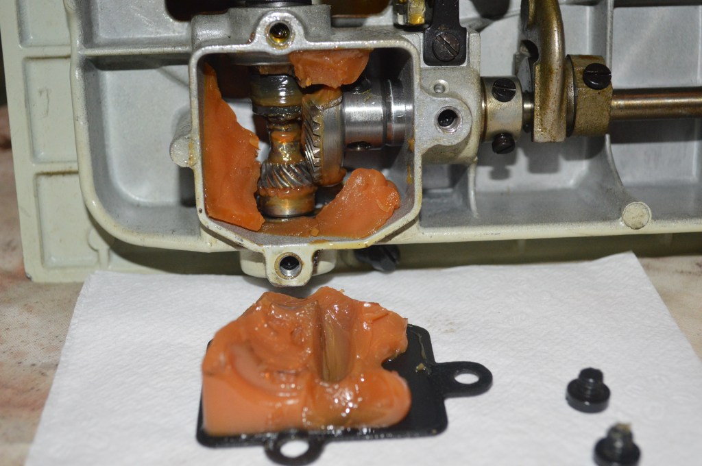 The plan included the disassembly of the top shaft and stitch length fork… The following picture convinced me not to attept this.