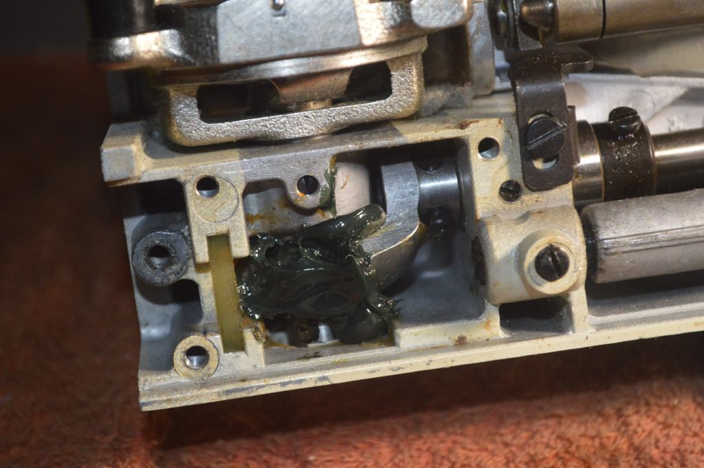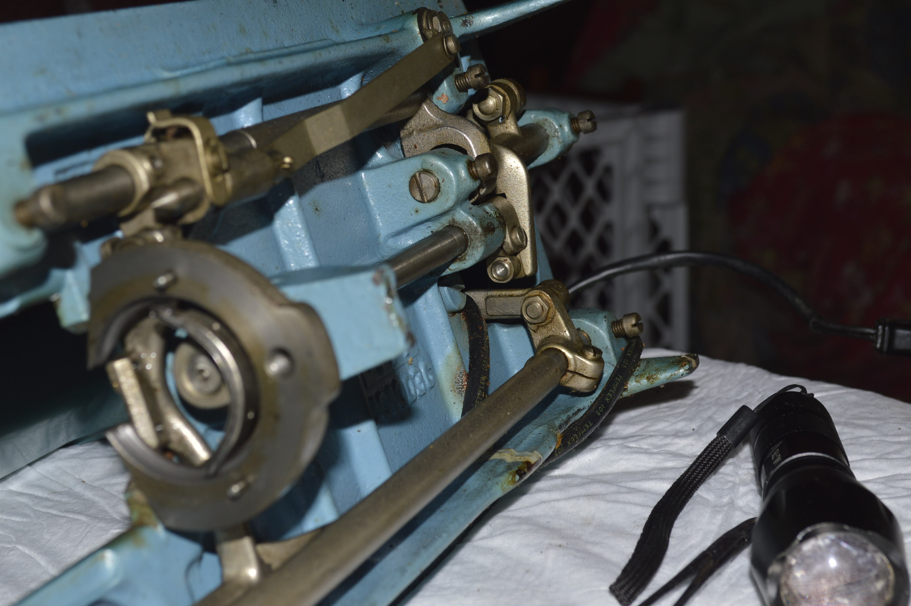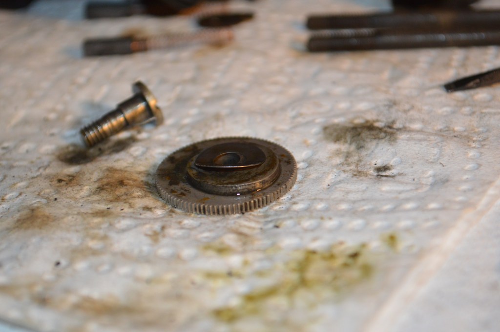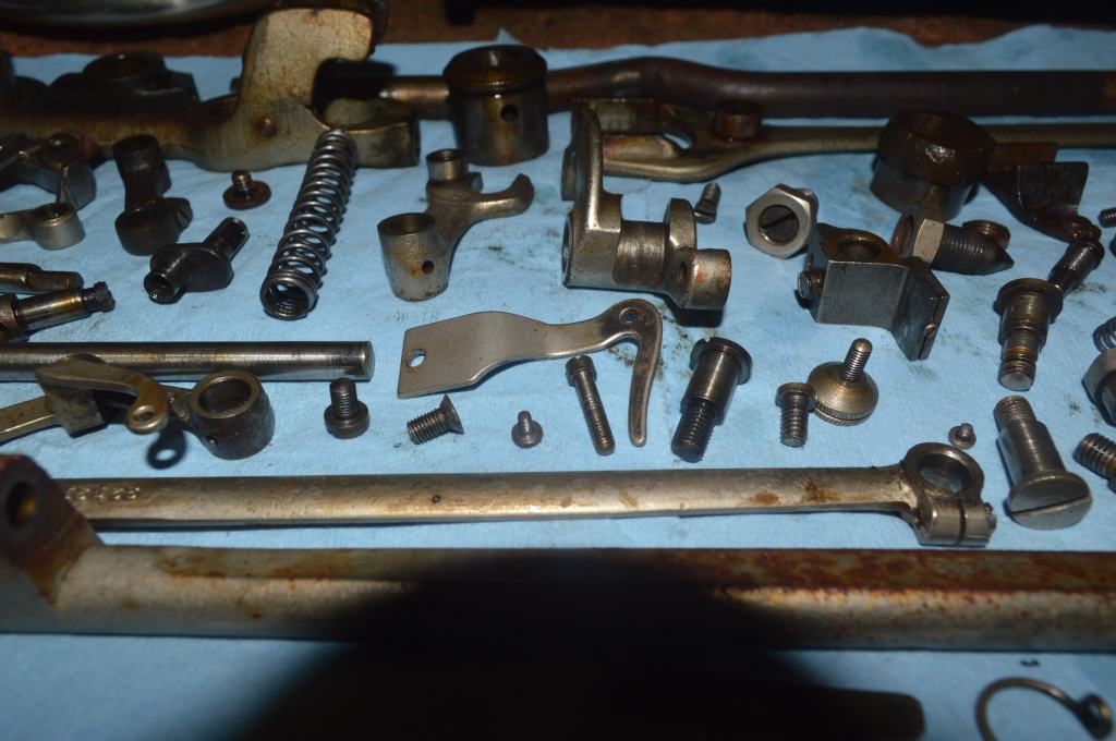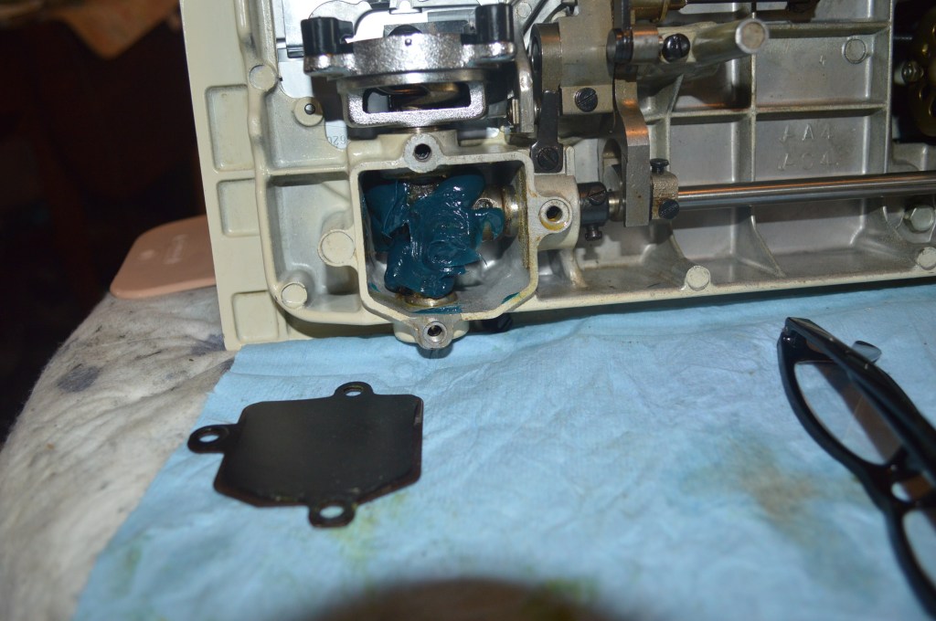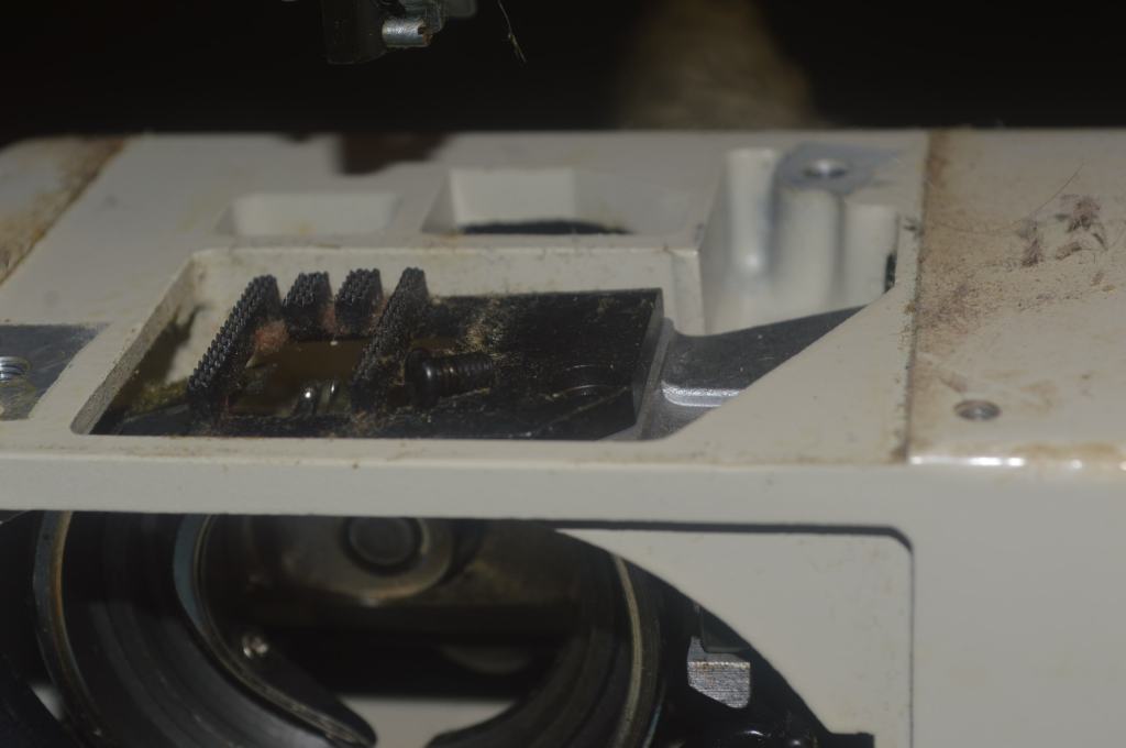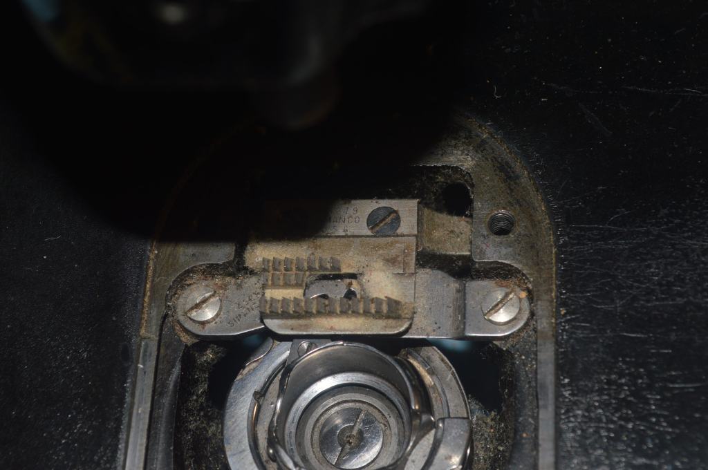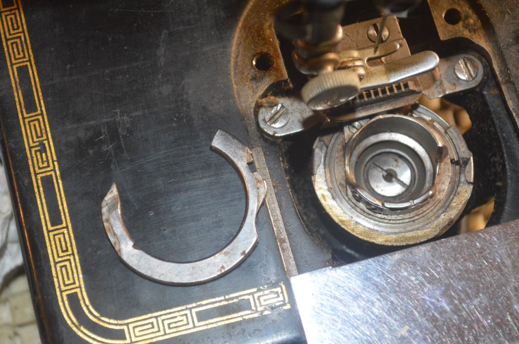 The plan included the disassembly of the top shaft and stitch length fork… The following picture convinced me not to attept this.