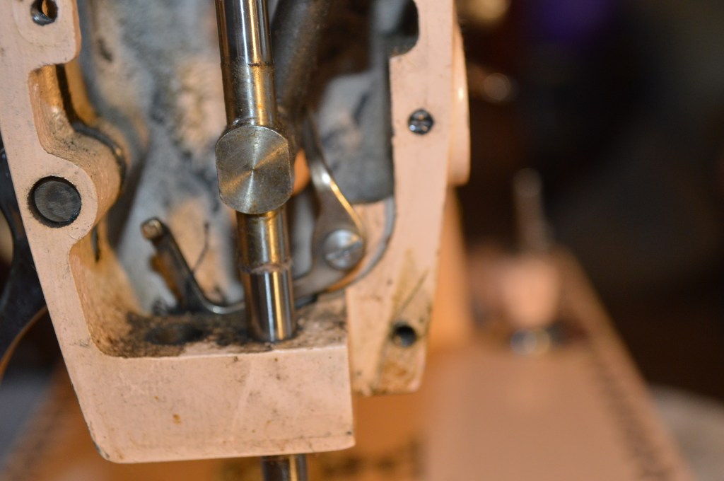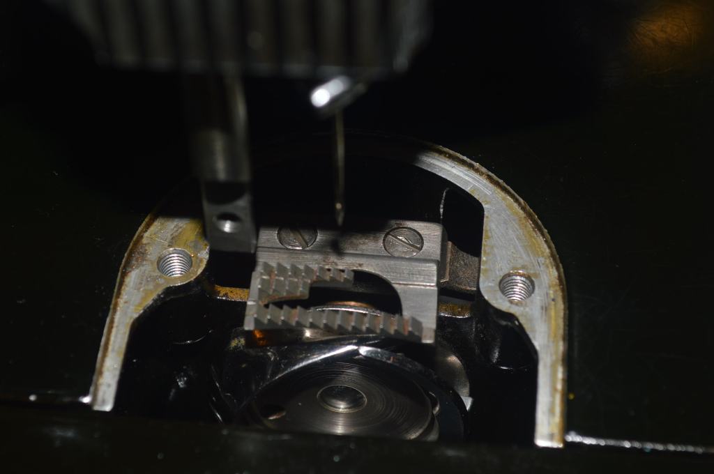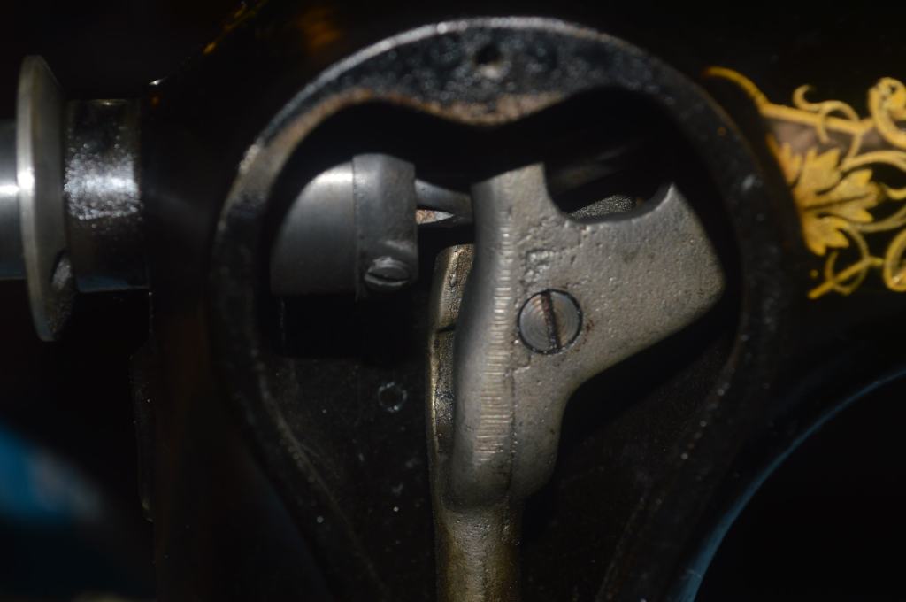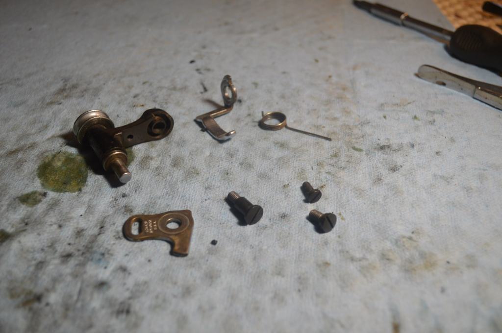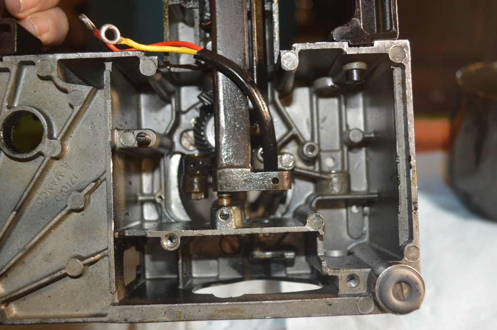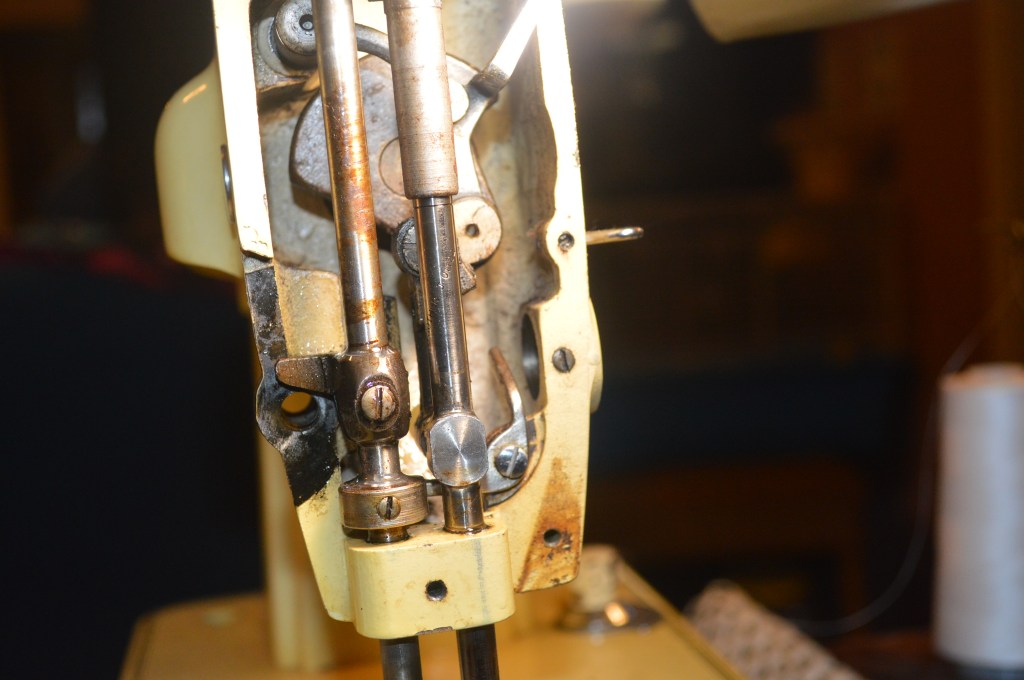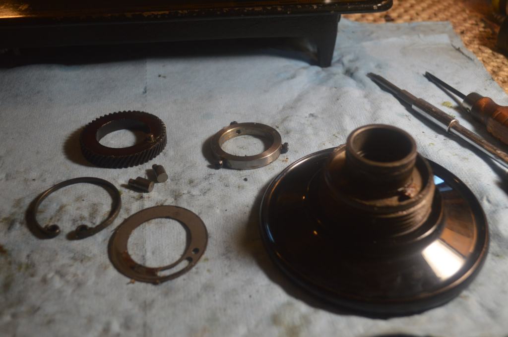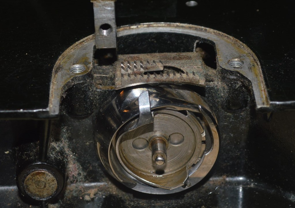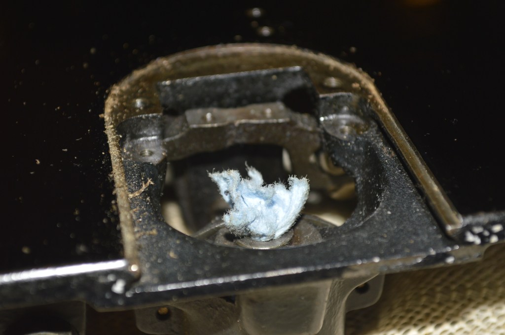 The plan included the disassembly of the top shaft and stitch length fork… The following picture convinced me not to attept this.