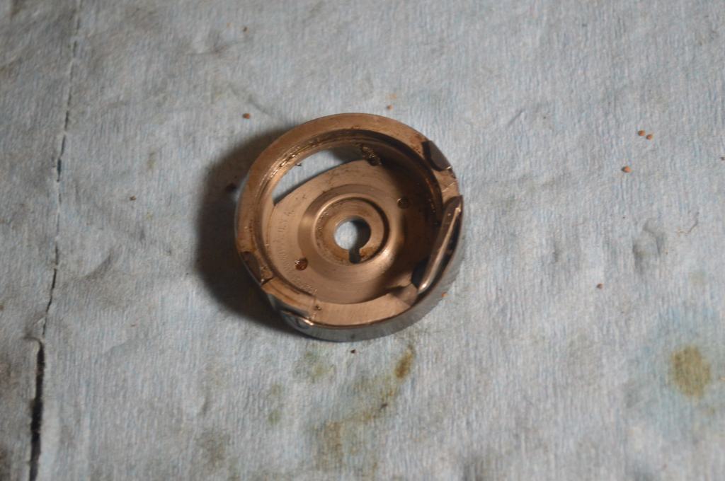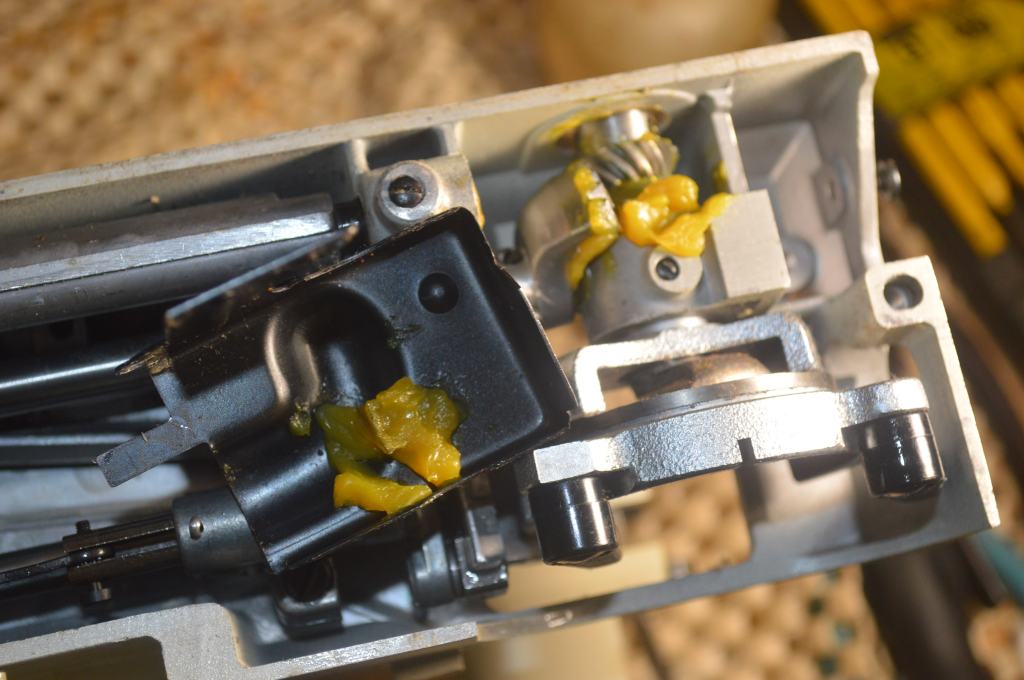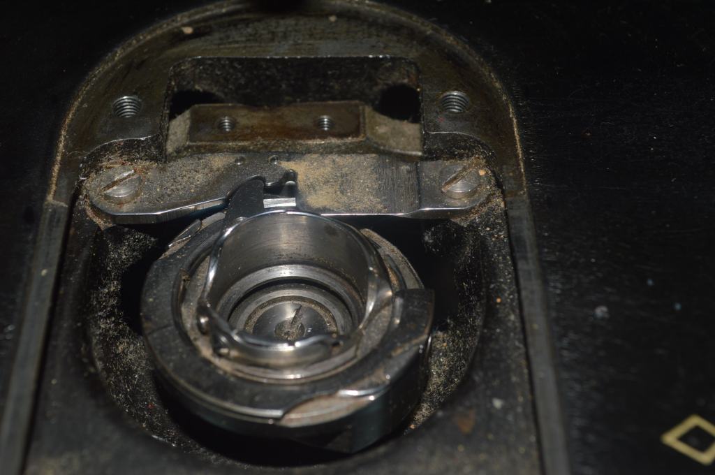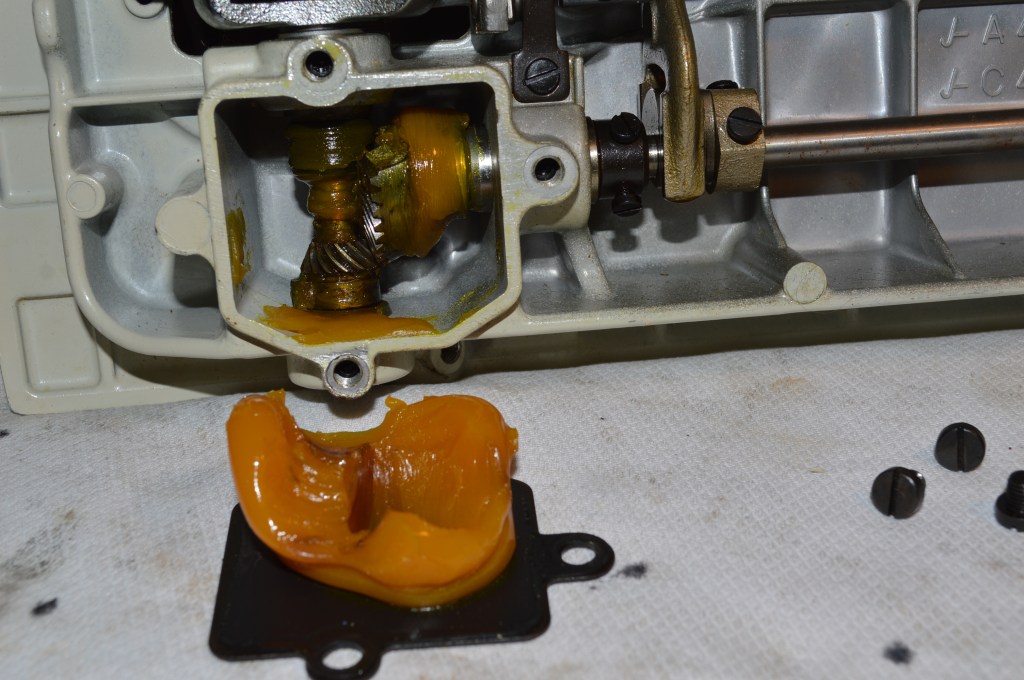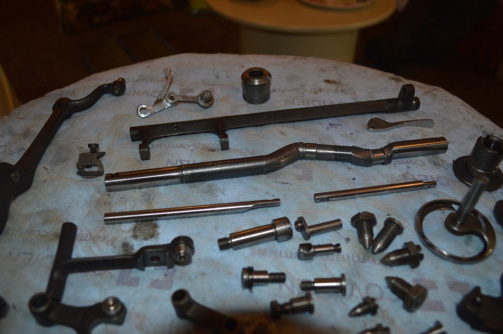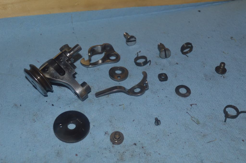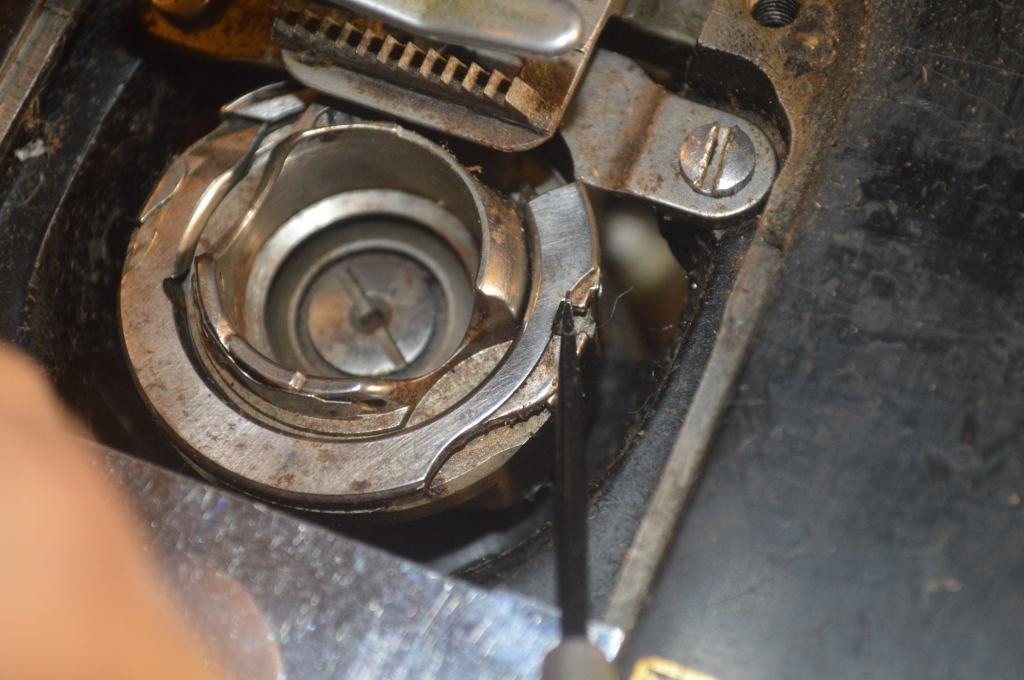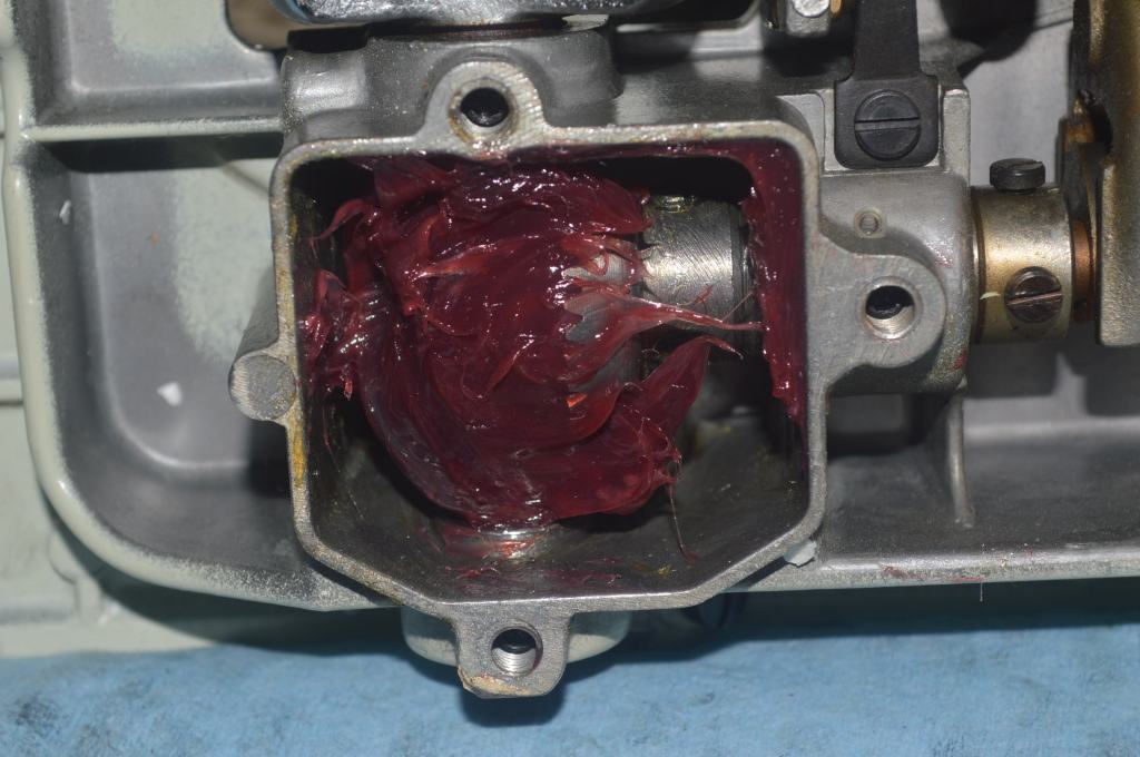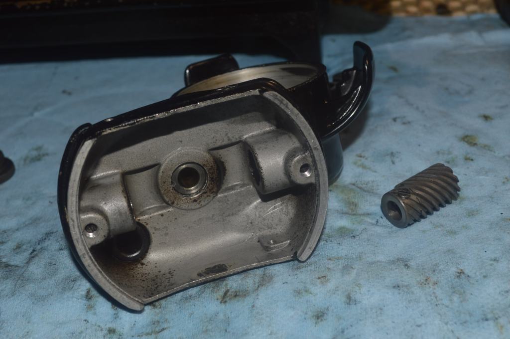 The plan included the disassembly of the top shaft and stitch length fork… The following picture convinced me not to attept this.