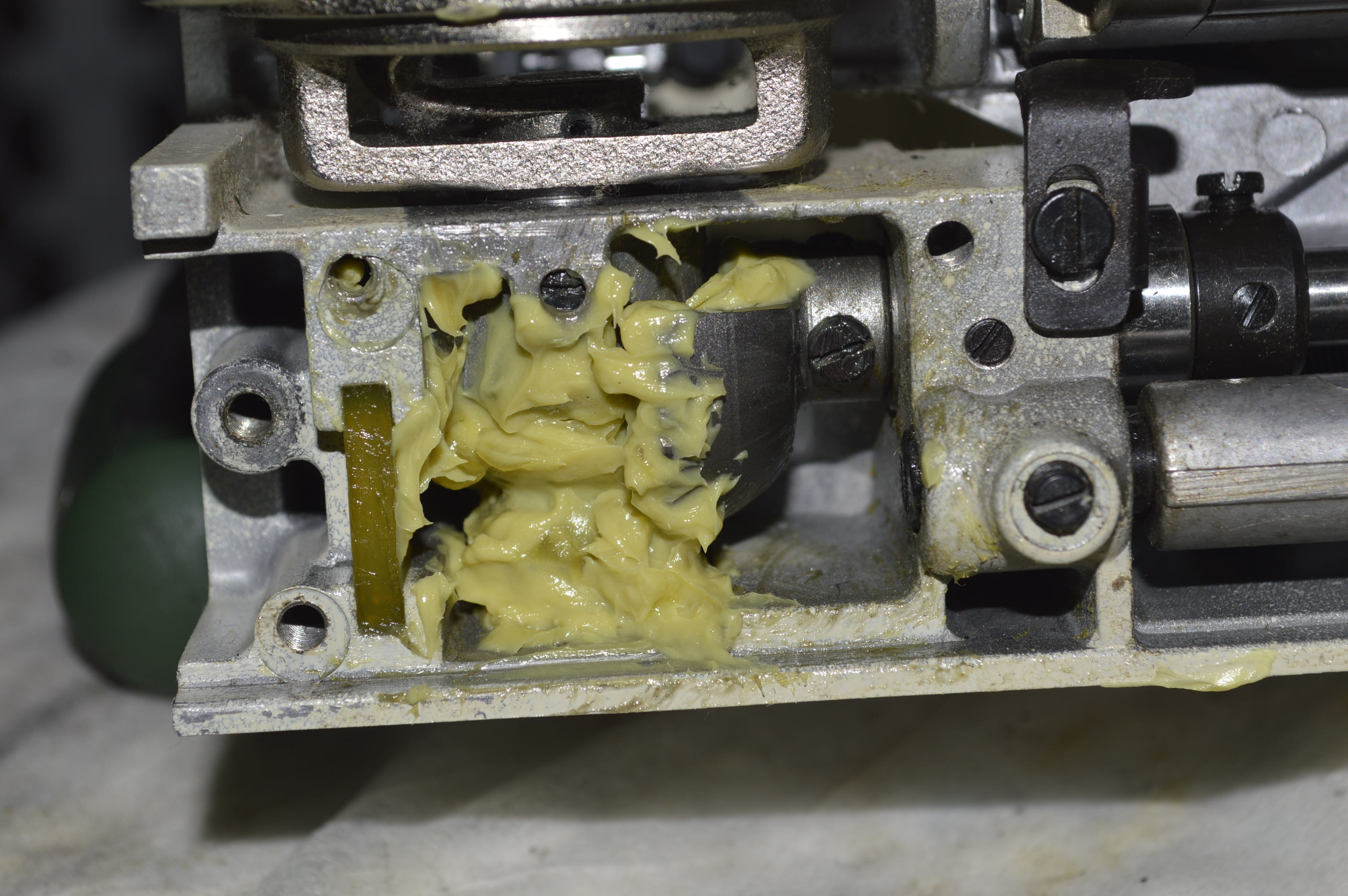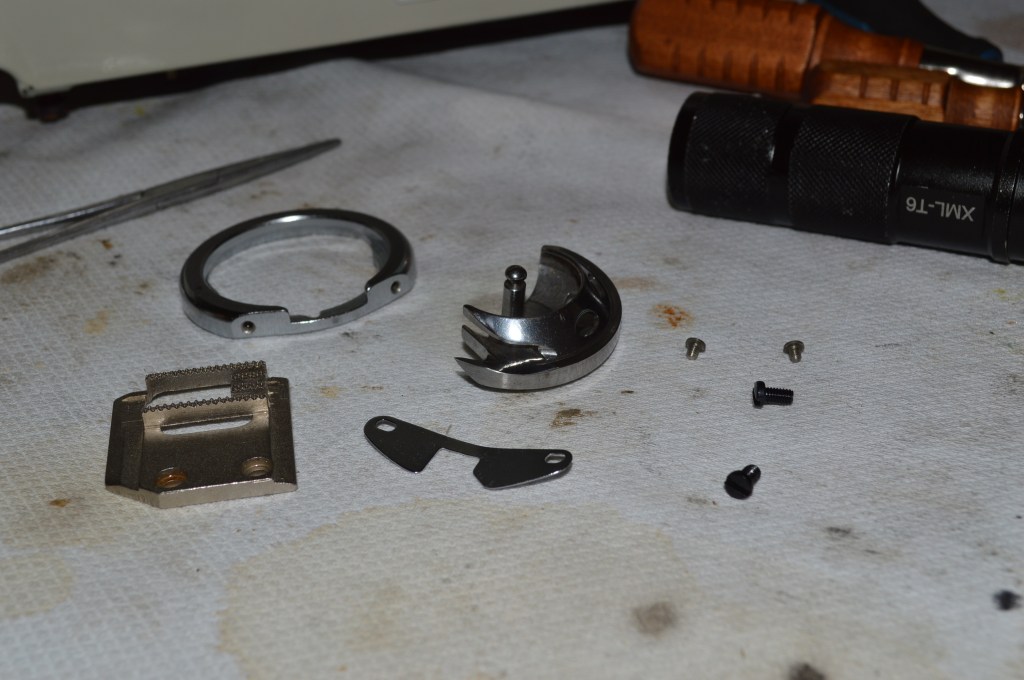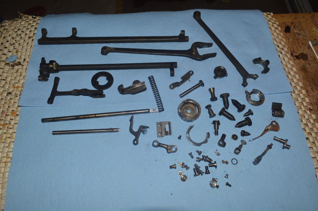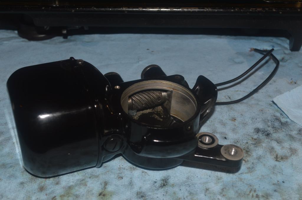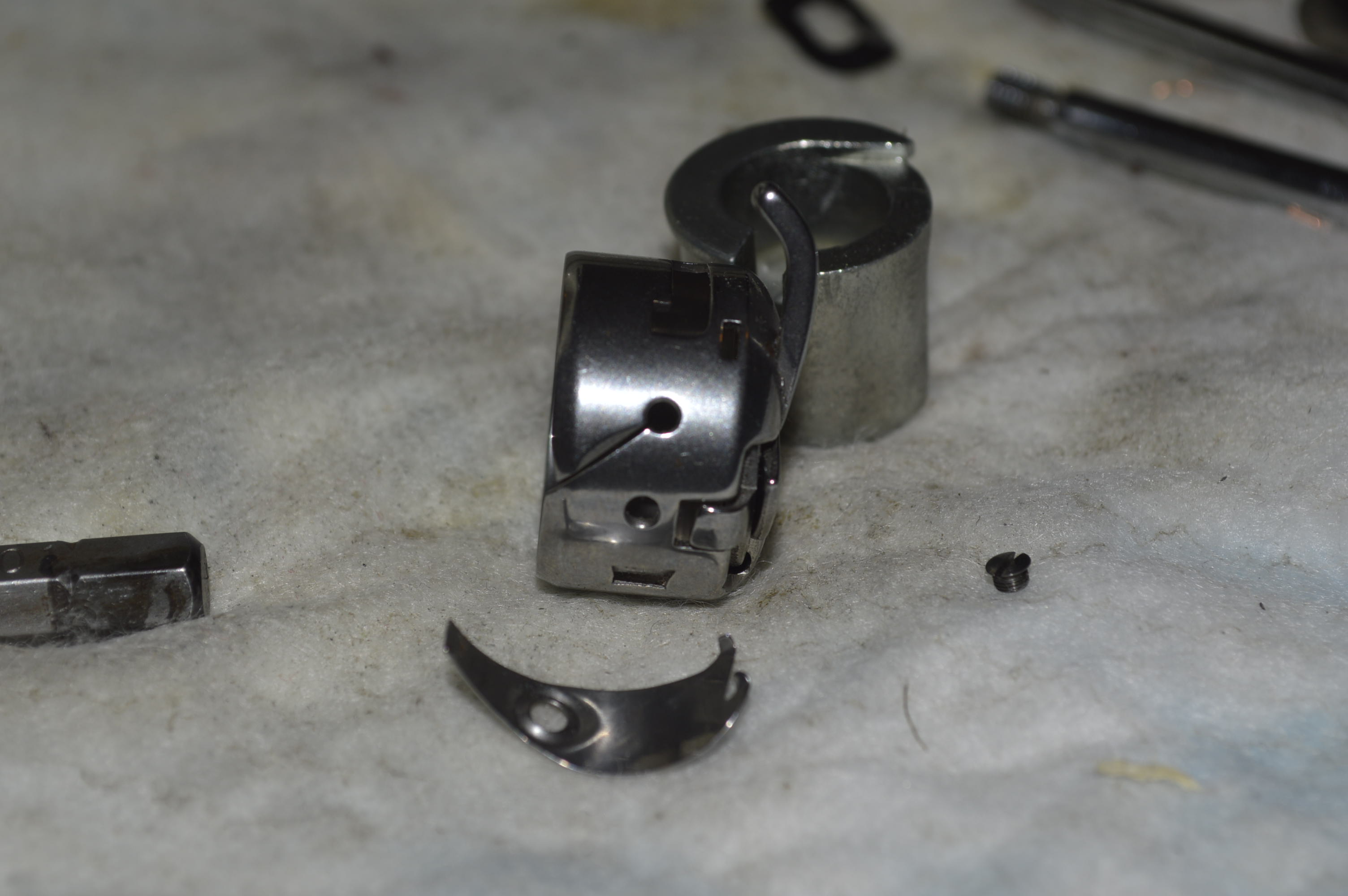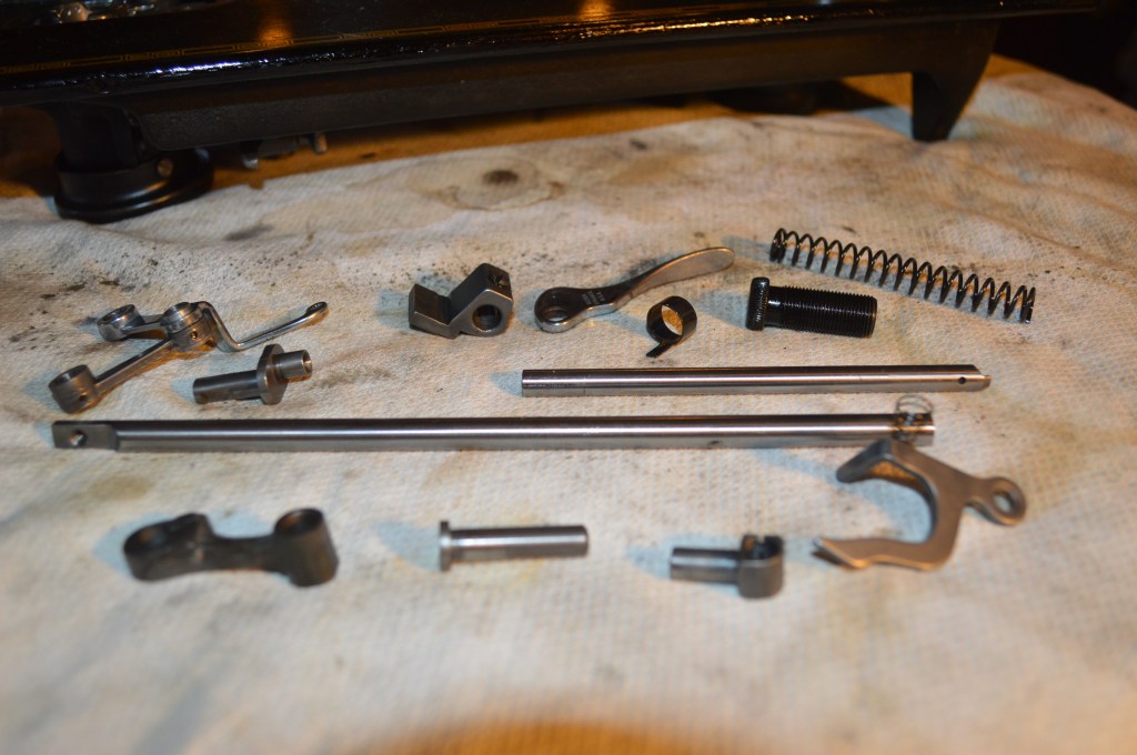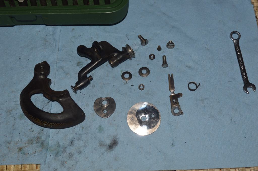 The plan included the disassembly of the top shaft and stitch length fork… The following picture convinced me not to attept this.