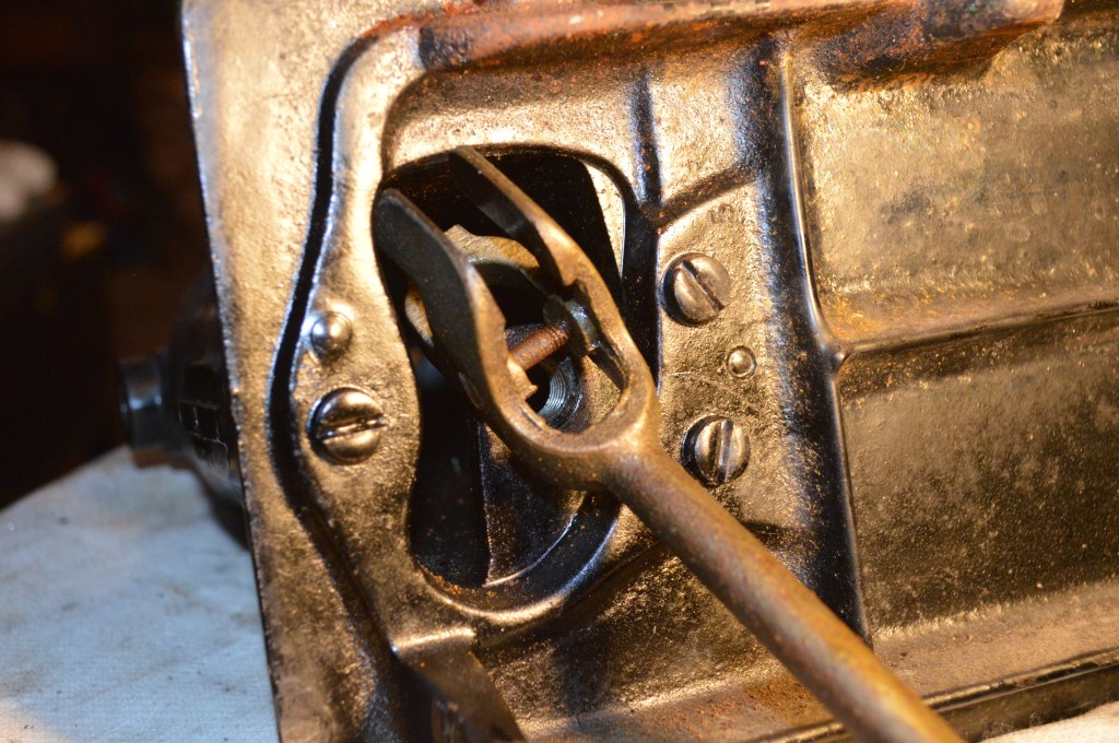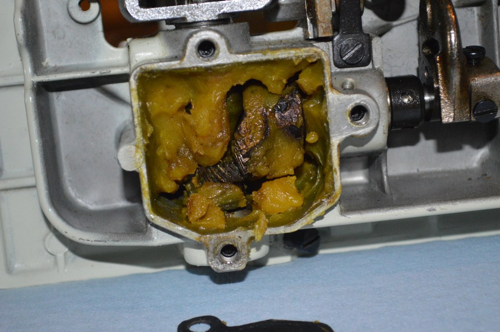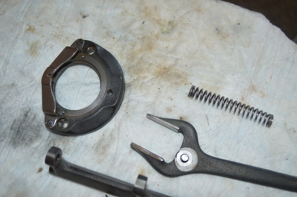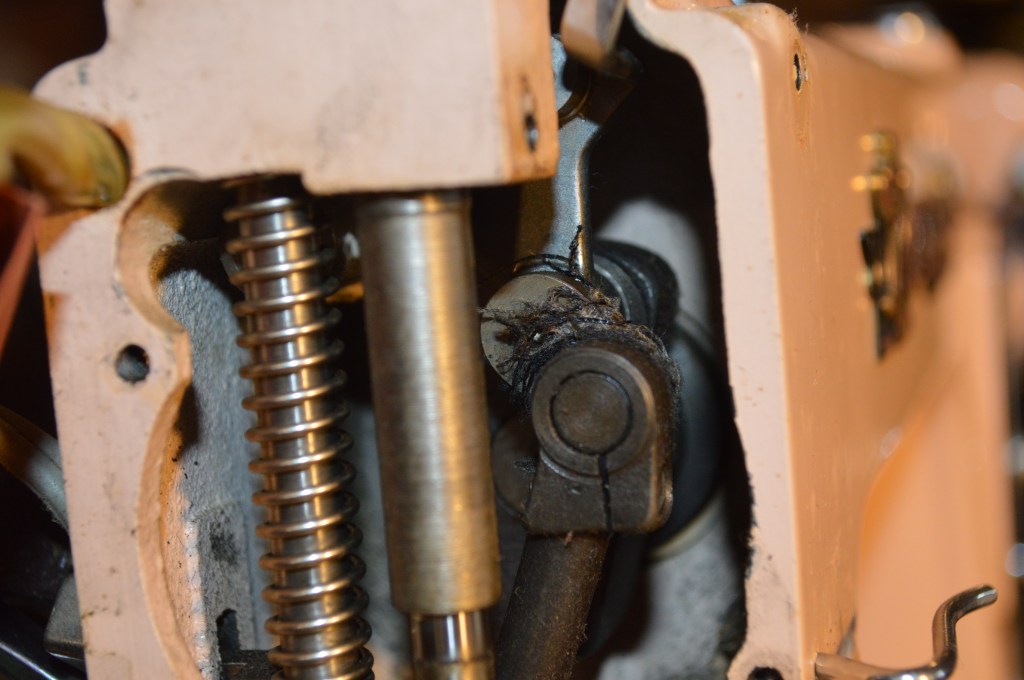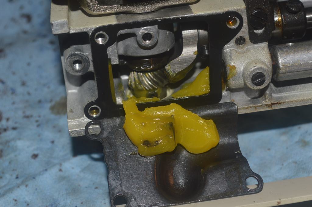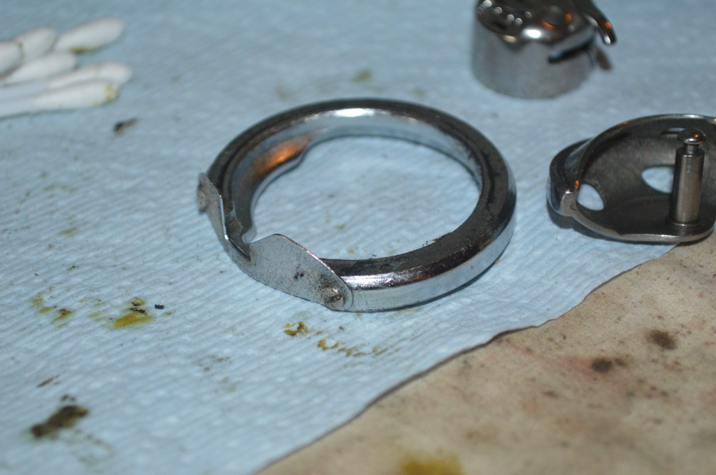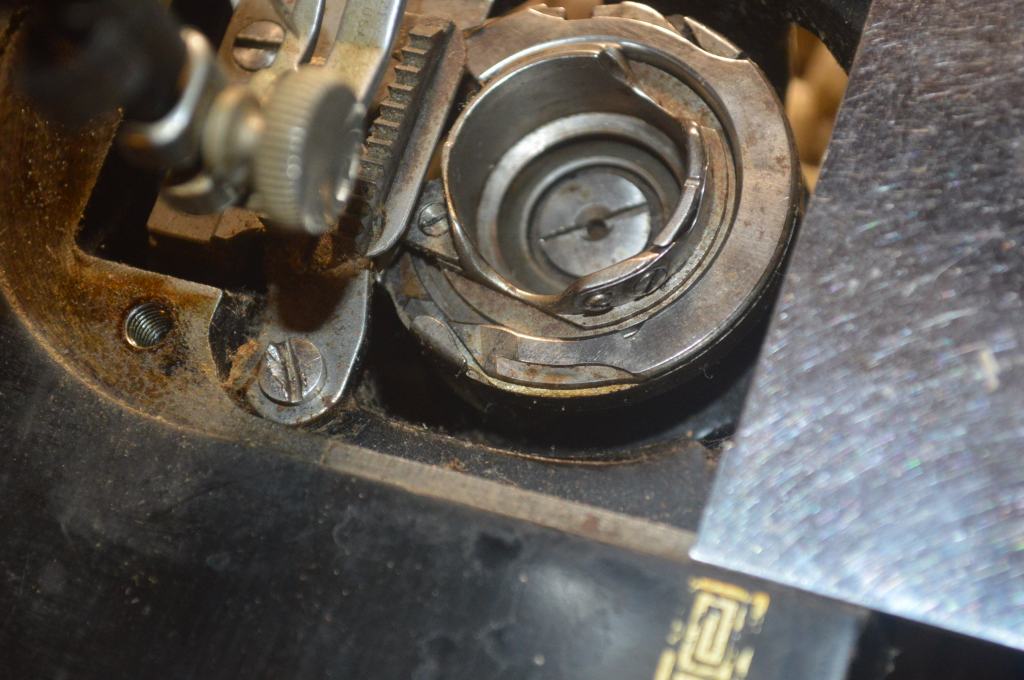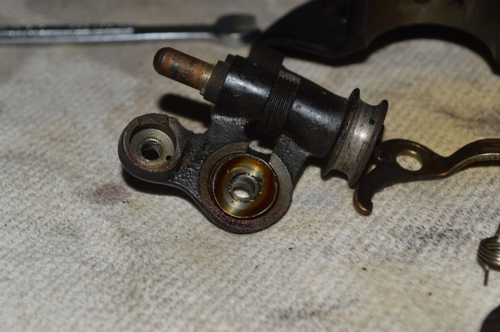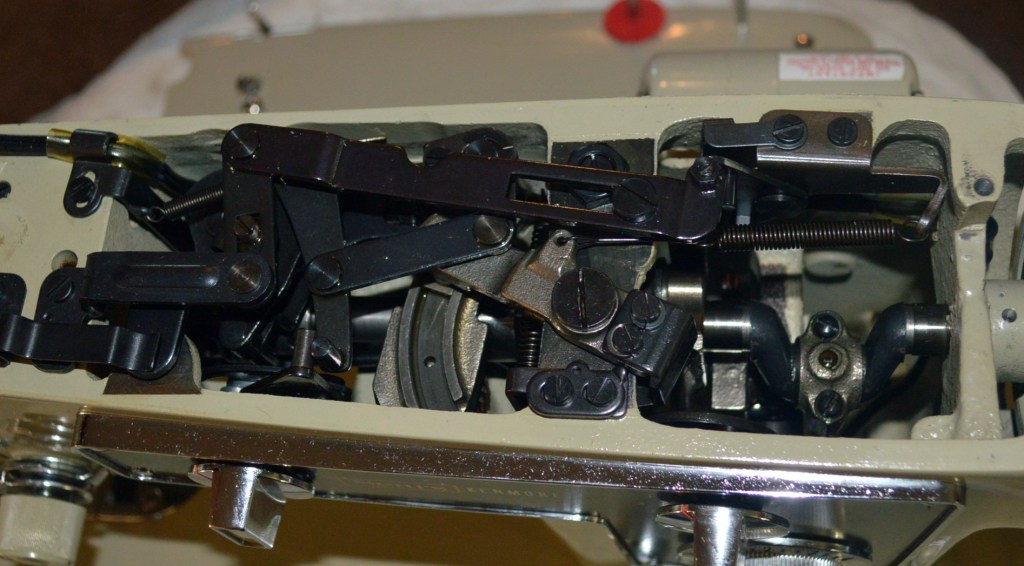 The plan included the disassembly of the top shaft and stitch length fork… The following picture convinced me not to attept this.
