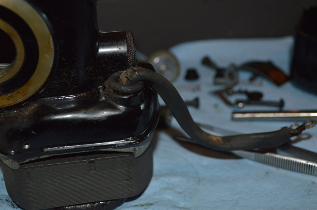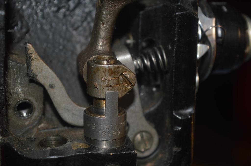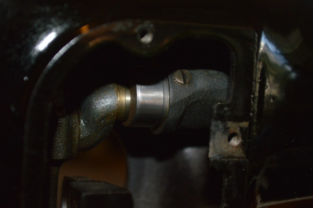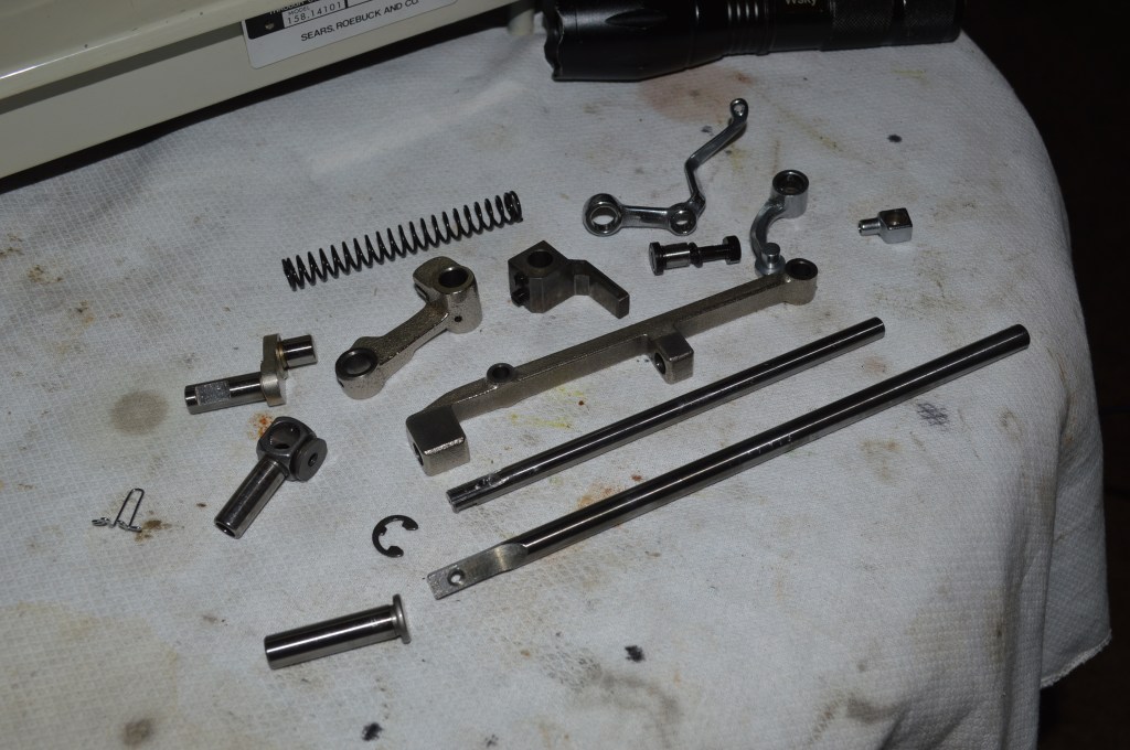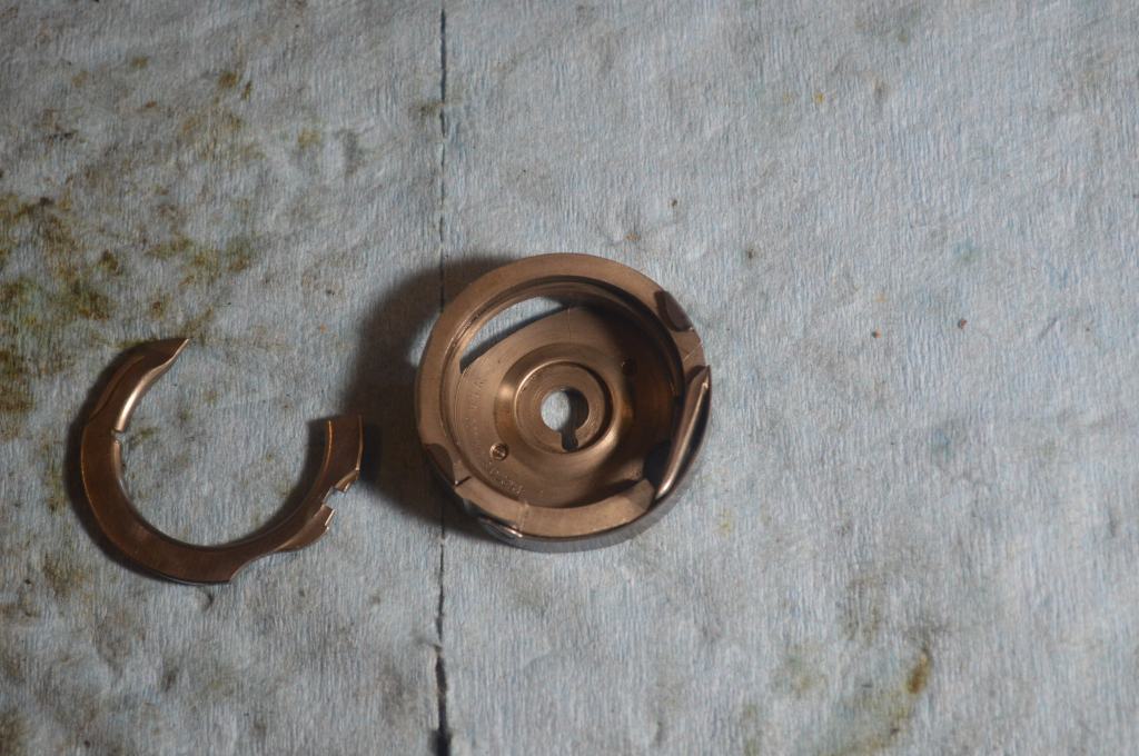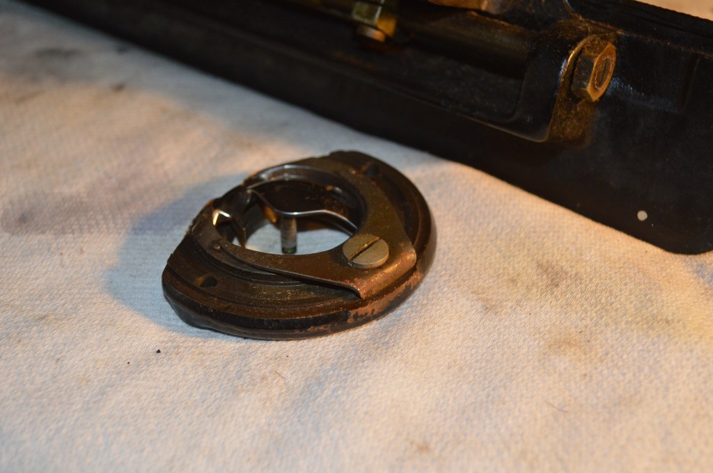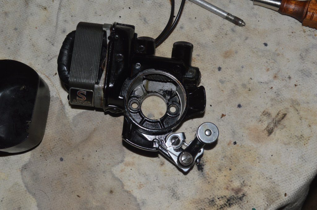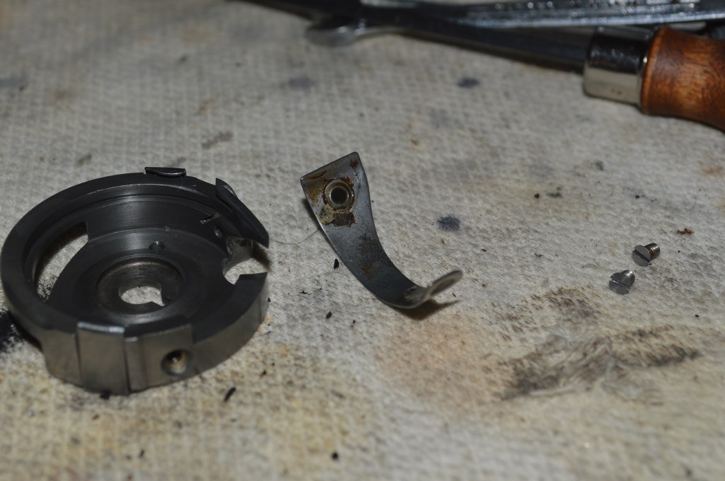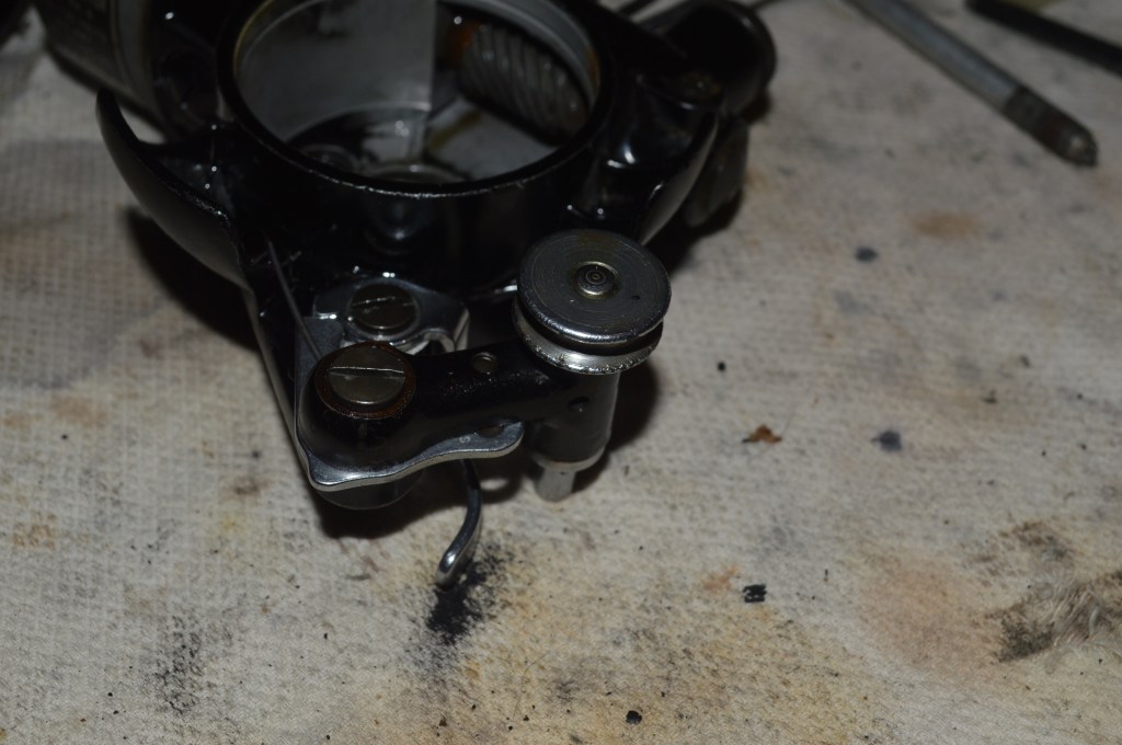 The plan included the disassembly of the top shaft and stitch length fork… The following picture convinced me not to attept this.