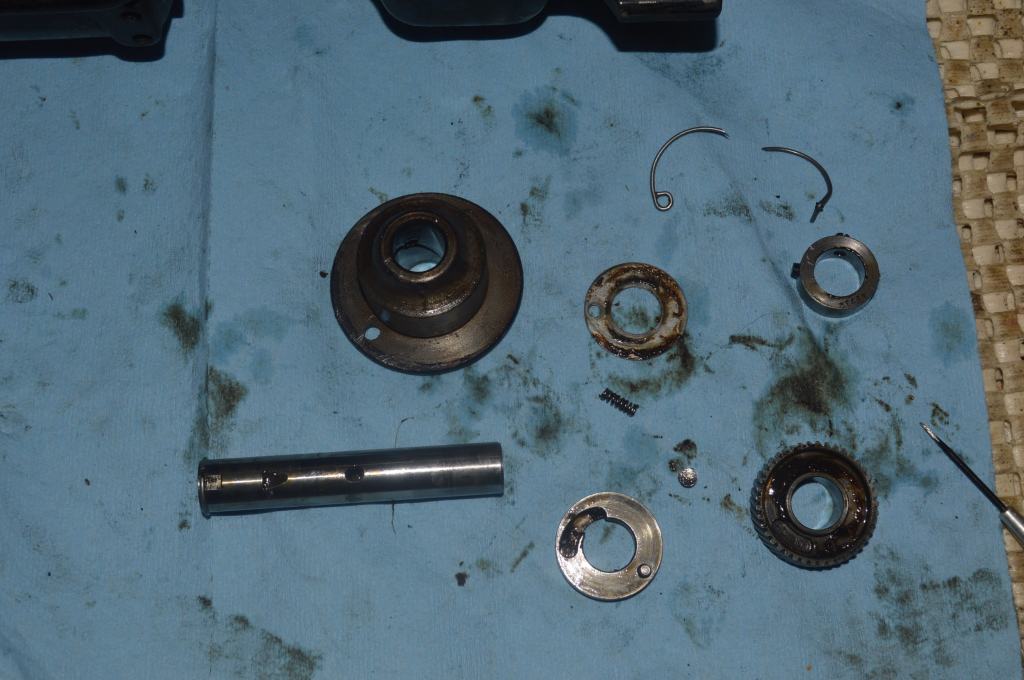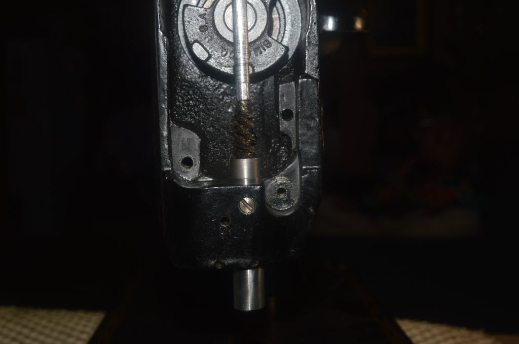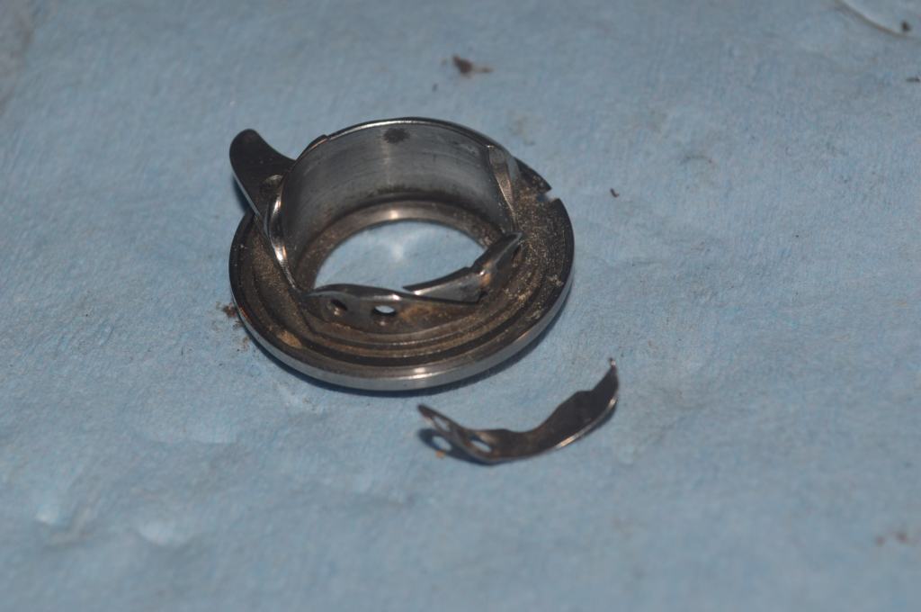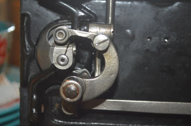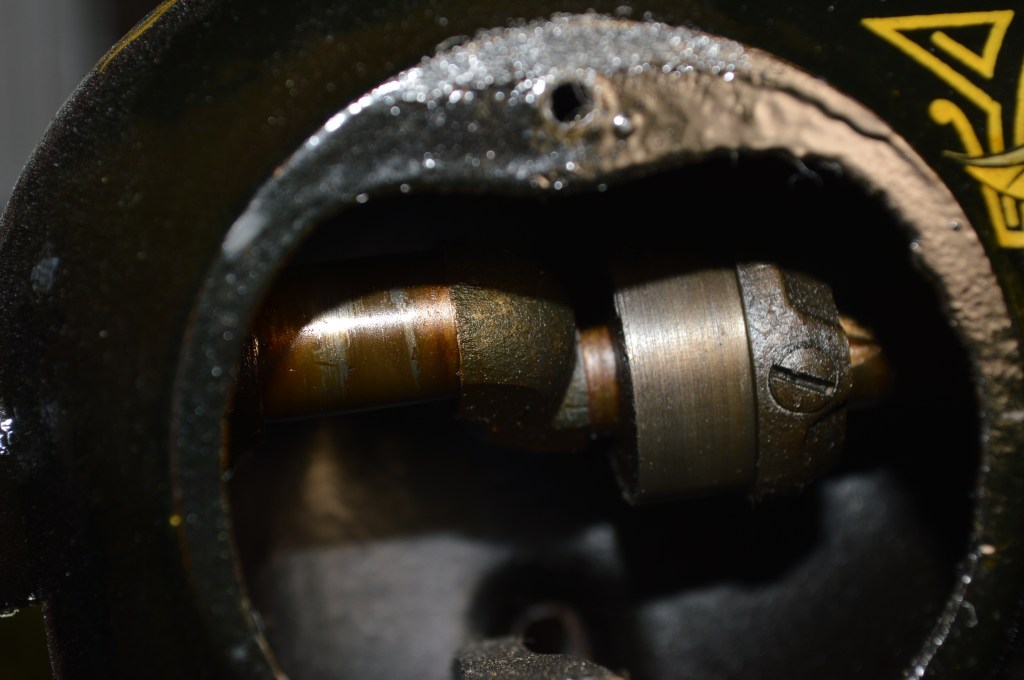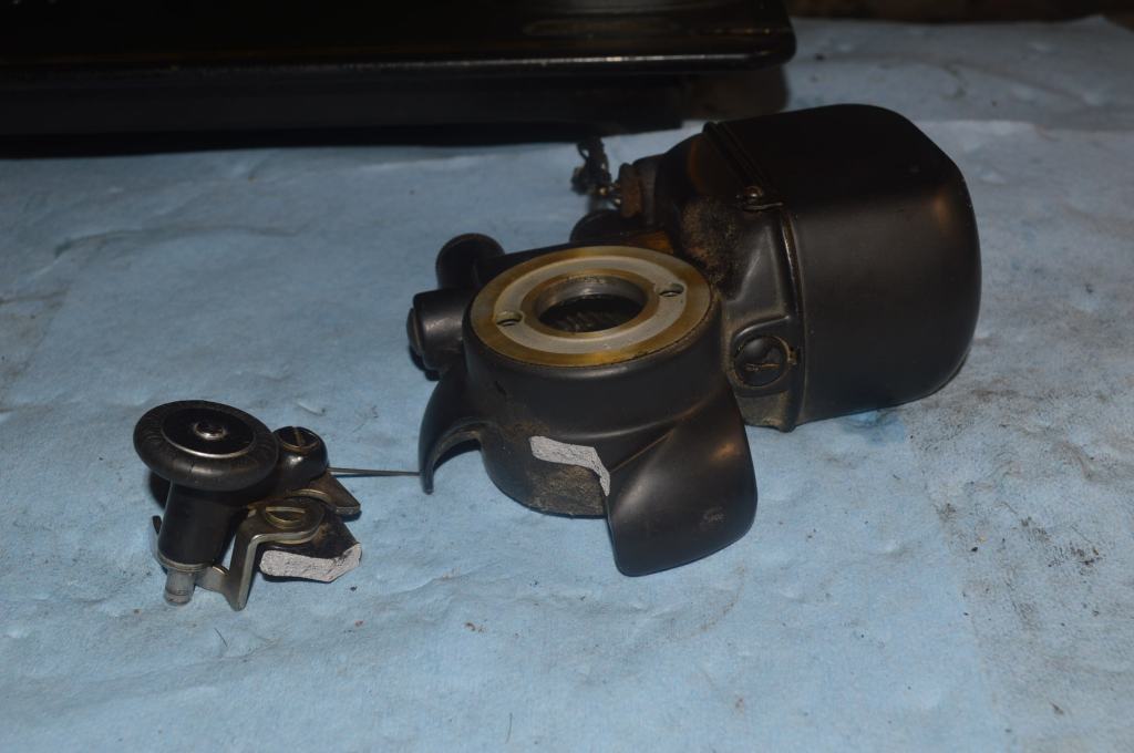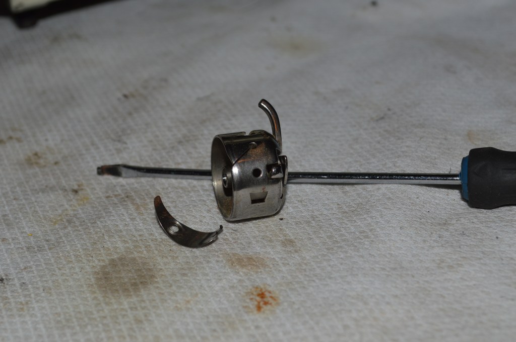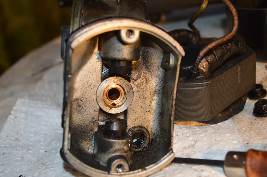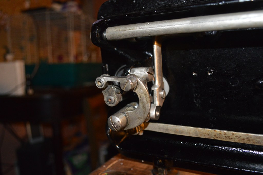 The plan included the disassembly of the top shaft and stitch length fork… The following picture convinced me not to attept this.