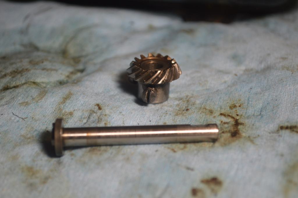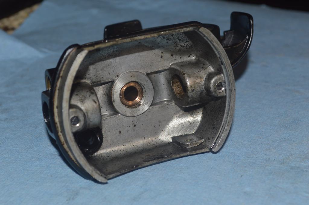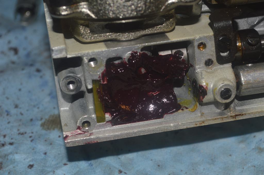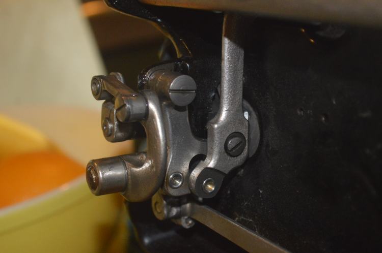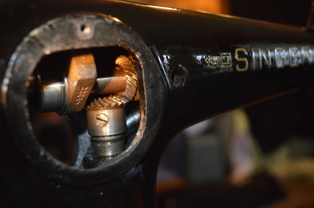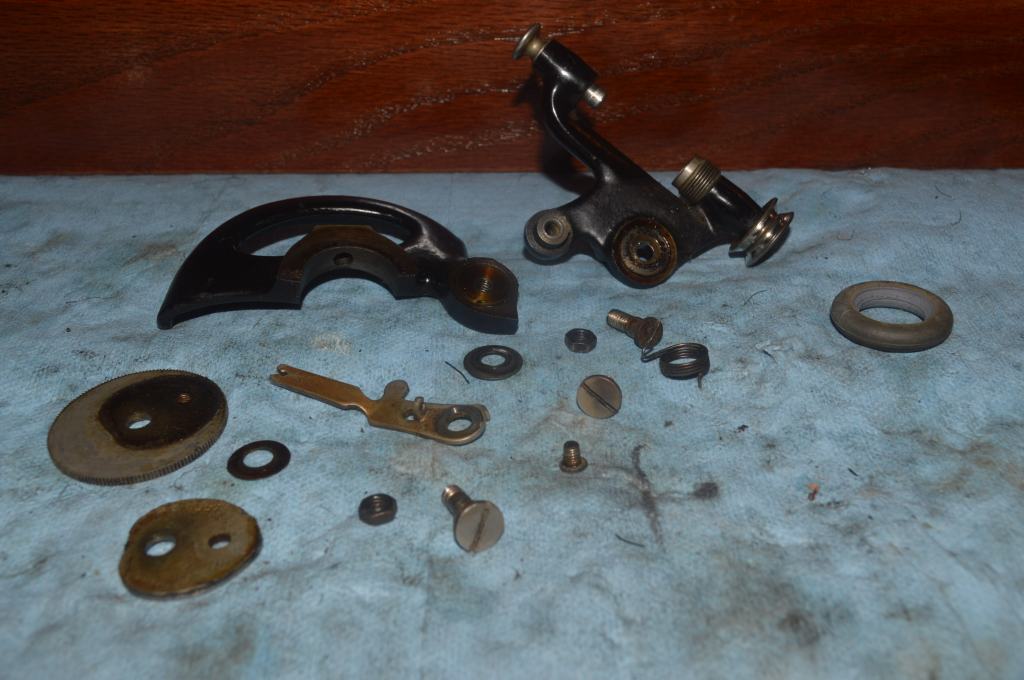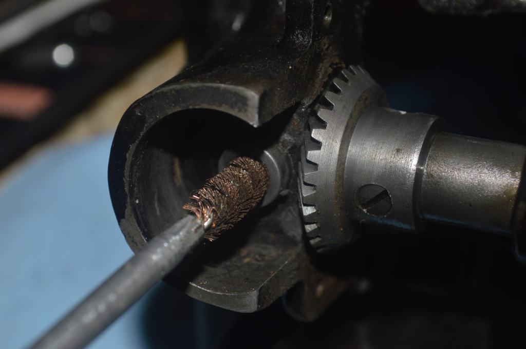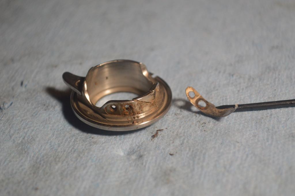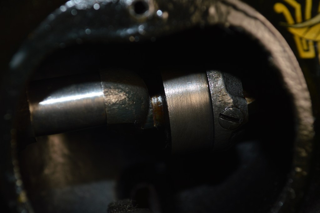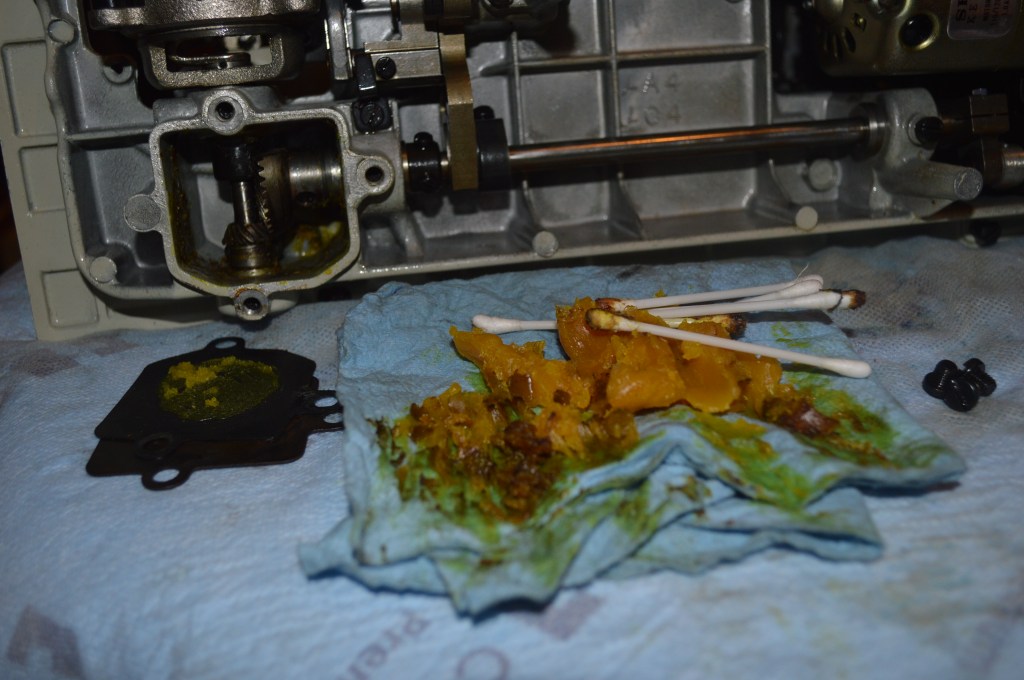 The plan included the disassembly of the top shaft and stitch length fork… The following picture convinced me not to attept this.