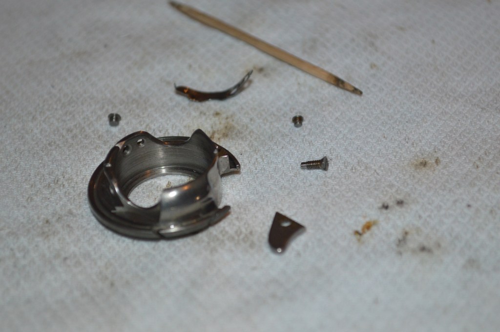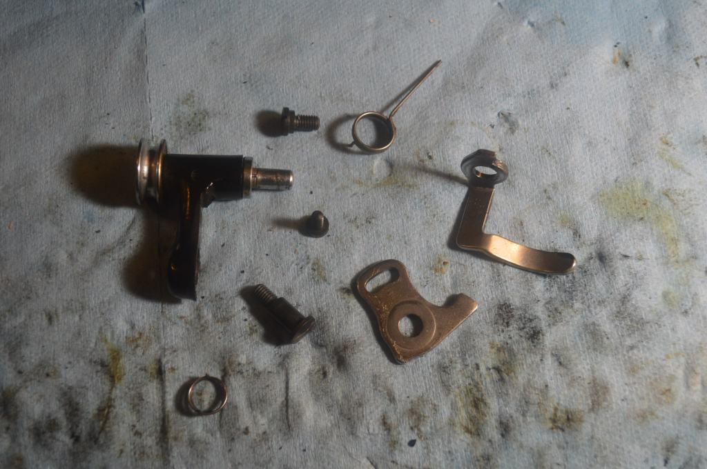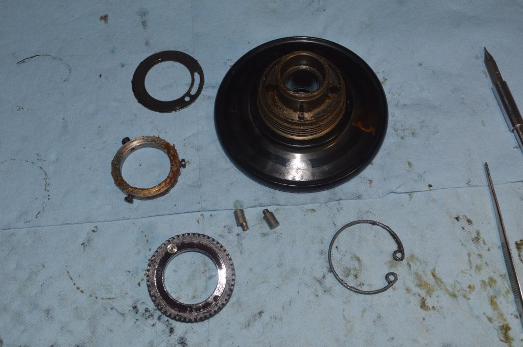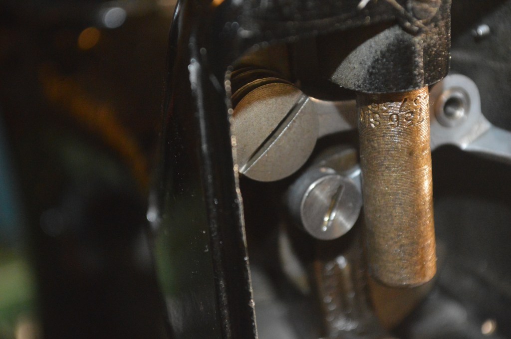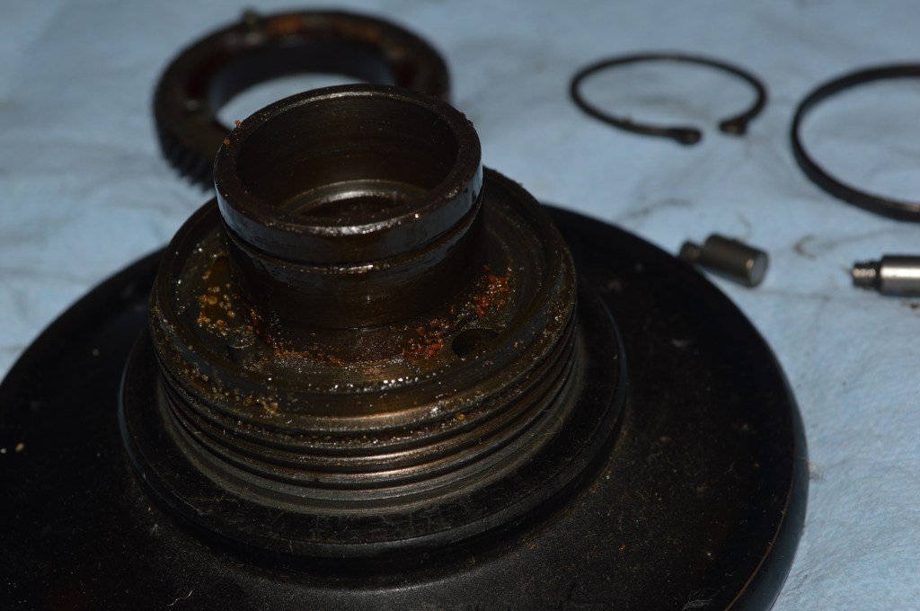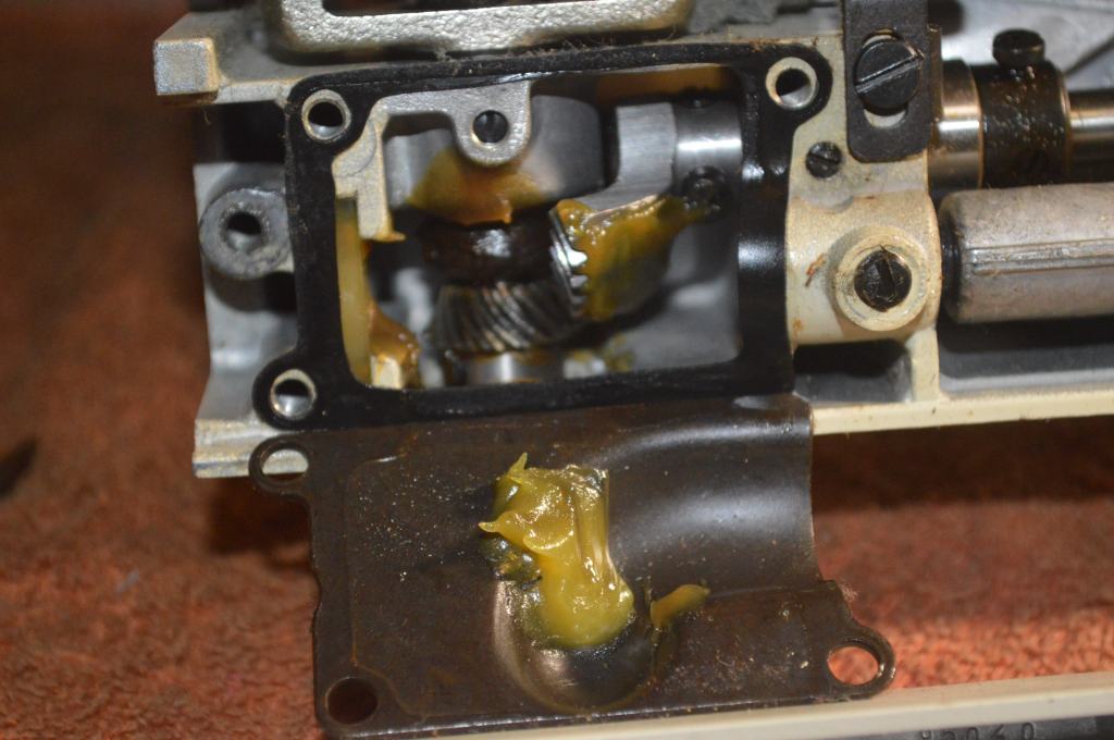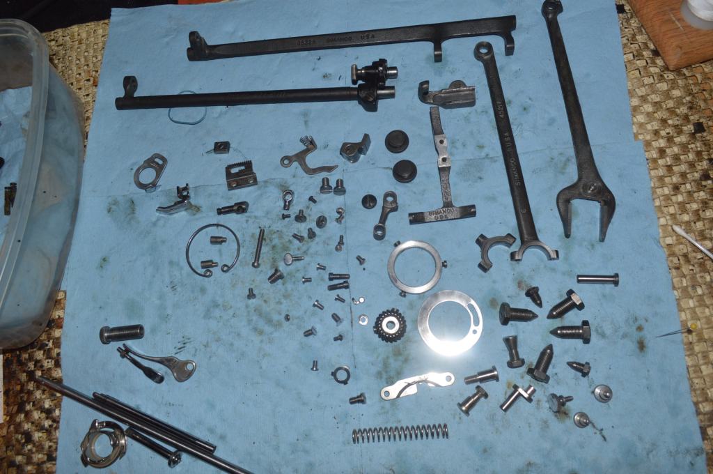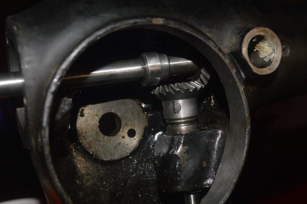 The plan included the disassembly of the top shaft and stitch length fork… The following picture convinced me not to attept this.