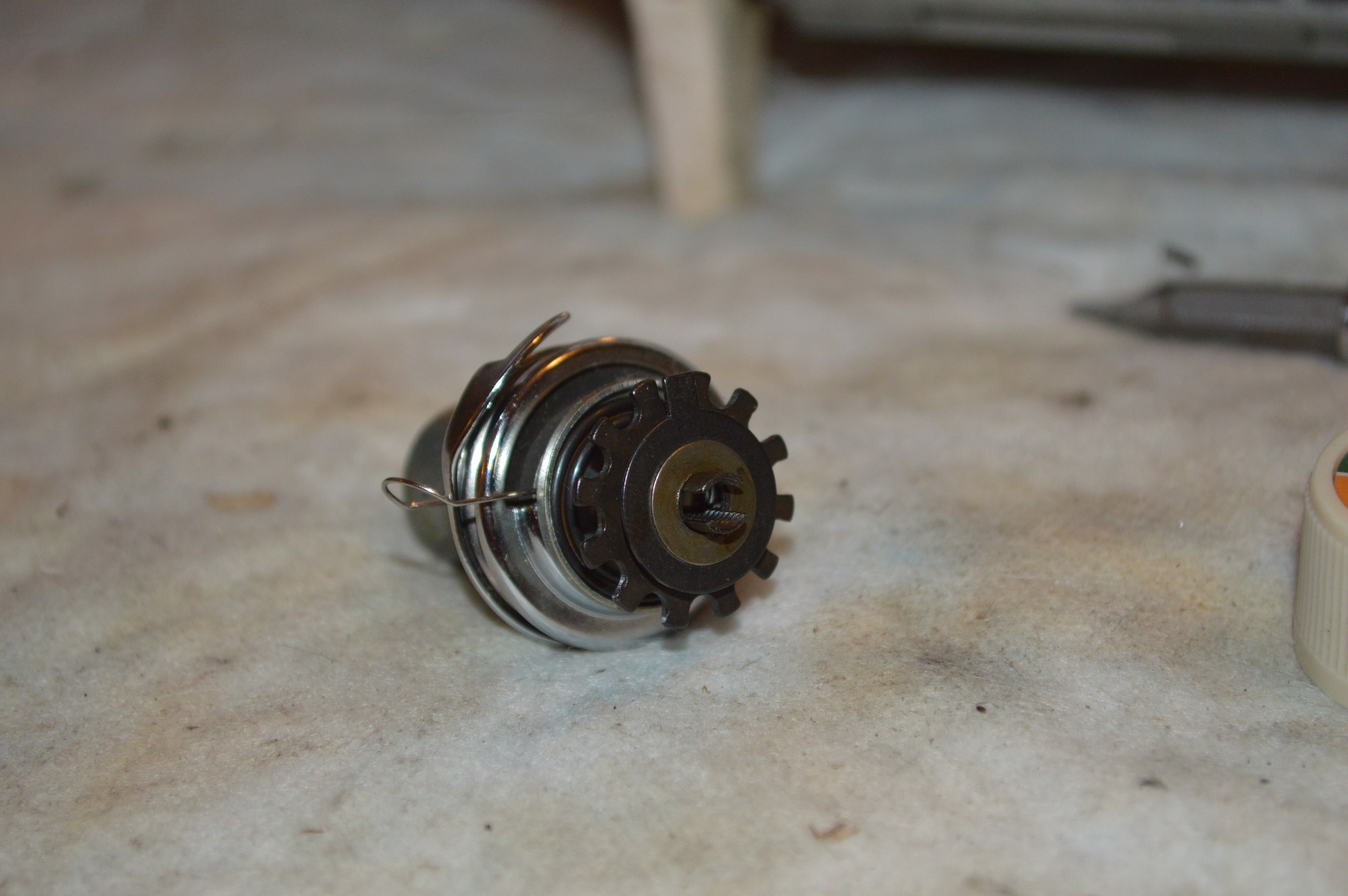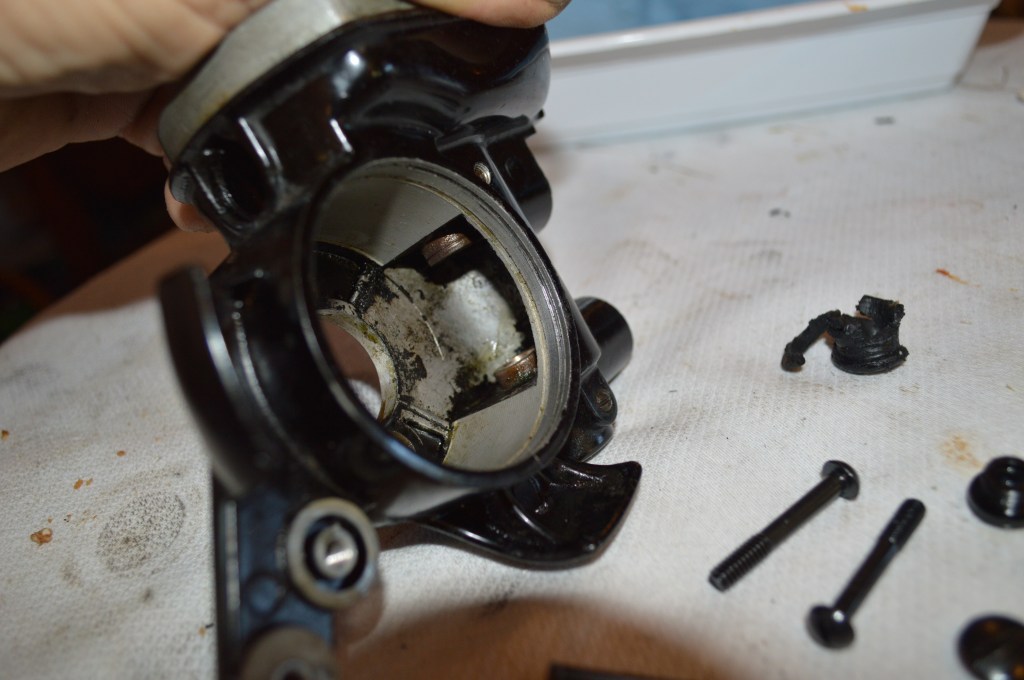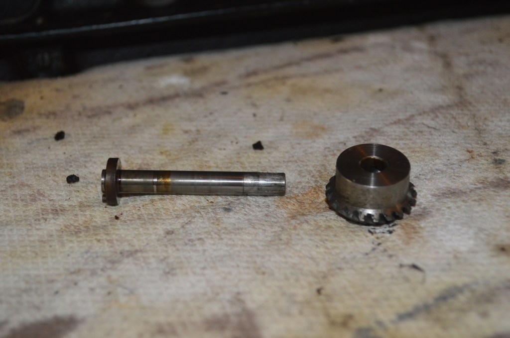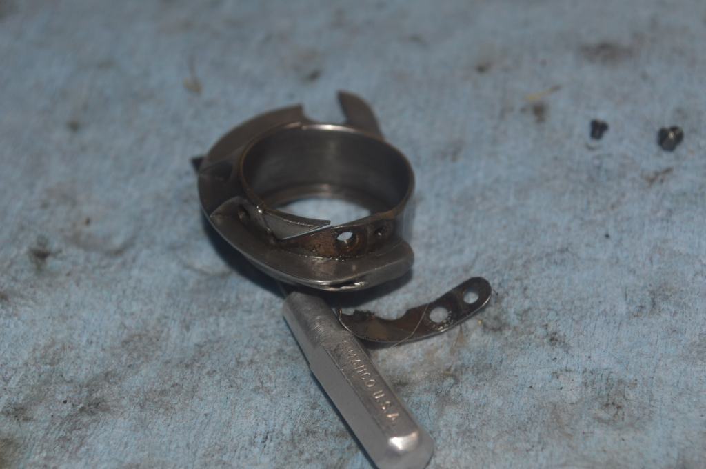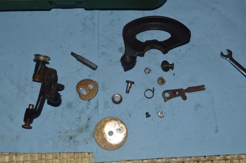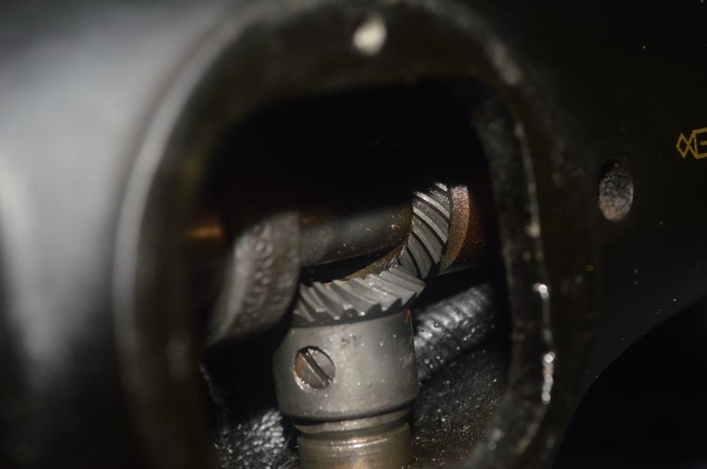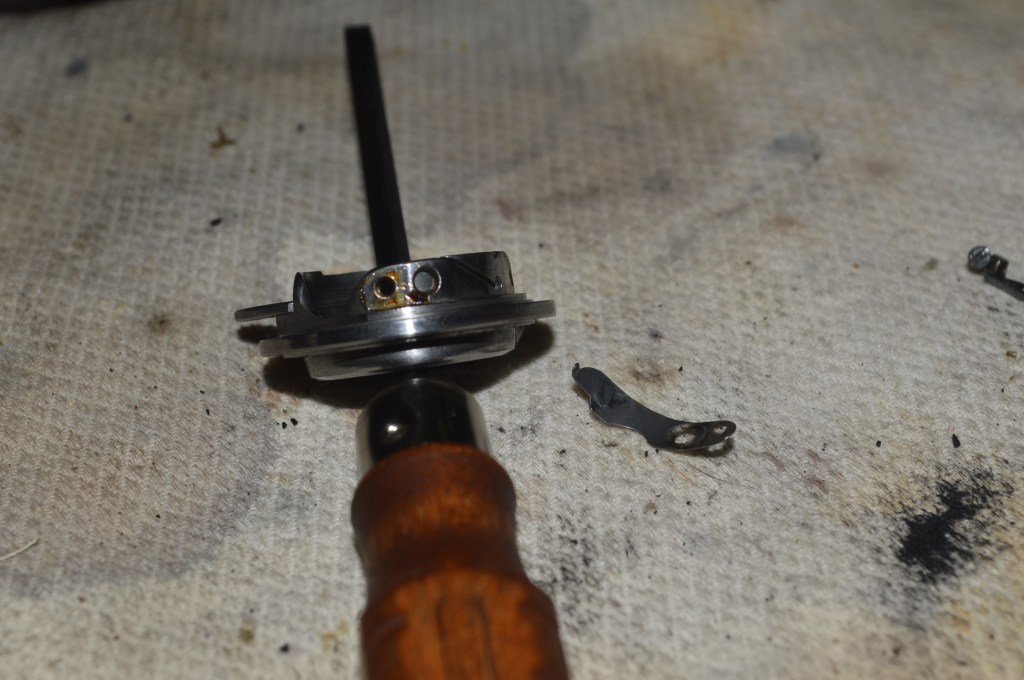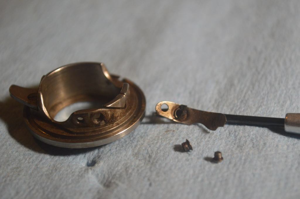 The plan included the disassembly of the top shaft and stitch length fork… The following picture convinced me not to attept this.