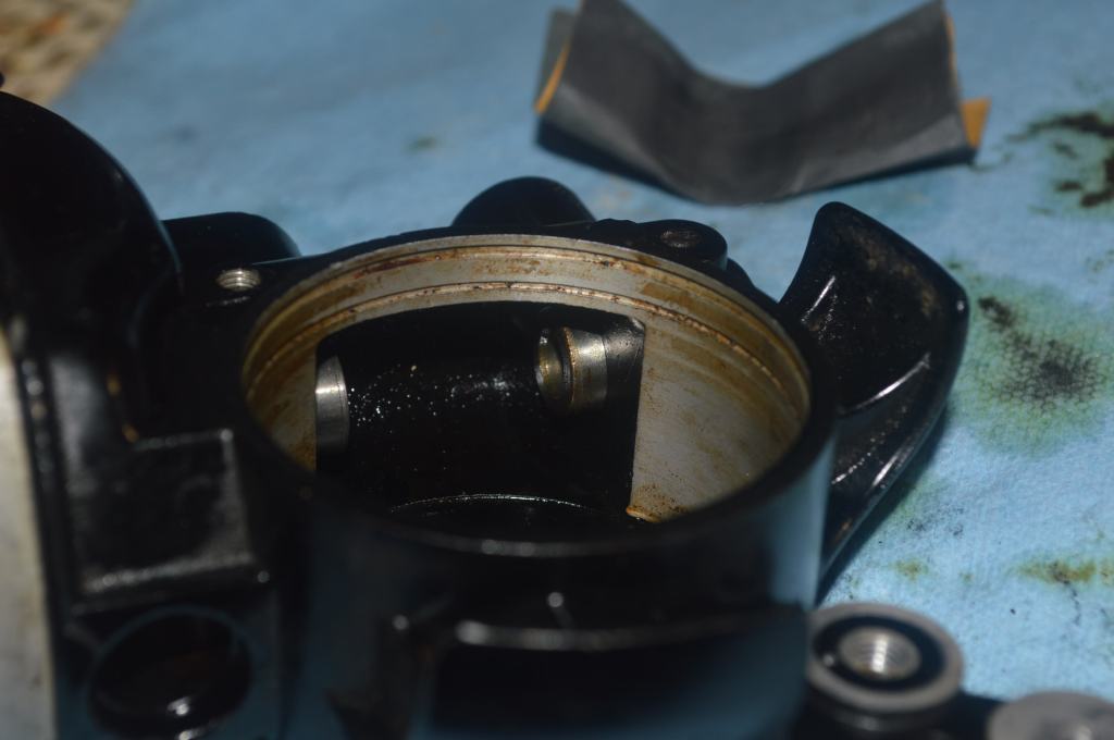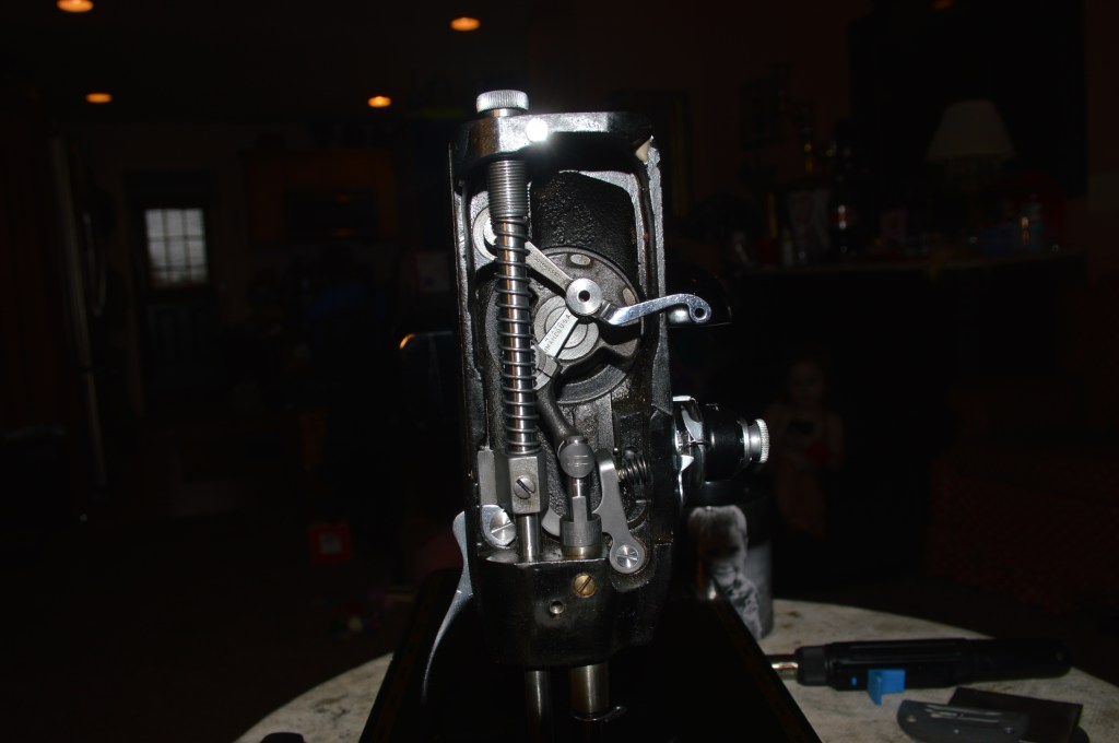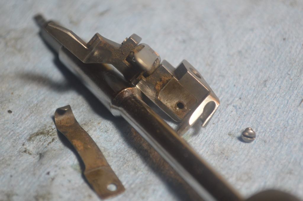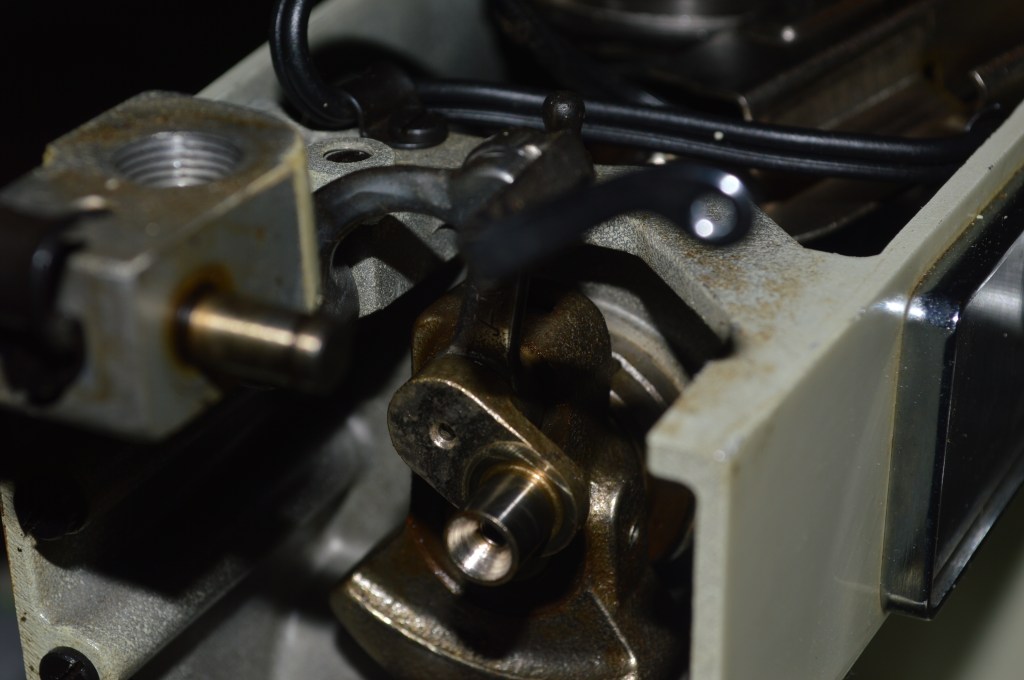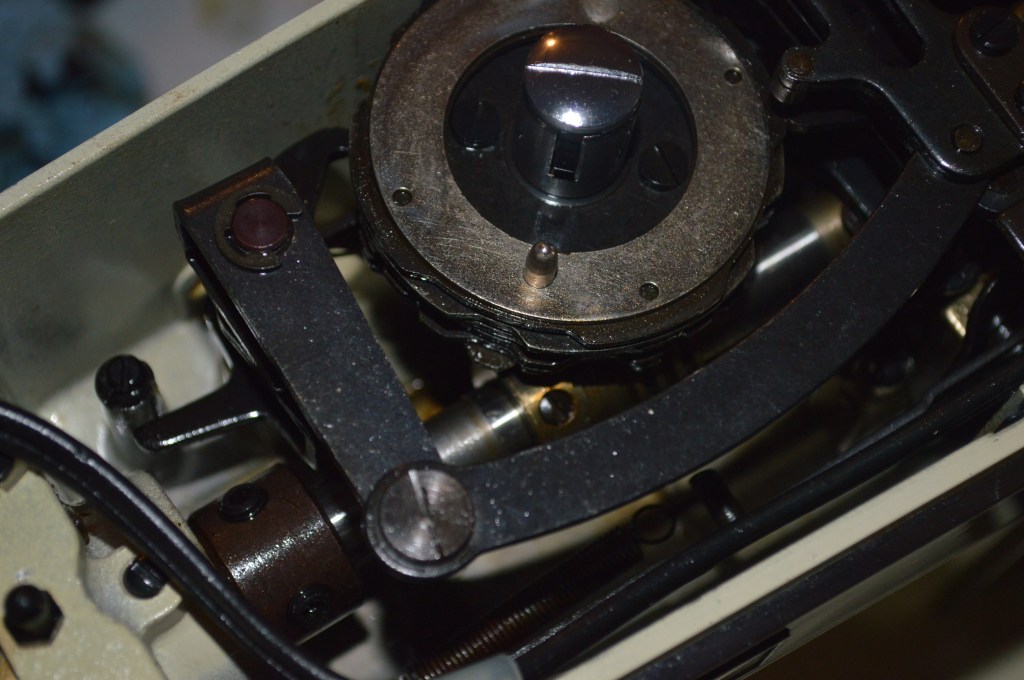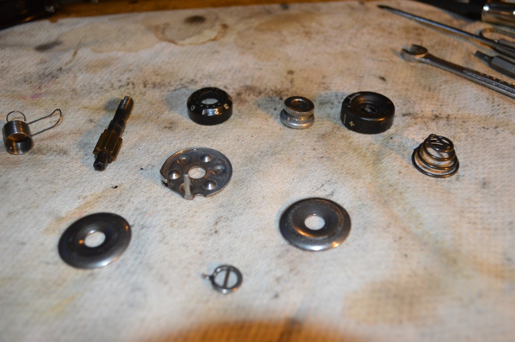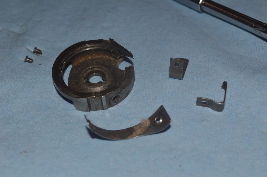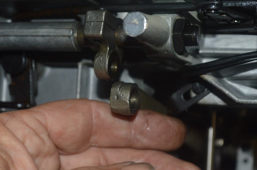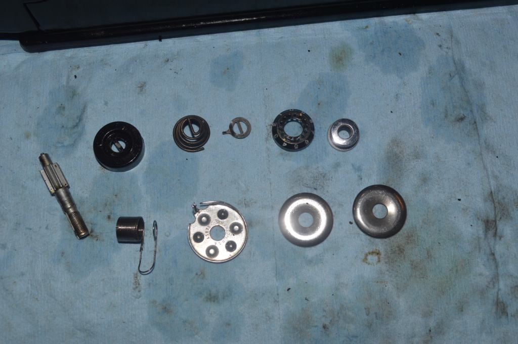 The plan included the disassembly of the top shaft and stitch length fork… The following picture convinced me not to attept this.