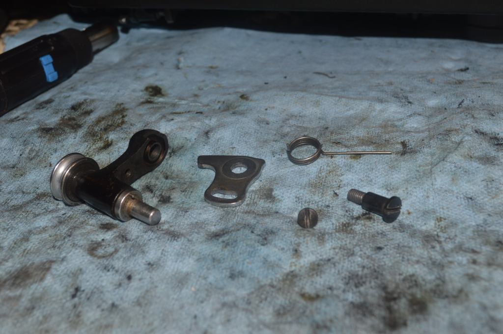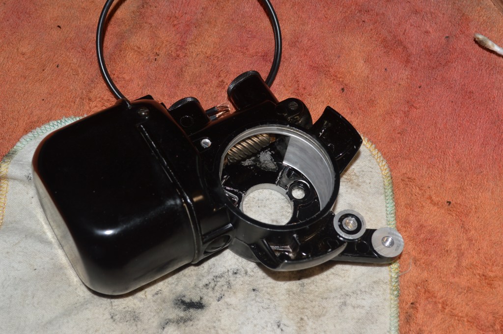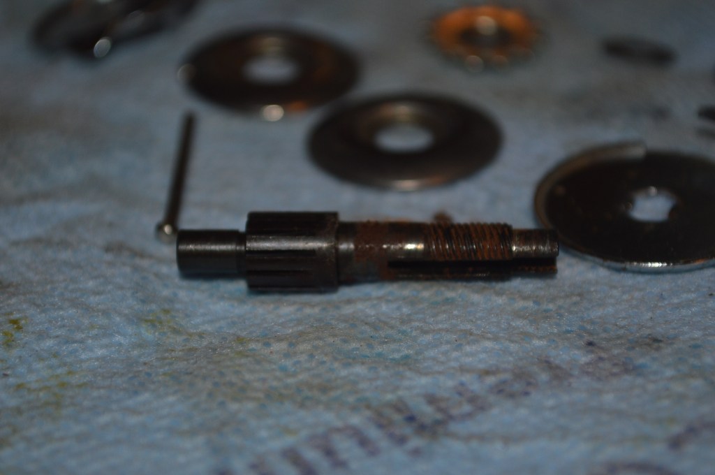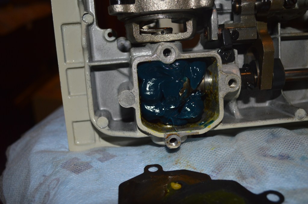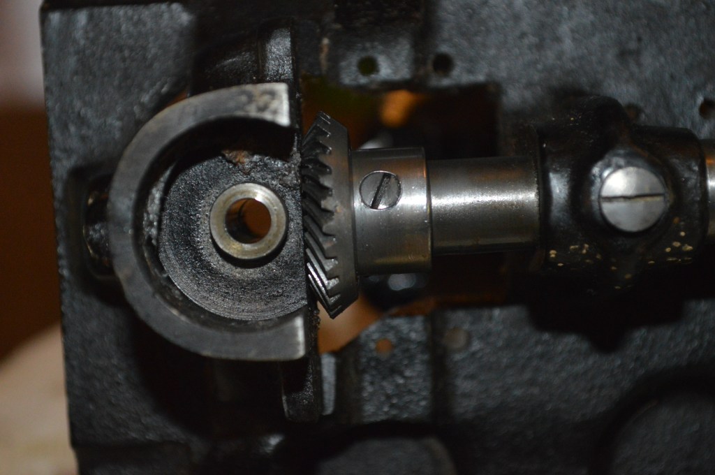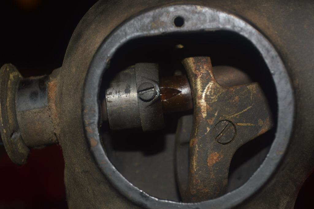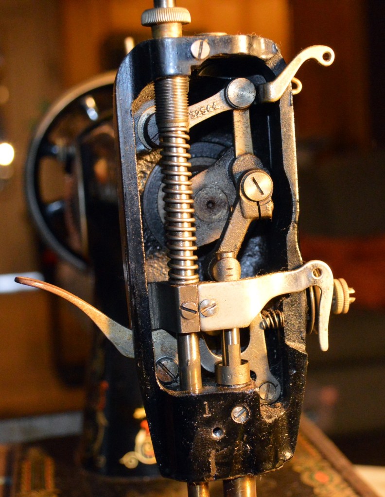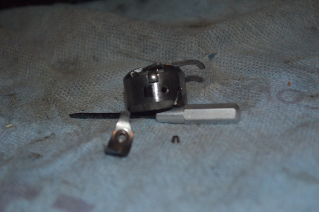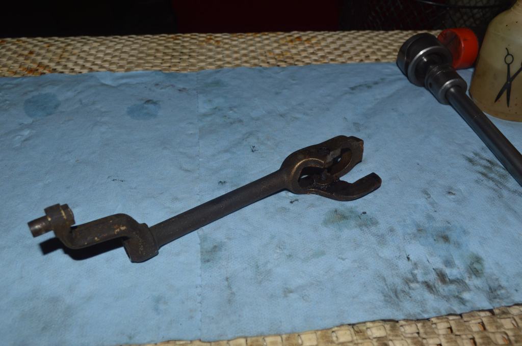 The plan included the disassembly of the top shaft and stitch length fork… The following picture convinced me not to attept this.