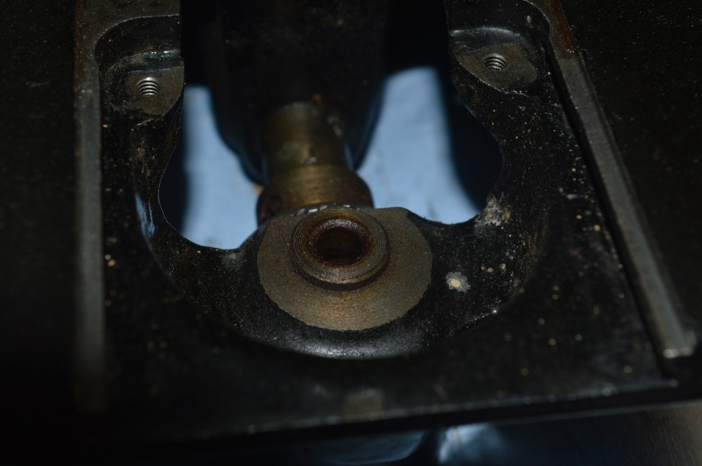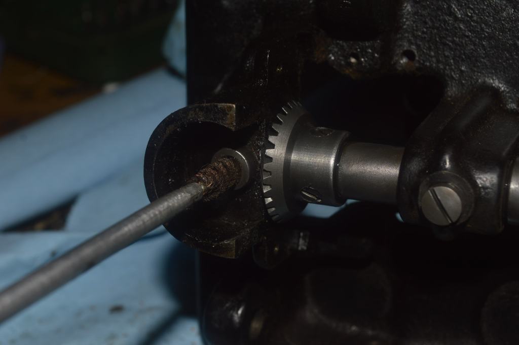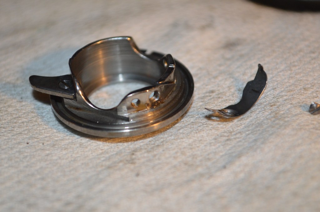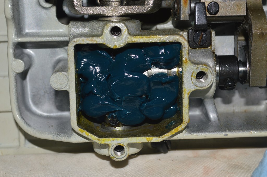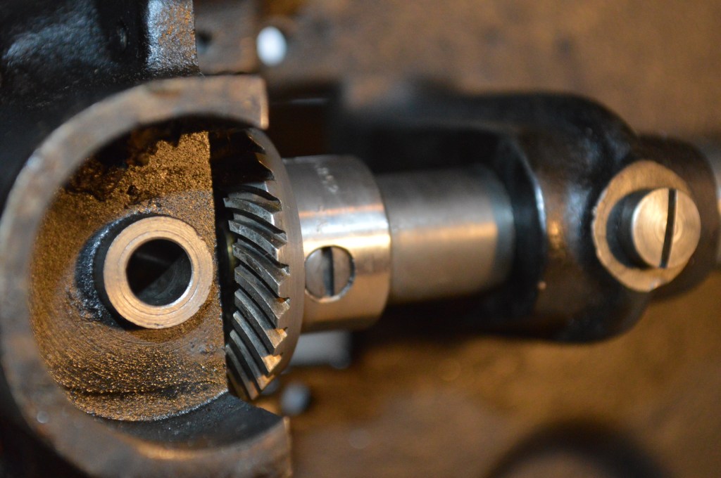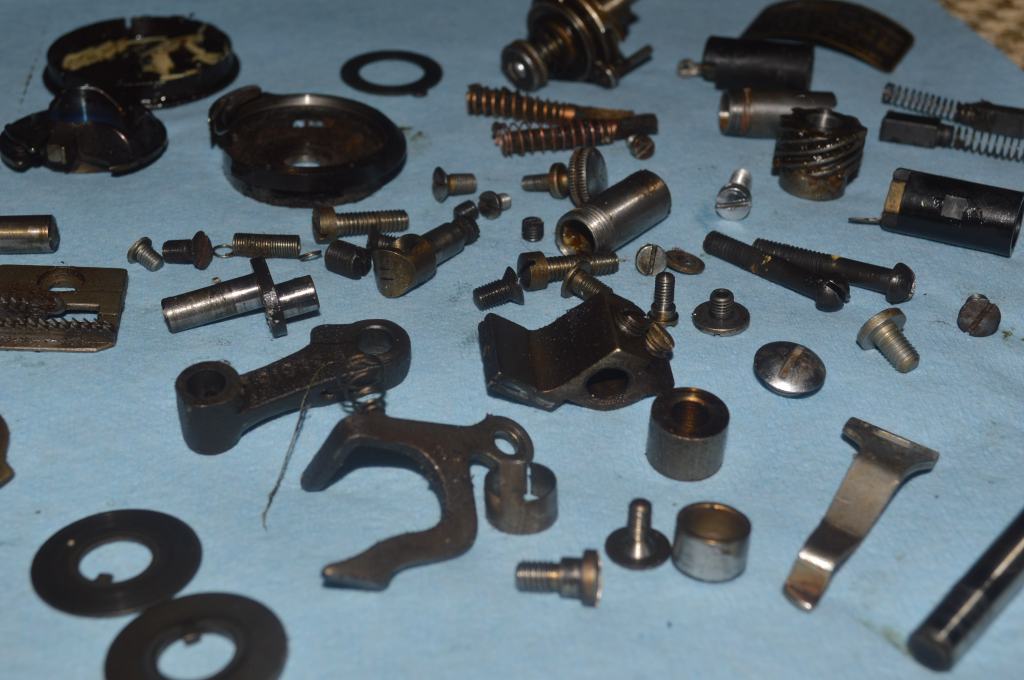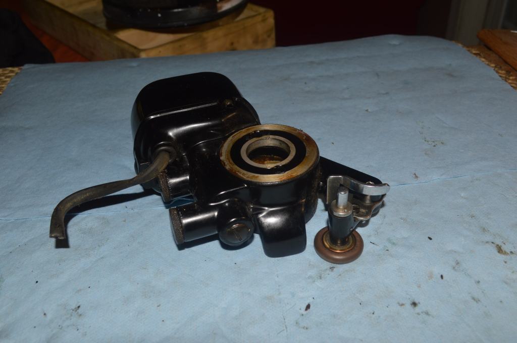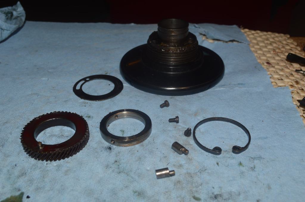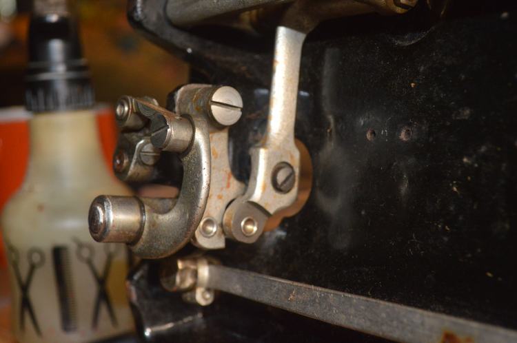 The plan included the disassembly of the top shaft and stitch length fork… The following picture convinced me not to attept this.