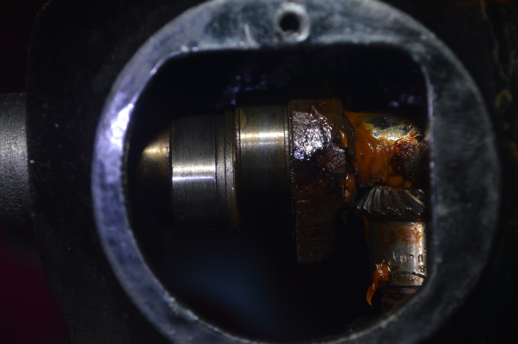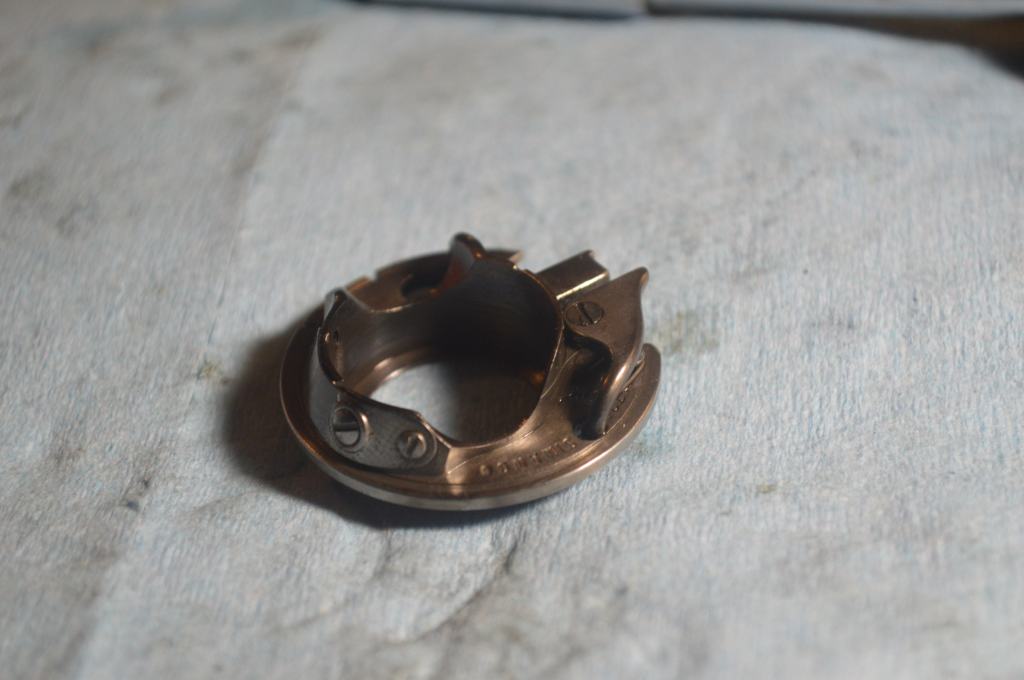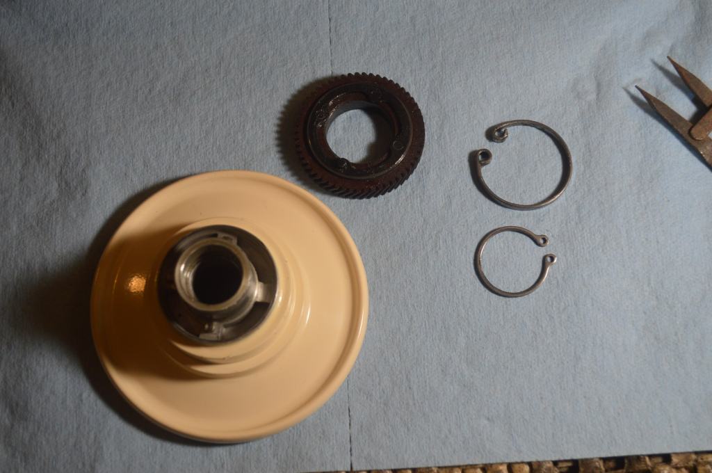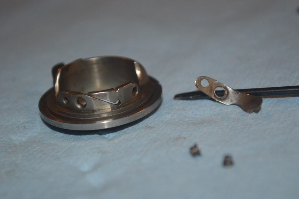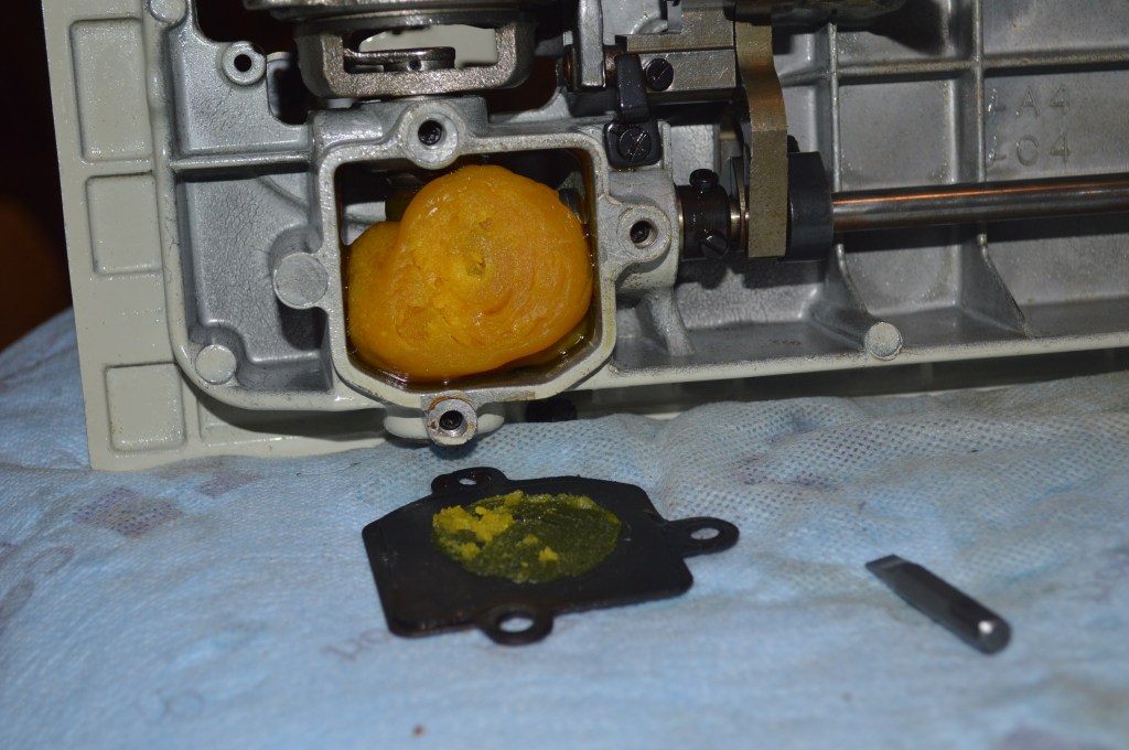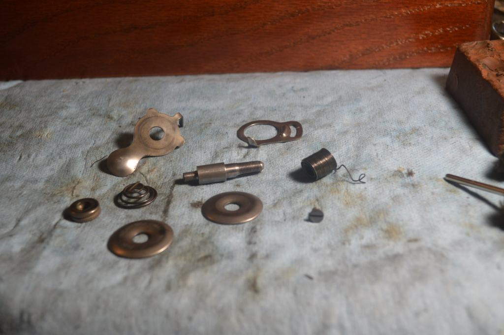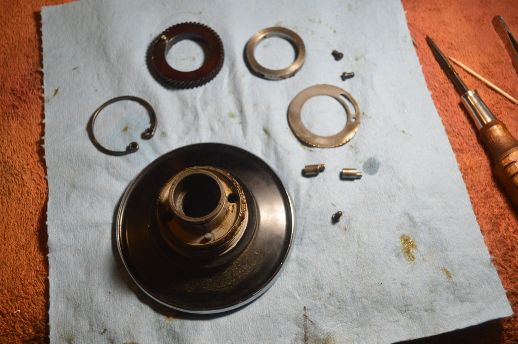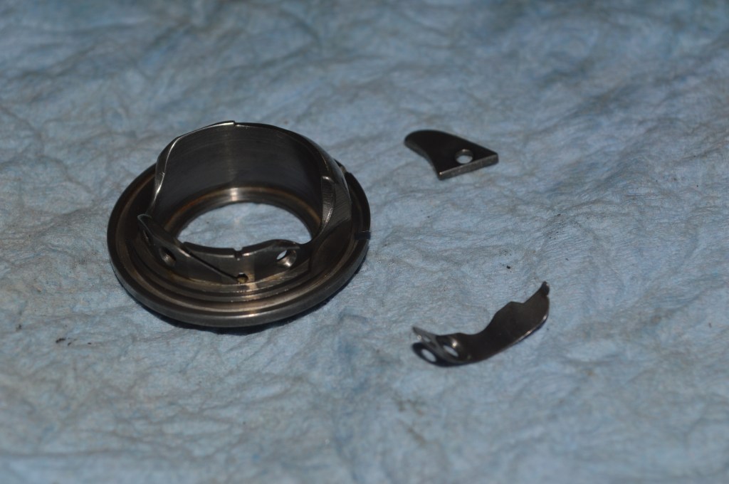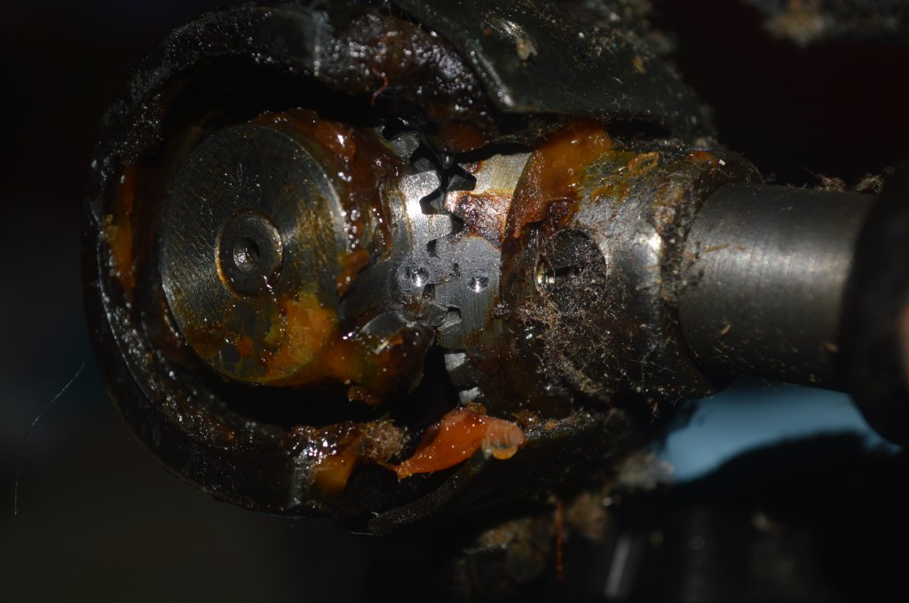 The plan included the disassembly of the top shaft and stitch length fork… The following picture convinced me not to attept this.