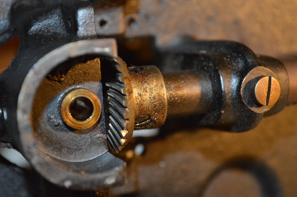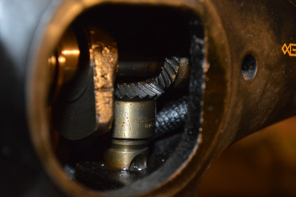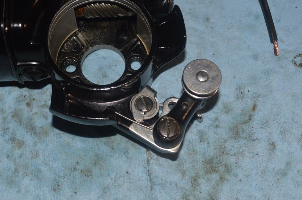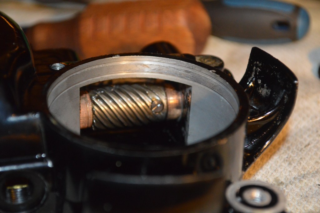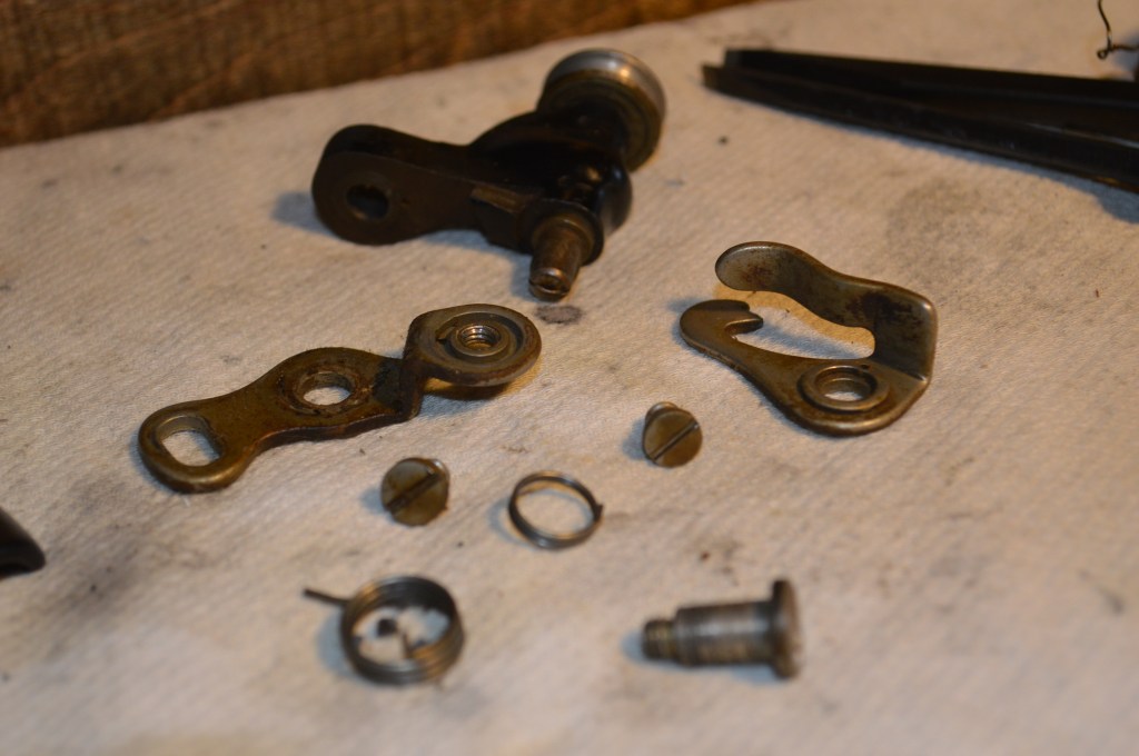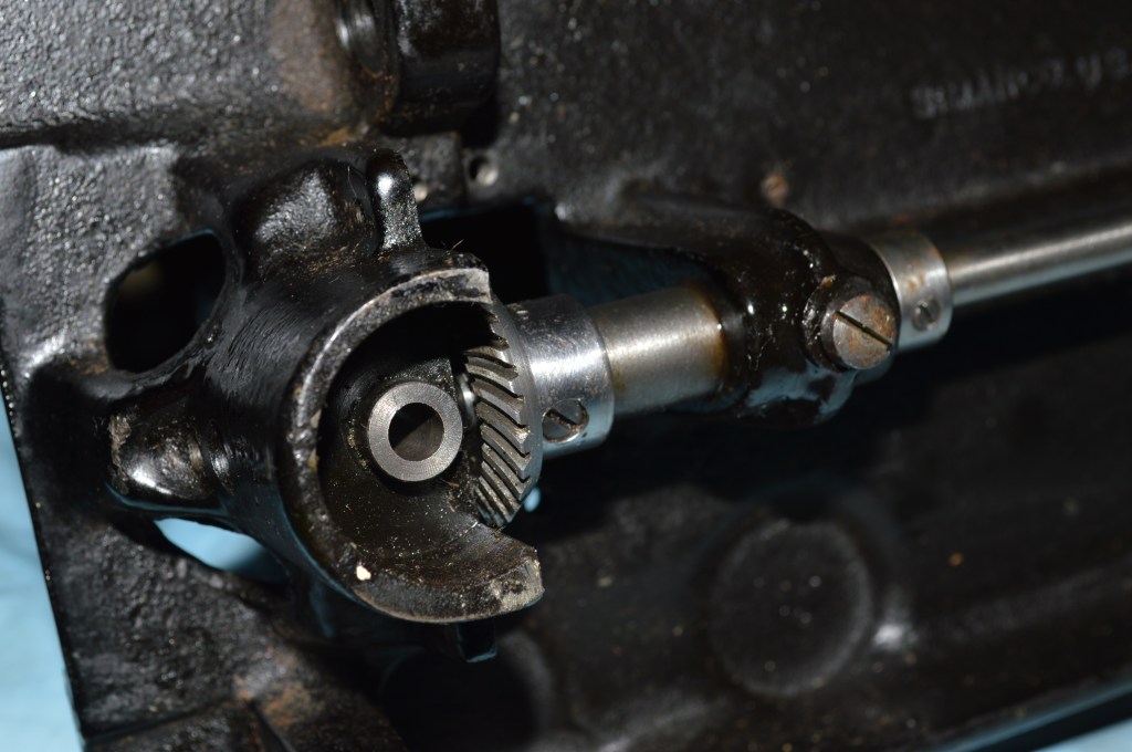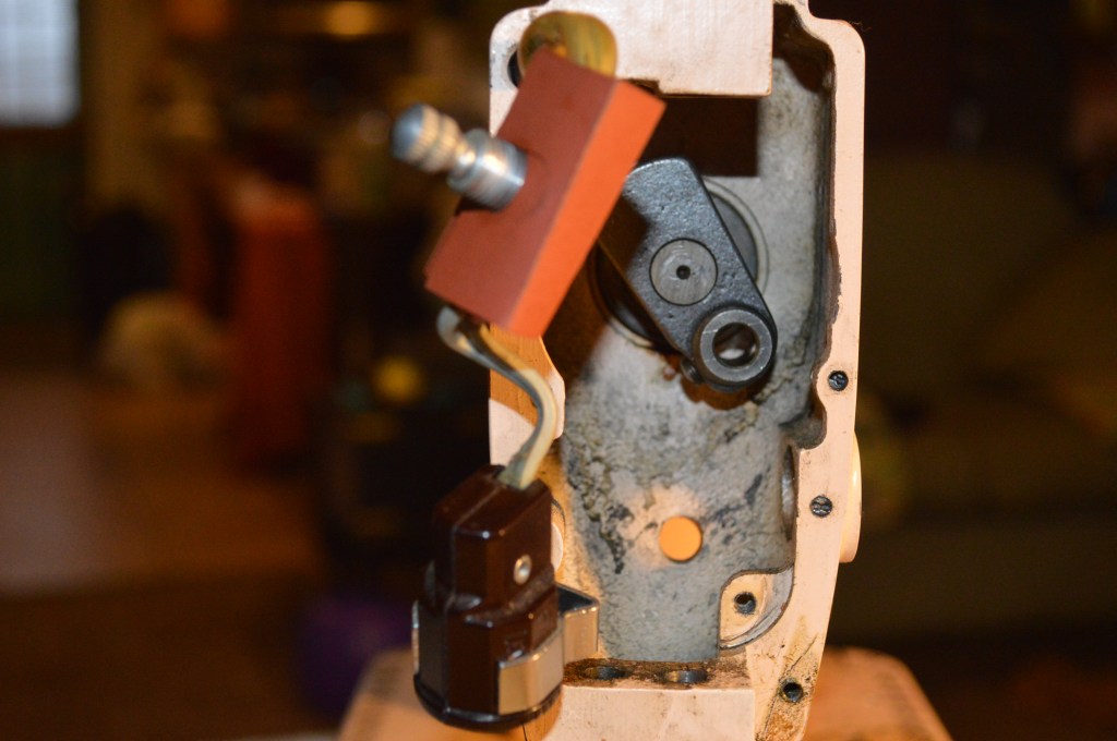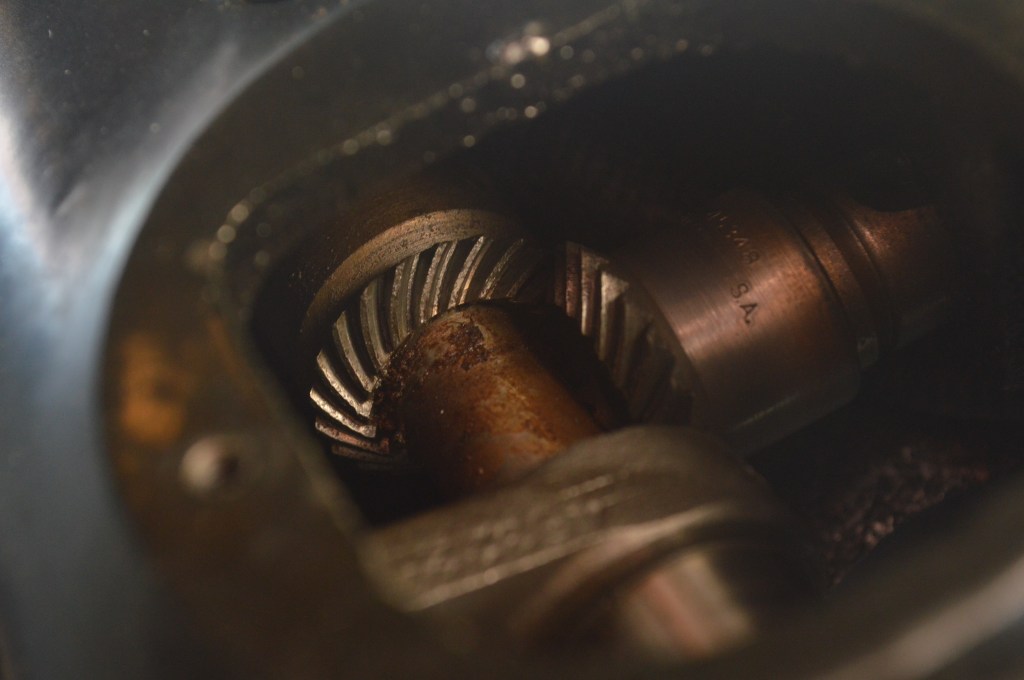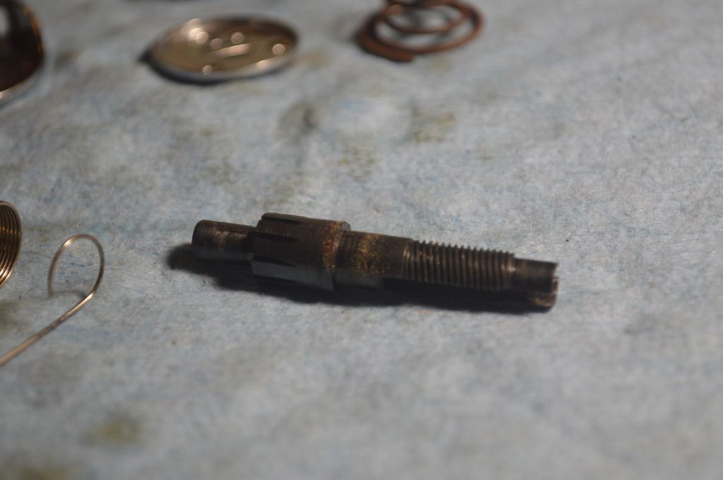 The plan included the disassembly of the top shaft and stitch length fork… The following picture convinced me not to attept this.