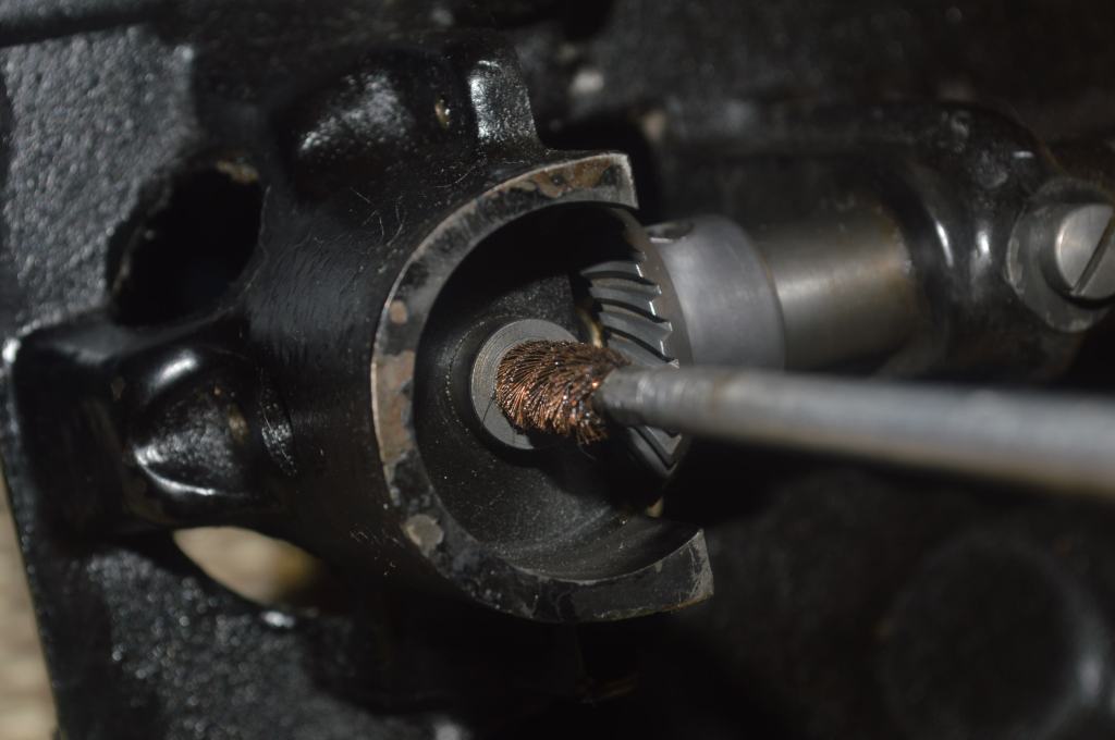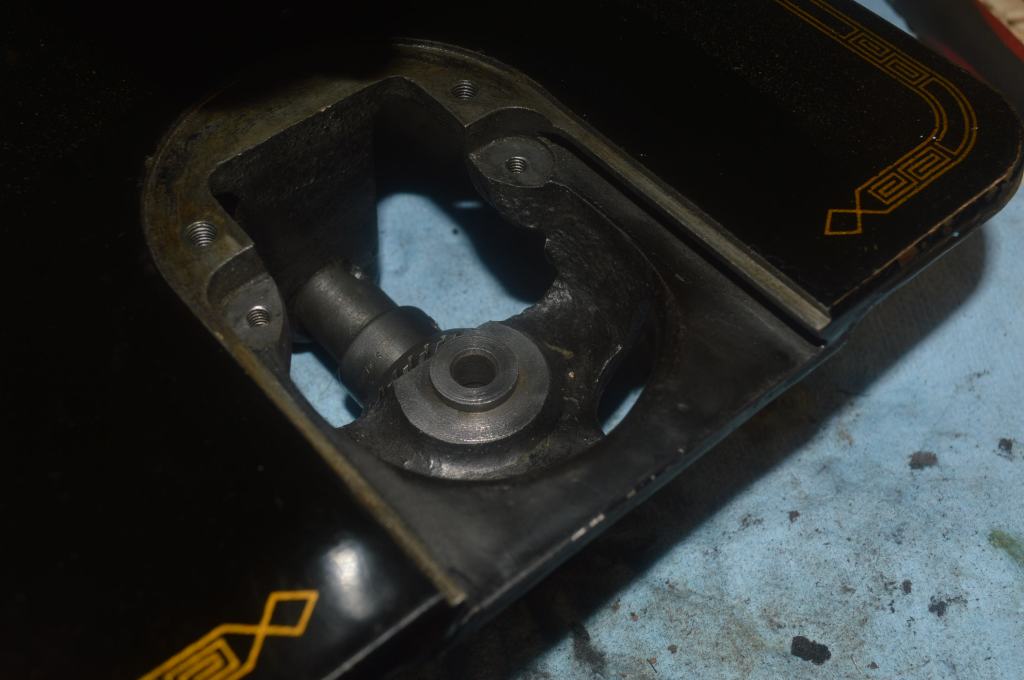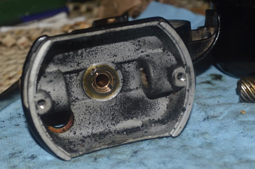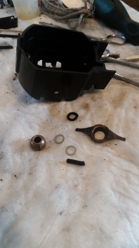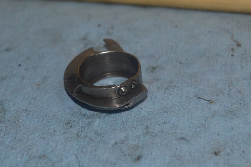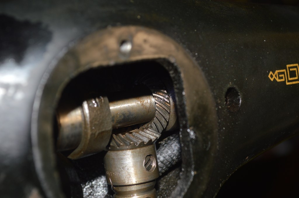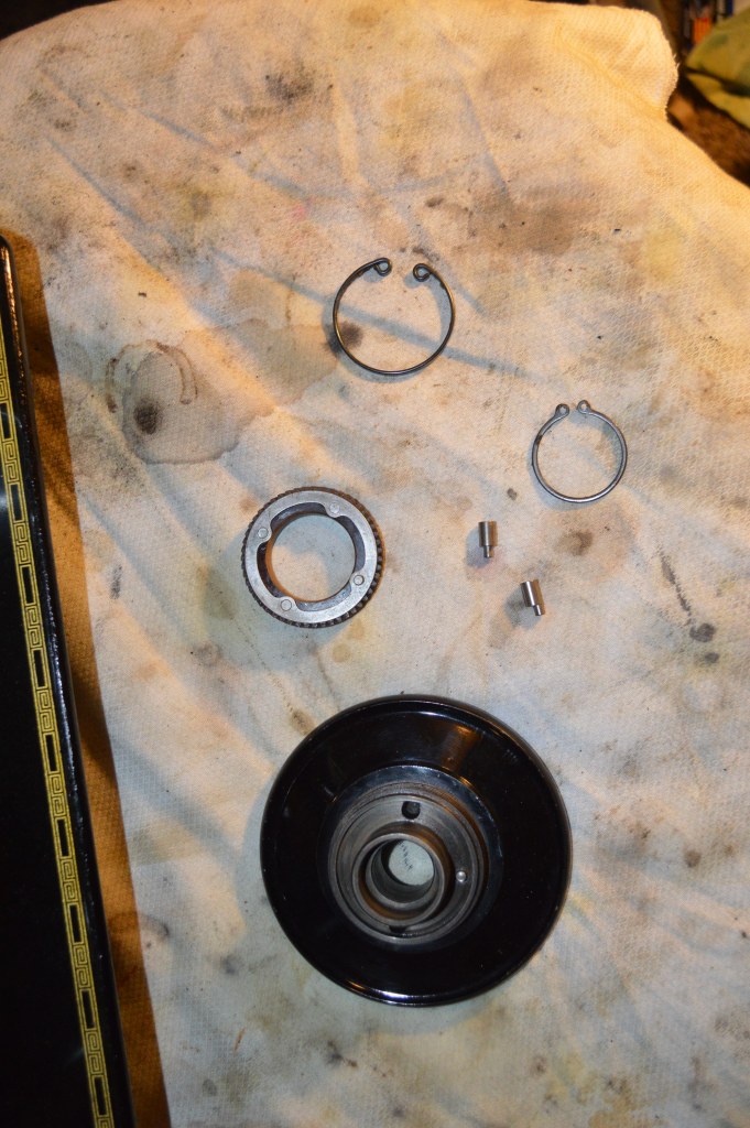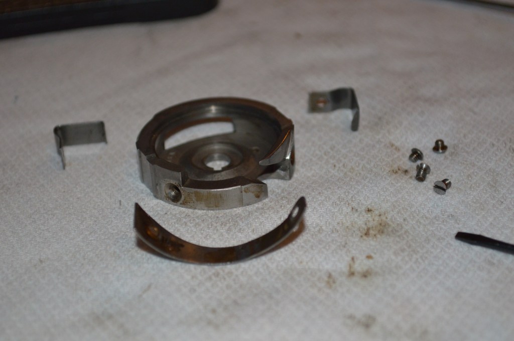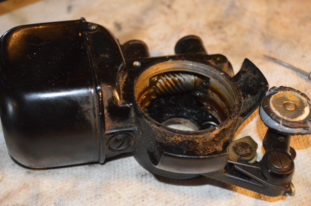 The plan included the disassembly of the top shaft and stitch length fork… The following picture convinced me not to attept this.