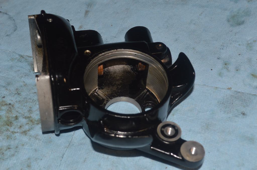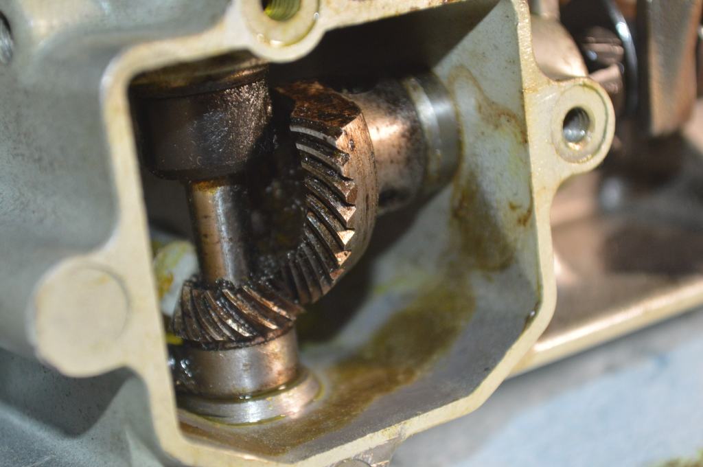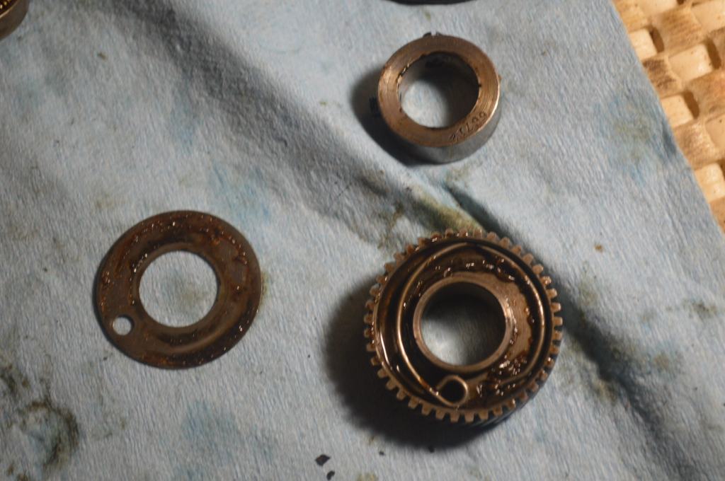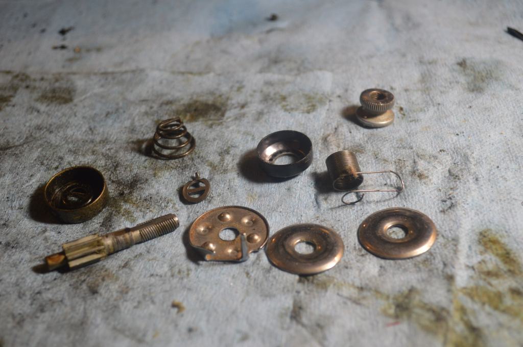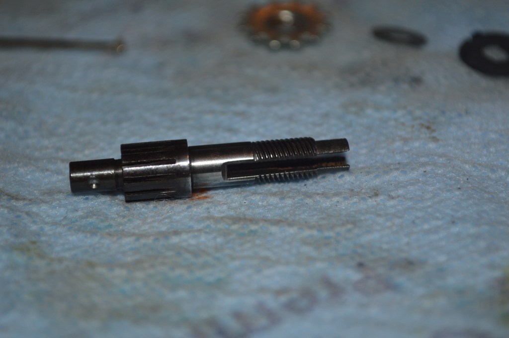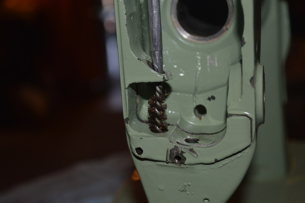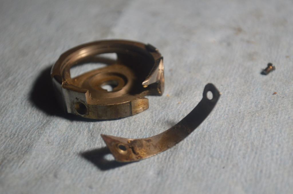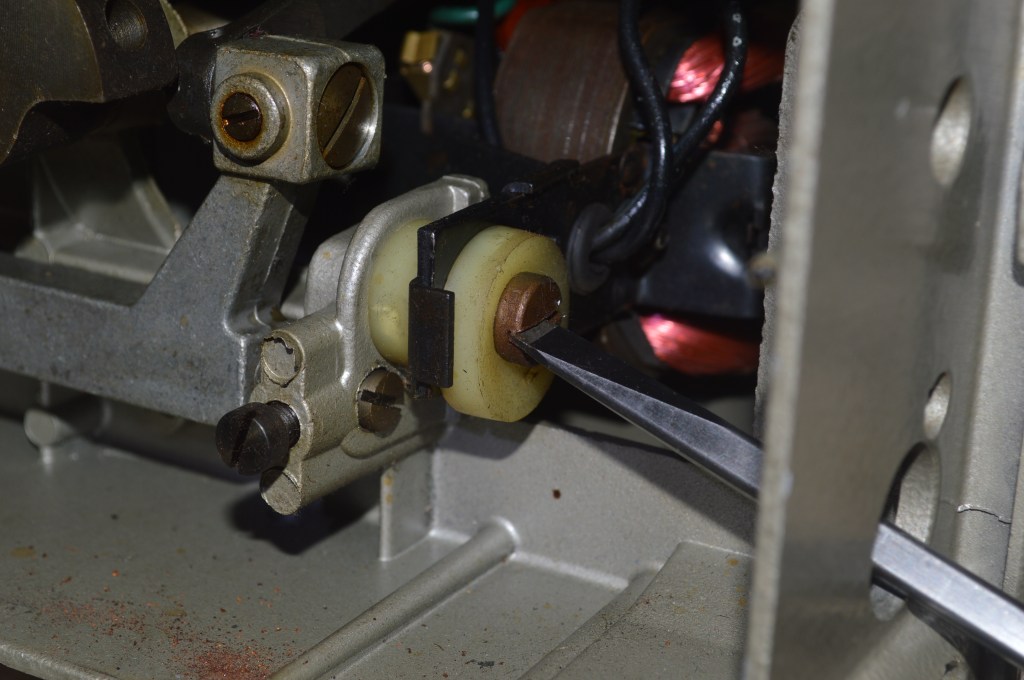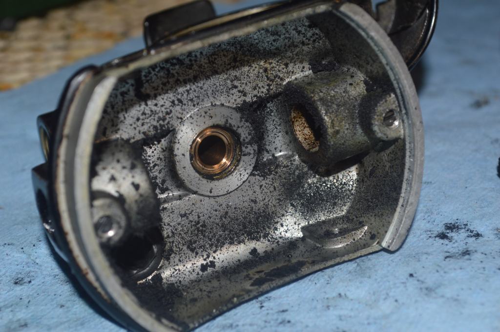 The plan included the disassembly of the top shaft and stitch length fork… The following picture convinced me not to attept this.