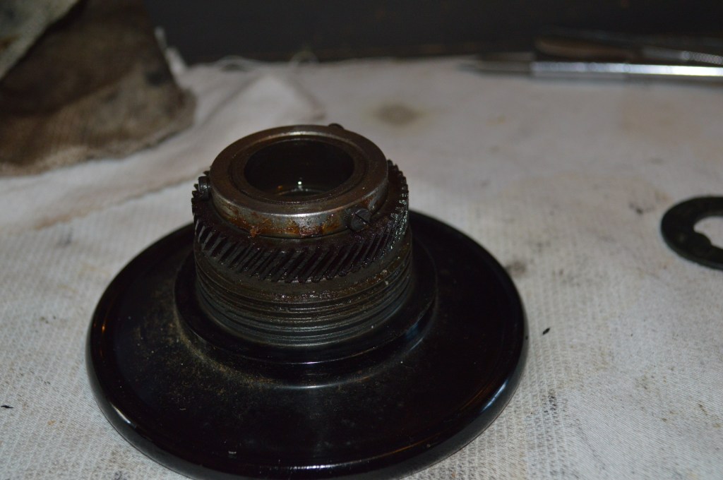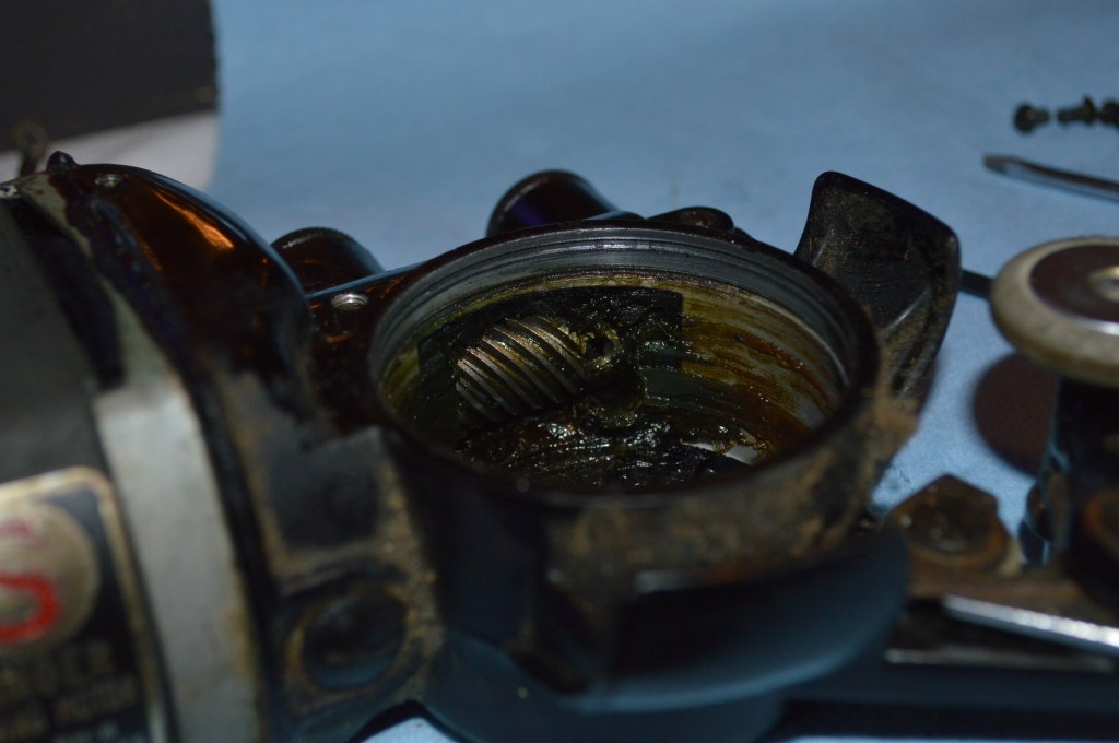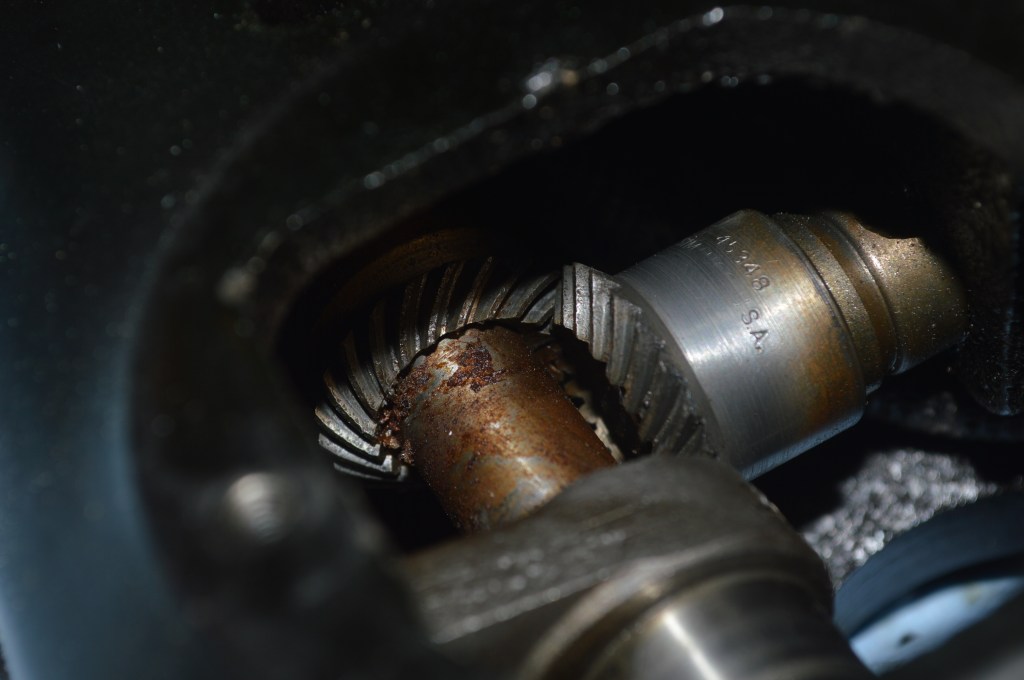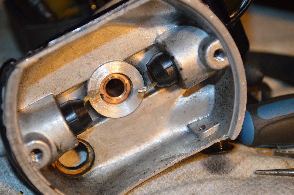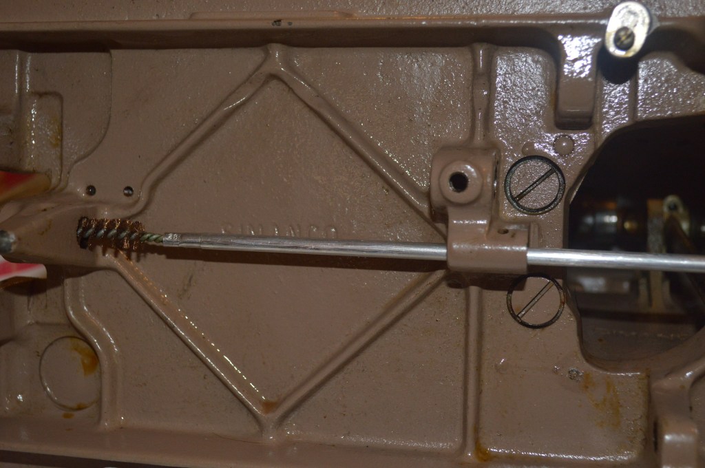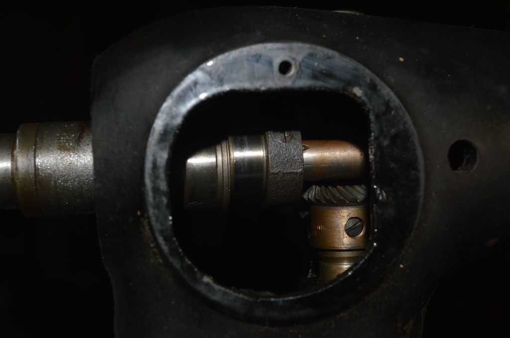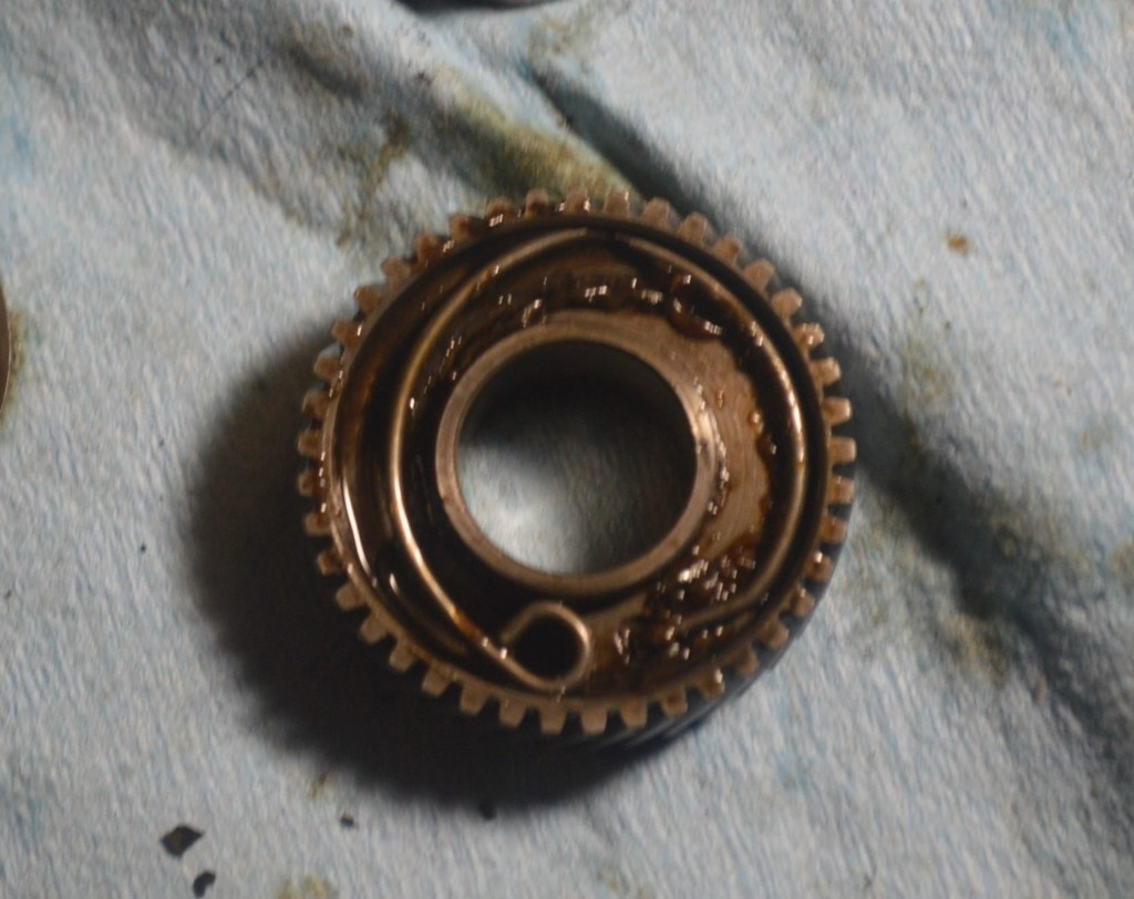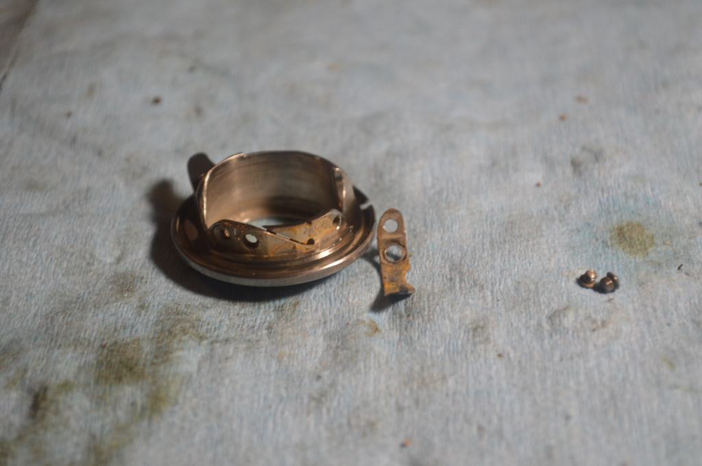 The plan included the disassembly of the top shaft and stitch length fork… The following picture convinced me not to attept this.