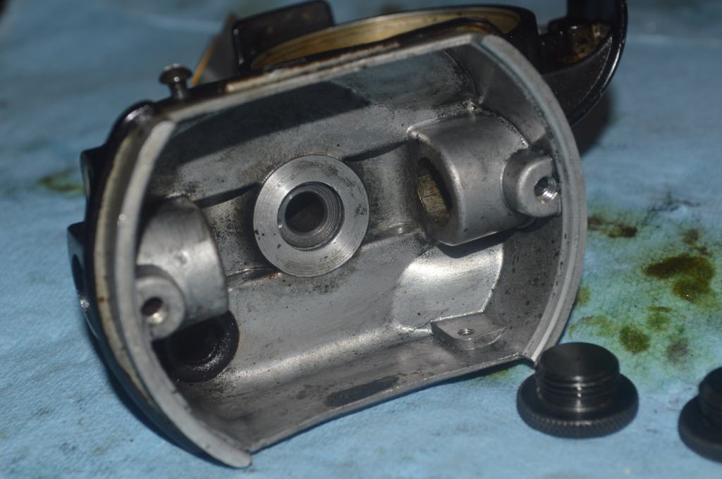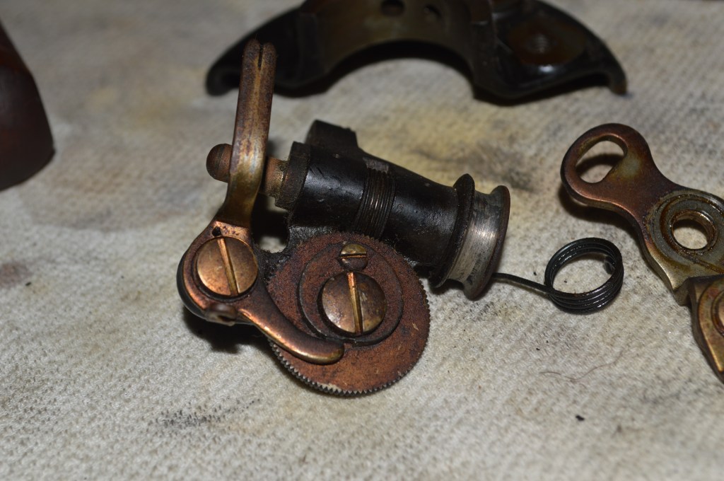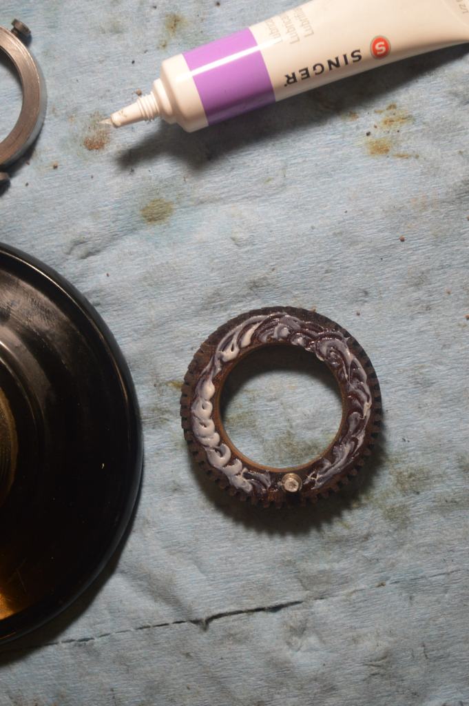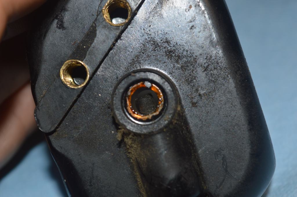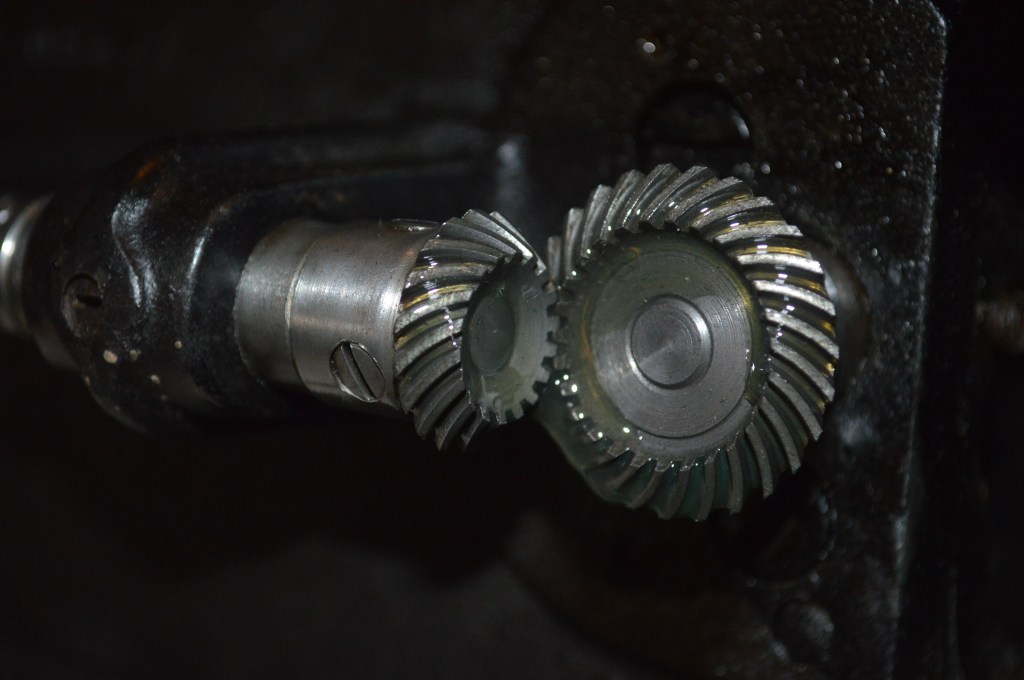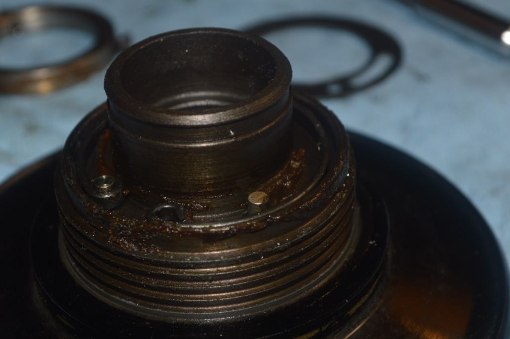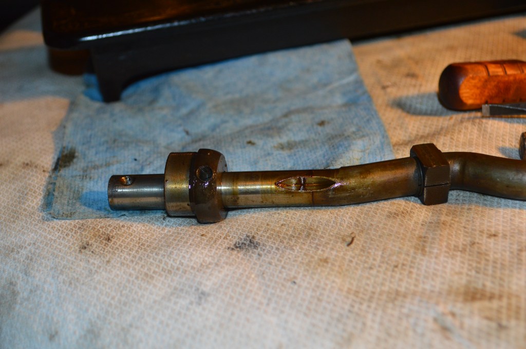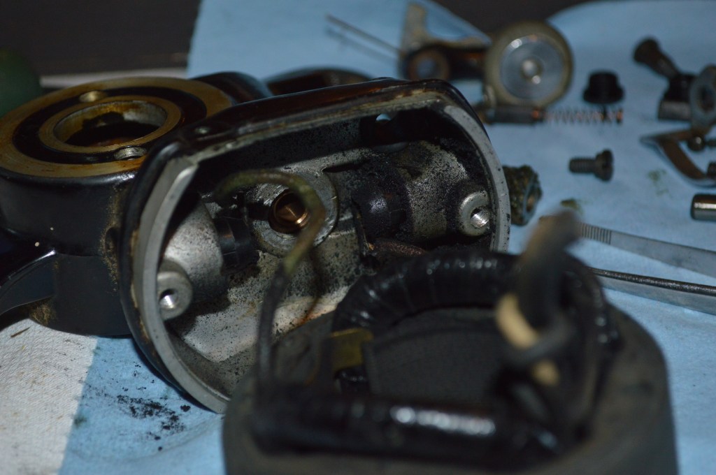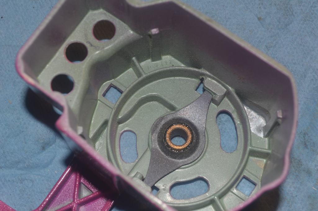 The plan included the disassembly of the top shaft and stitch length fork… The following picture convinced me not to attept this.