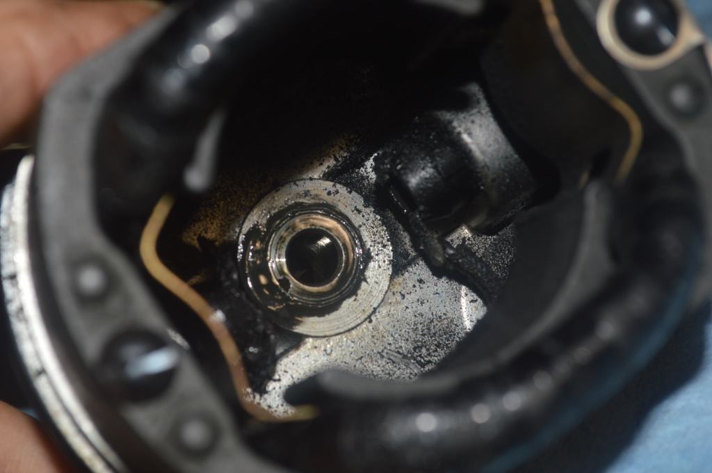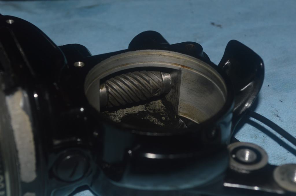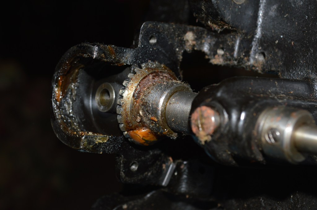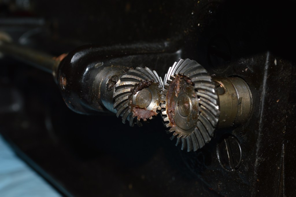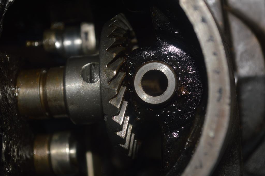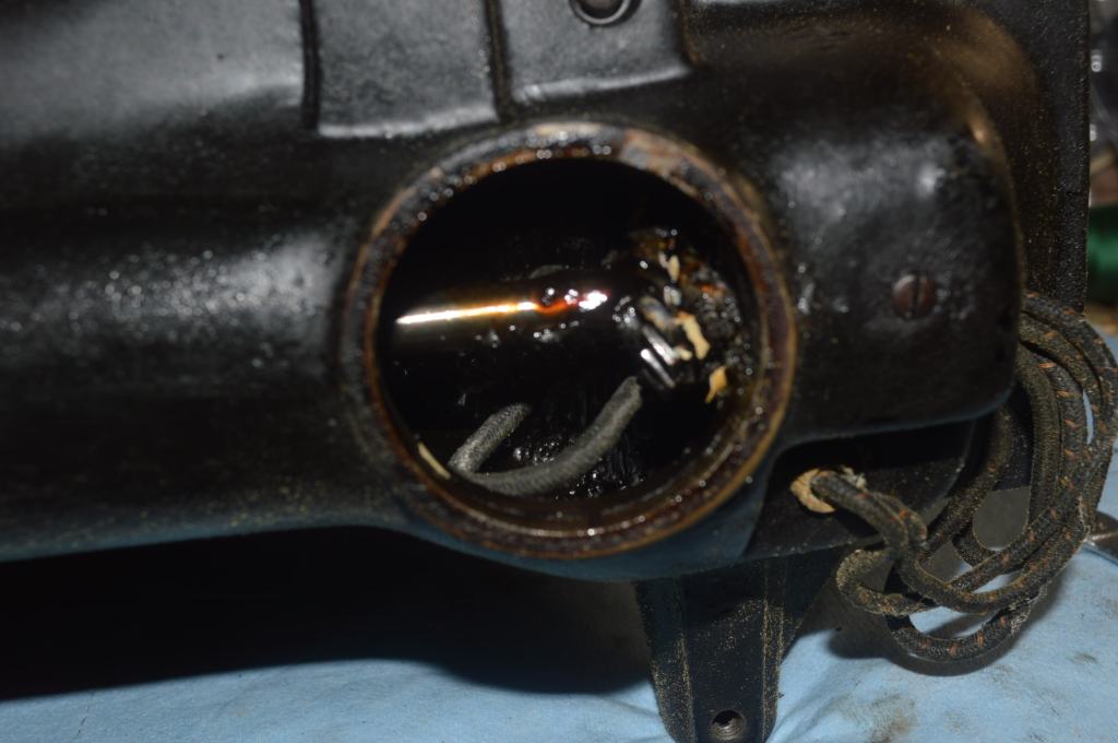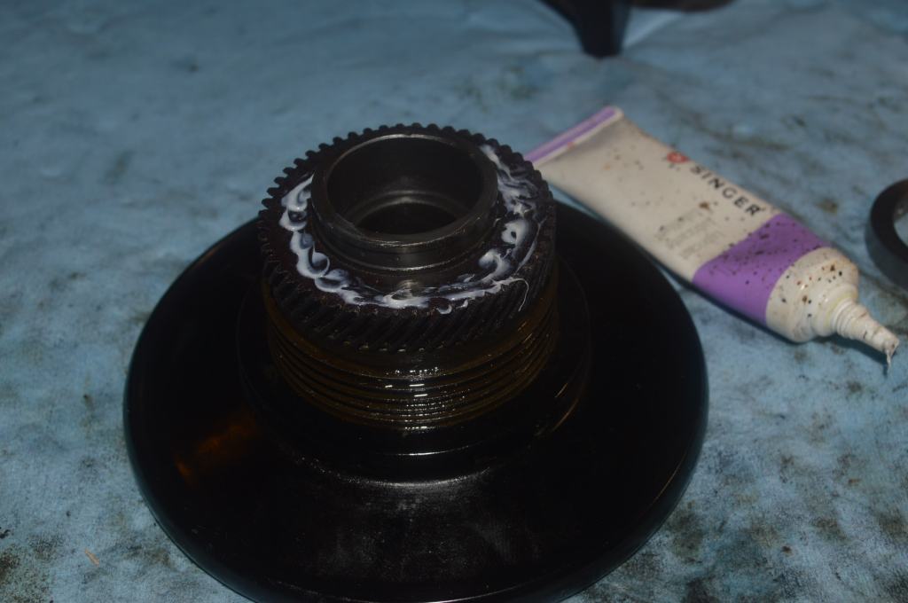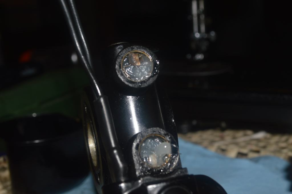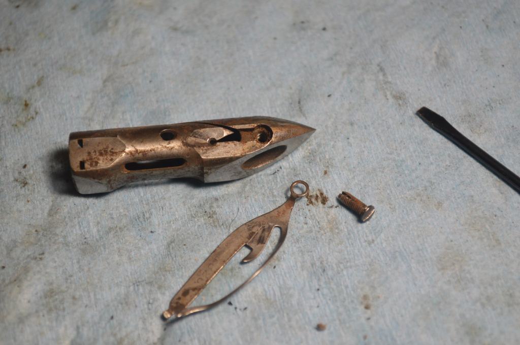 The plan included the disassembly of the top shaft and stitch length fork… The following picture convinced me not to attept this.