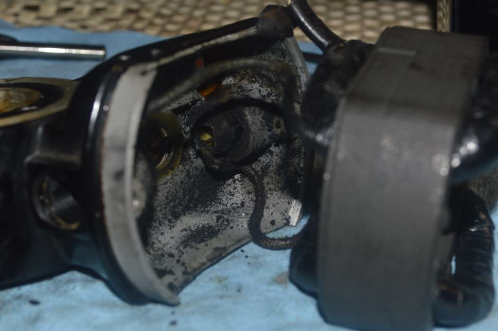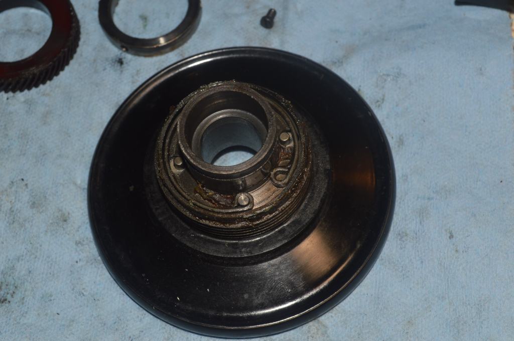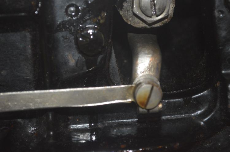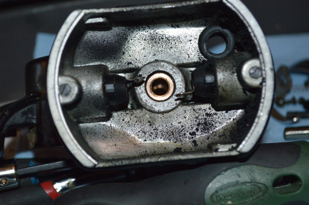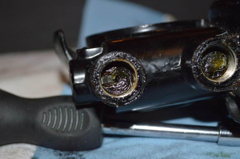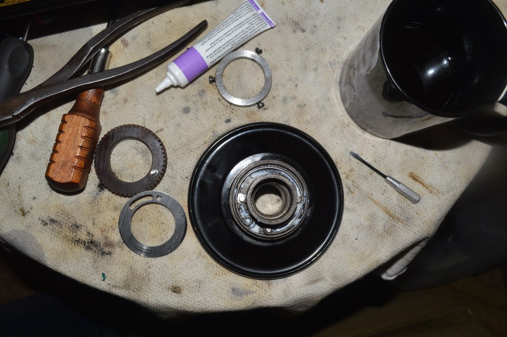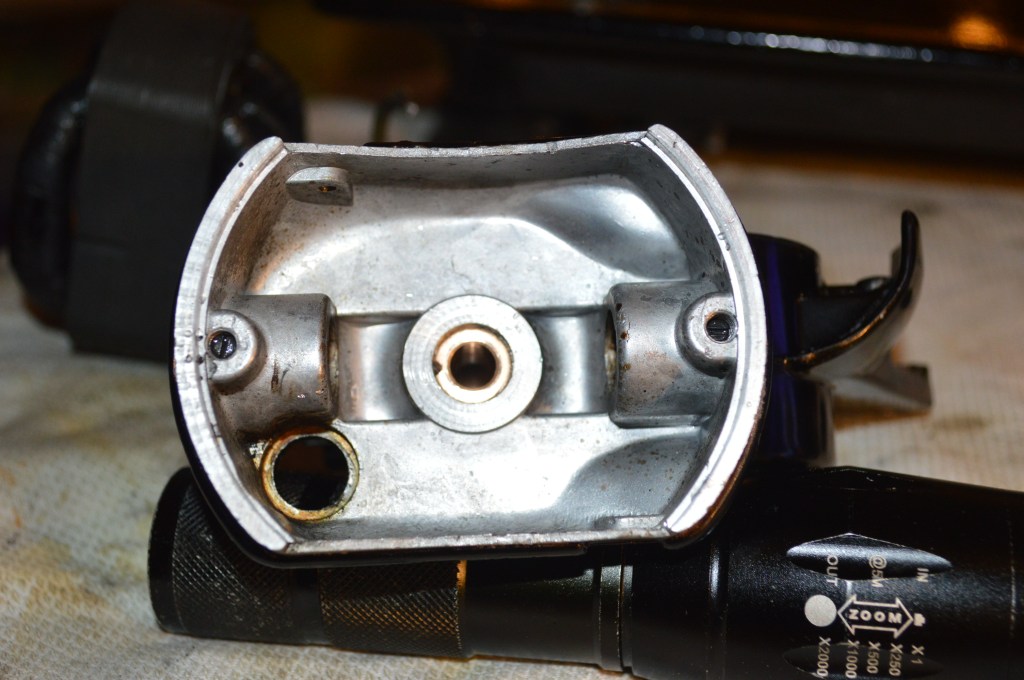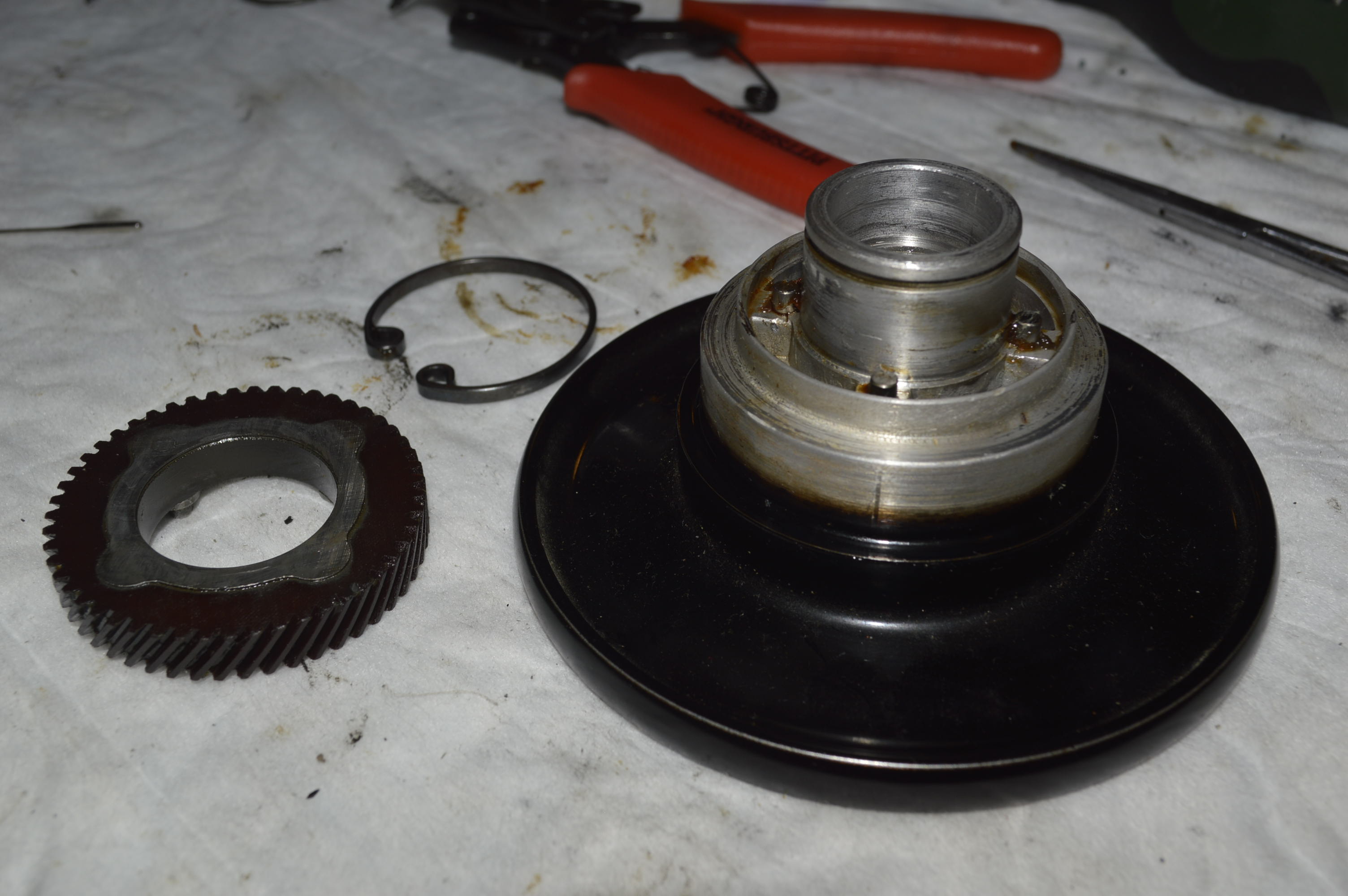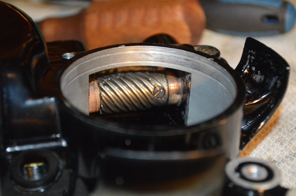 The plan included the disassembly of the top shaft and stitch length fork… The following picture convinced me not to attept this.