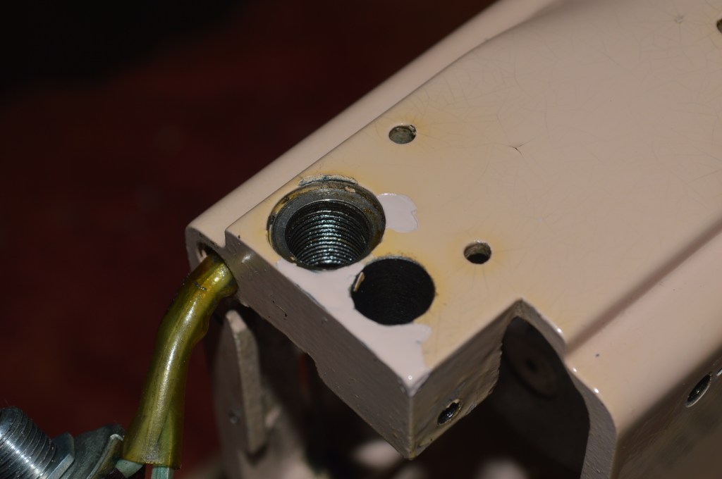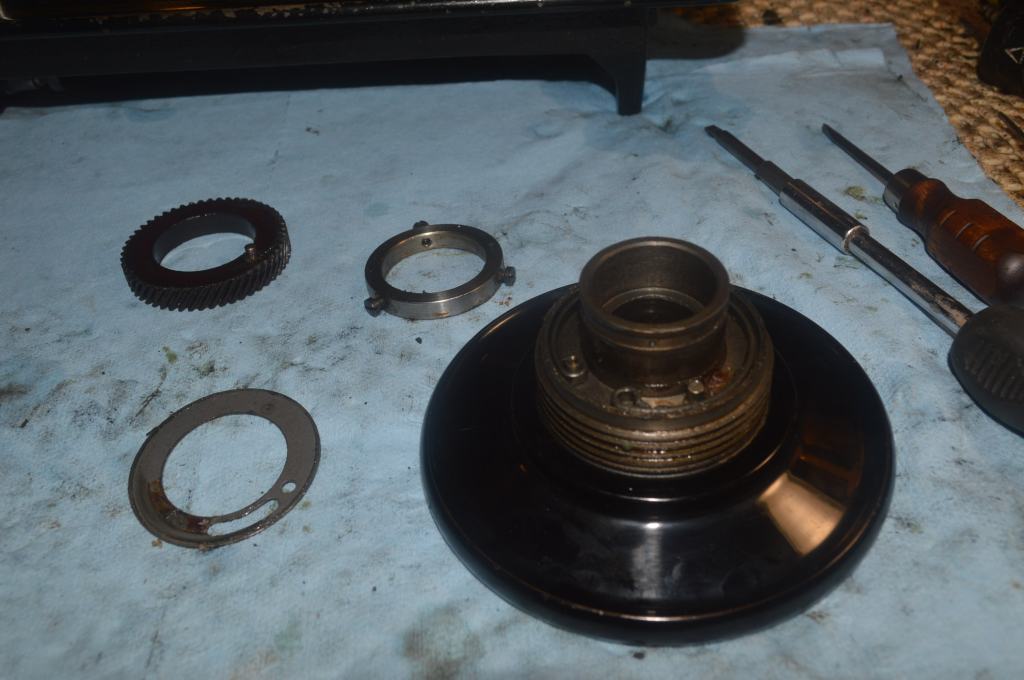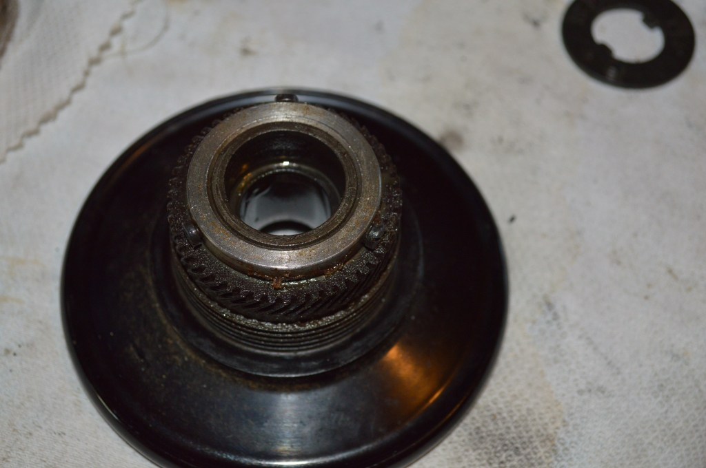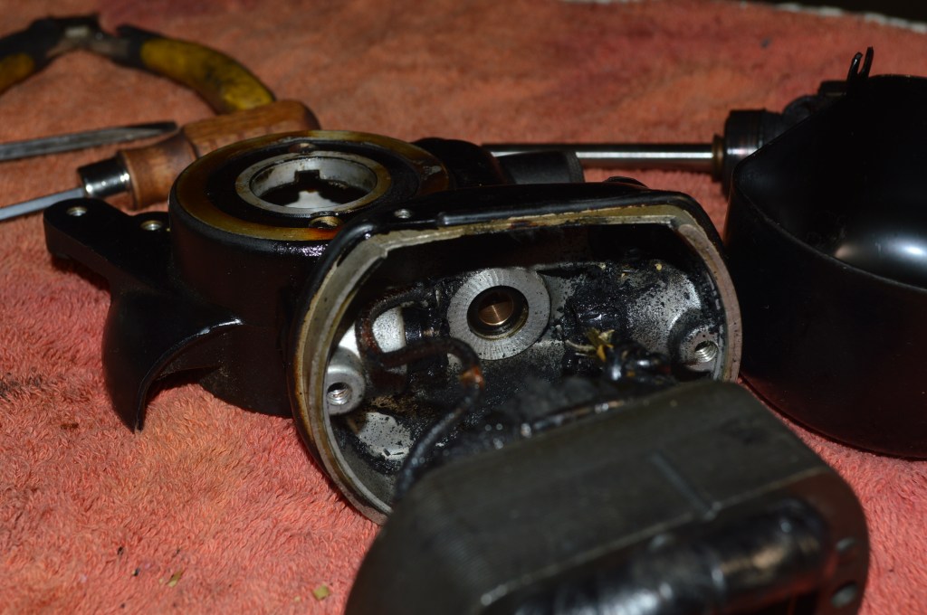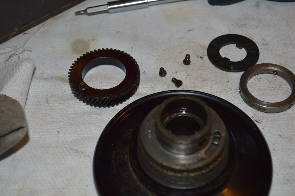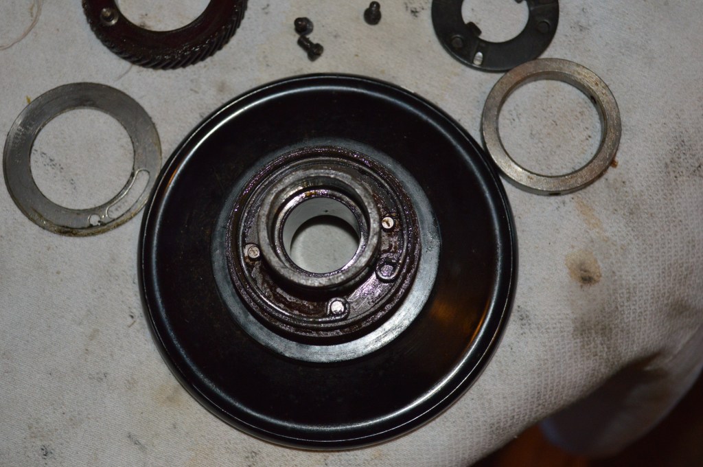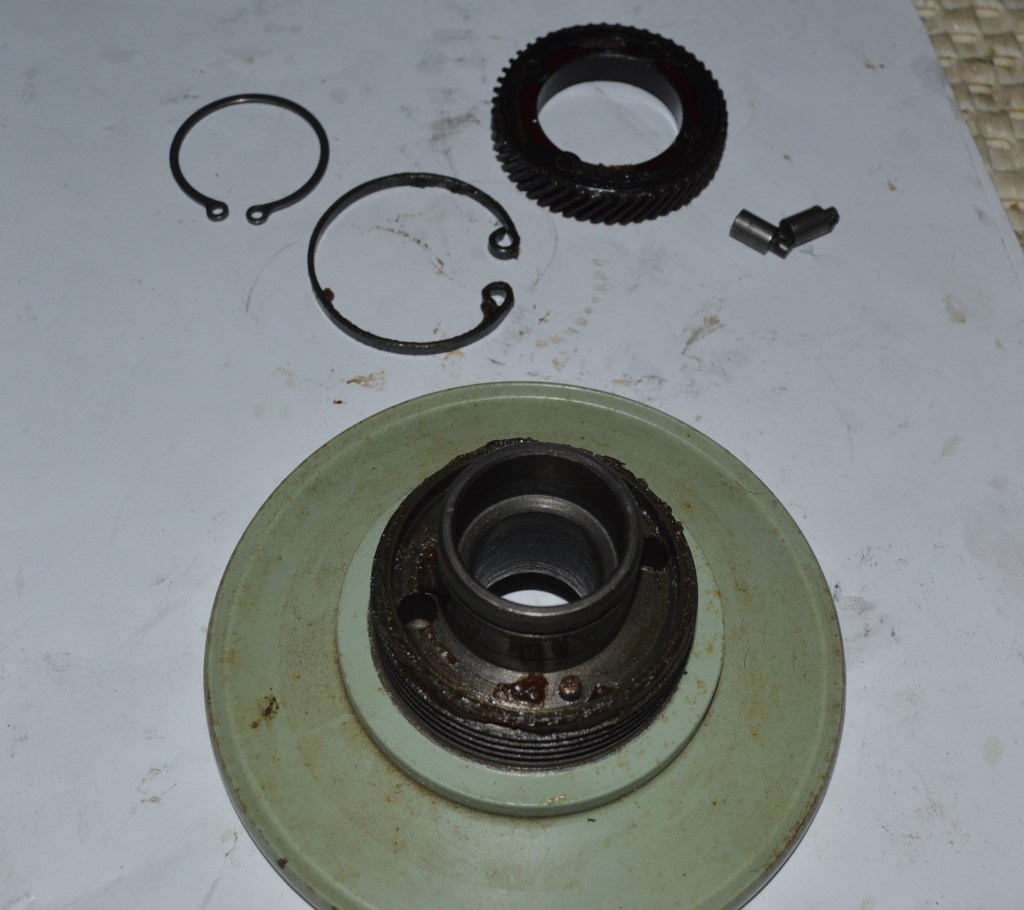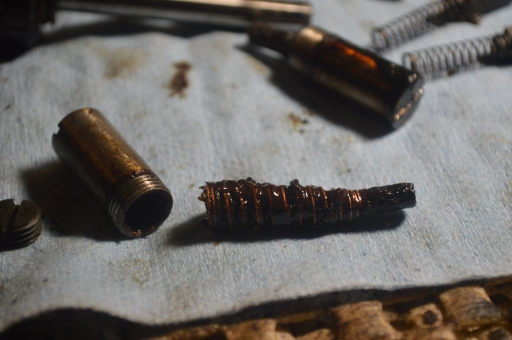 The plan included the disassembly of the top shaft and stitch length fork… The following picture convinced me not to attept this.