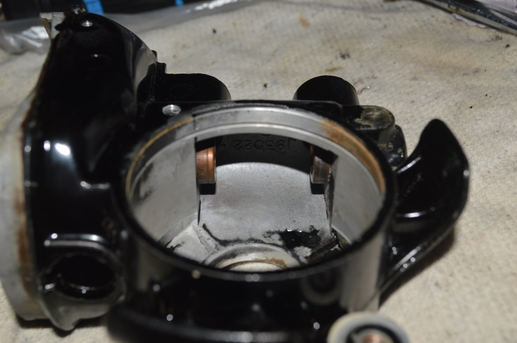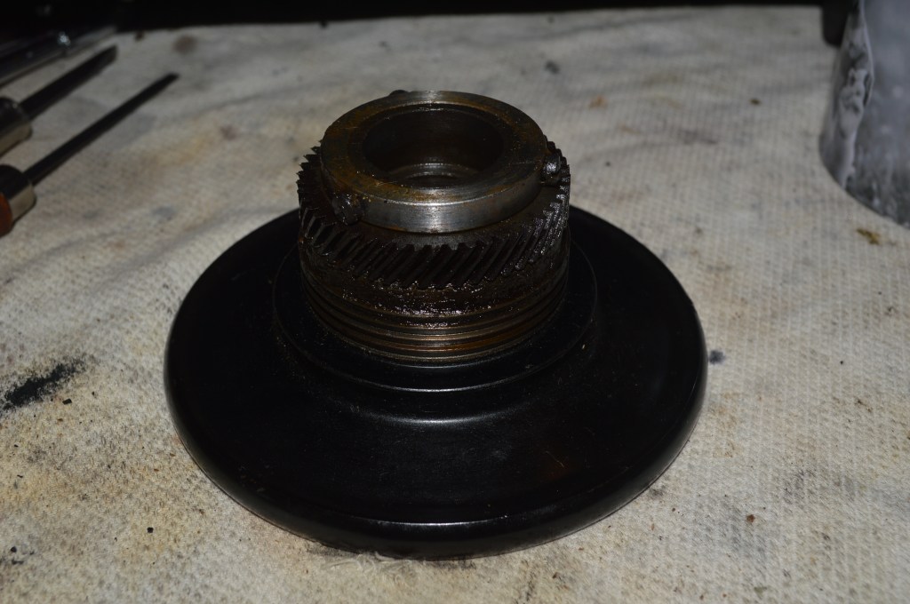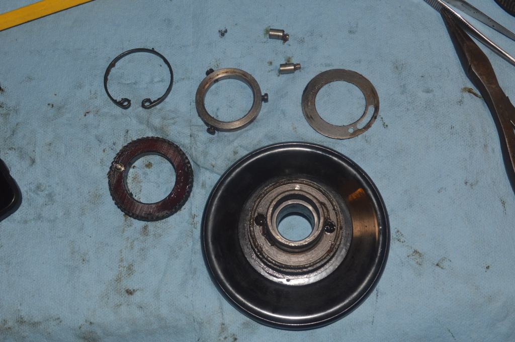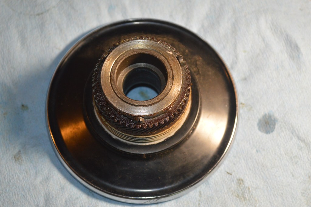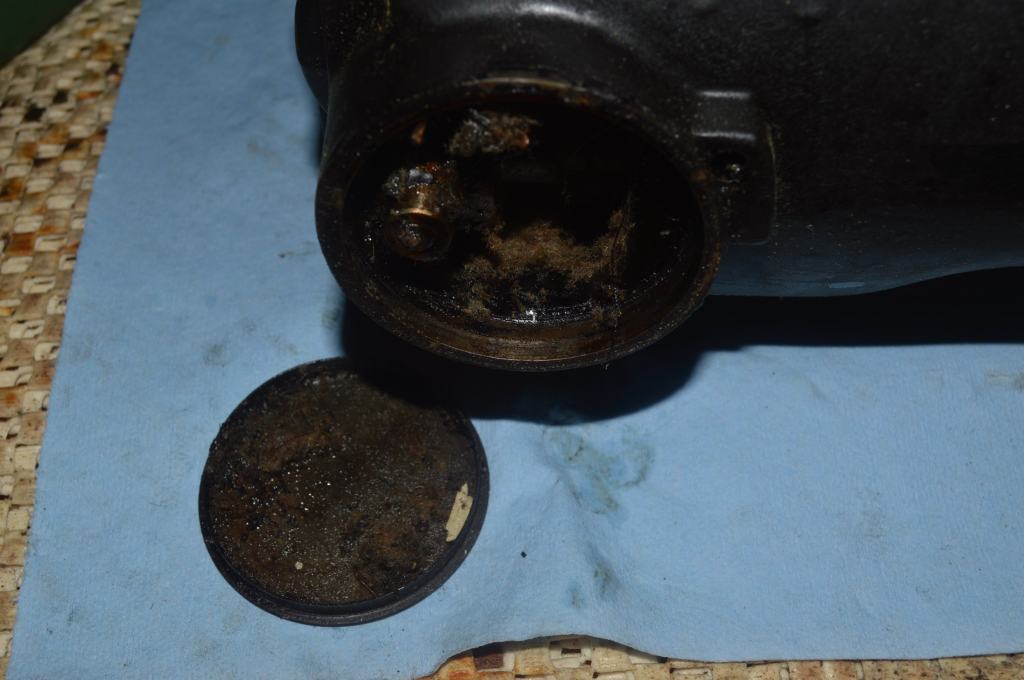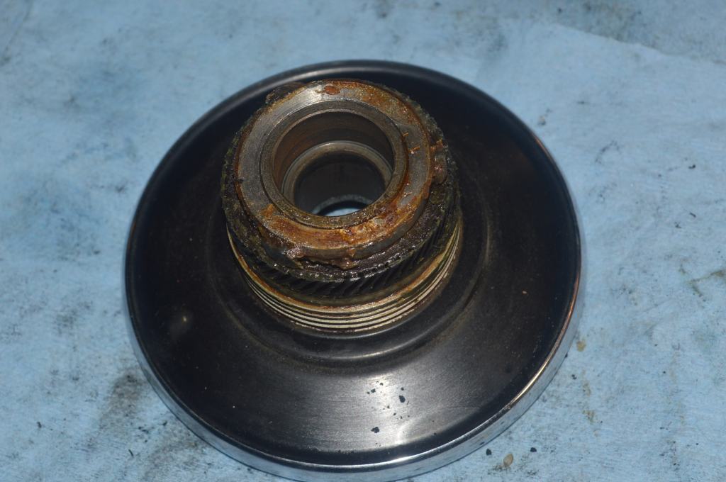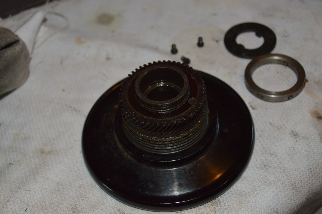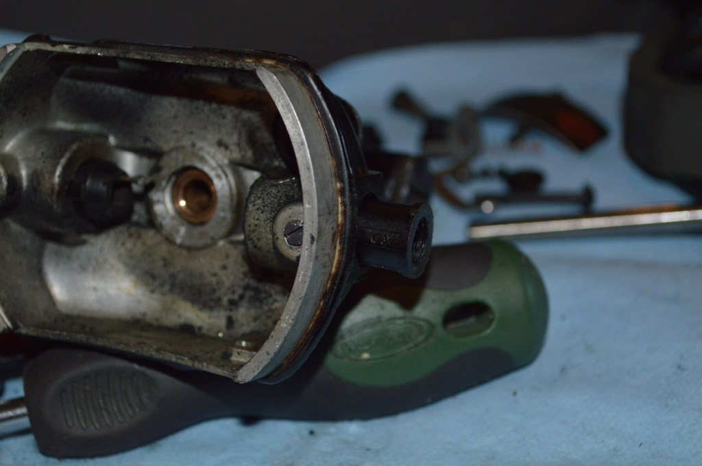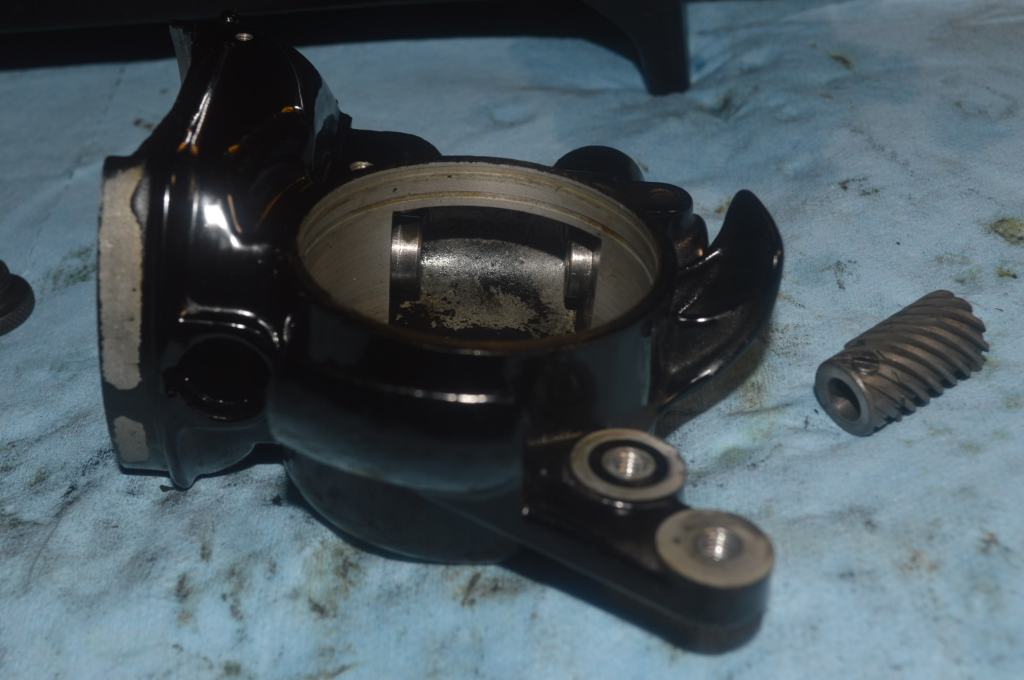 The plan included the disassembly of the top shaft and stitch length fork… The following picture convinced me not to attept this.