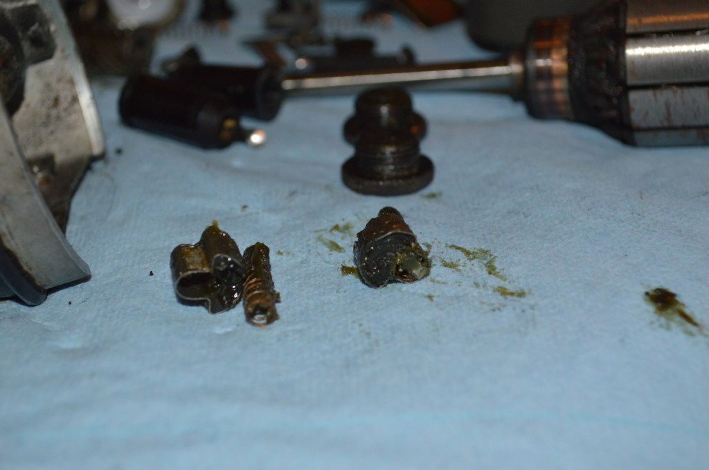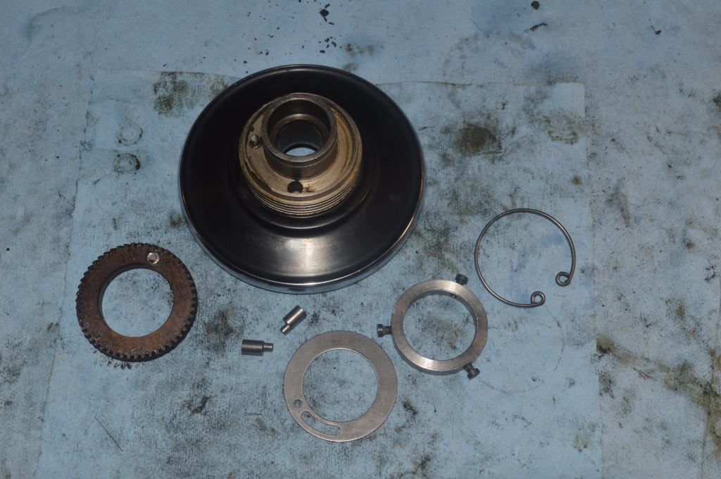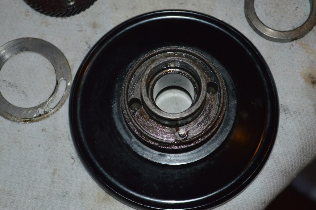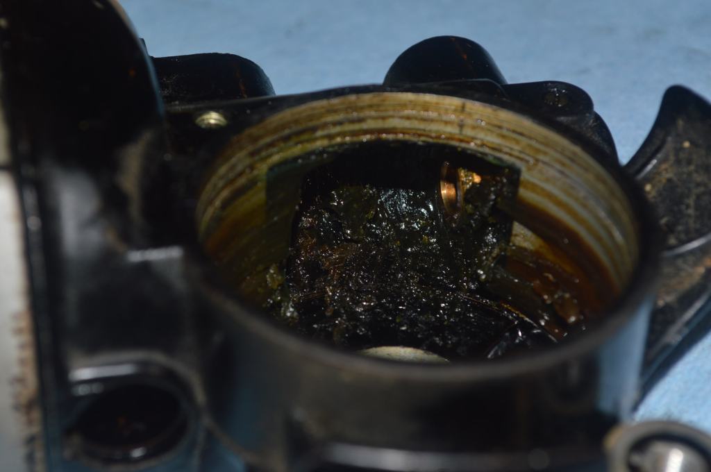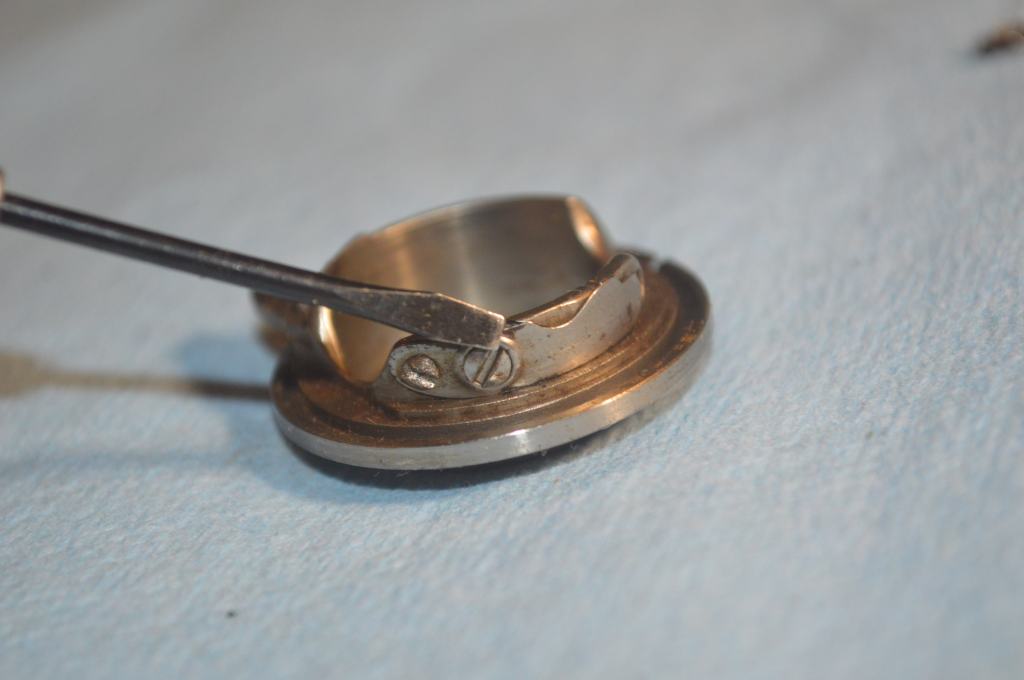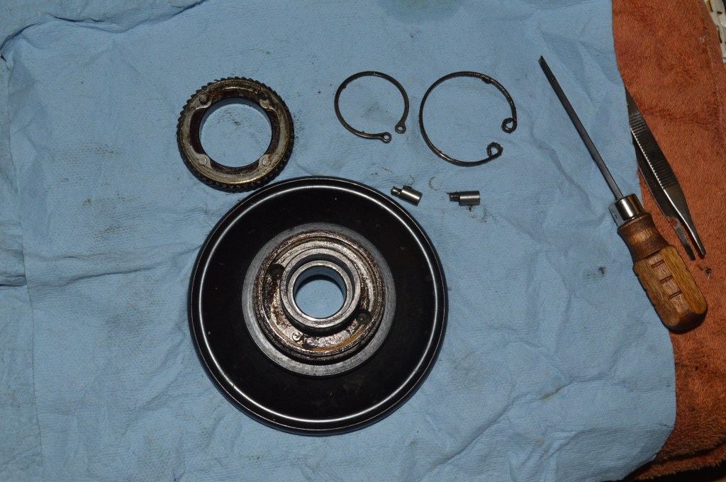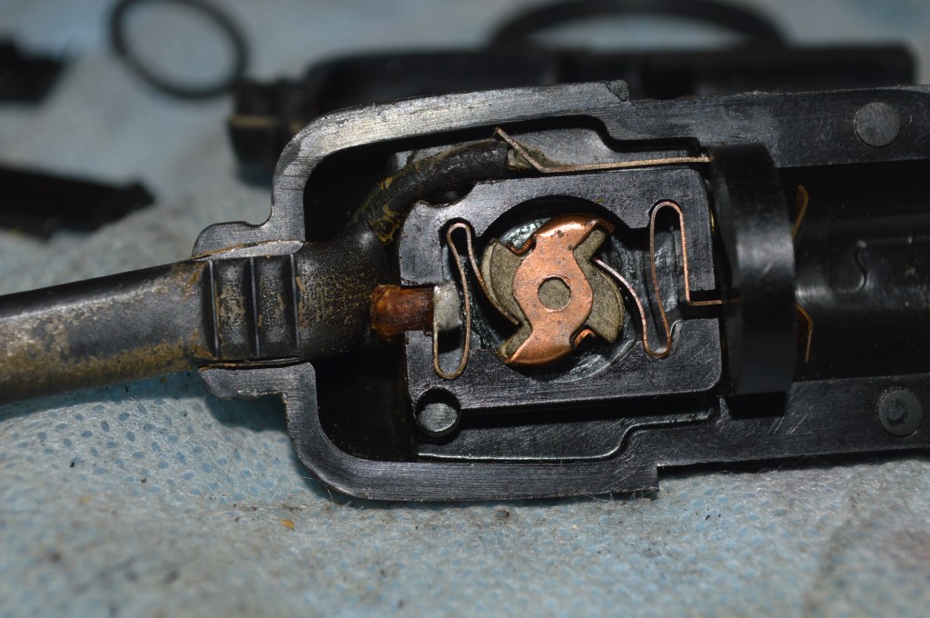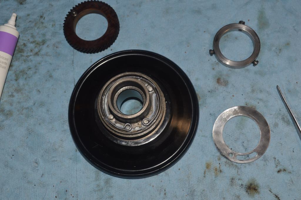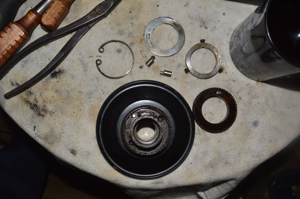The plan included the disassembly of the top shaft and stitch length fork… The following picture convinced me not to attept this.