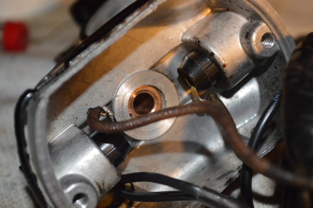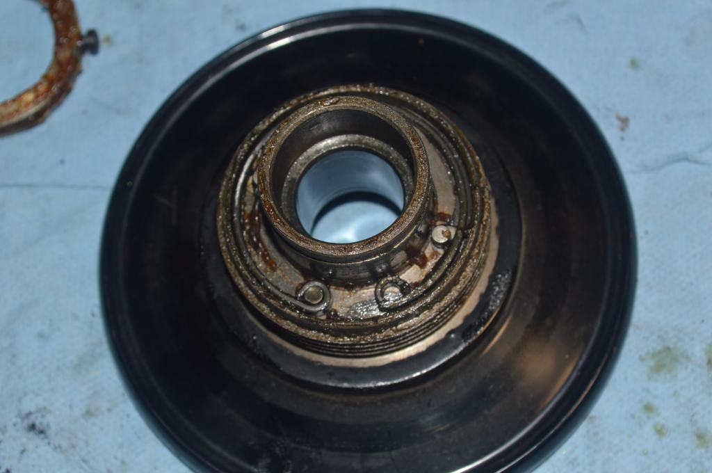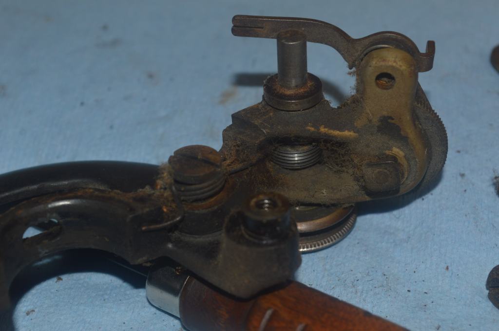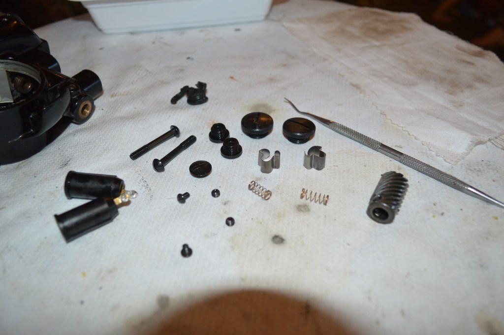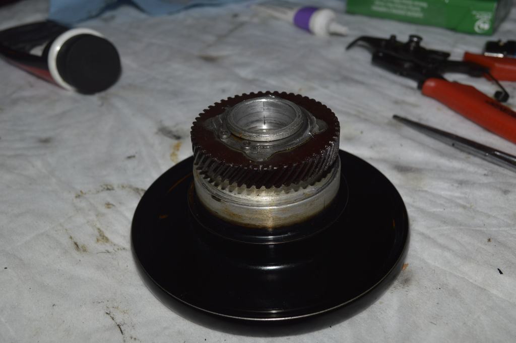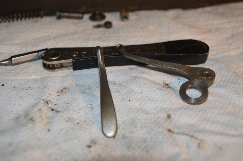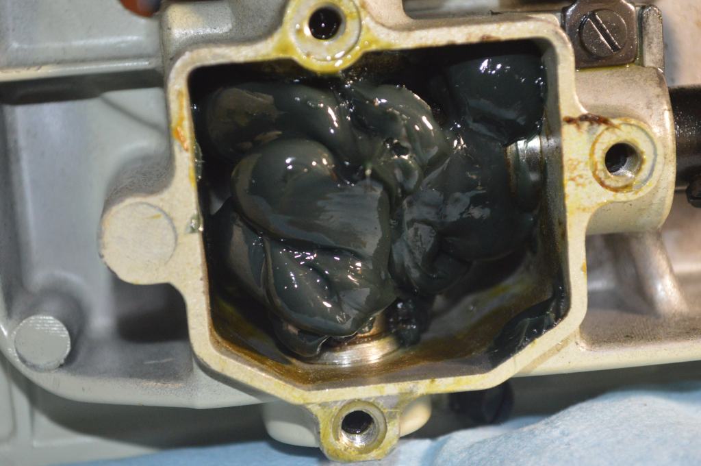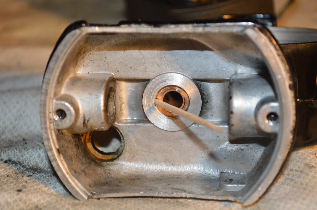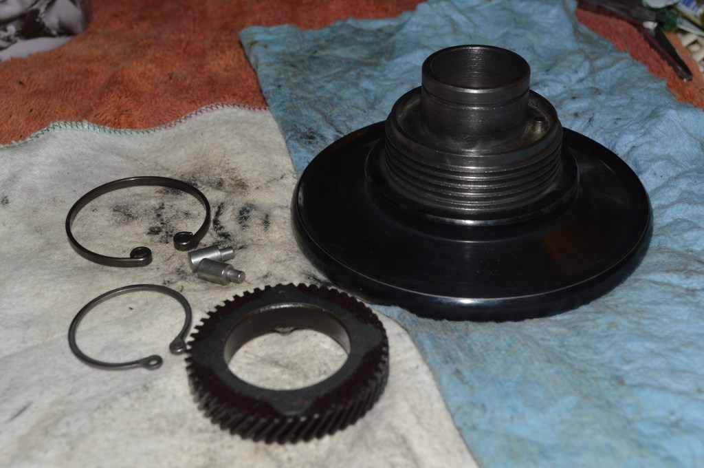 The plan included the disassembly of the top shaft and stitch length fork… The following picture convinced me not to attept this.