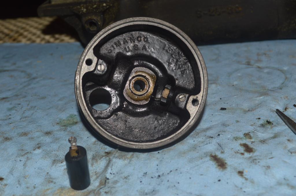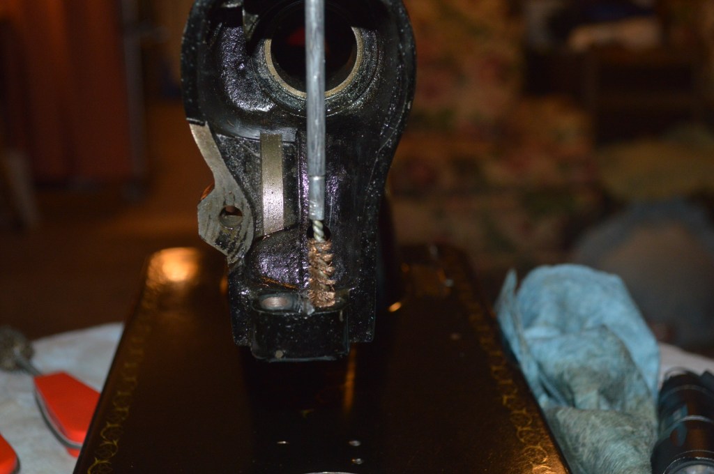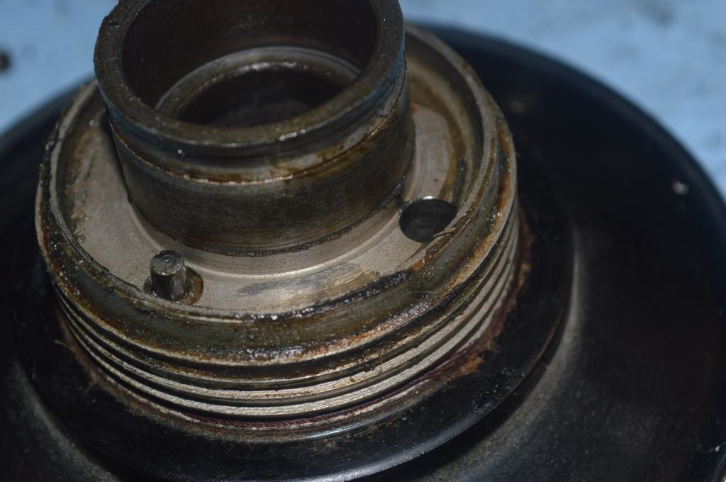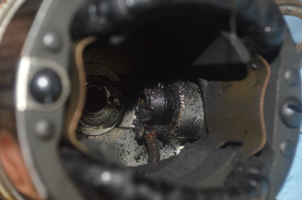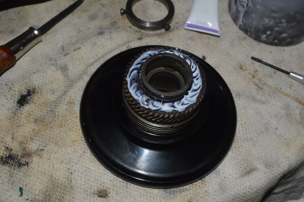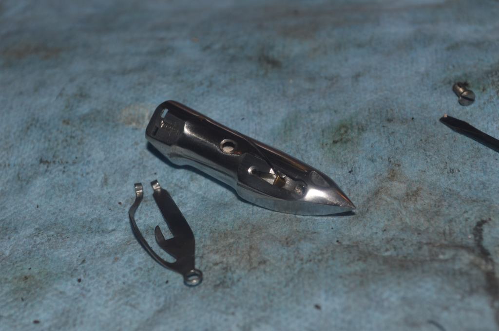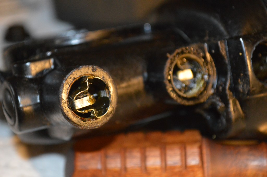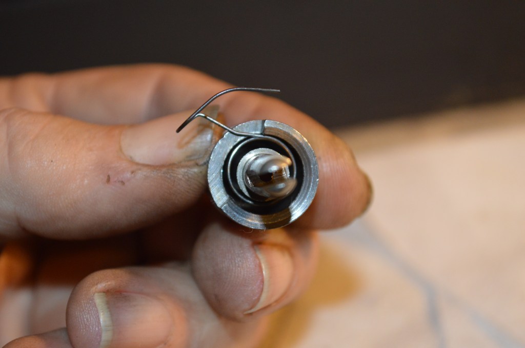 The plan included the disassembly of the top shaft and stitch length fork… The following picture convinced me not to attept this.