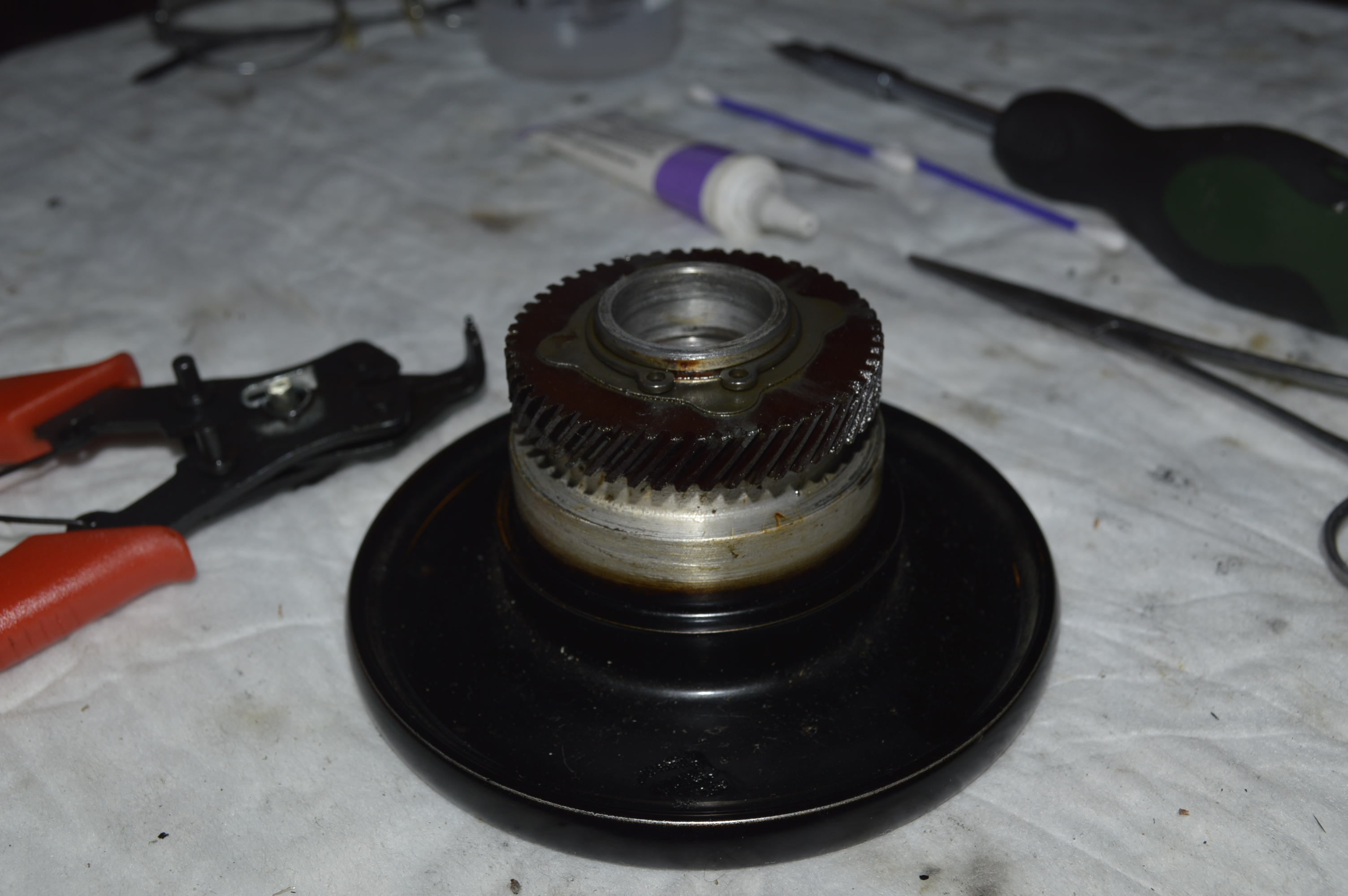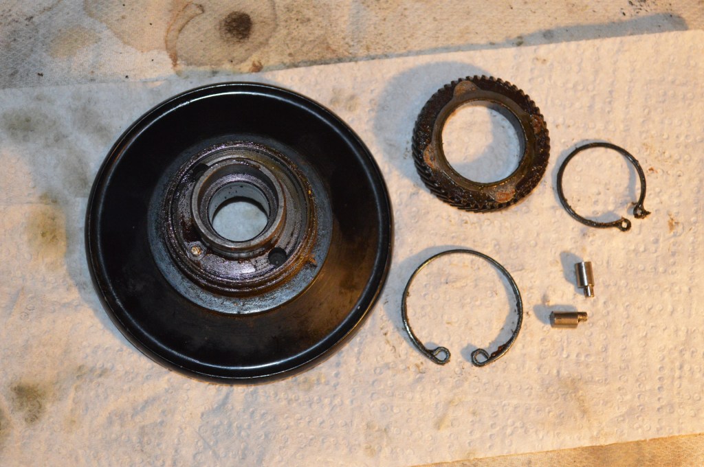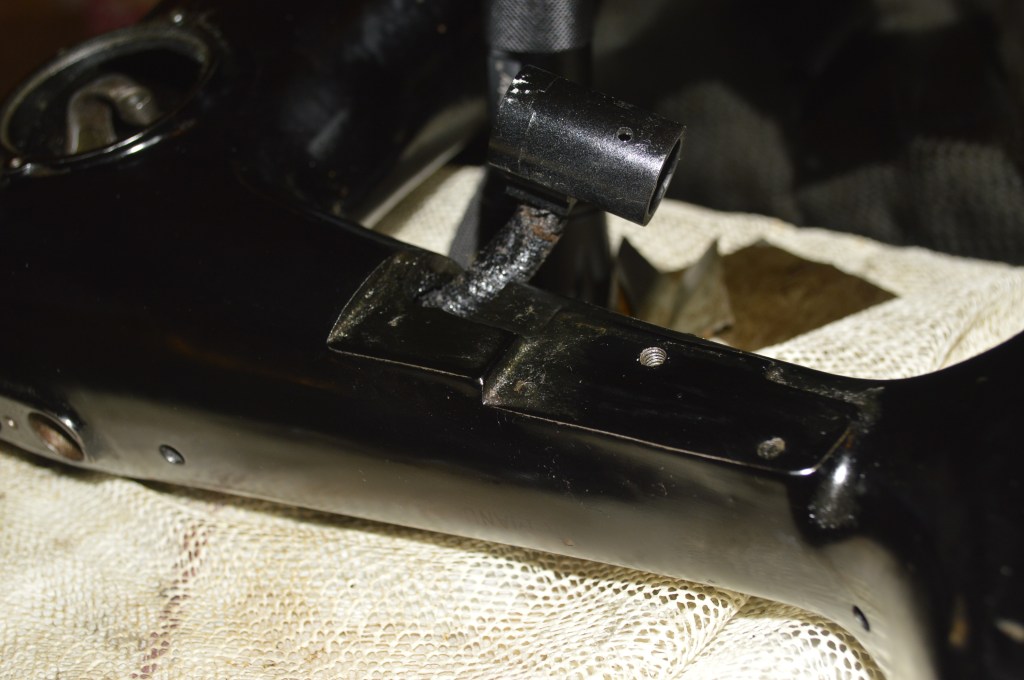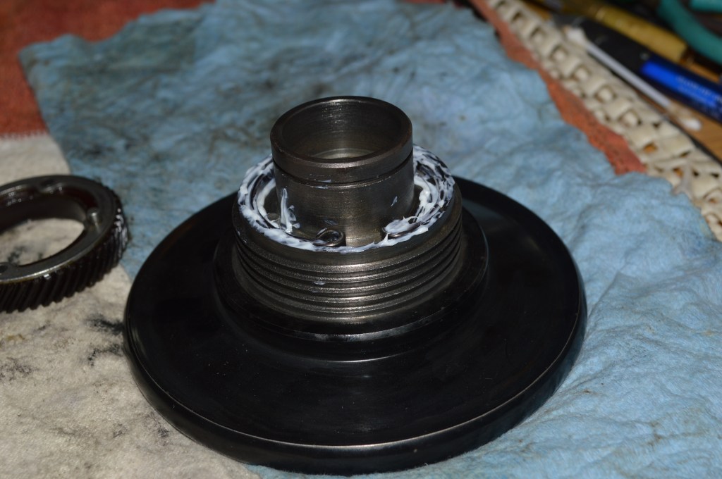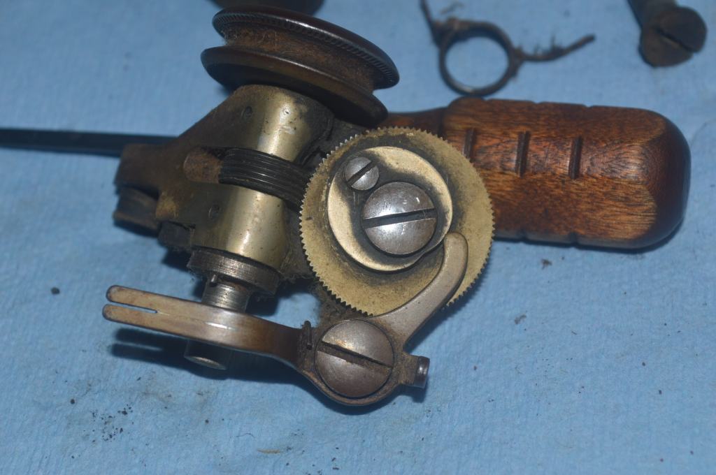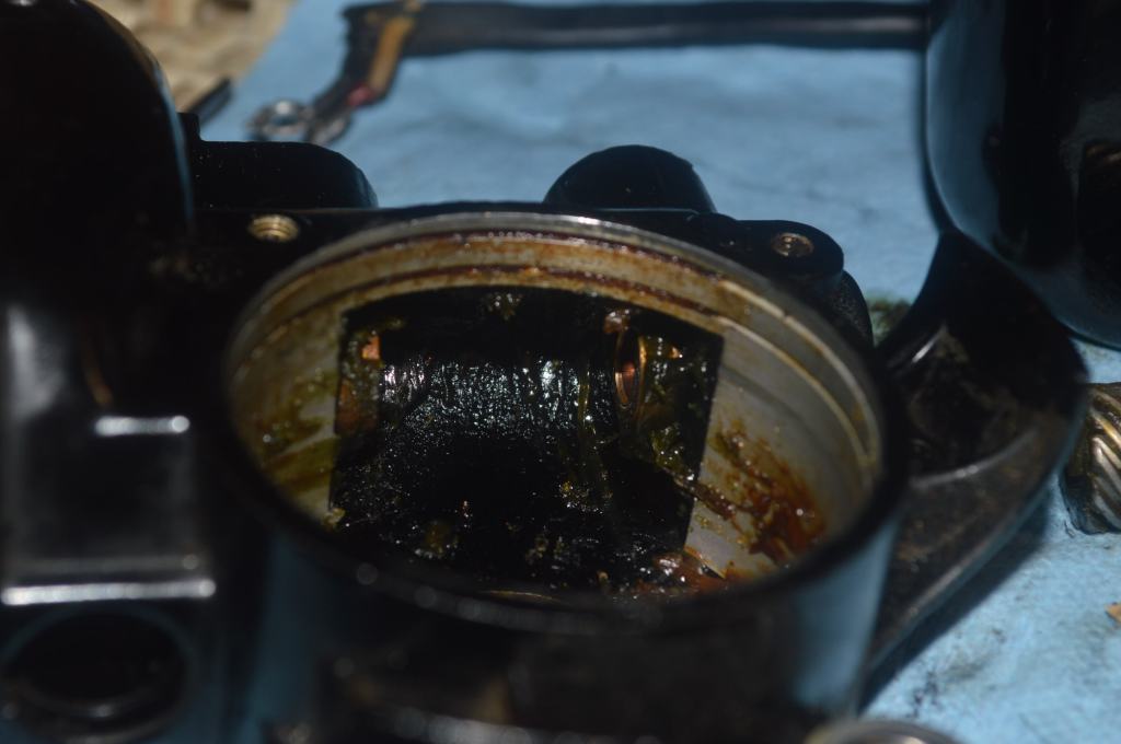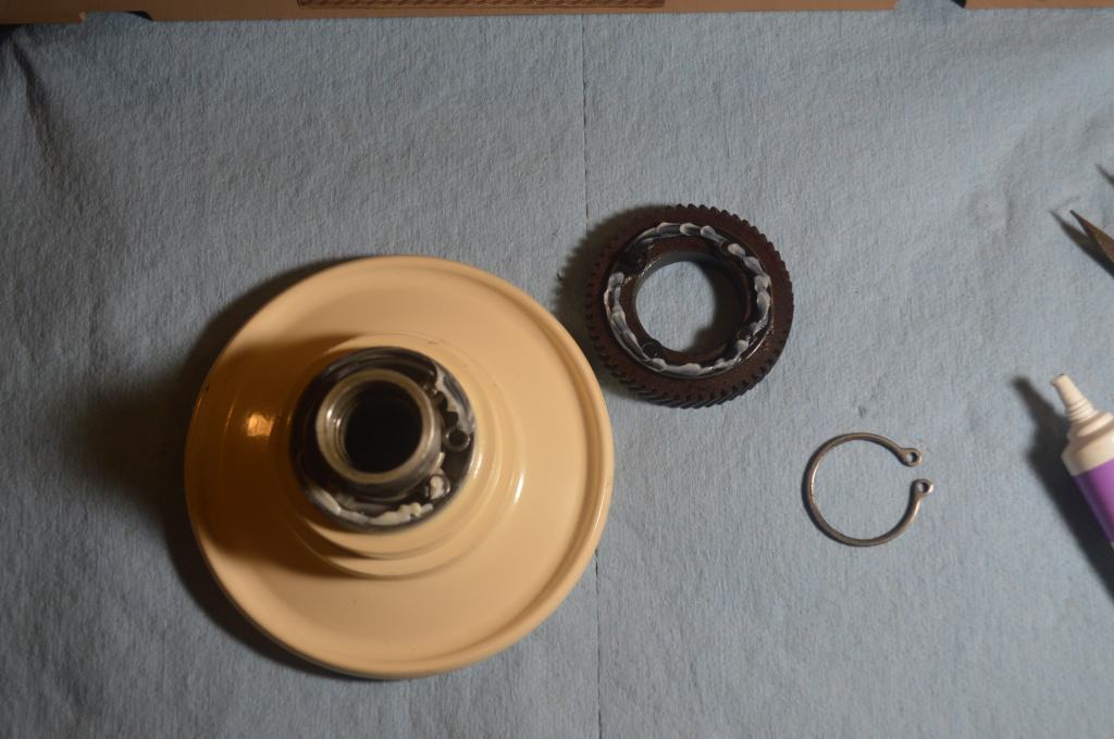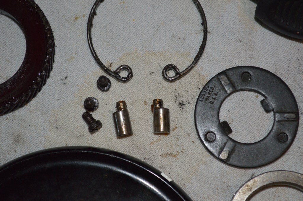 The plan included the disassembly of the top shaft and stitch length fork… The following picture convinced me not to attept this.