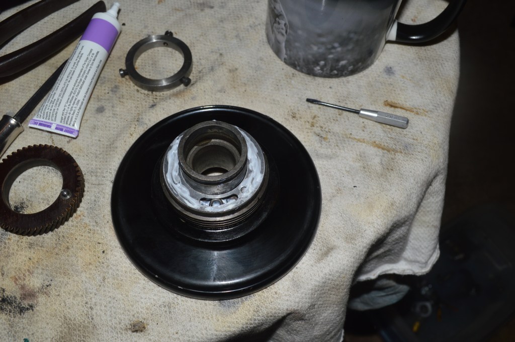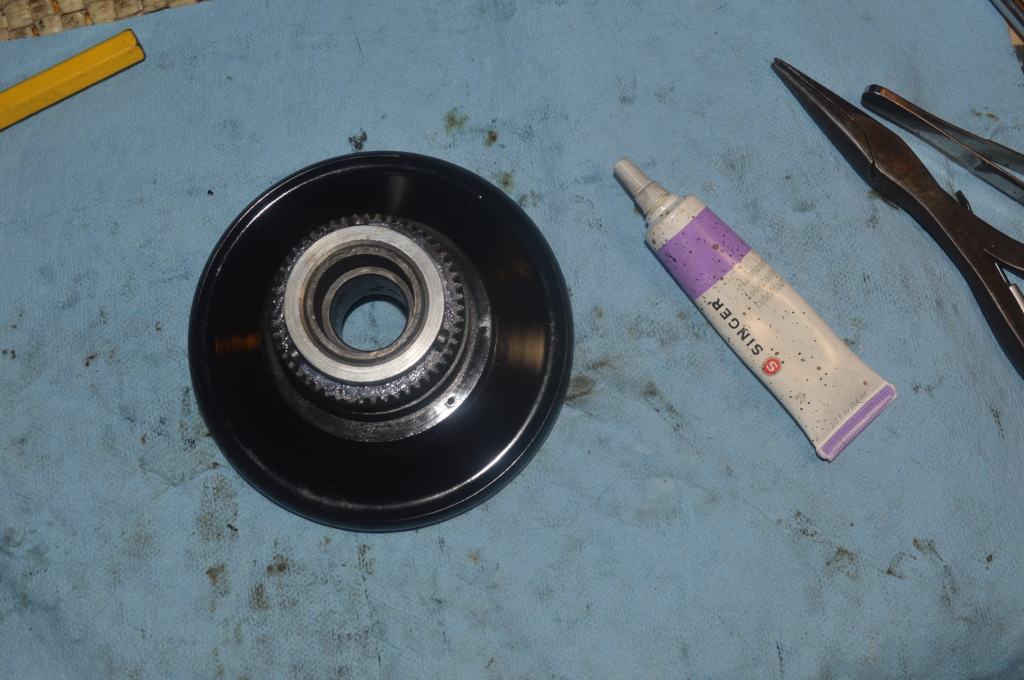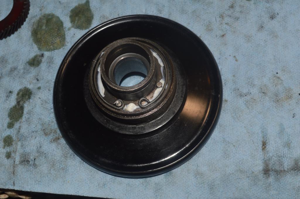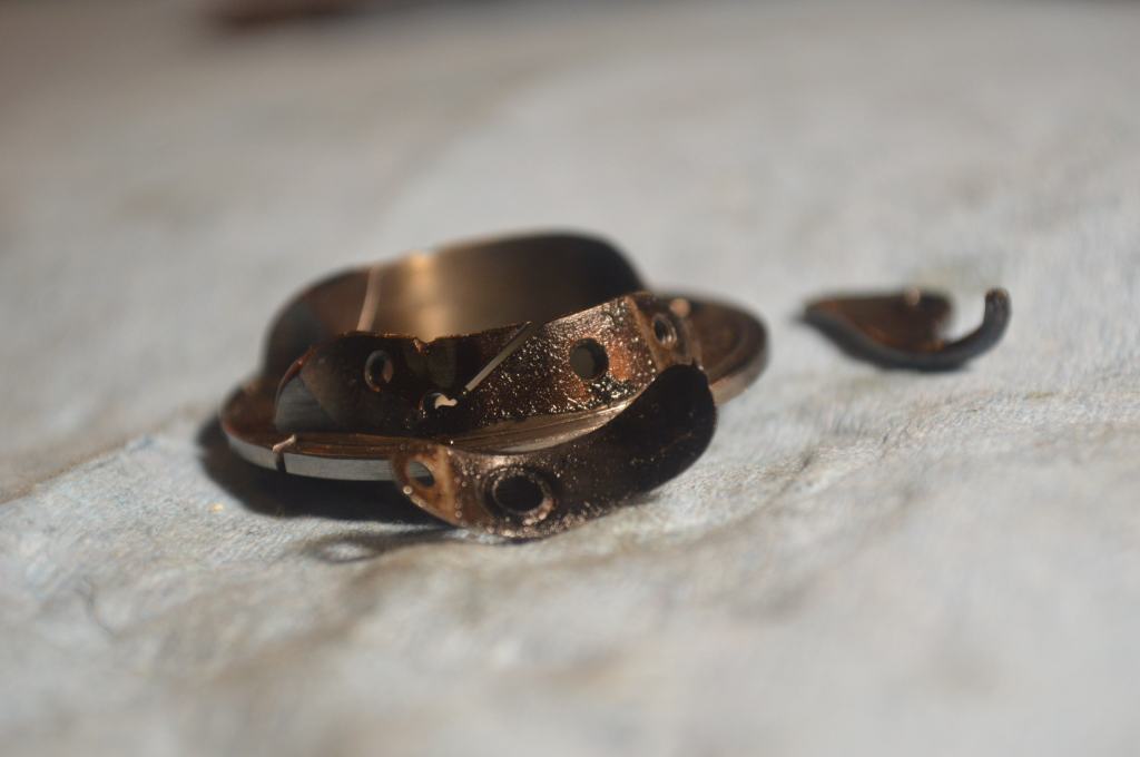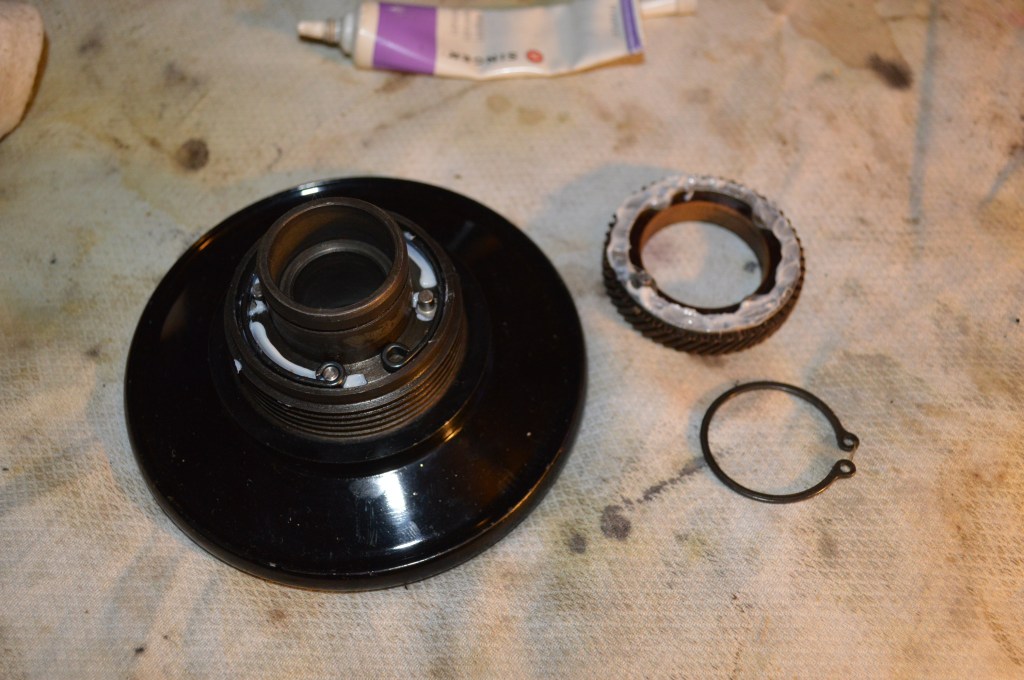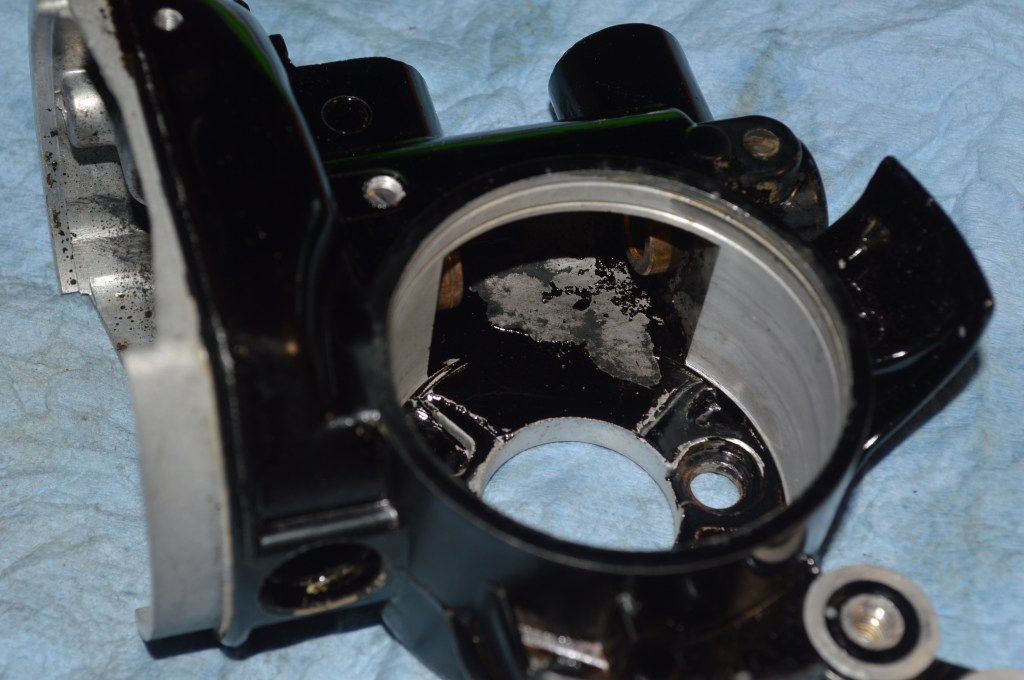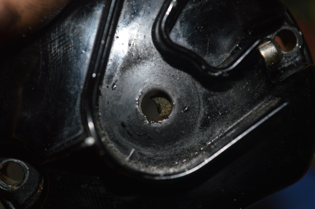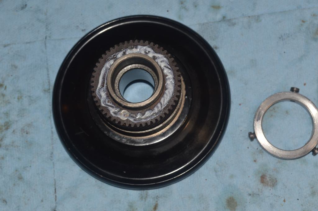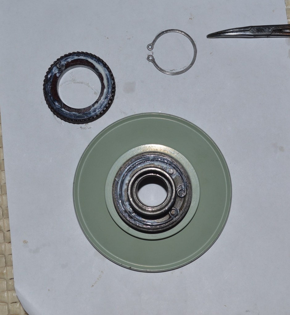 The plan included the disassembly of the top shaft and stitch length fork… The following picture convinced me not to attept this.
