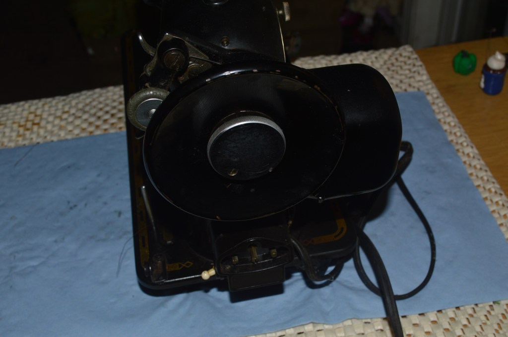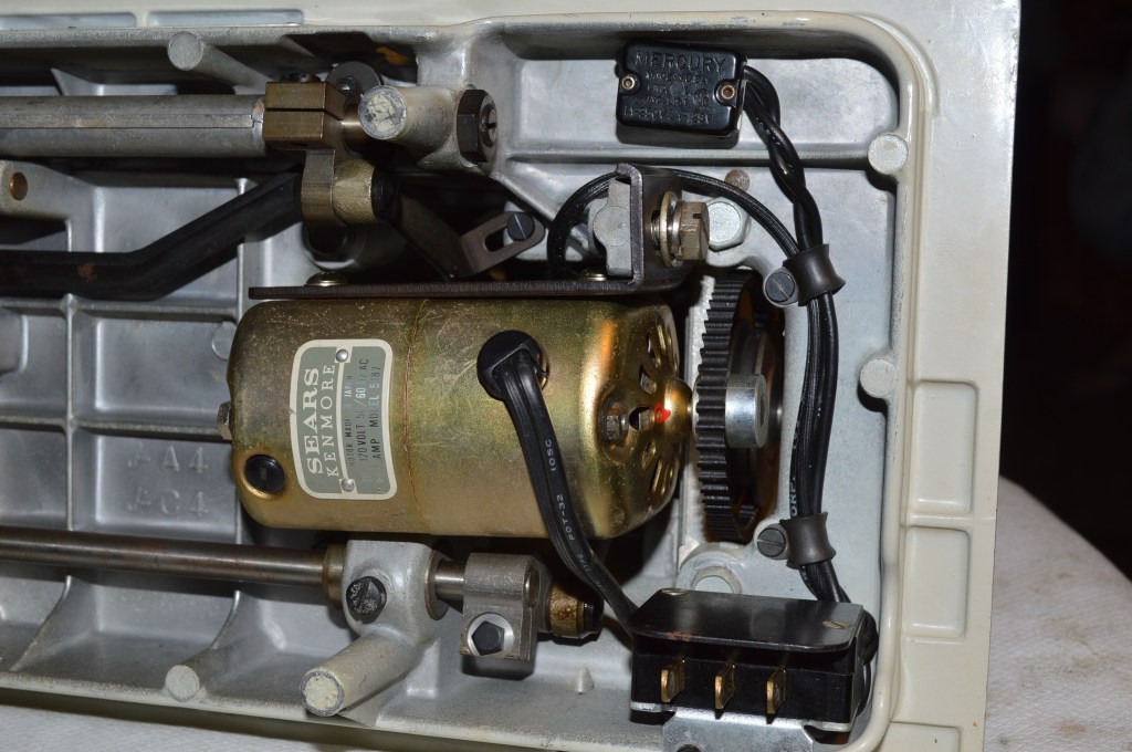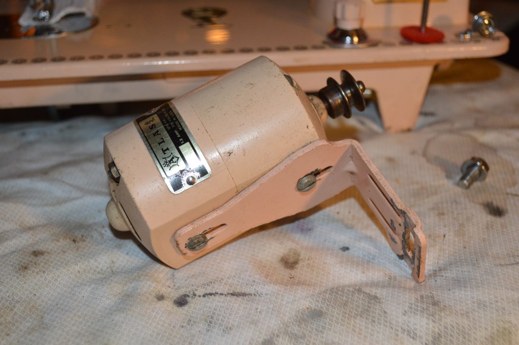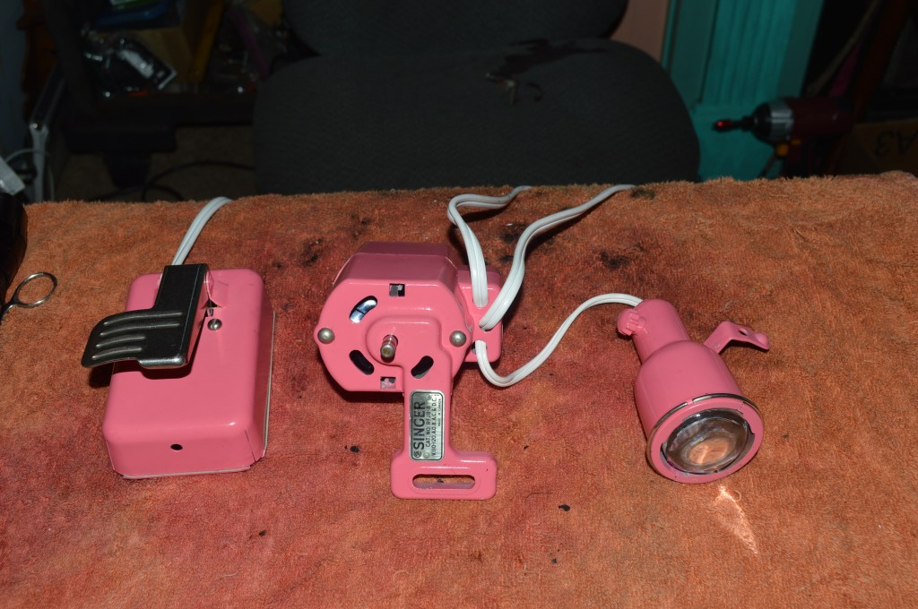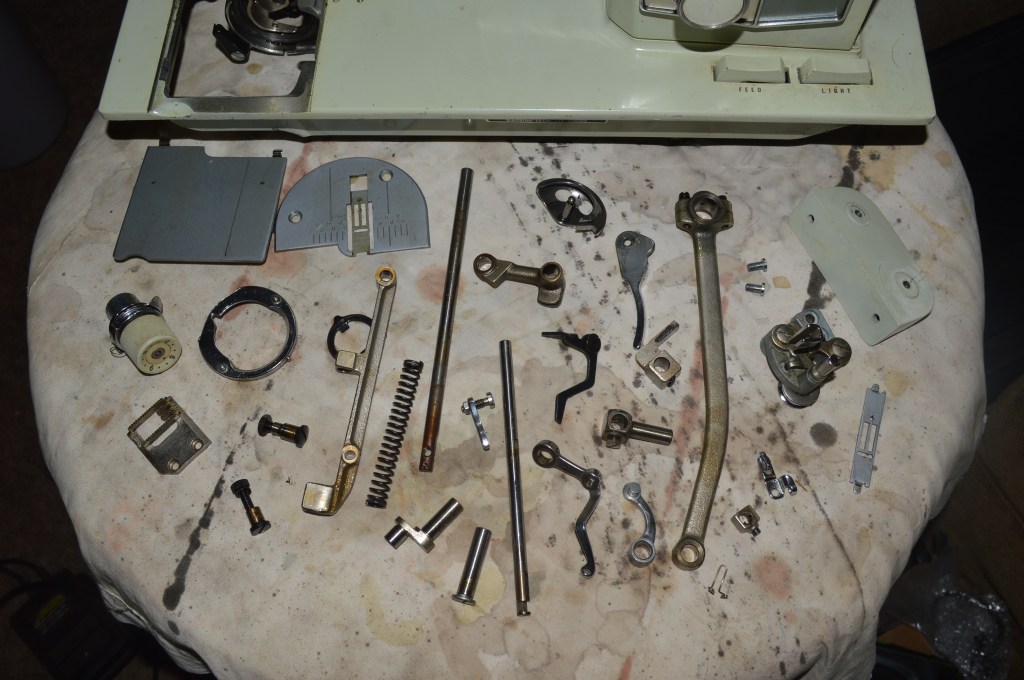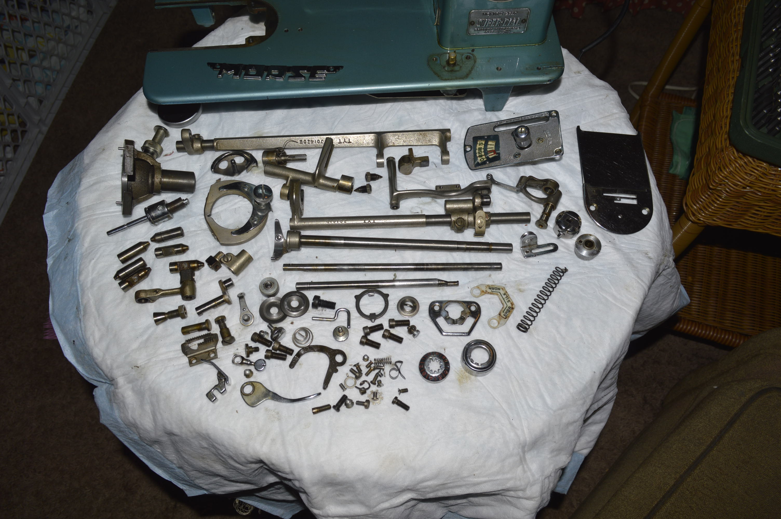 As usual, the machine will be disassembled to the greatest extent possible. Each piece will be cleaned and wire brushed to like new condition. The needle bar, presser foot bar, and the bottom bobbin hook shaft will be polished, and all of the chrome plated parts will be polished. The machine will be deep cleaned, and paint repairs will be made with custom mixed color matched paint. The motor will be disassembled, and for this machine, a replacement vintage foot controller will be provided and the main power wiring will be replaced. So, let me get started!