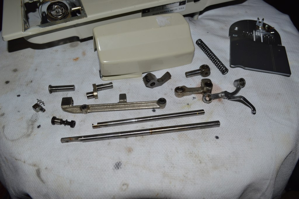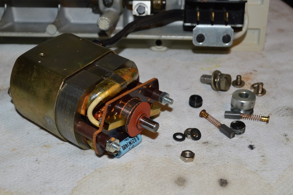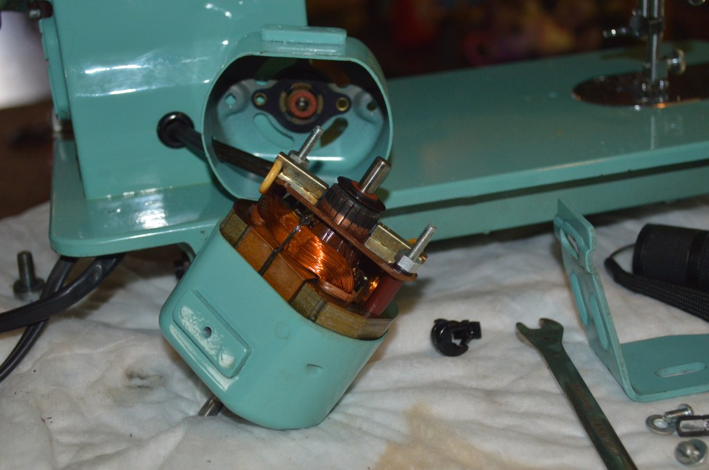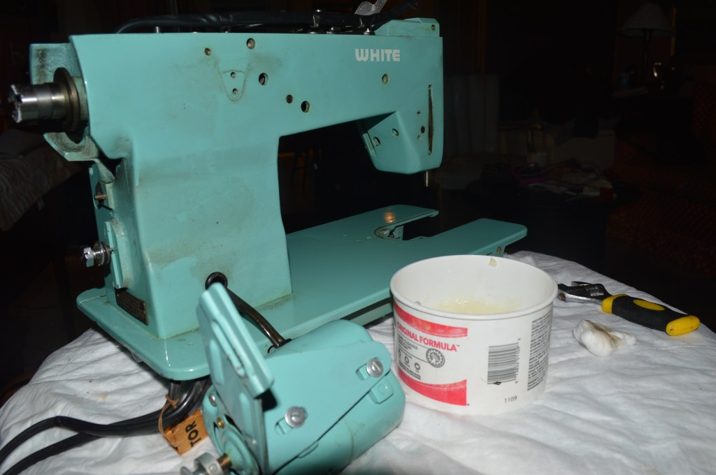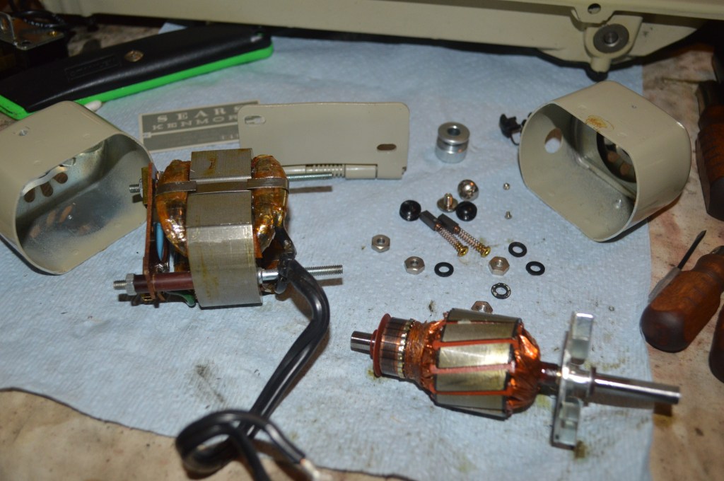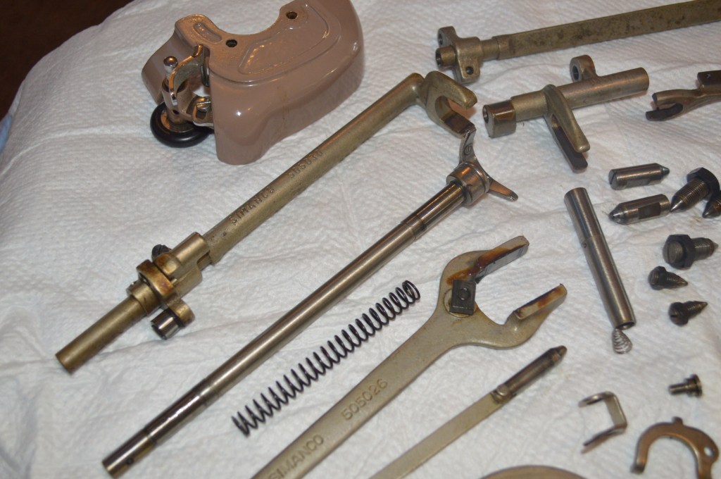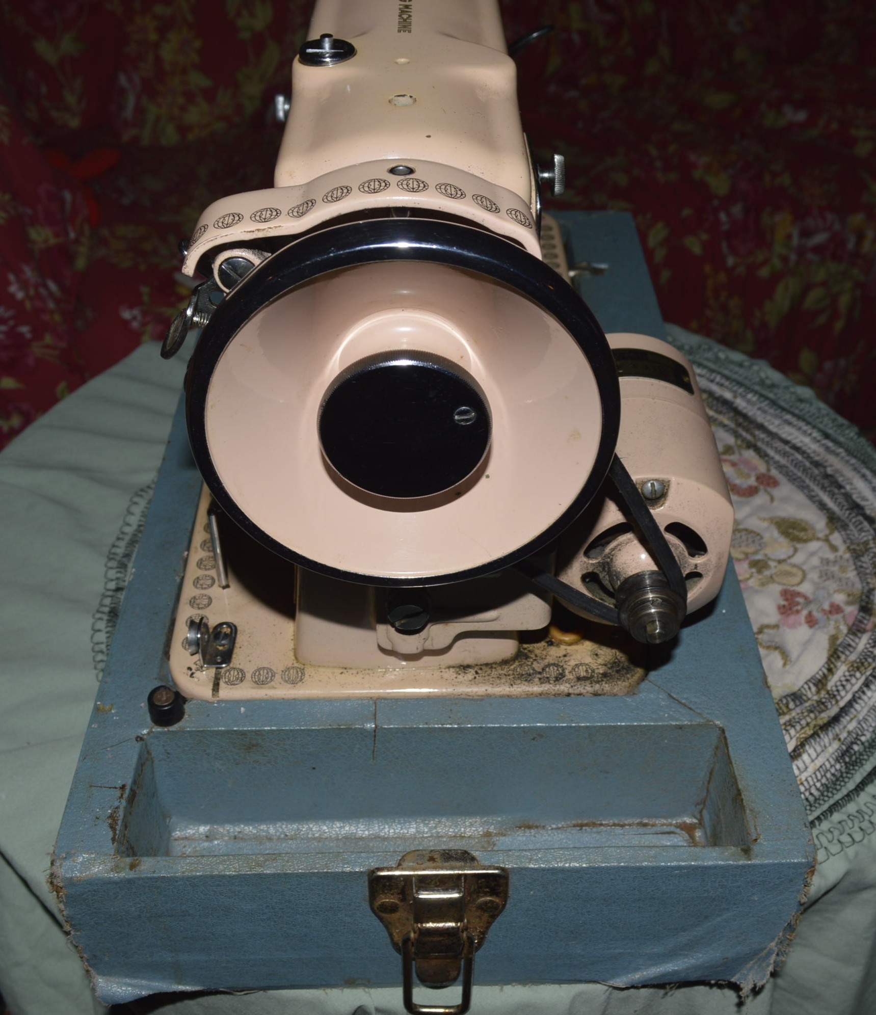 As usual, the machine will be disassembled to the greatest extent possible. Each piece will be cleaned and wire brushed to like new condition. The needle bar, presser foot bar, and the bottom bobbin hook shaft will be polished, and all of the chrome plated parts will be polished. The machine will be deep cleaned, and paint repairs will be made with custom mixed color matched paint. The motor will be disassembled, and for this machine, a replacement vintage foot controller will be provided and the main power wiring will be replaced. So, let me get started!