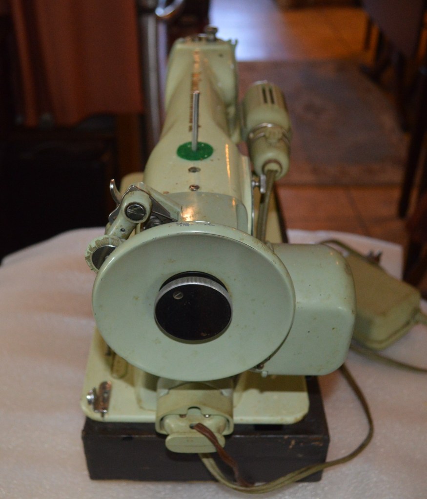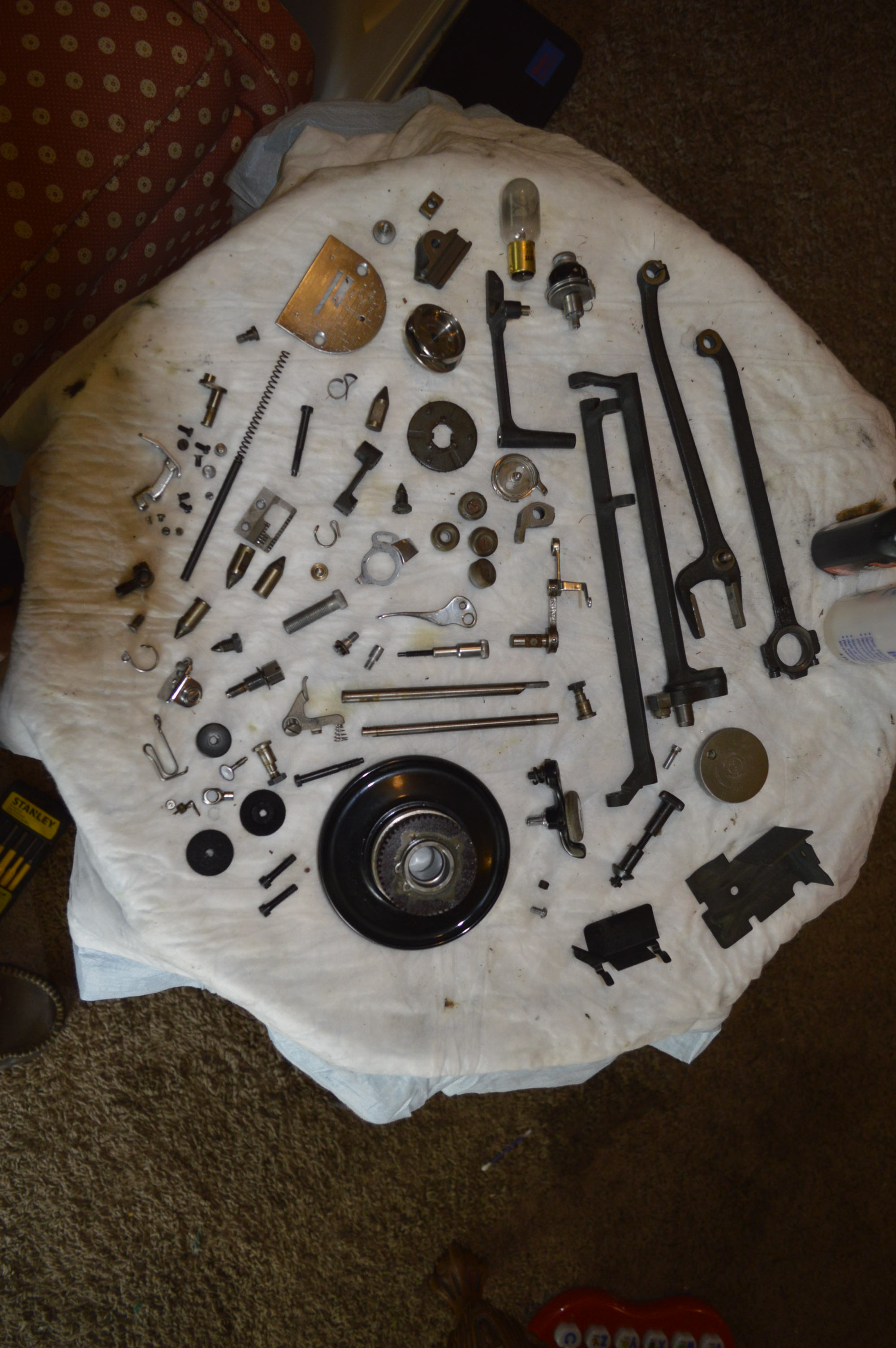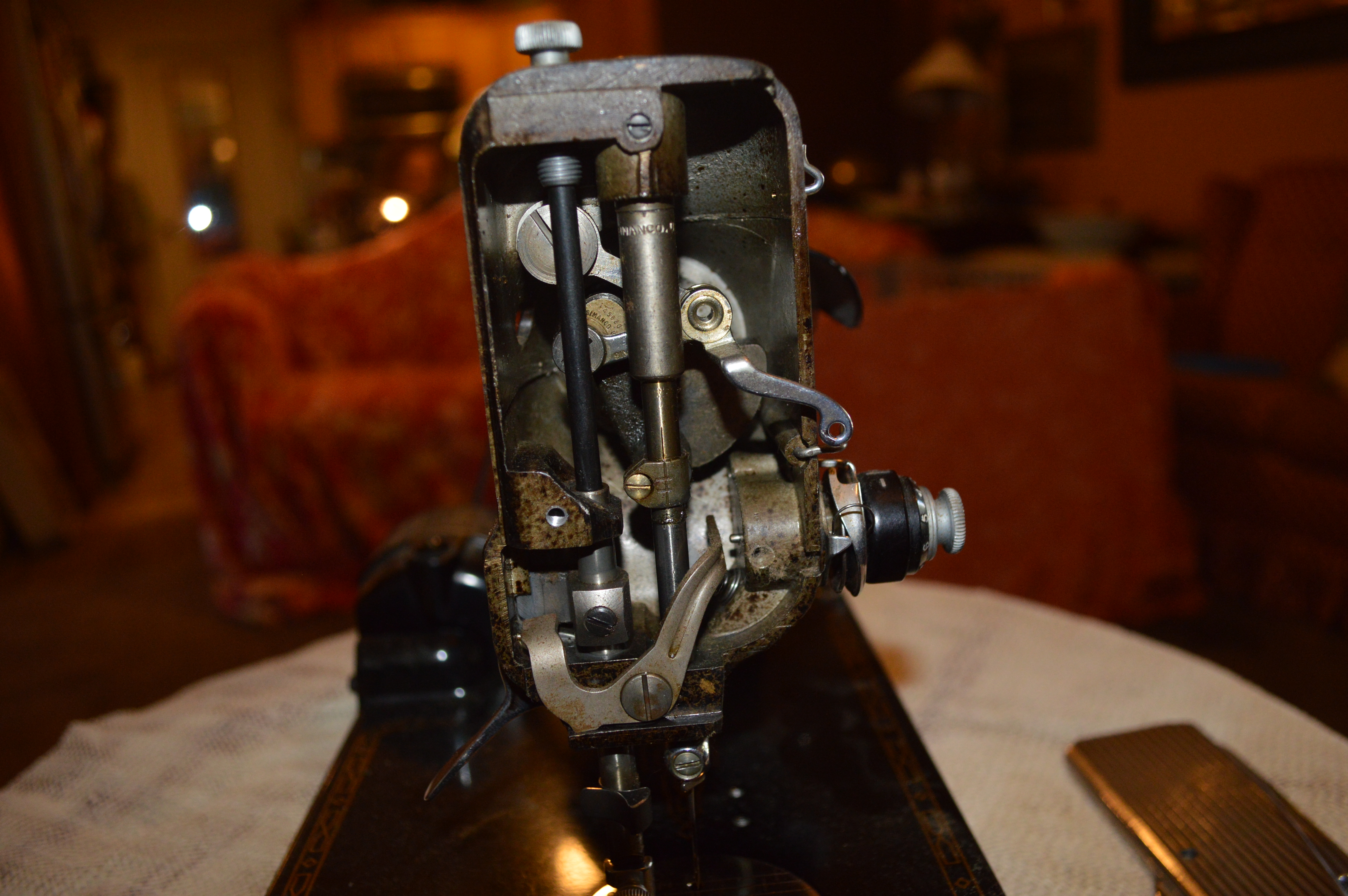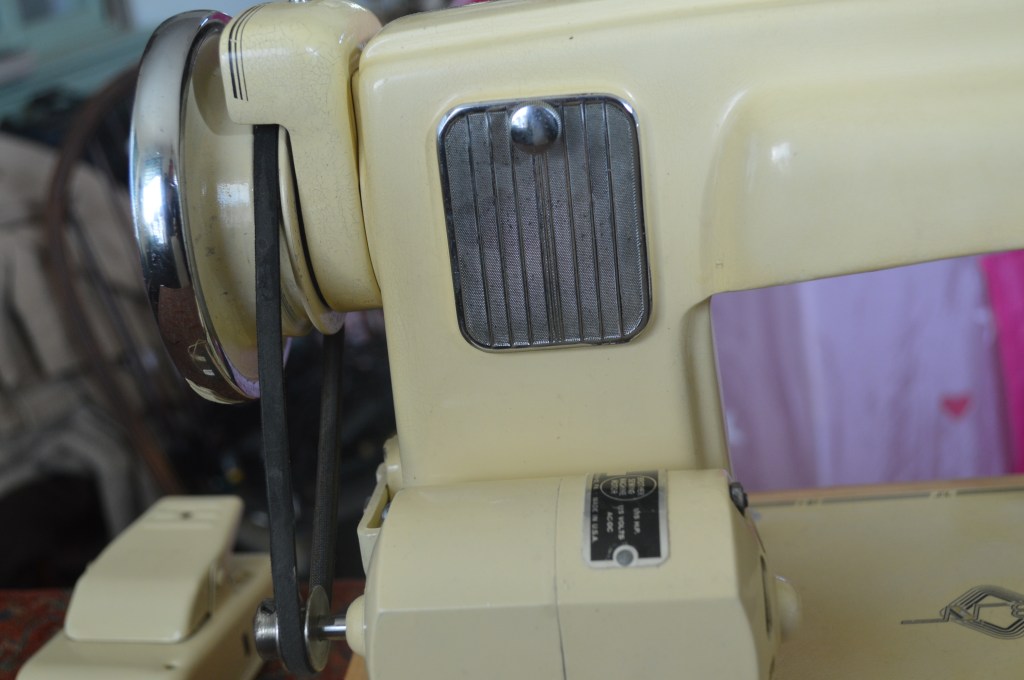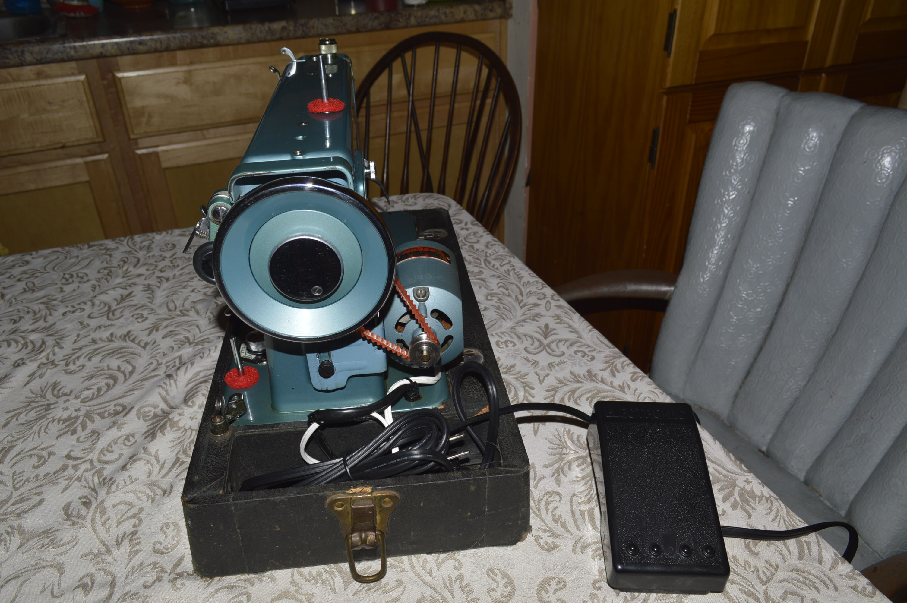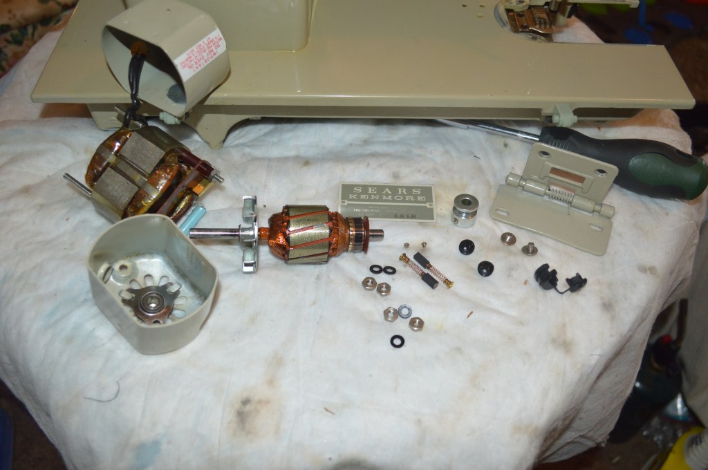 As usual, the machine will be disassembled to the greatest extent possible. Each piece will be cleaned and wire brushed to like new condition. The needle bar, presser foot bar, and the bottom bobbin hook shaft will be polished, and all of the chrome plated parts will be polished. The machine will be deep cleaned, and paint repairs will be made with custom mixed color matched paint. The motor will be disassembled, and for this machine, a replacement vintage foot controller will be provided and the main power wiring will be replaced. So, let me get started!