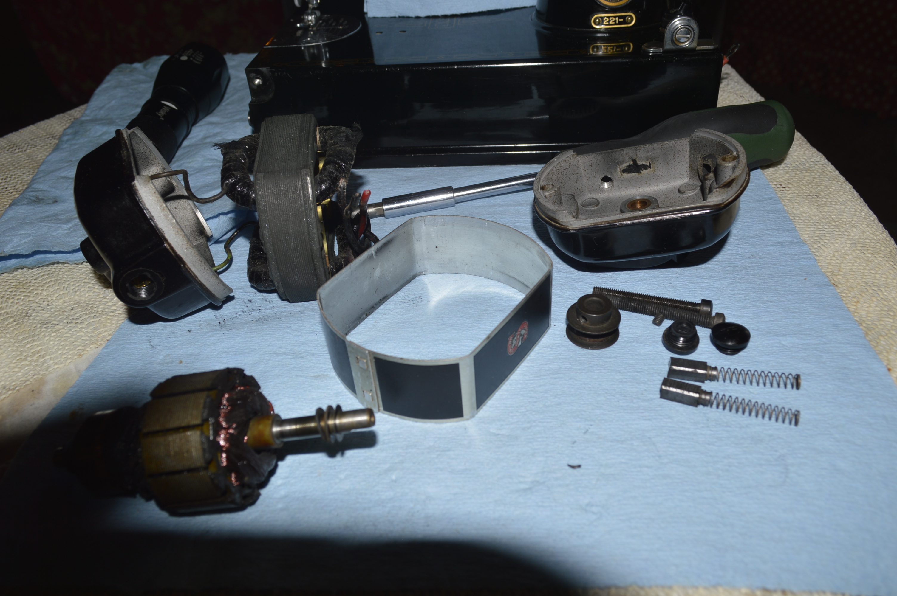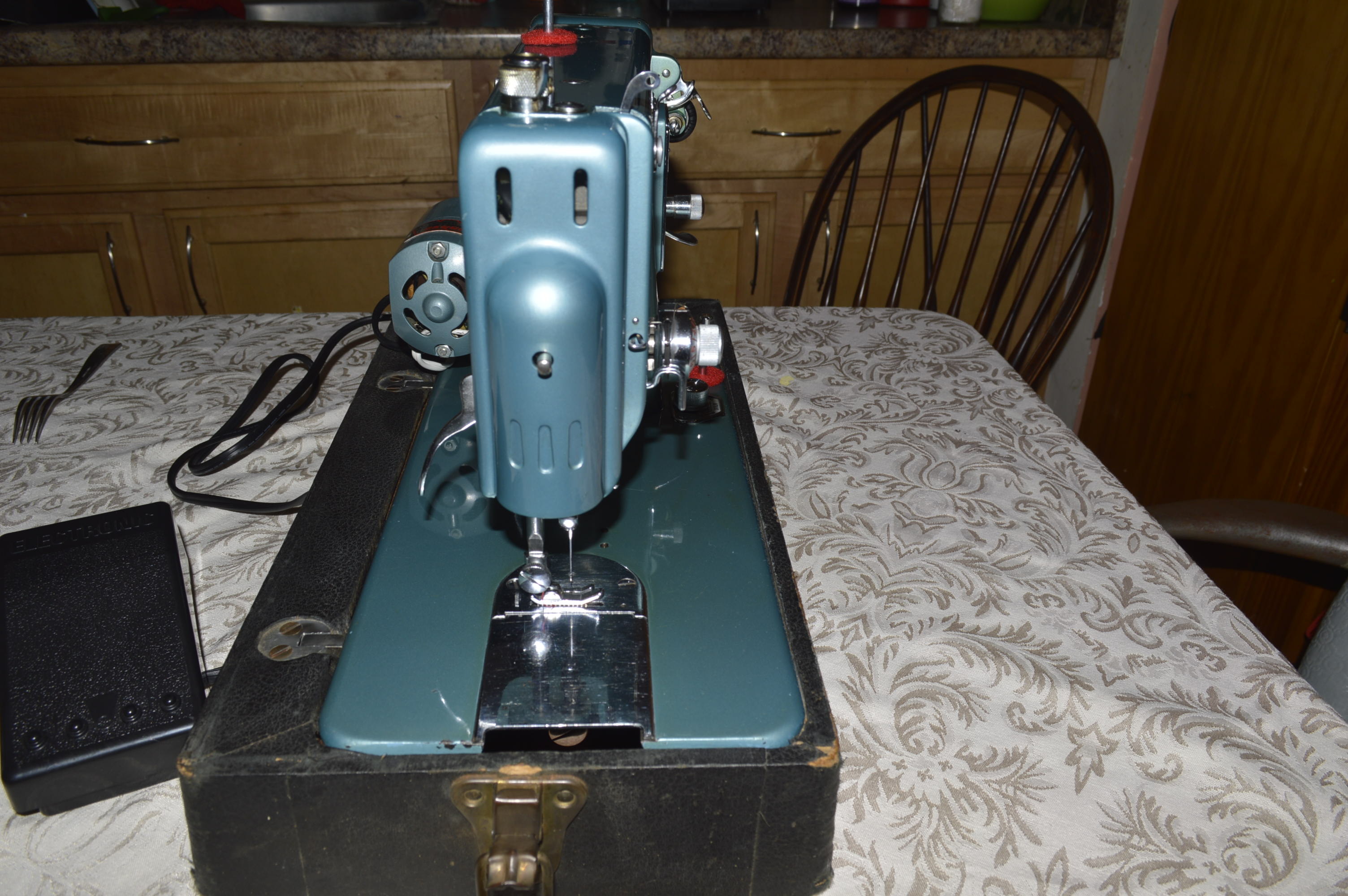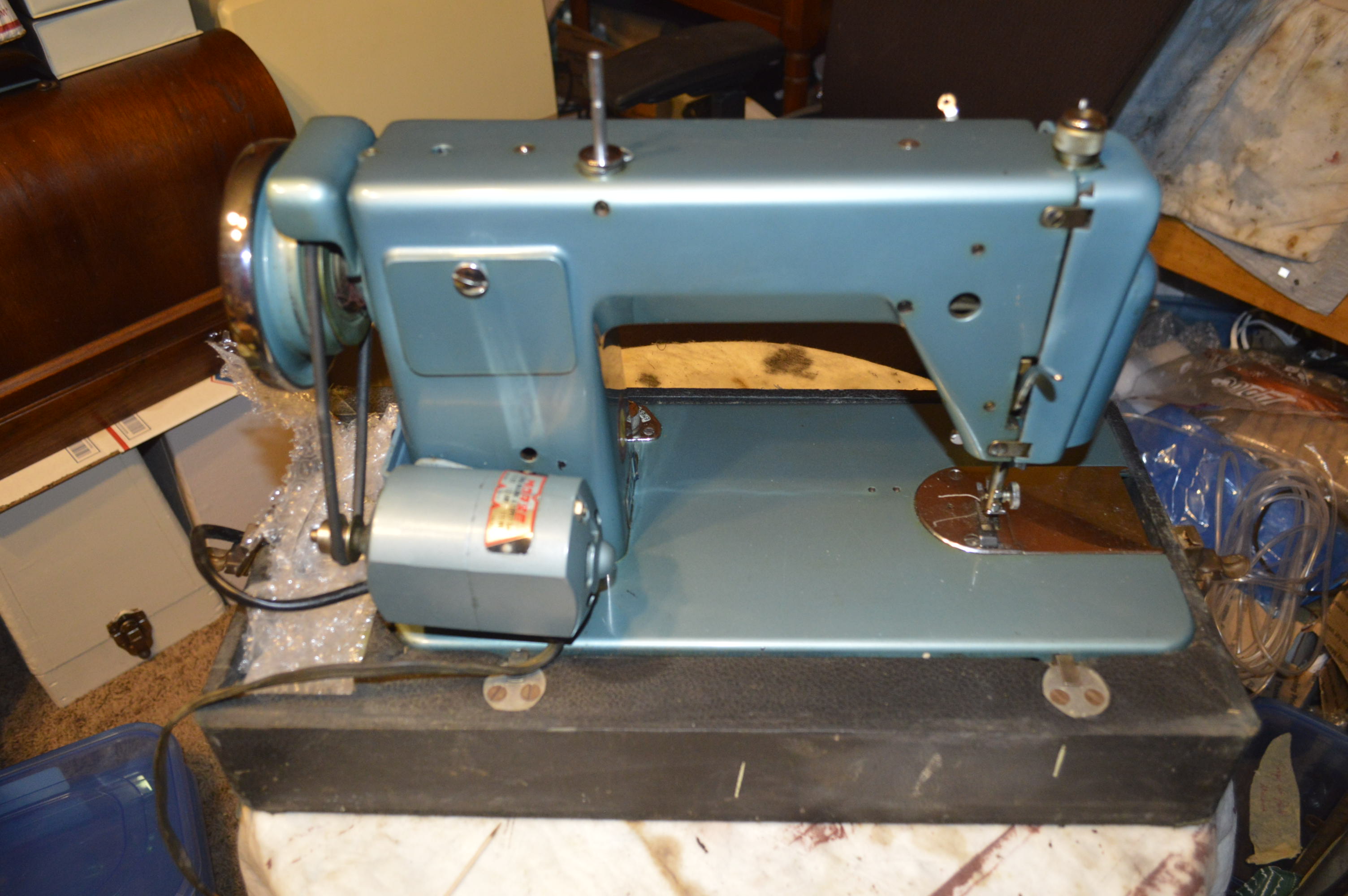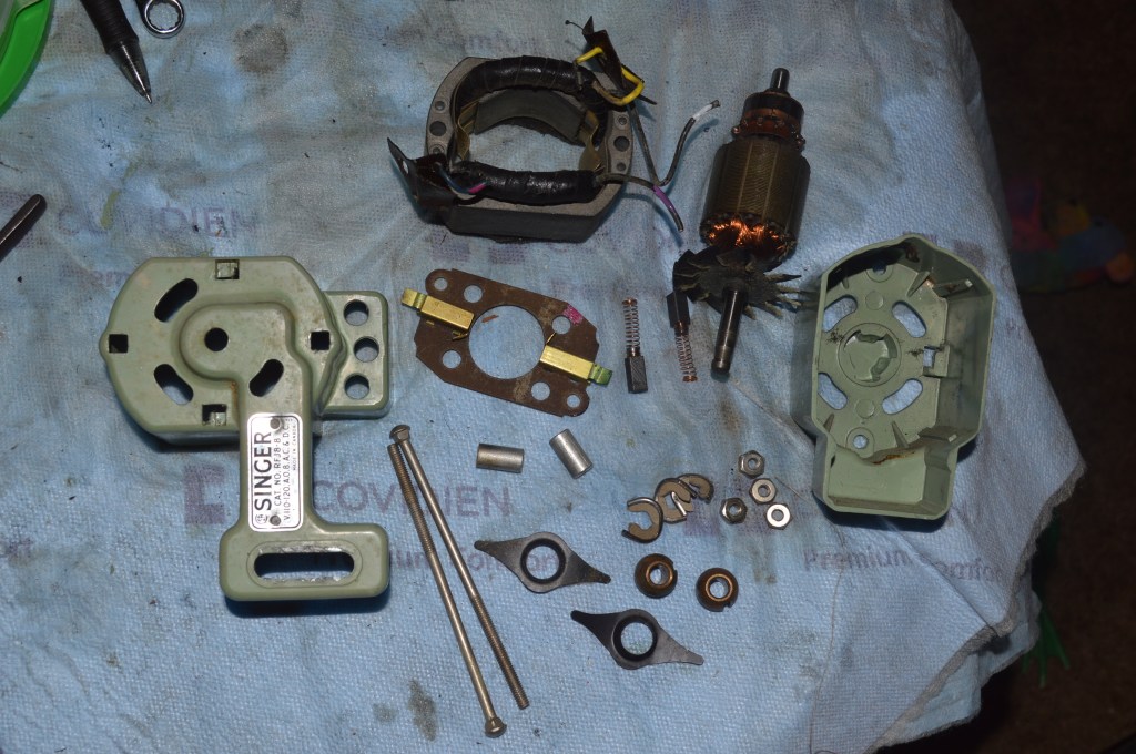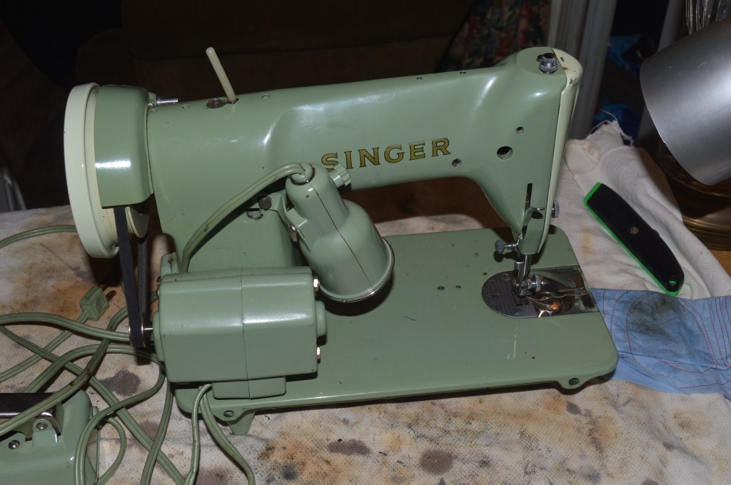 As usual, the machine will be disassembled to the greatest extent possible. Each piece will be cleaned and wire brushed to like new condition. The needle bar, presser foot bar, and the bottom bobbin hook shaft will be polished, and all of the chrome plated parts will be polished. The machine will be deep cleaned, and paint repairs will be made with custom mixed color matched paint. The motor will be disassembled, and for this machine, a replacement vintage foot controller will be provided and the main power wiring will be replaced. So, let me get started!
