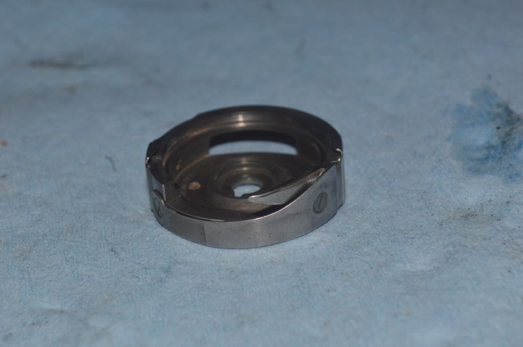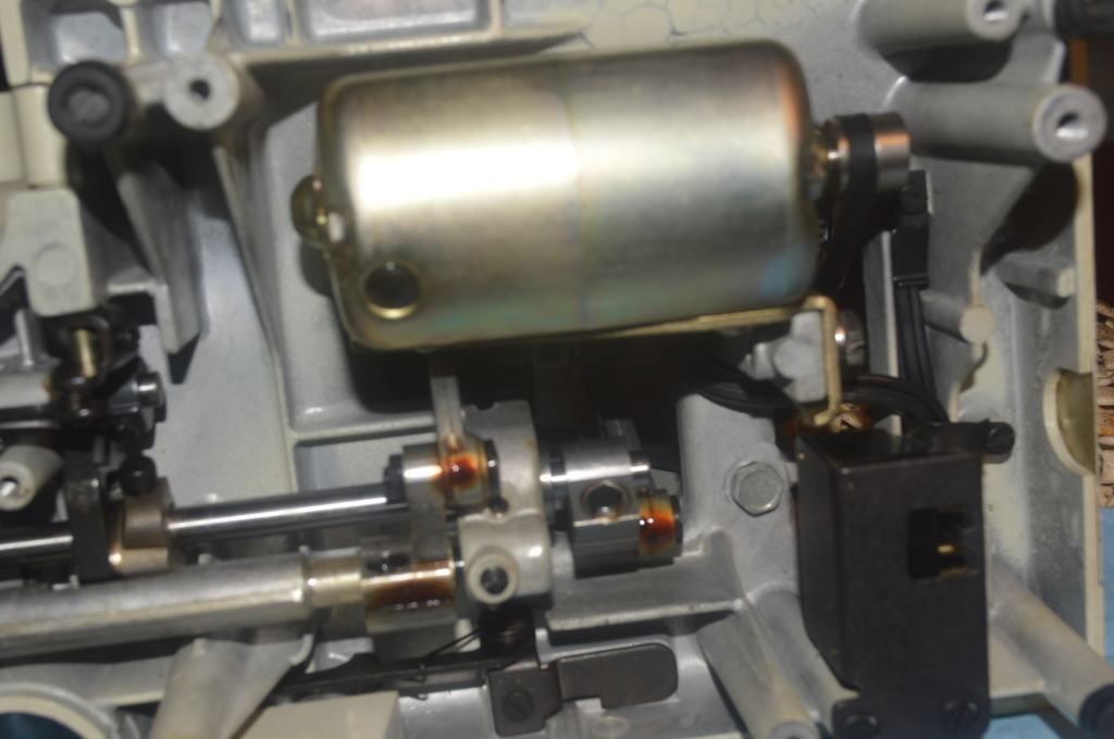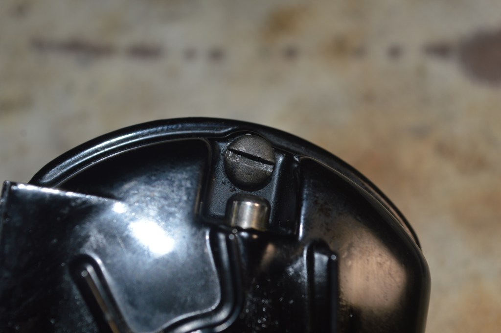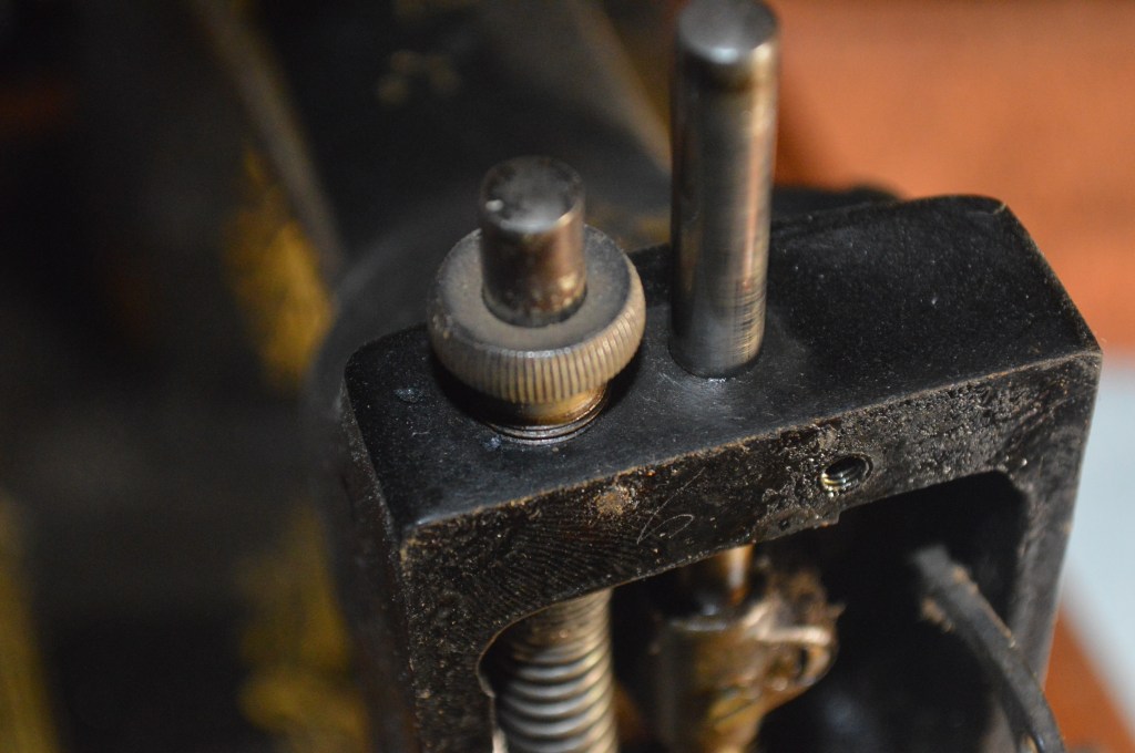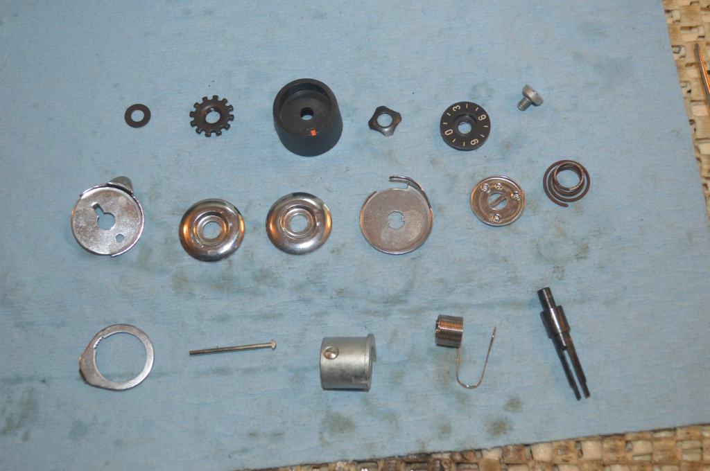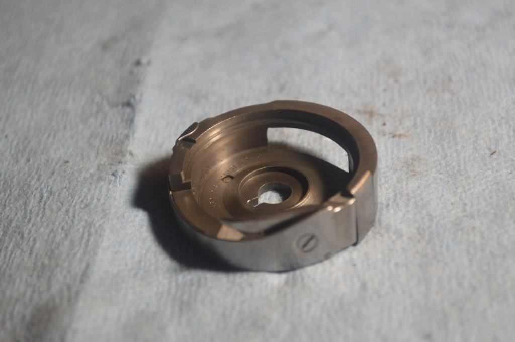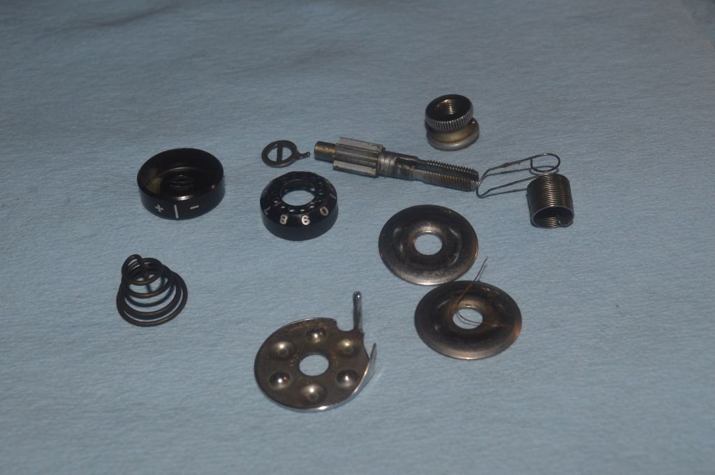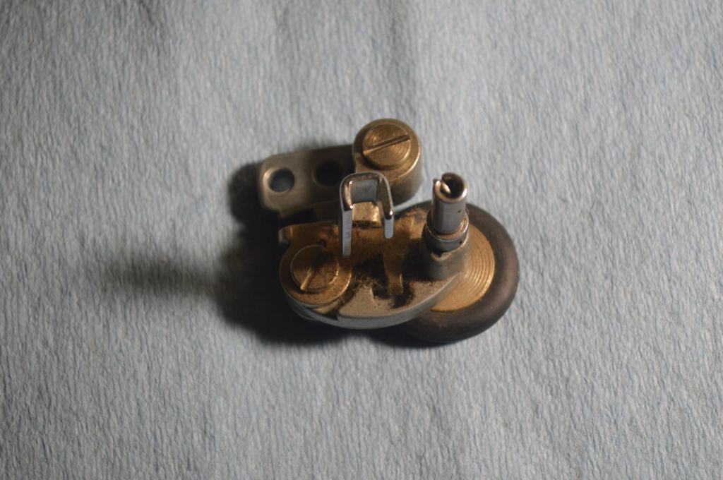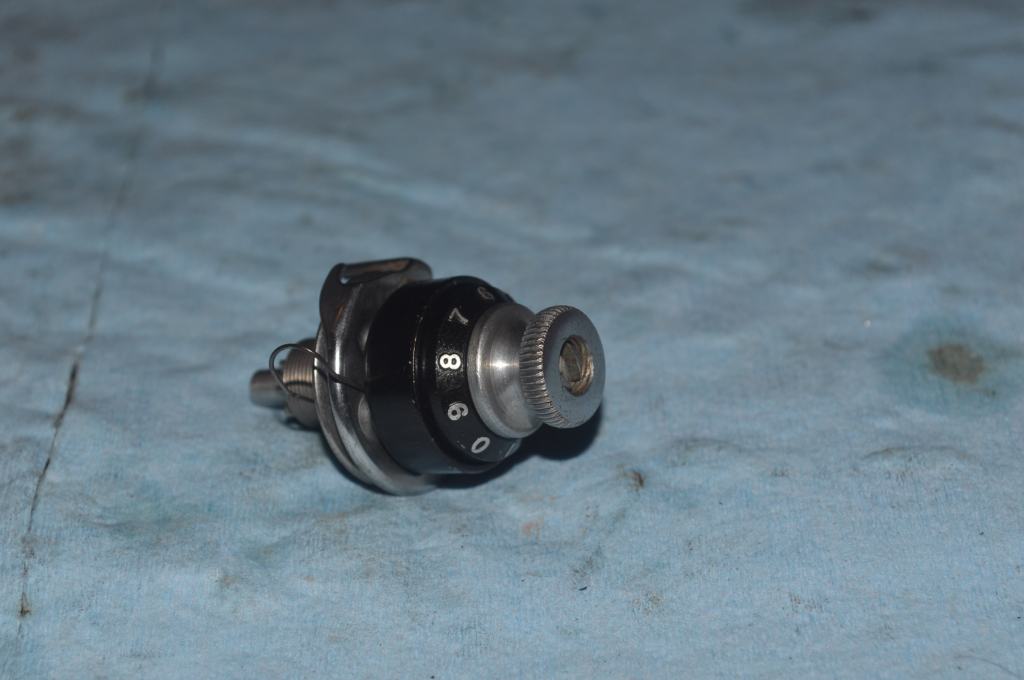 Next is the top tension control restoration. The tension discs and the tension disc shaft are polished. Everything else is cleaned. This will assure a smooth thread path and even thread tension.
