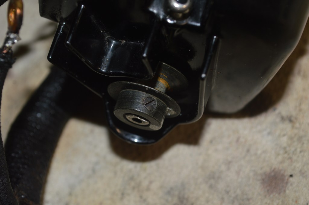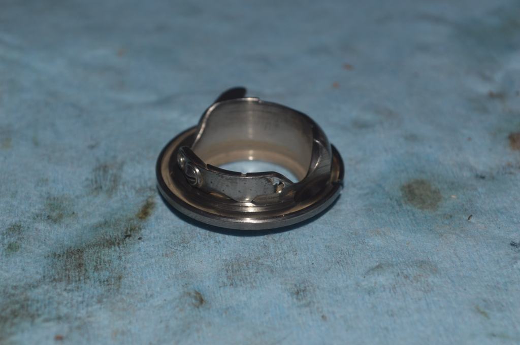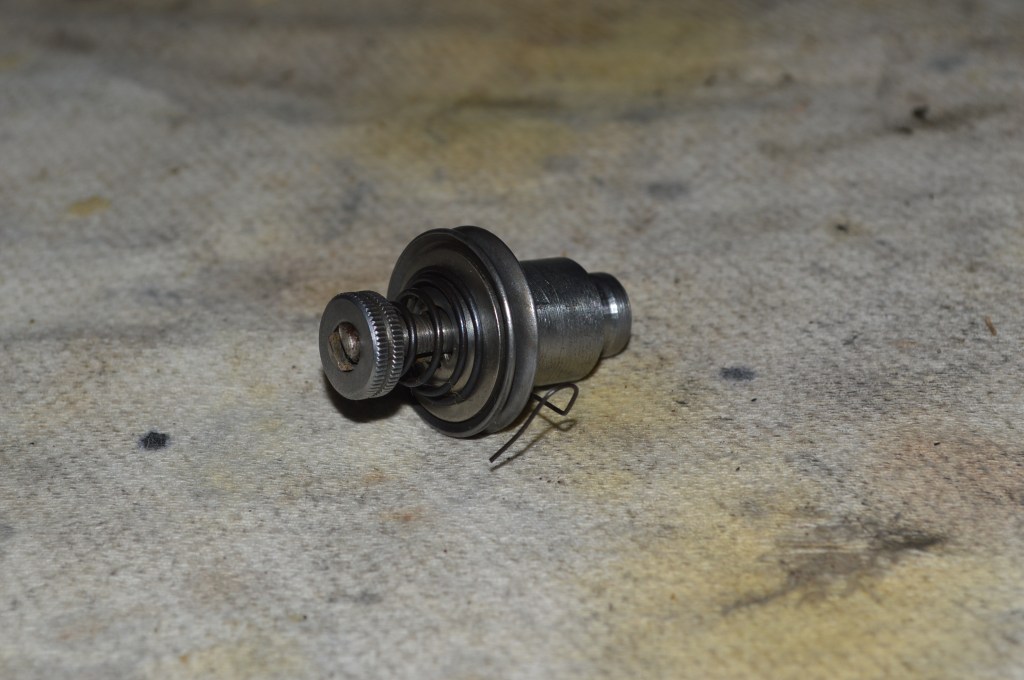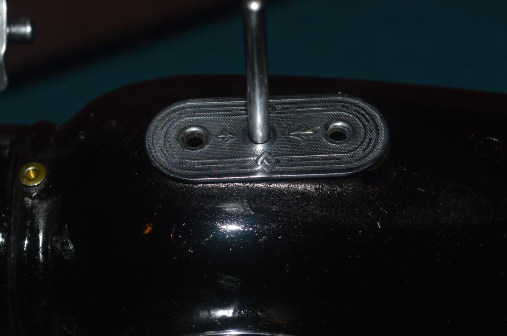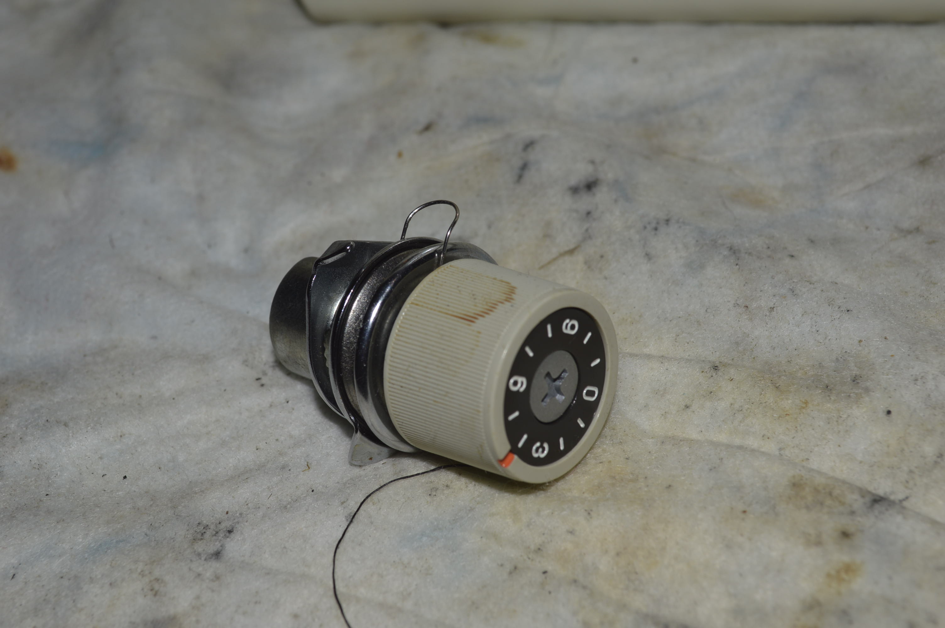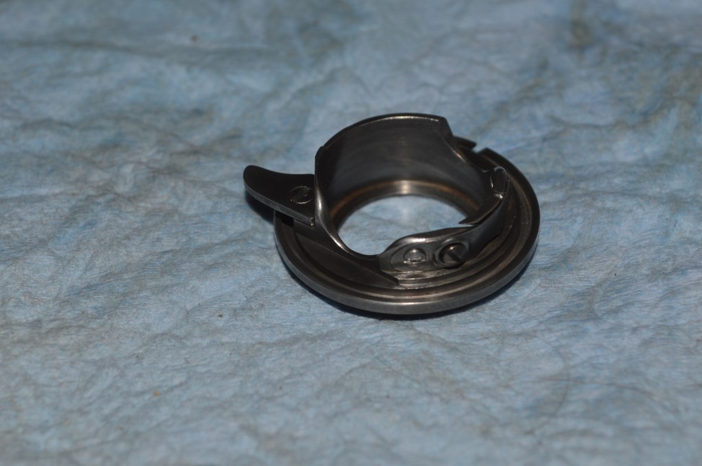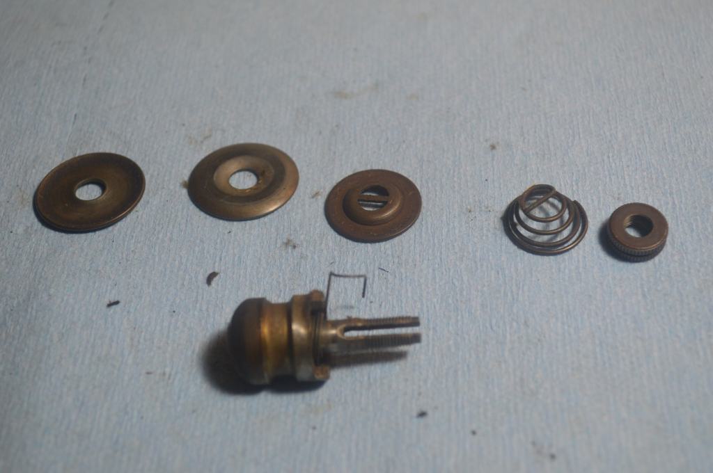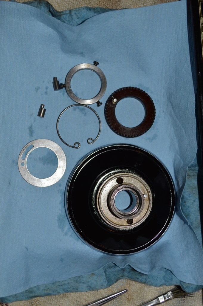 Next is the top tension control restoration. The tension discs and the tension disc shaft are polished. Everything else is cleaned. This will assure a smooth thread path and even thread tension.