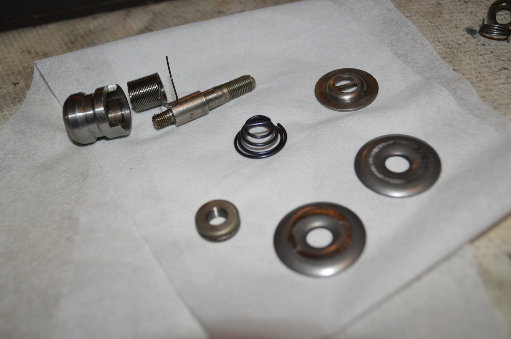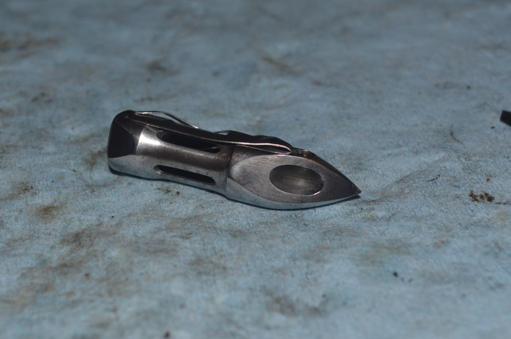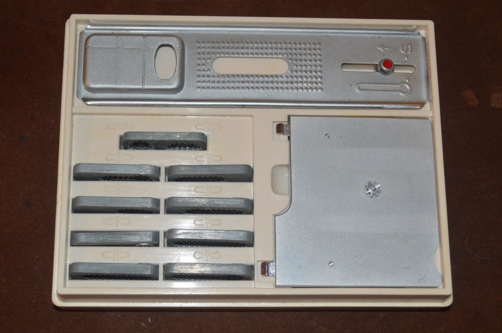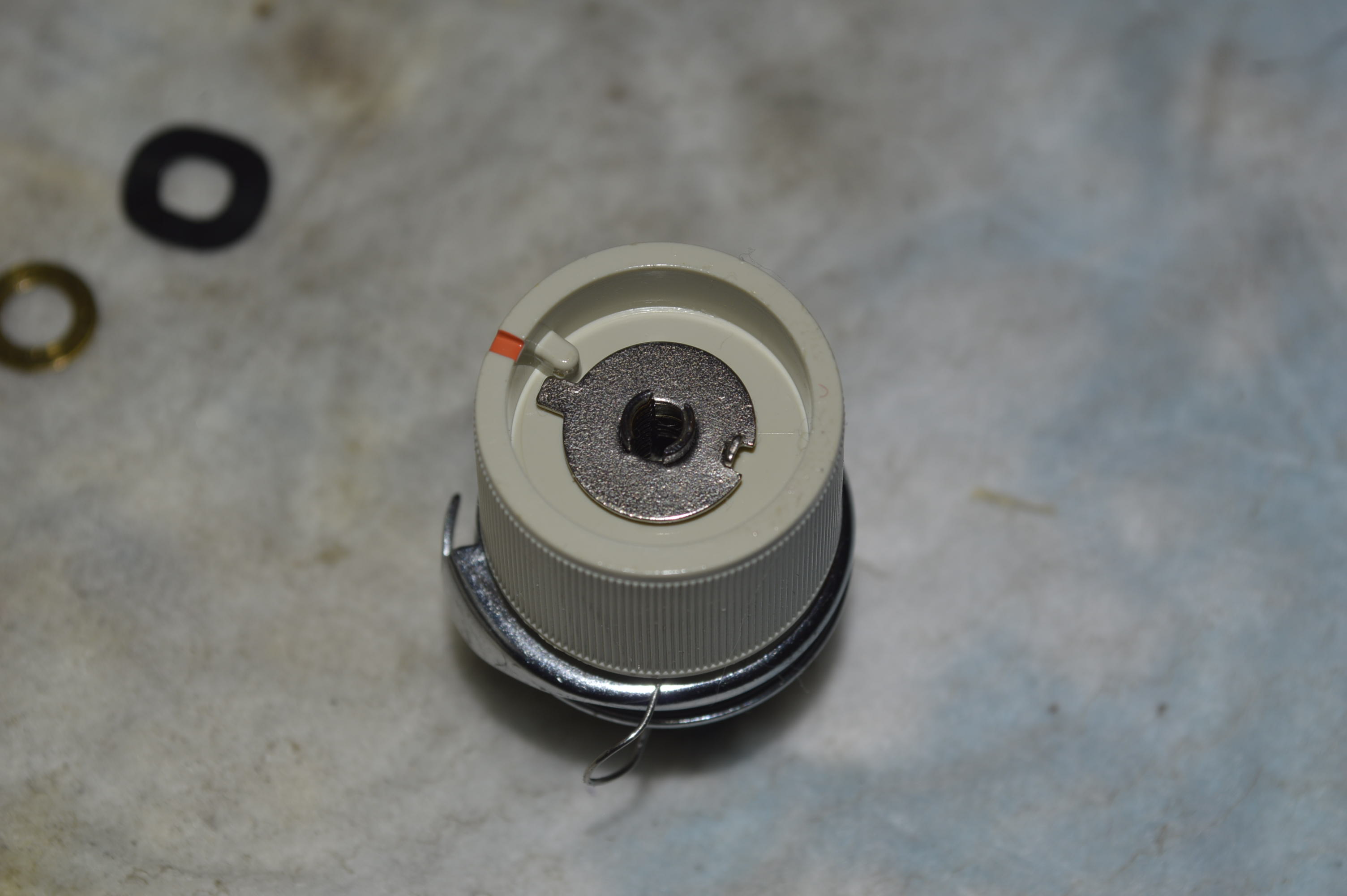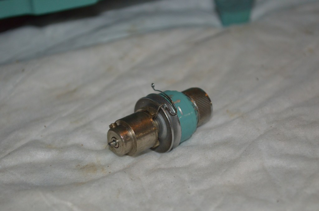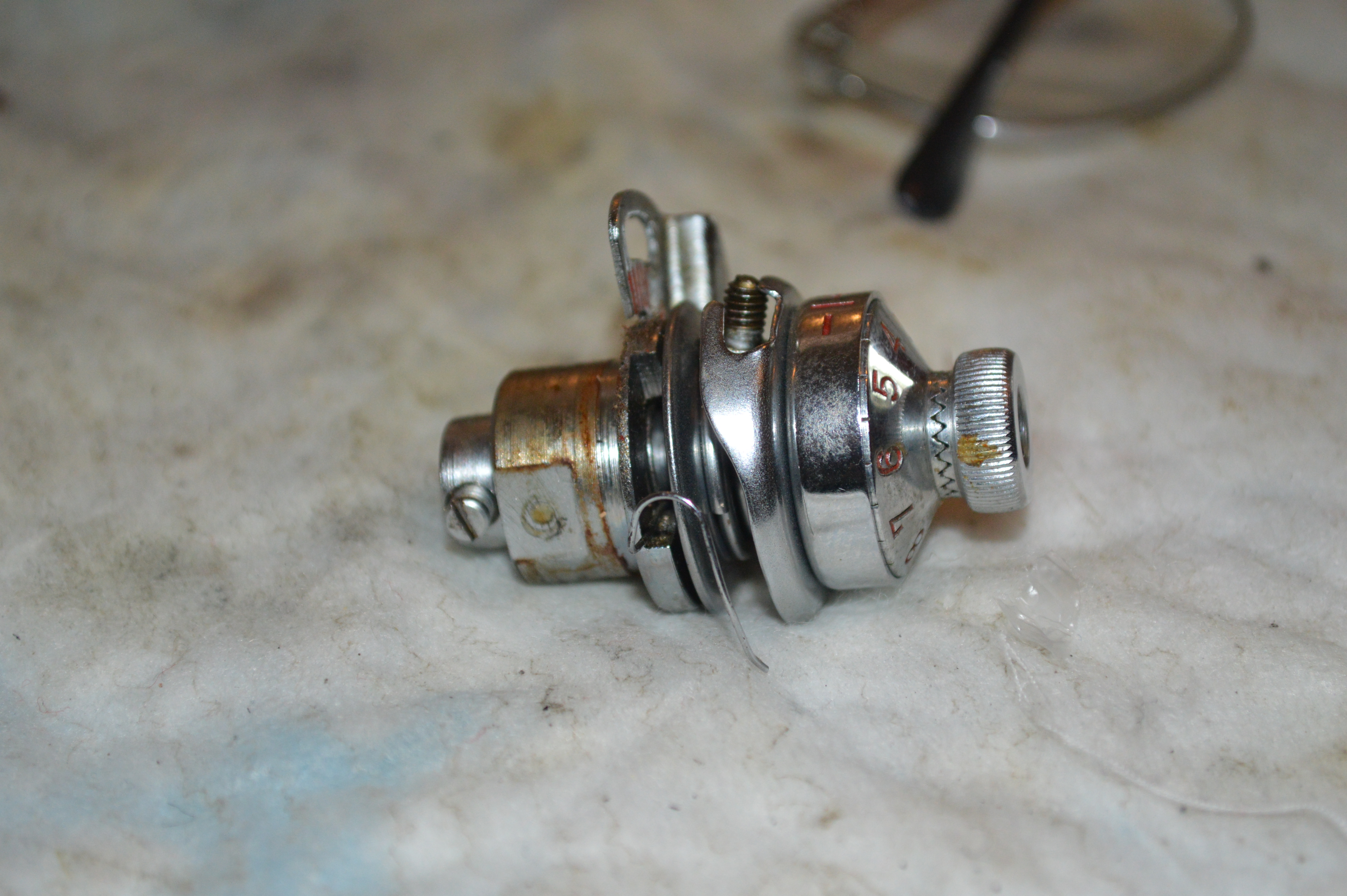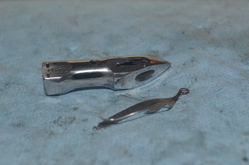 Next is the top tension control restoration. The tension discs and the tension disc shaft are polished. Everything else is cleaned. This will assure a smooth thread path and even thread tension.