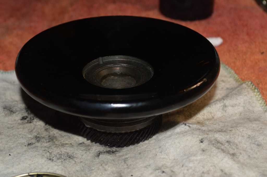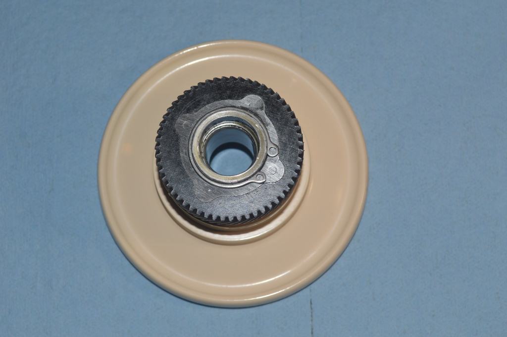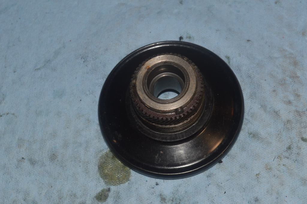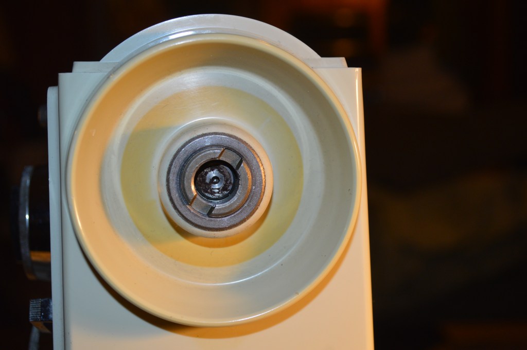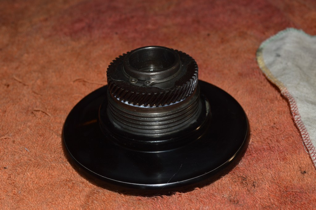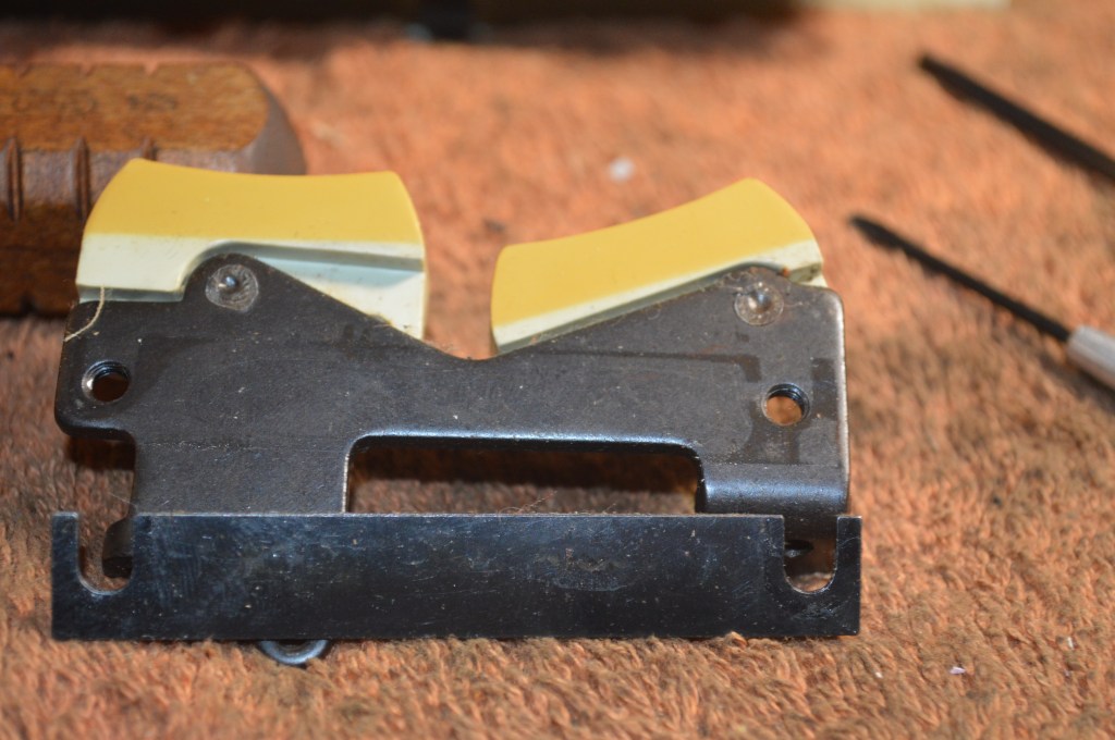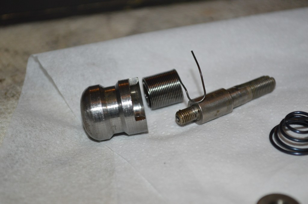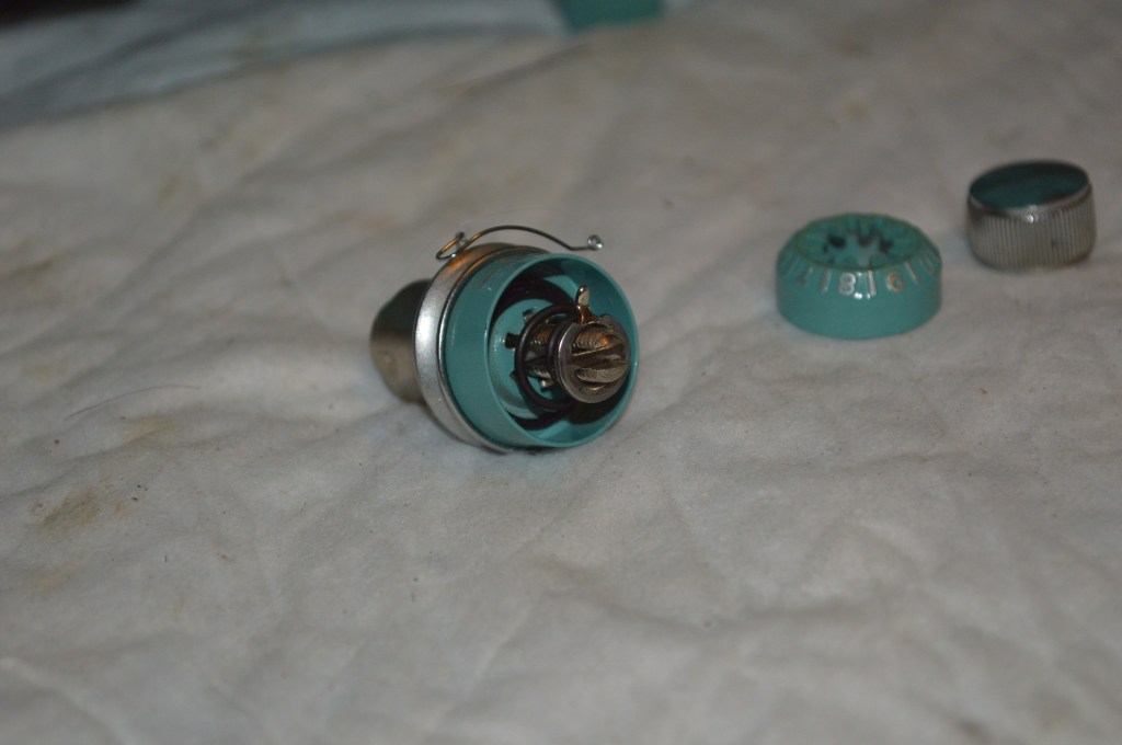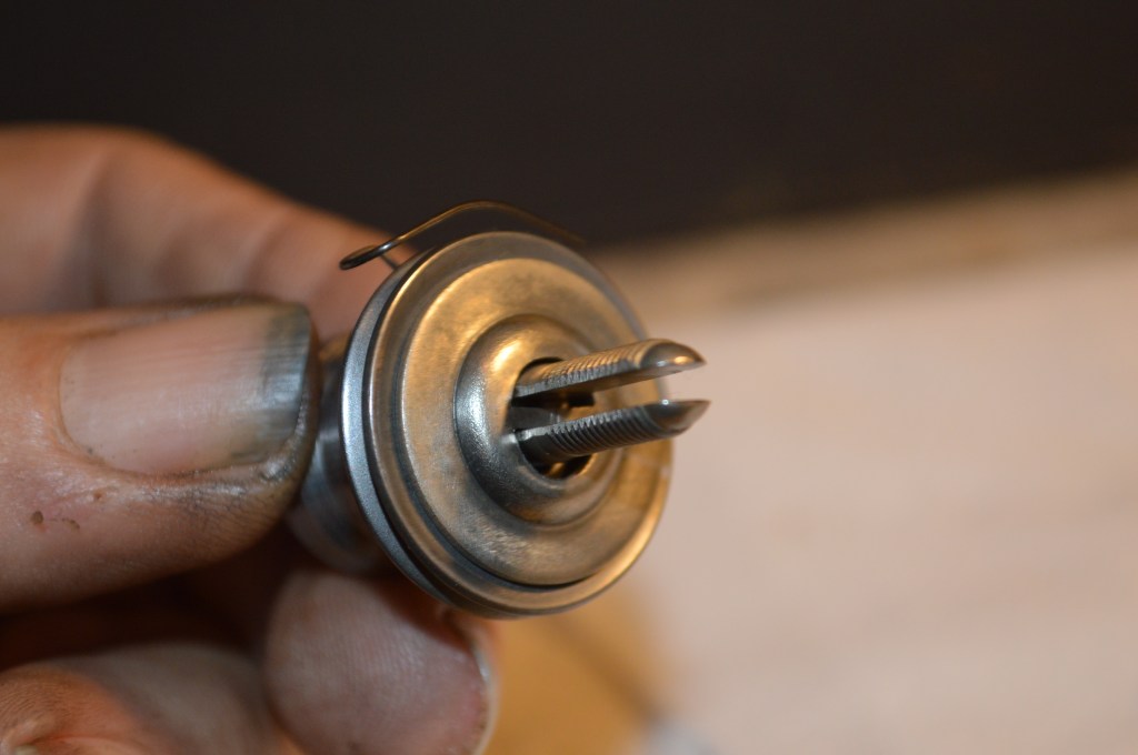 Next is the top tension control restoration. The tension discs and the tension disc shaft are polished. Everything else is cleaned. This will assure a smooth thread path and even thread tension.