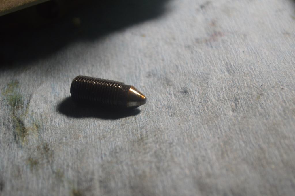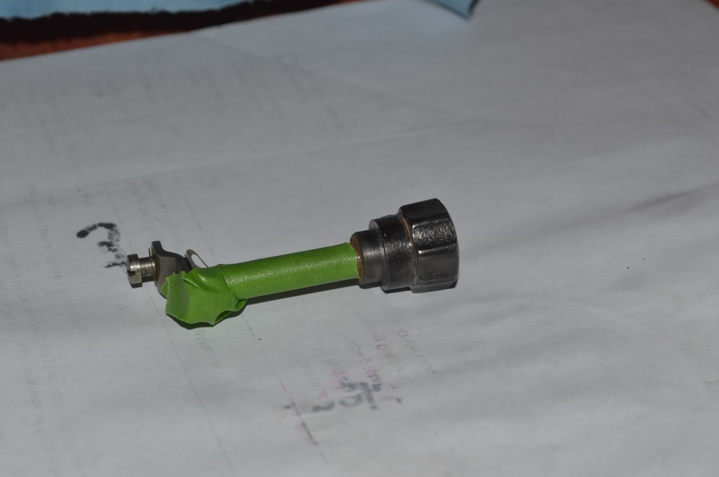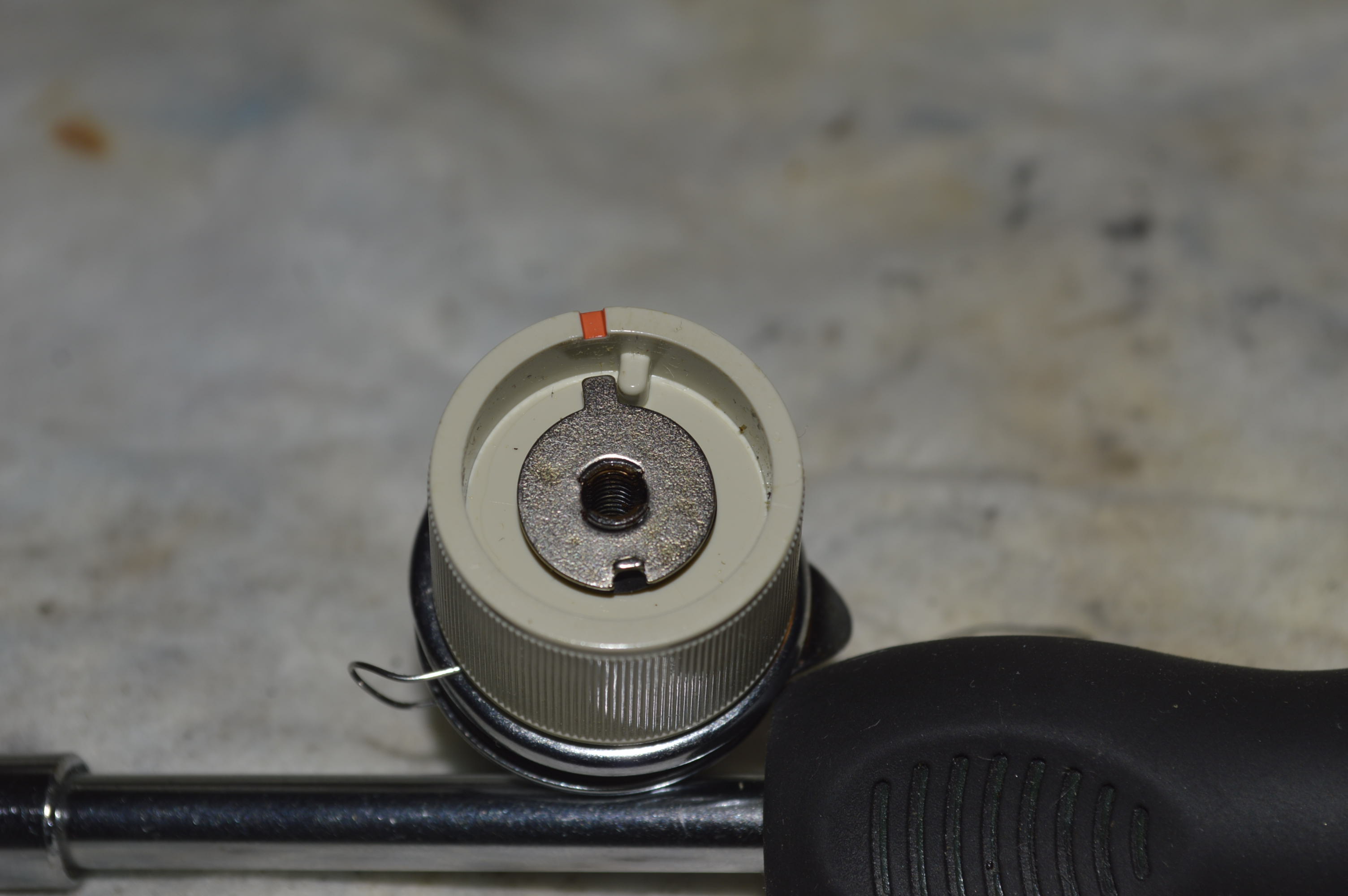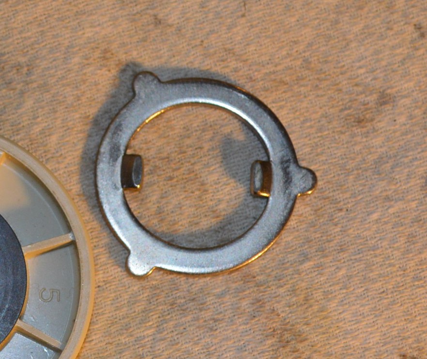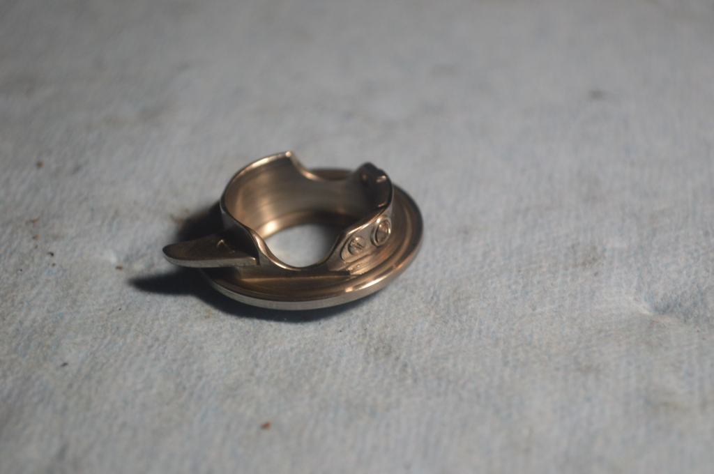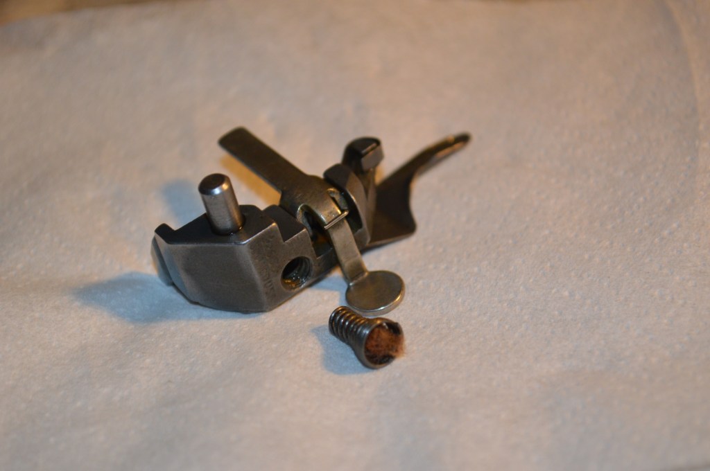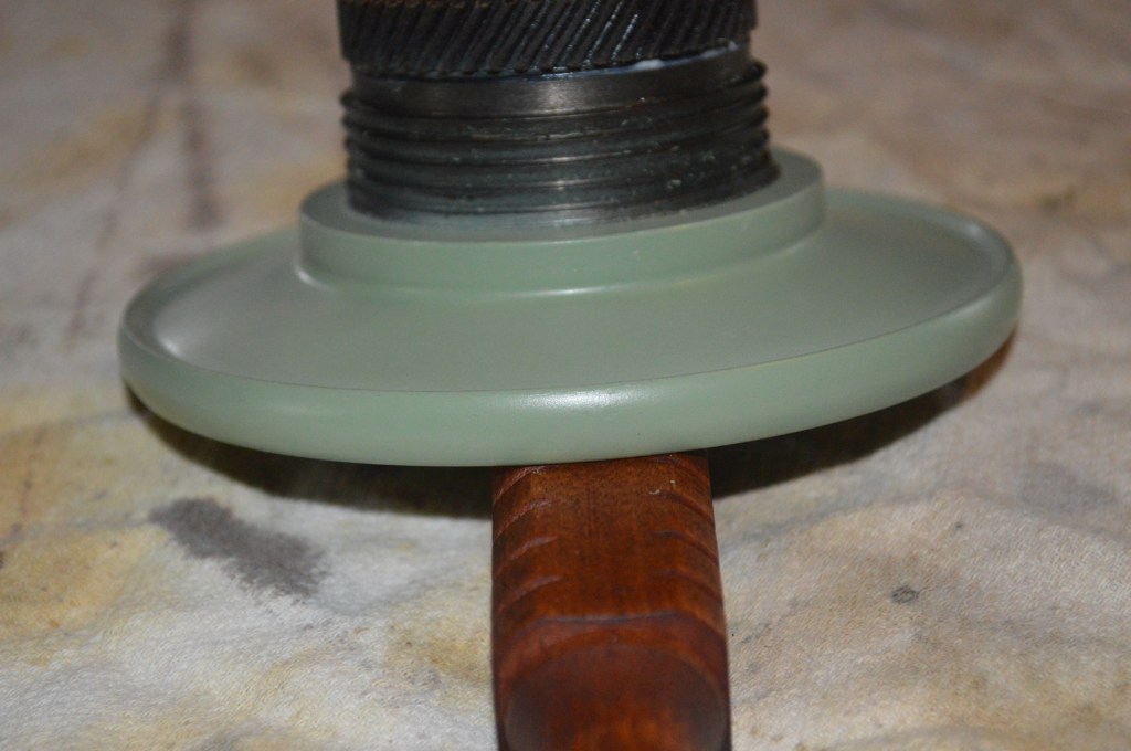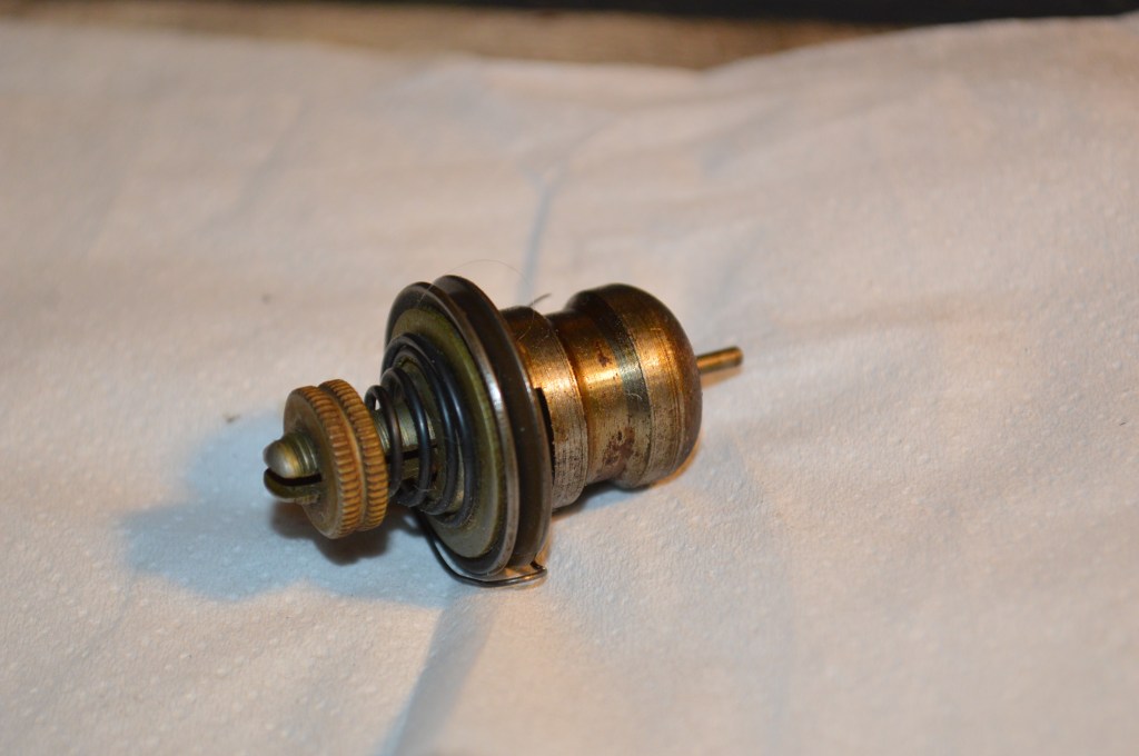 Next is the top tension control restoration. The tension discs and the tension disc shaft are polished. Everything else is cleaned. This will assure a smooth thread path and even thread tension.