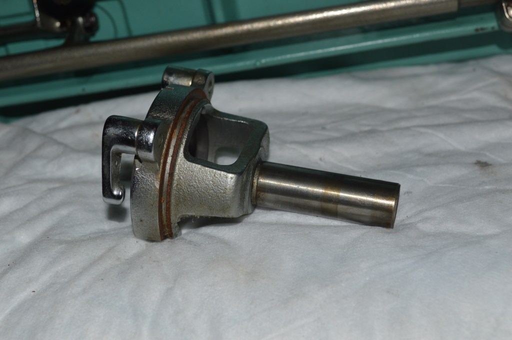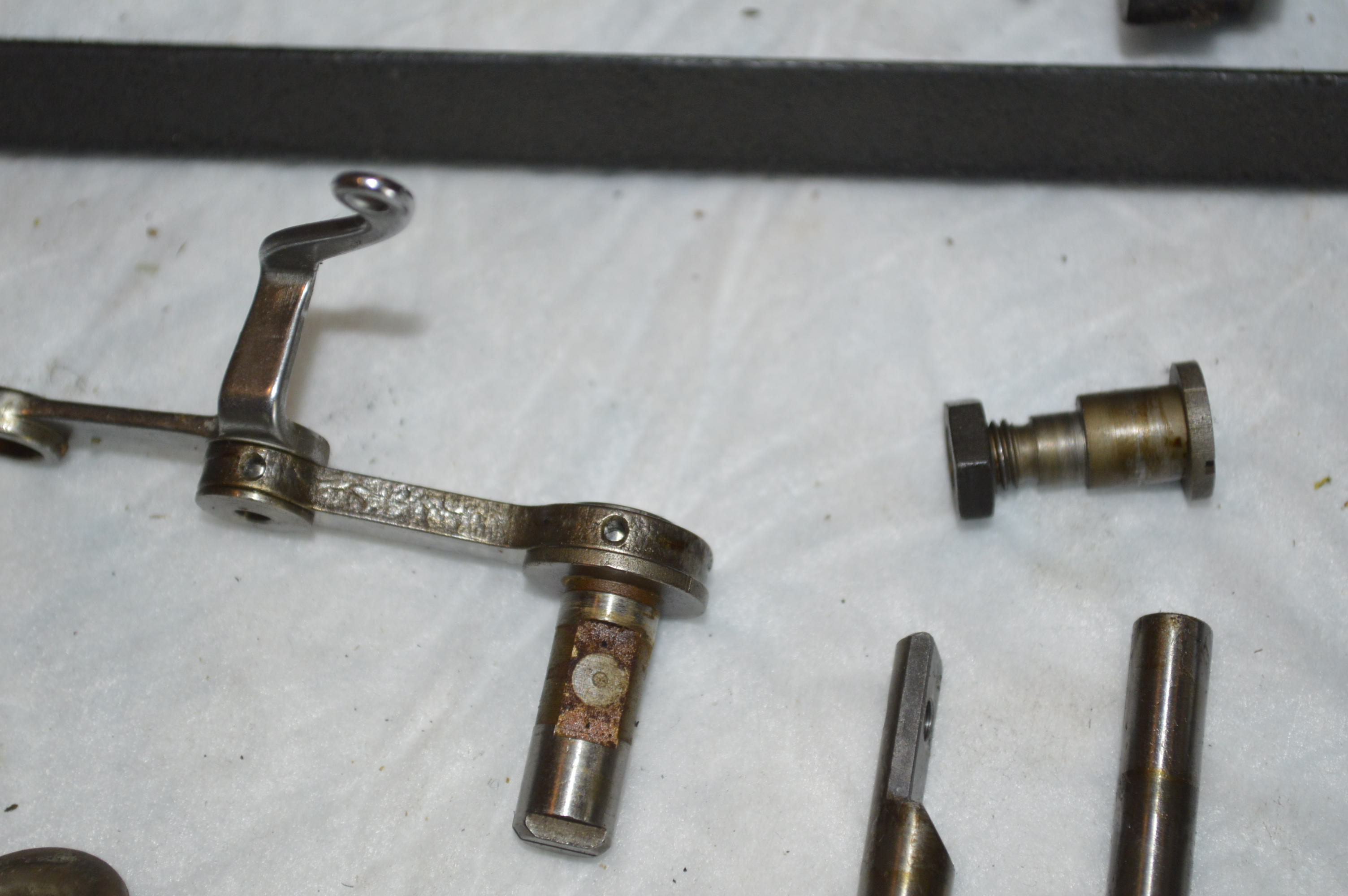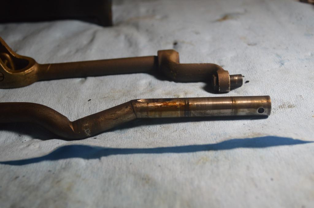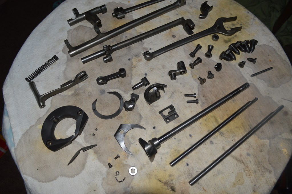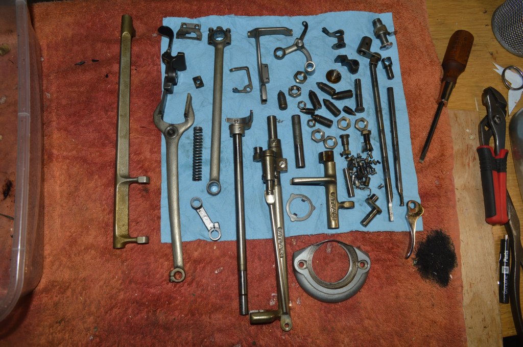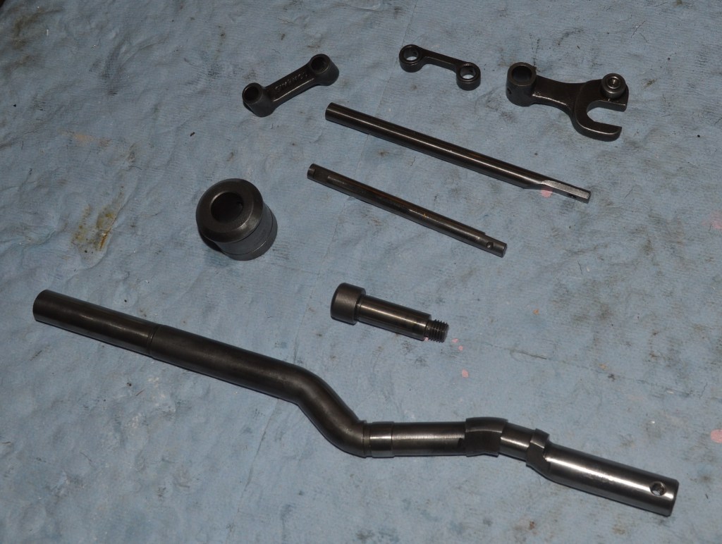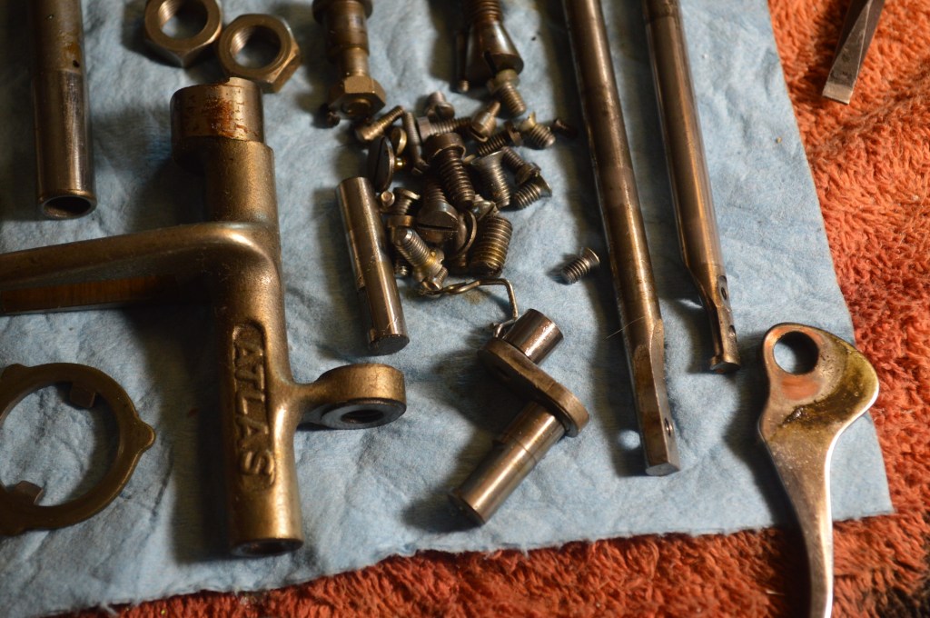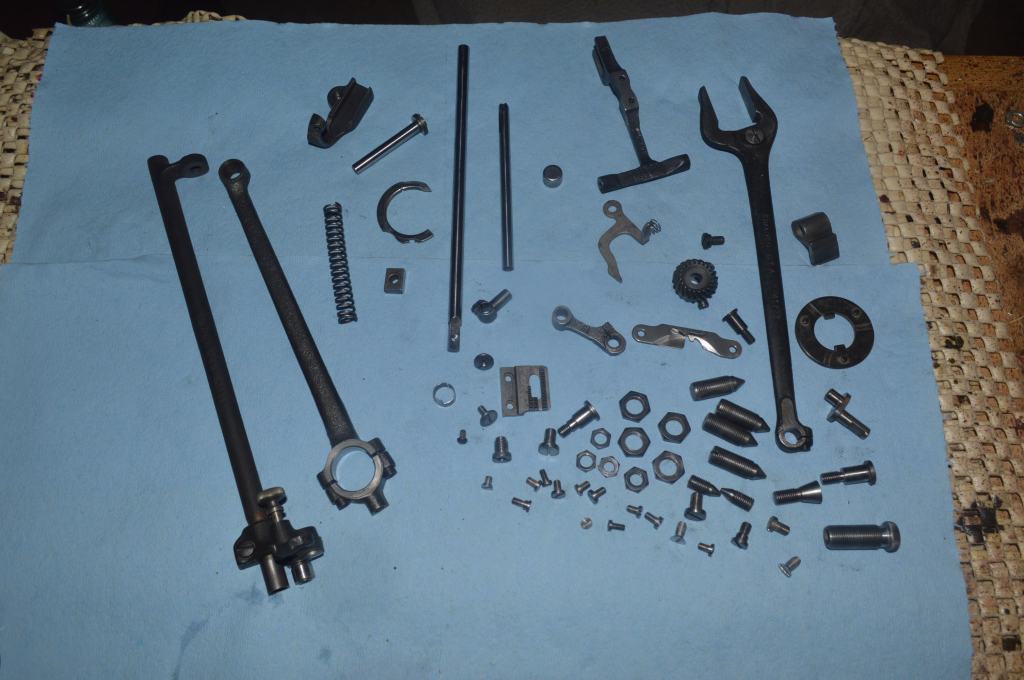 All of those likages fit together and are attached to a single bolt on the machine deep in the pillar cavity. I thought about it long and hard and decide that if I removed these assemblies I may never get them back together and in place. Rather than risk this, I decided to clean them in place. Luckily, the arm shaft turns smoothly and I can work around its removal.