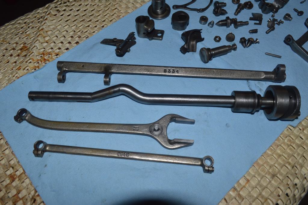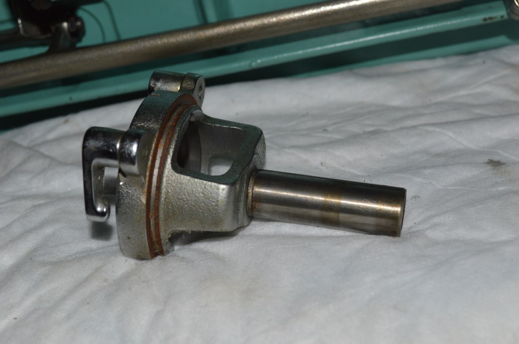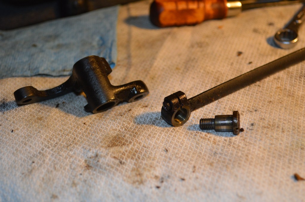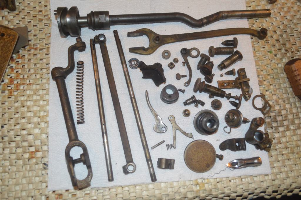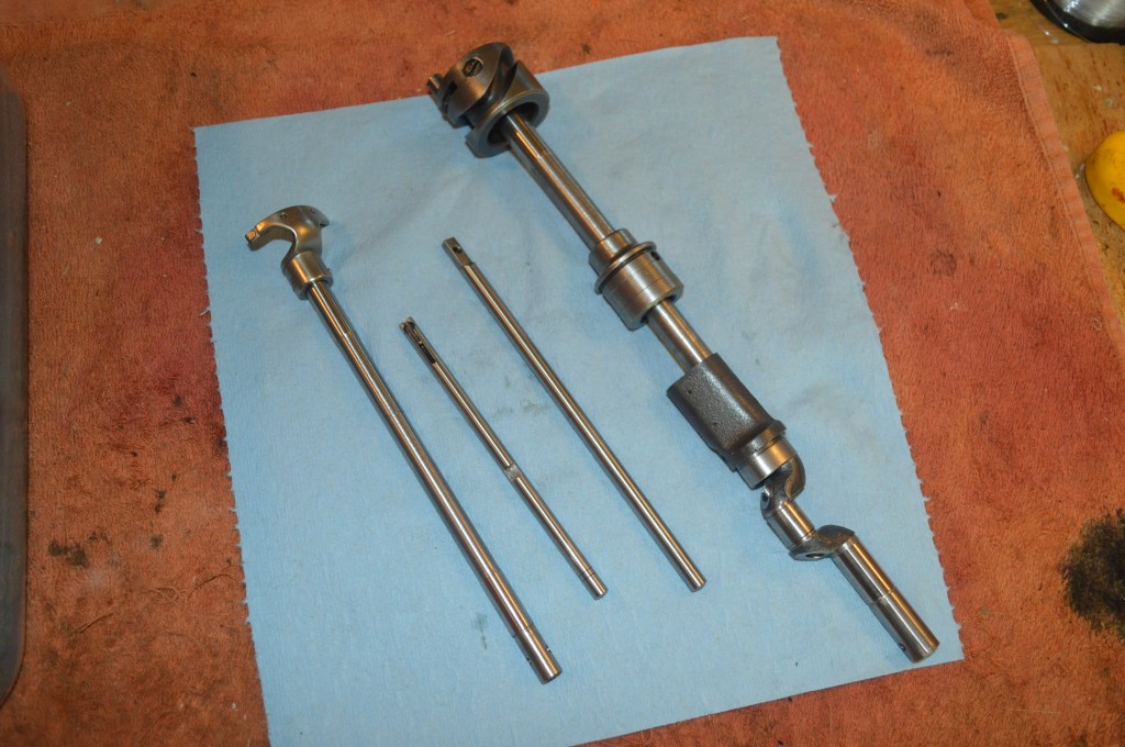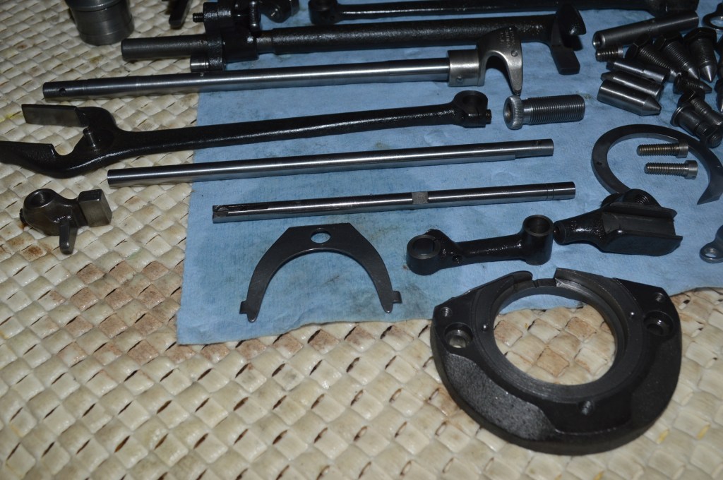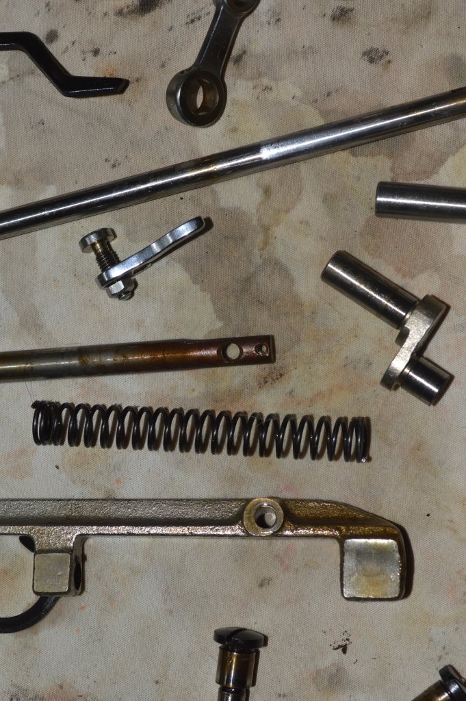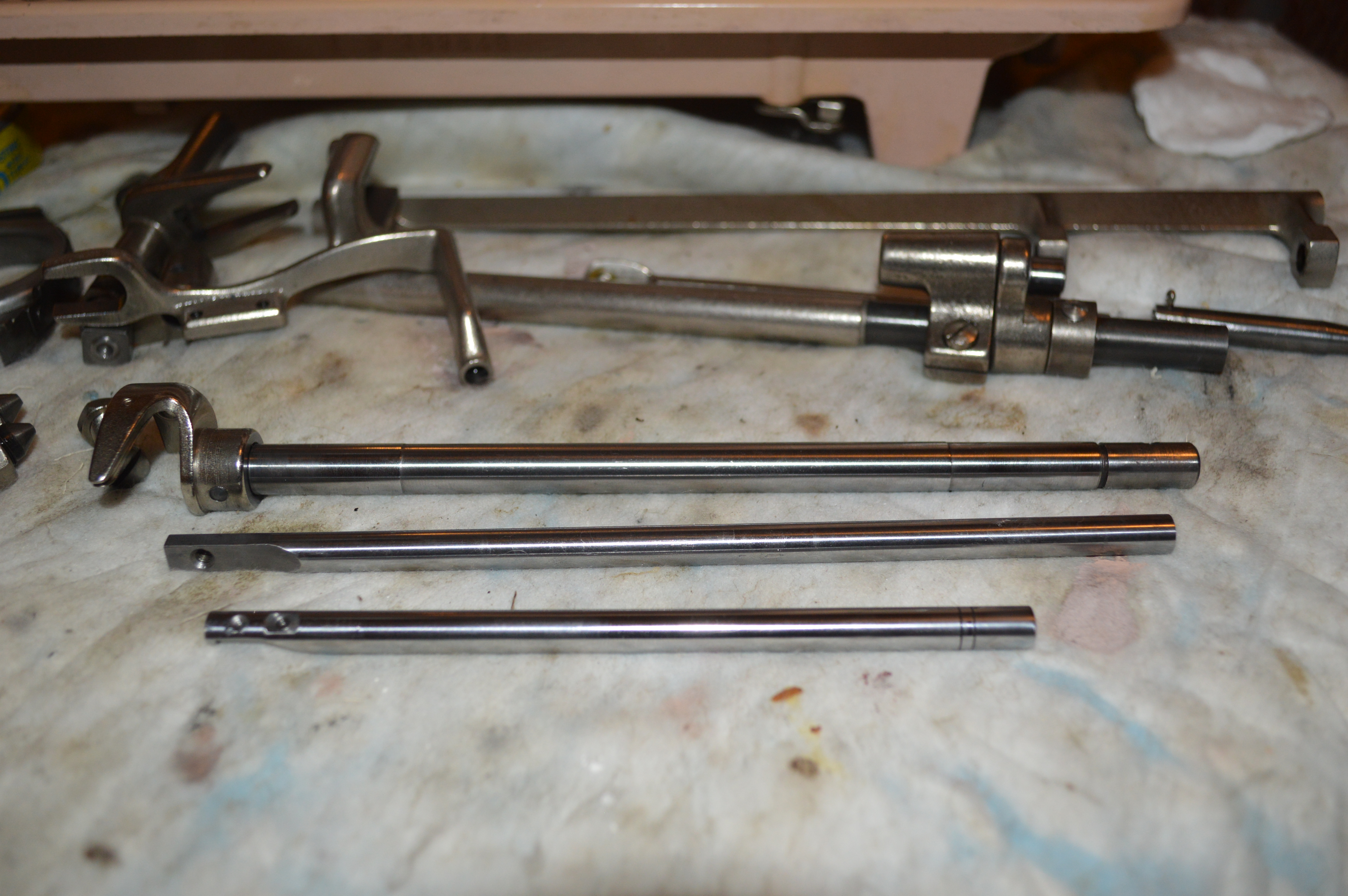 All of those likages fit together and are attached to a single bolt on the machine deep in the pillar cavity. I thought about it long and hard and decide that if I removed these assemblies I may never get them back together and in place. Rather than risk this, I decided to clean them in place. Luckily, the arm shaft turns smoothly and I can work around its removal.