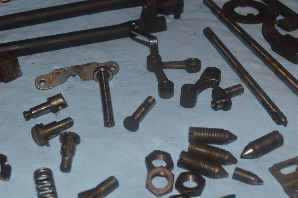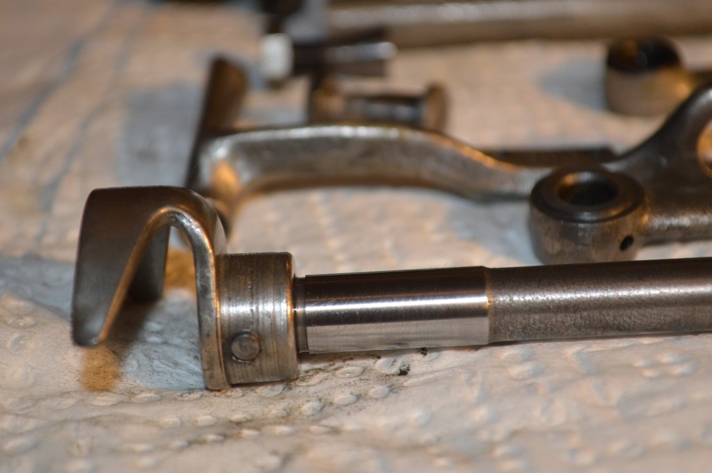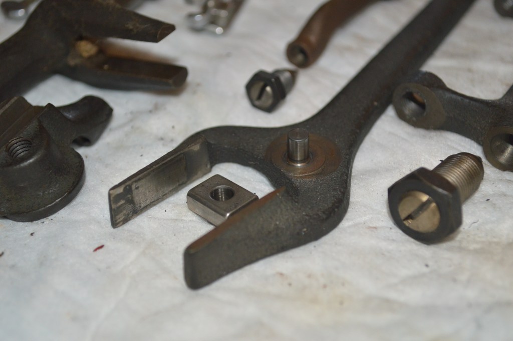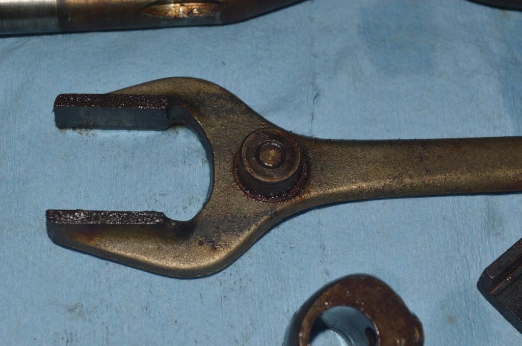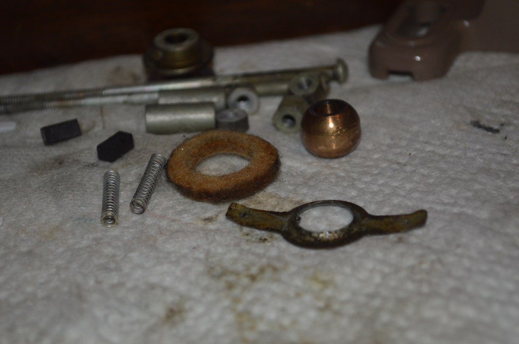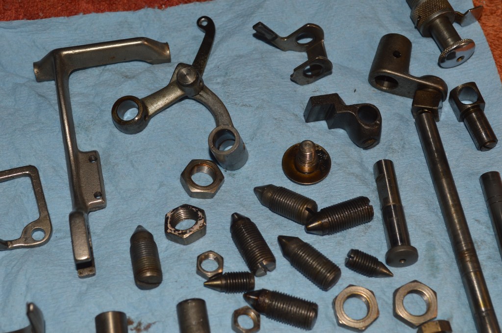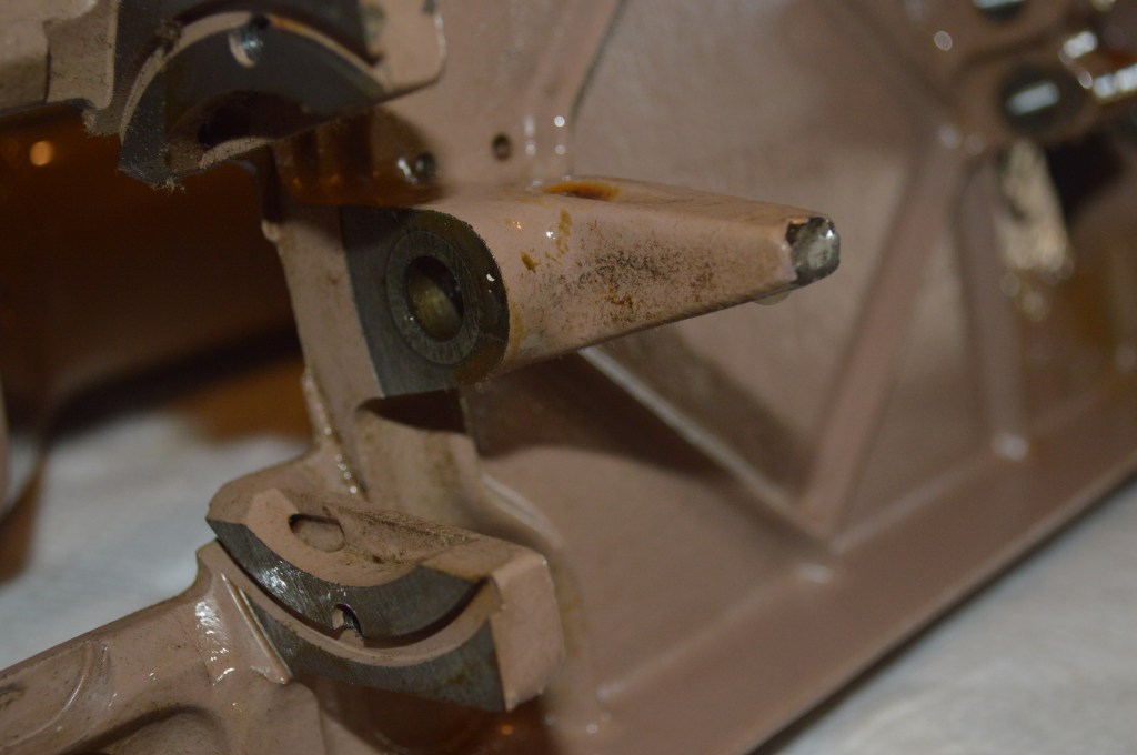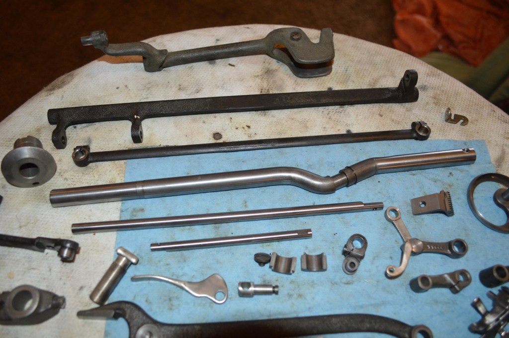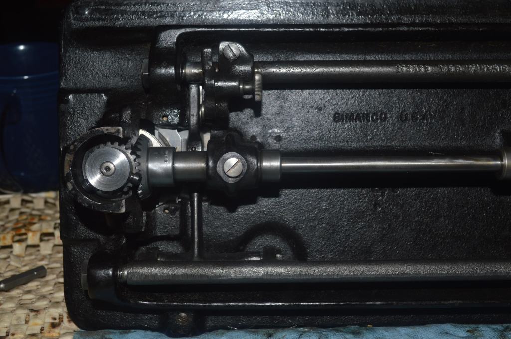 All of those likages fit together and are attached to a single bolt on the machine deep in the pillar cavity. I thought about it long and hard and decide that if I removed these assemblies I may never get them back together and in place. Rather than risk this, I decided to clean them in place. Luckily, the arm shaft turns smoothly and I can work around its removal.