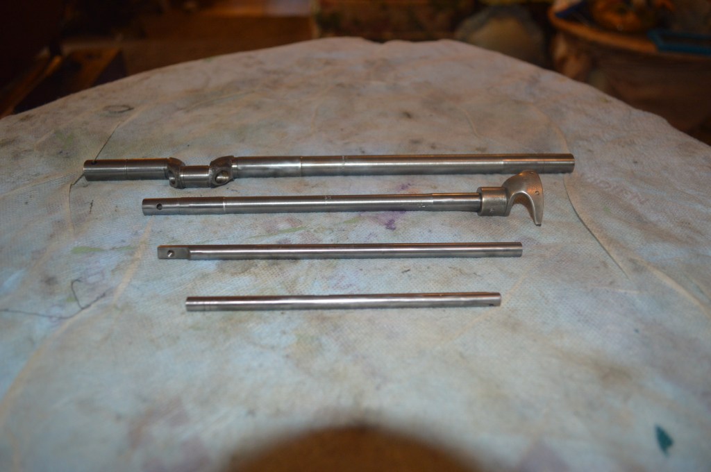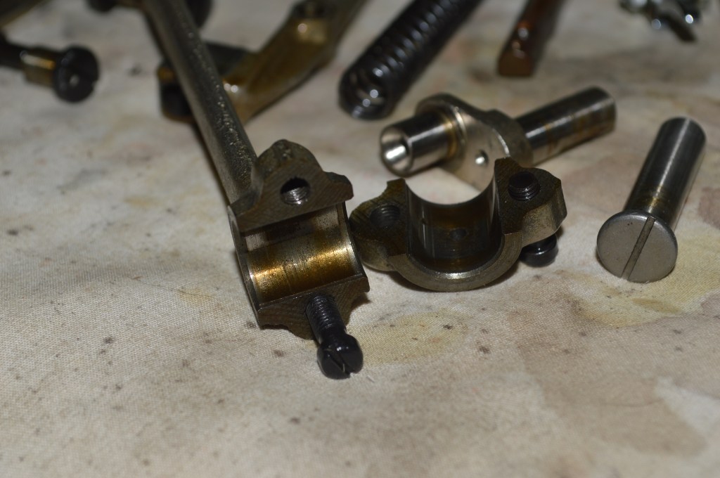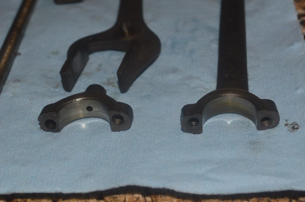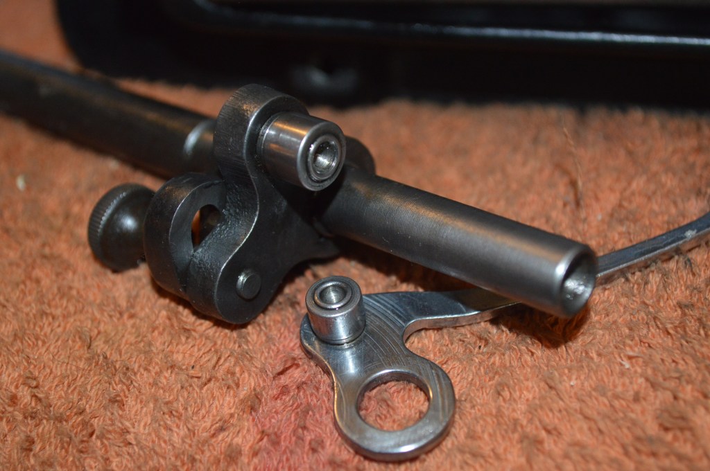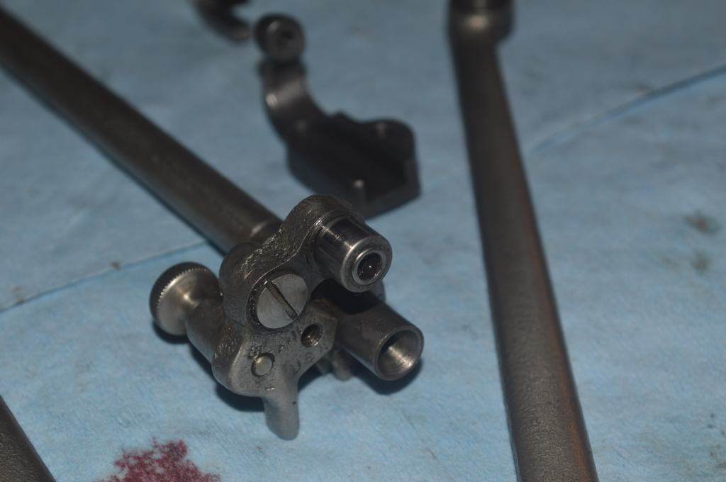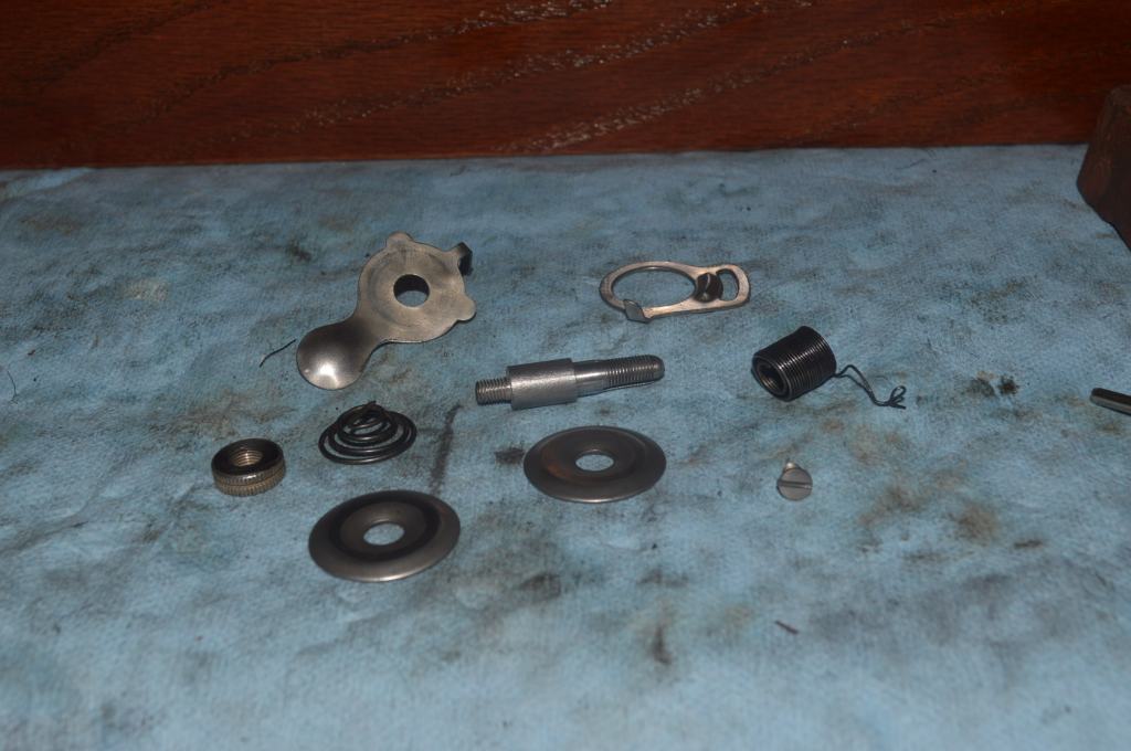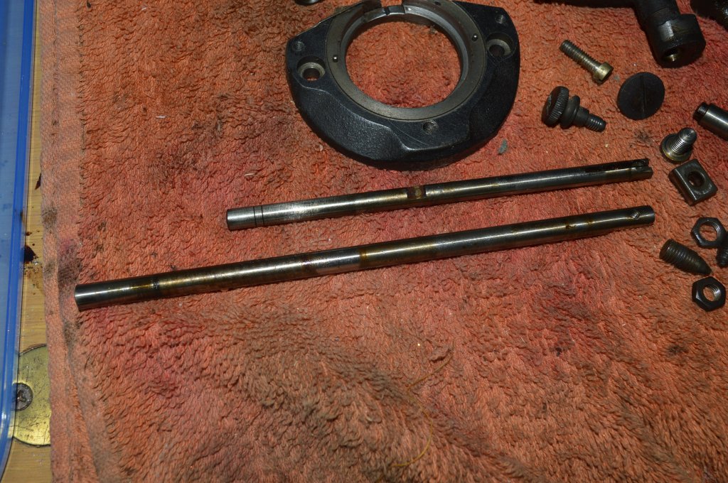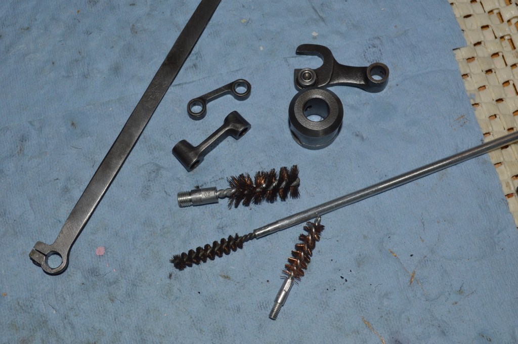 All of those likages fit together and are attached to a single bolt on the machine deep in the pillar cavity. I thought about it long and hard and decide that if I removed these assemblies I may never get them back together and in place. Rather than risk this, I decided to clean them in place. Luckily, the arm shaft turns smoothly and I can work around its removal.