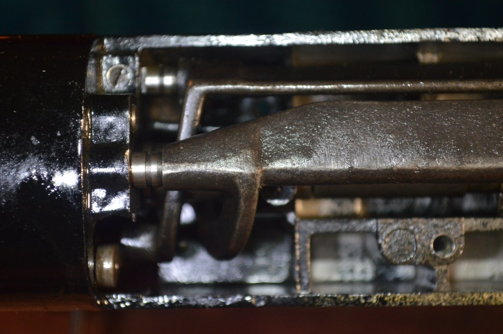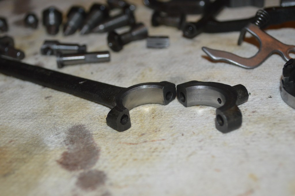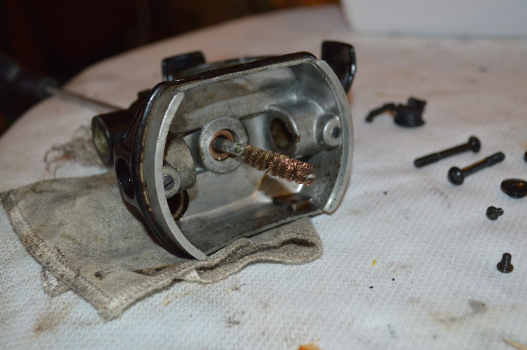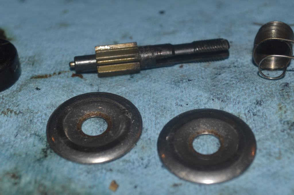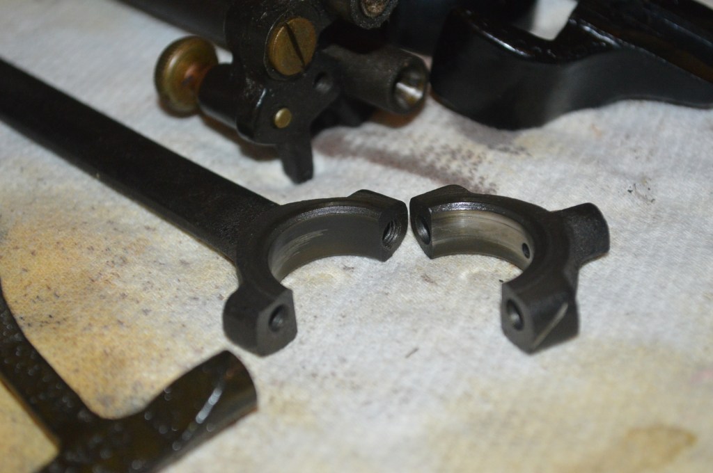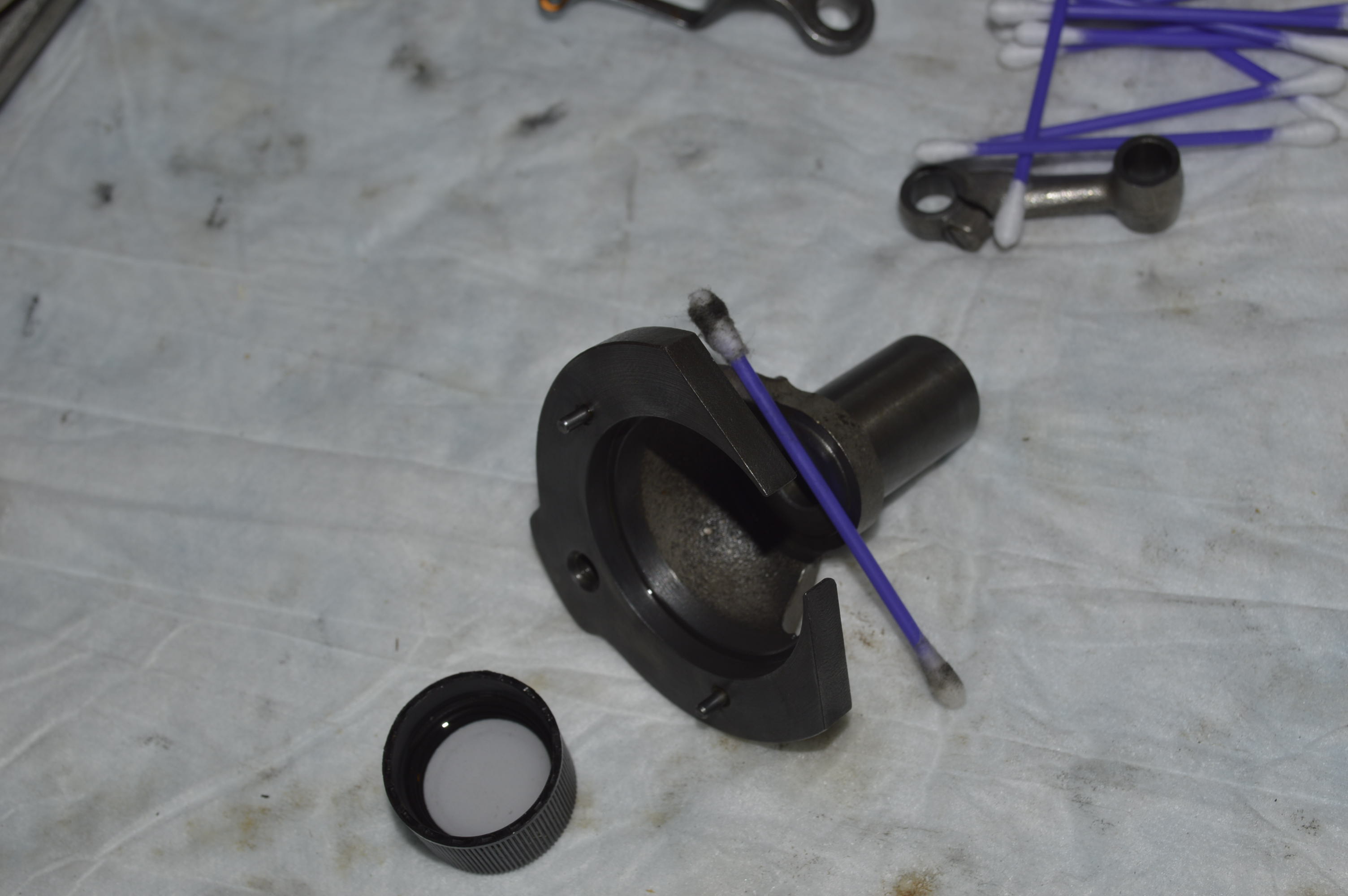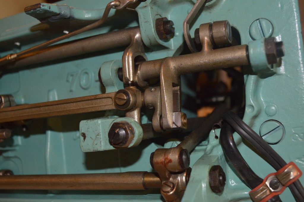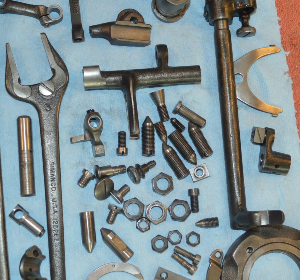 All of those likages fit together and are attached to a single bolt on the machine deep in the pillar cavity. I thought about it long and hard and decide that if I removed these assemblies I may never get them back together and in place. Rather than risk this, I decided to clean them in place. Luckily, the arm shaft turns smoothly and I can work around its removal.