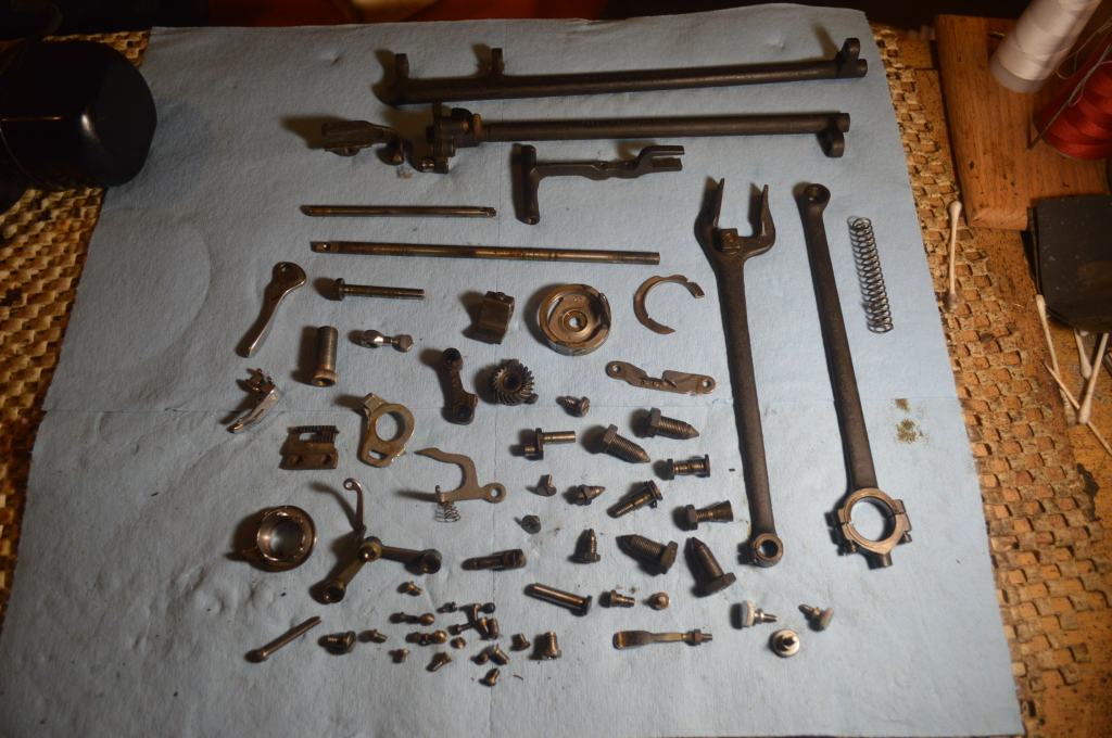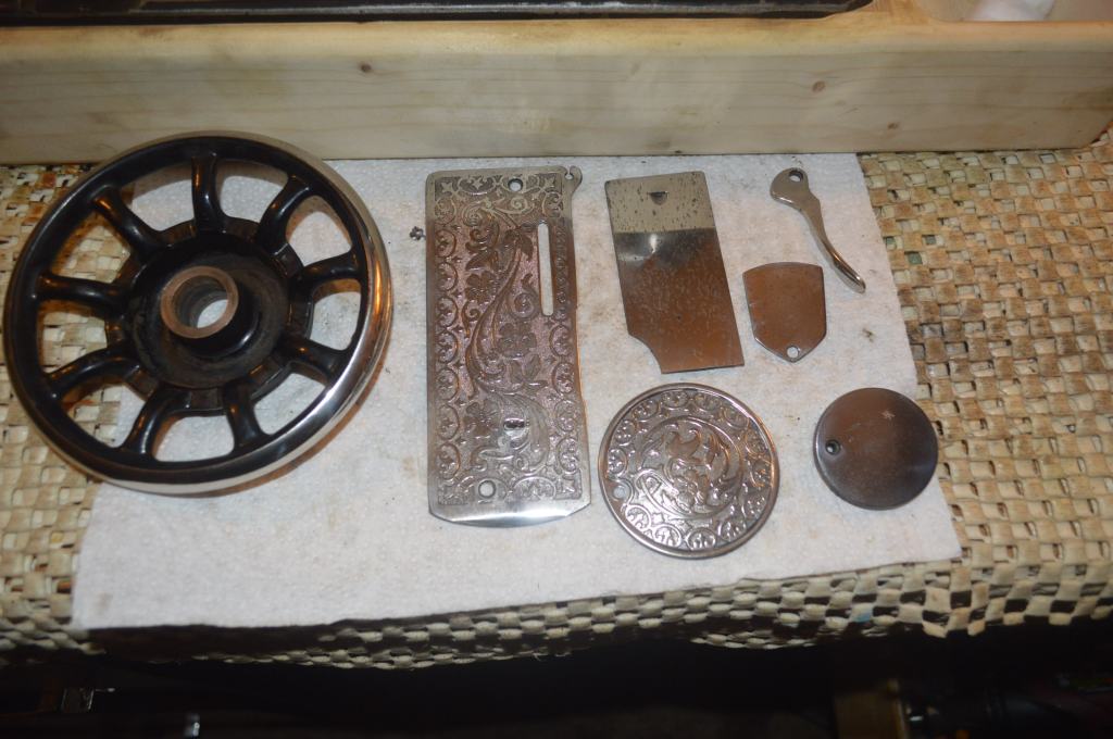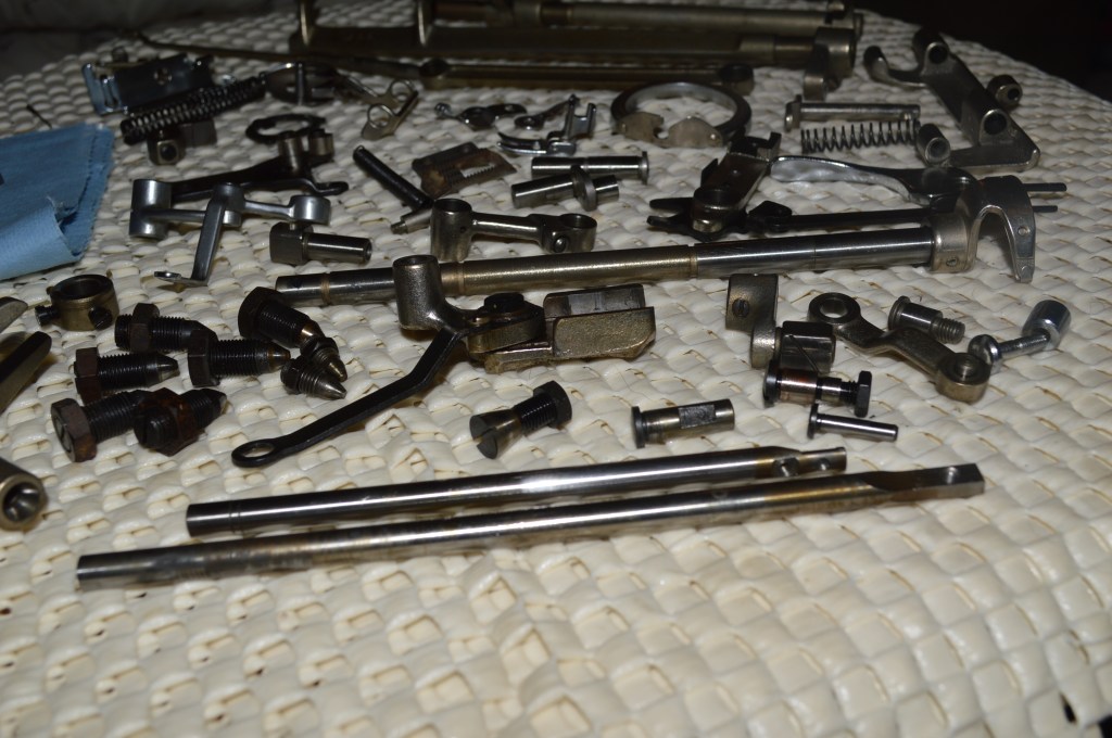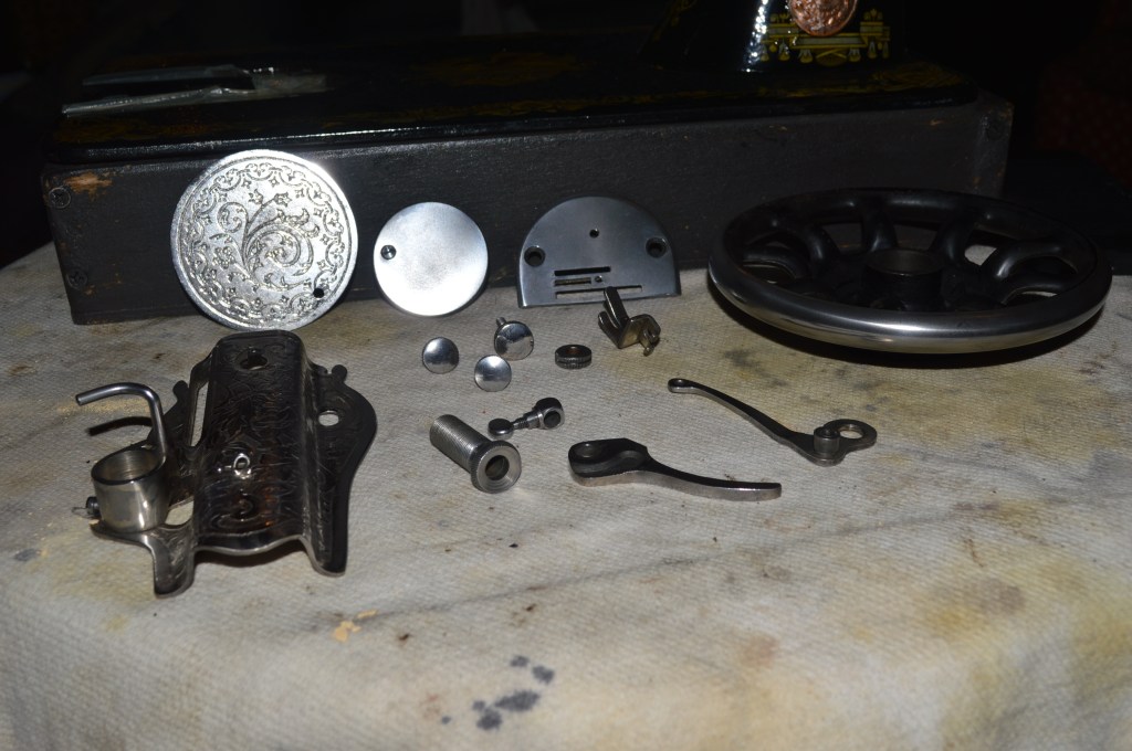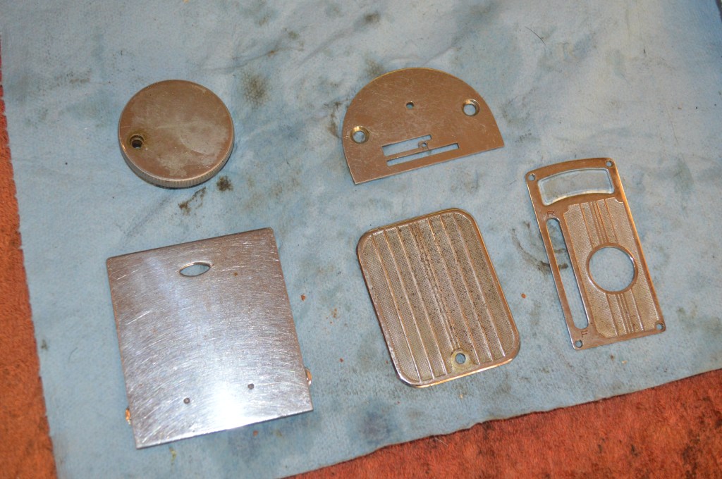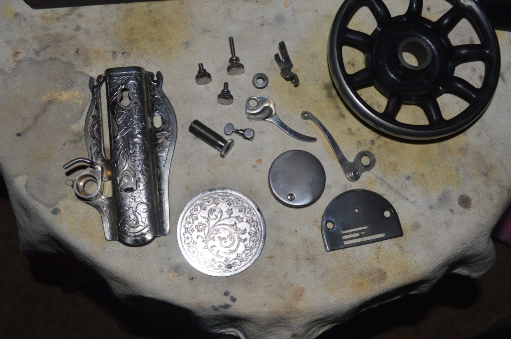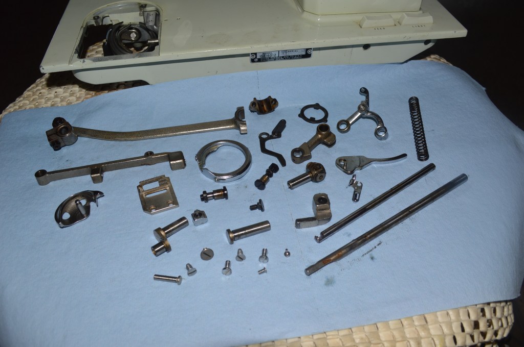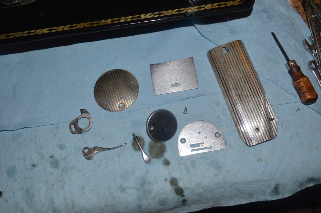 The large plated pieces are cleaned and then polished. Taking pictures of polished pieces isn’t easy, so you will see them shine on the assembled machine! Sorry, but it is worth the wait… The same goes for the little pieces like the stitch length lever, bobbin winder guide, and other little bits and pieces.