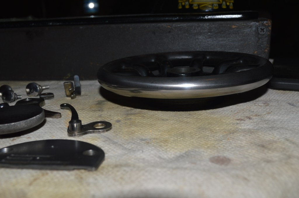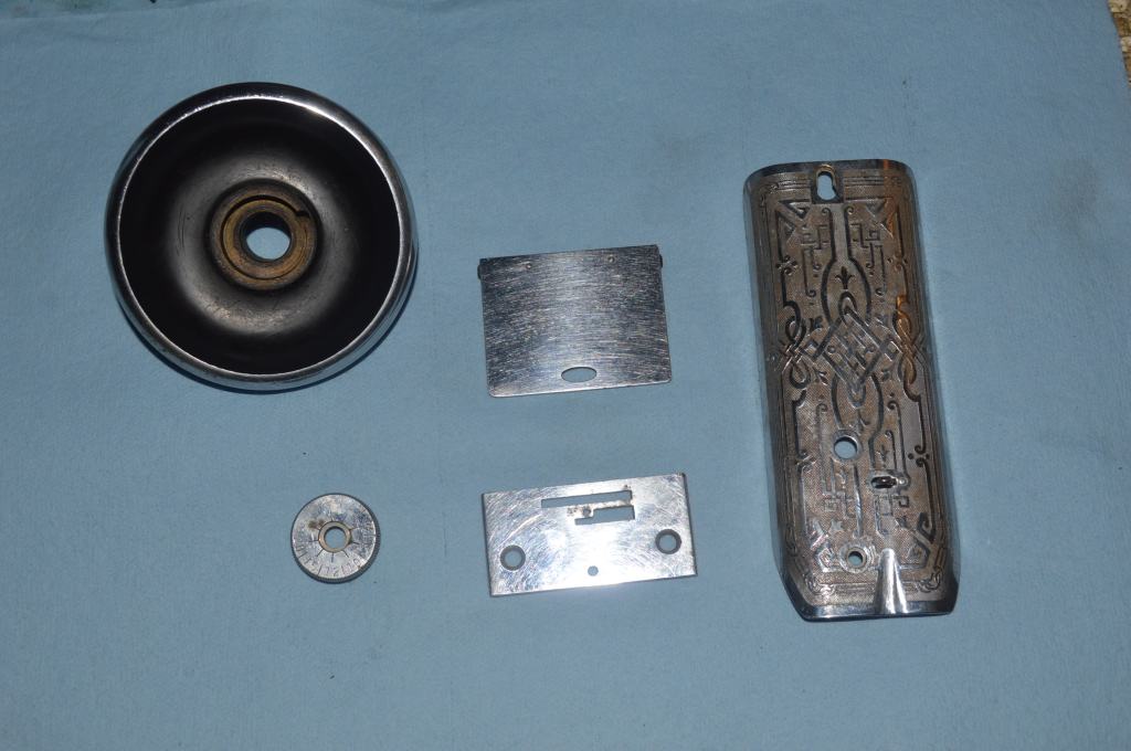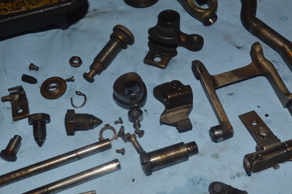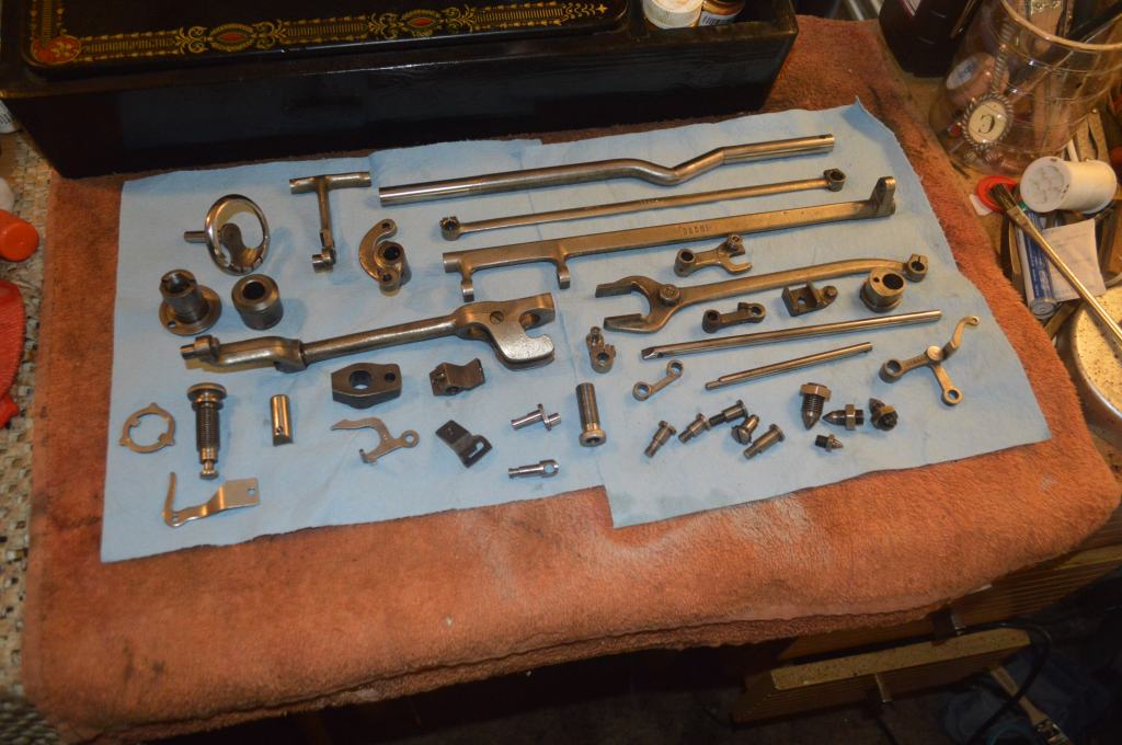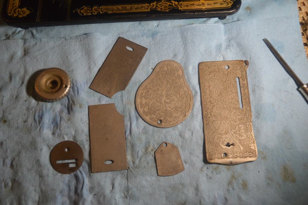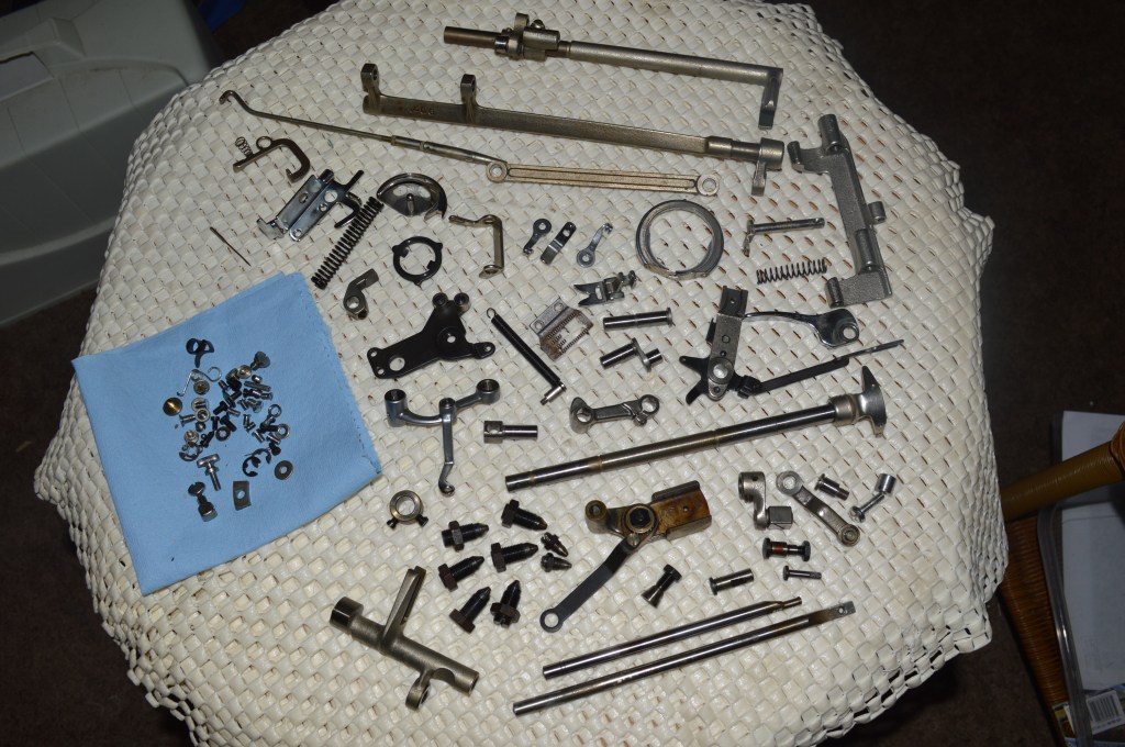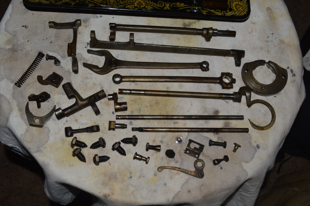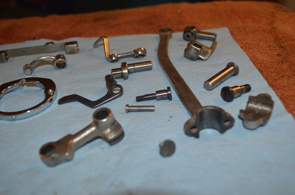 The large plated pieces are cleaned and then polished. Taking pictures of polished pieces isn’t easy, so you will see them shine on the assembled machine! Sorry, but it is worth the wait… The same goes for the little pieces like the stitch length lever, bobbin winder guide, and other little bits and pieces.