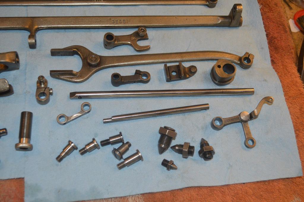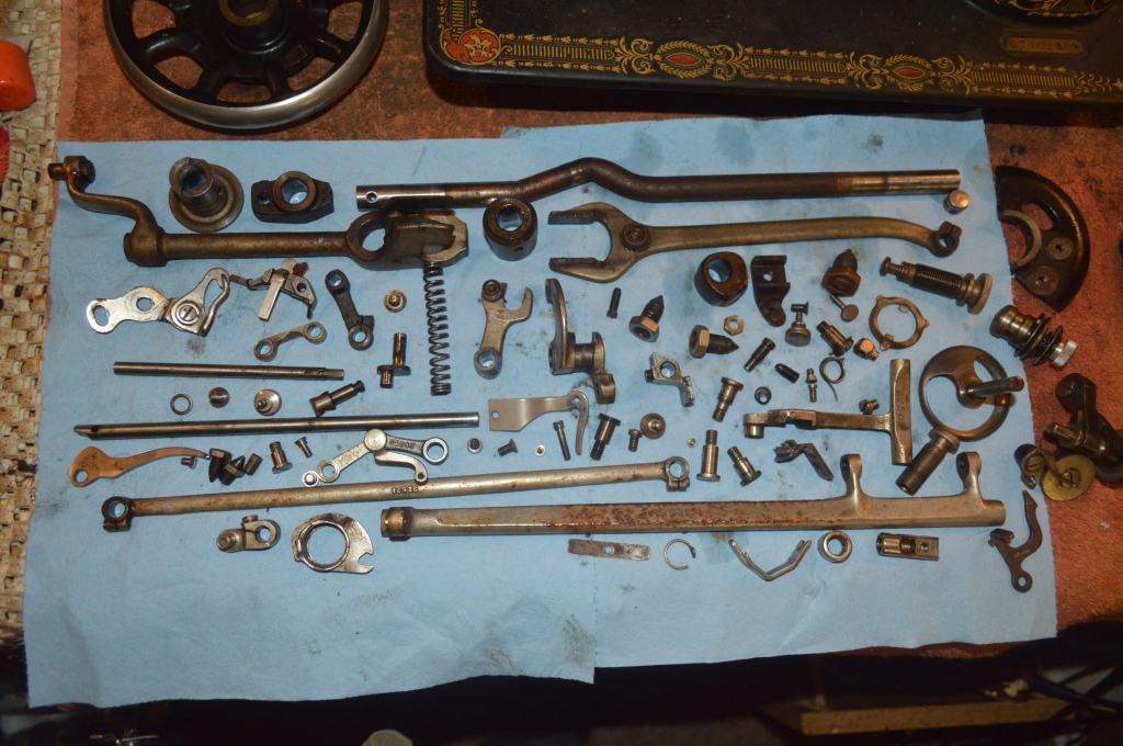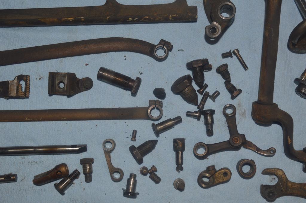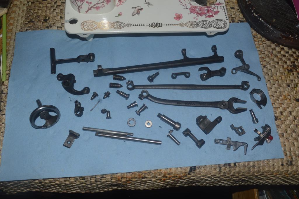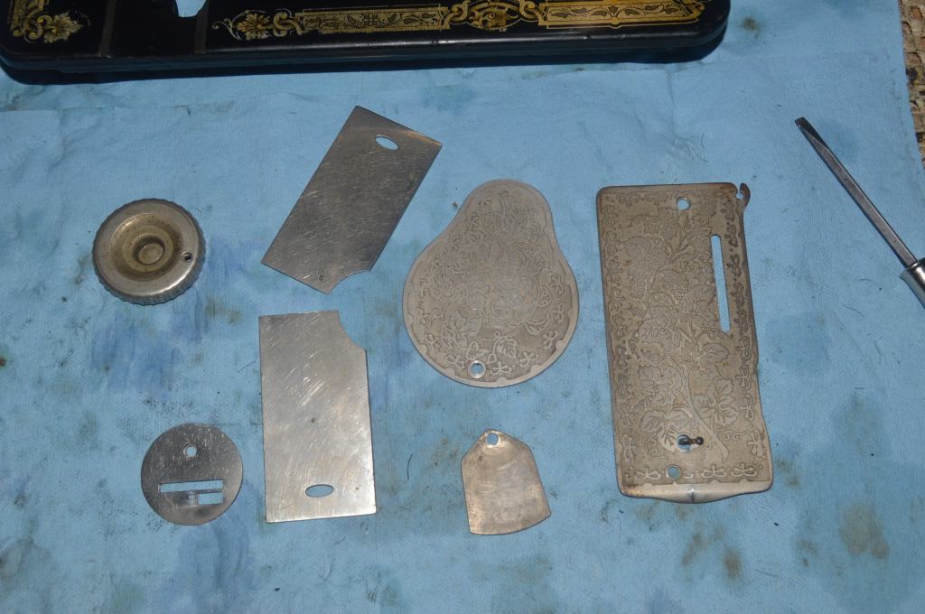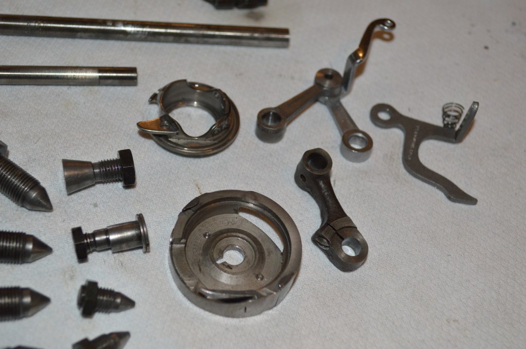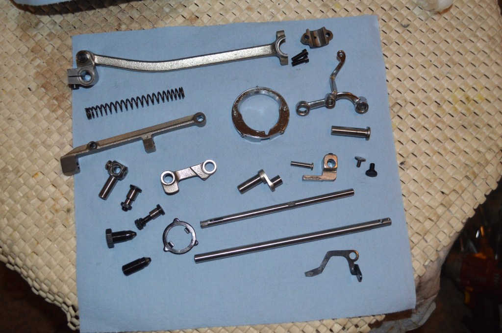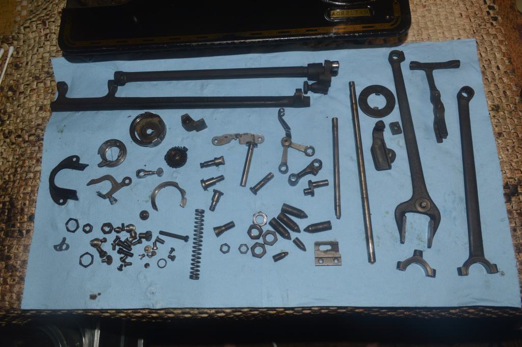The large plated pieces are cleaned and then polished. Taking pictures of polished pieces isn’t easy, so you will see them shine on the assembled machine! Sorry, but it is worth the wait… The same goes for the little pieces like the stitch length lever, bobbin winder guide, and other little bits and pieces.