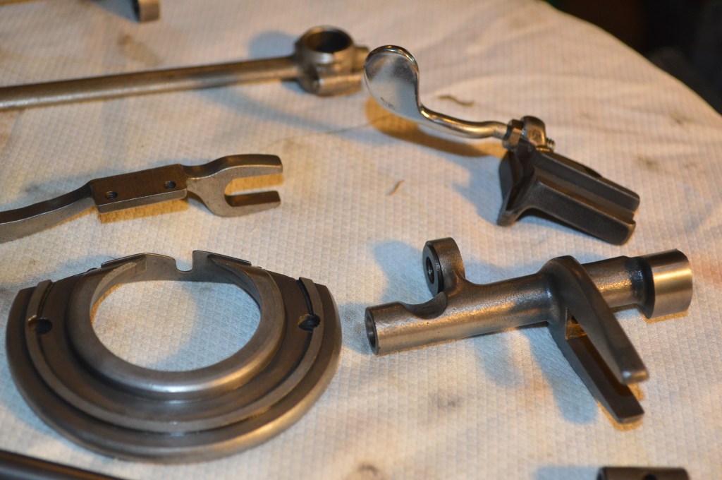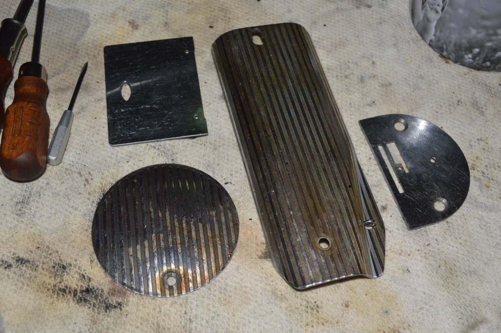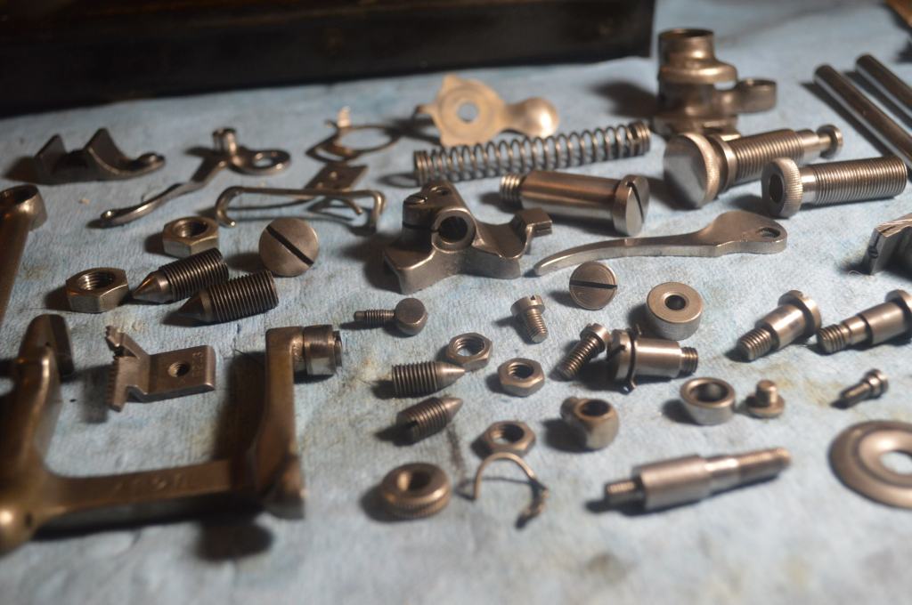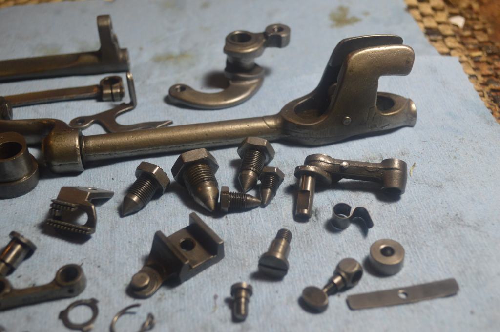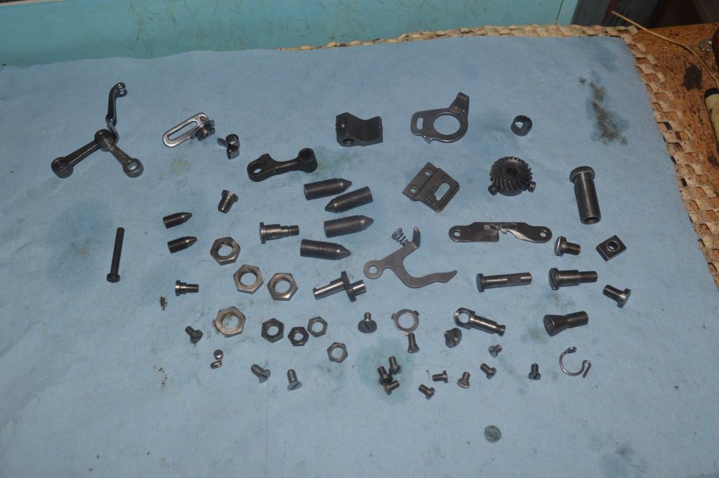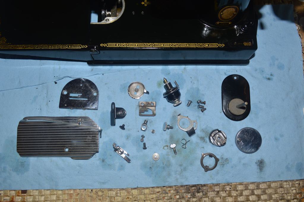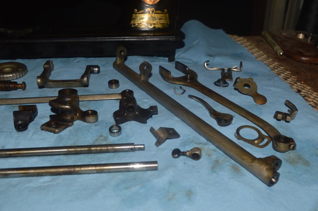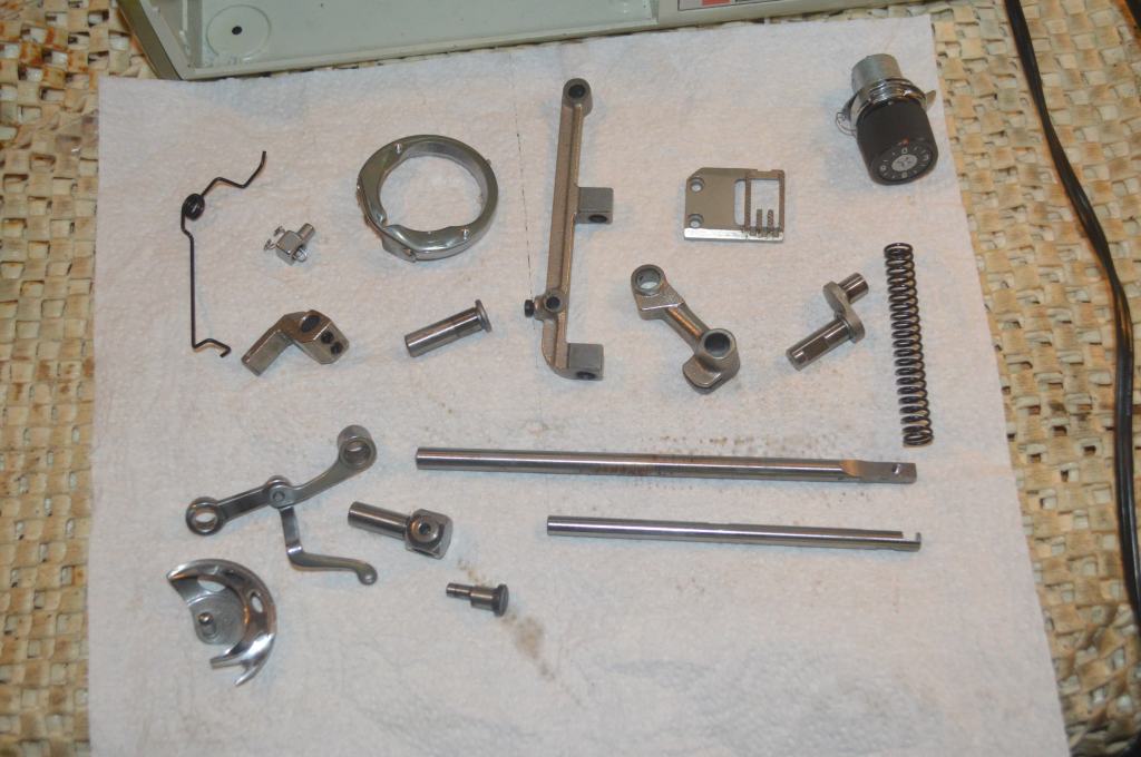 The large plated pieces are cleaned and then polished. Taking pictures of polished pieces isn’t easy, so you will see them shine on the assembled machine! Sorry, but it is worth the wait… The same goes for the little pieces like the stitch length lever, bobbin winder guide, and other little bits and pieces.