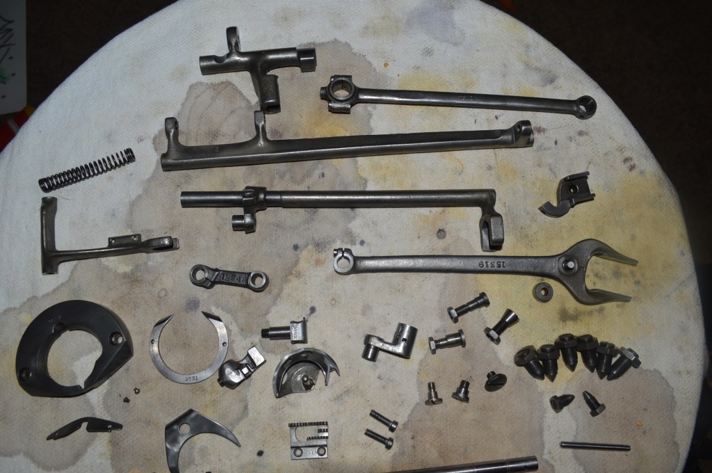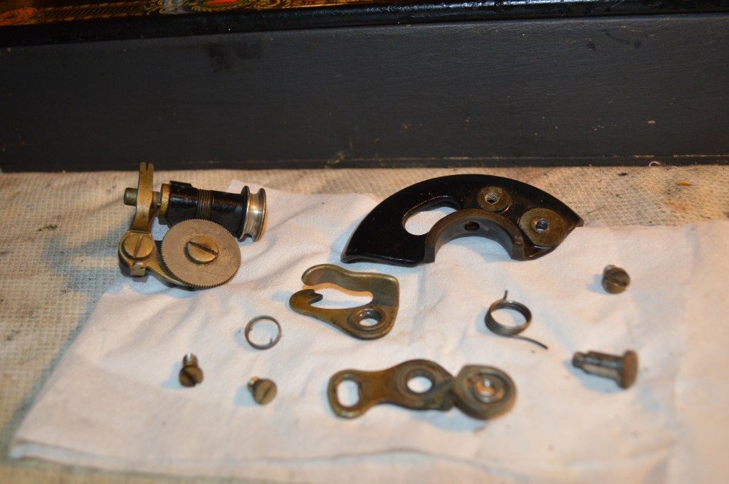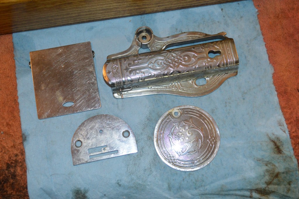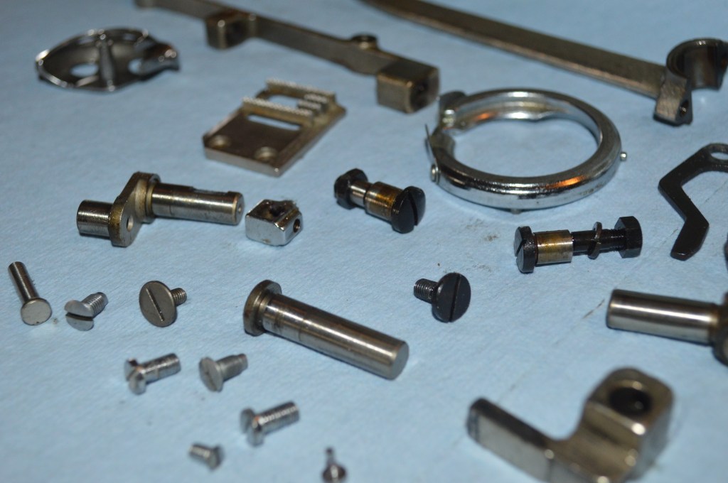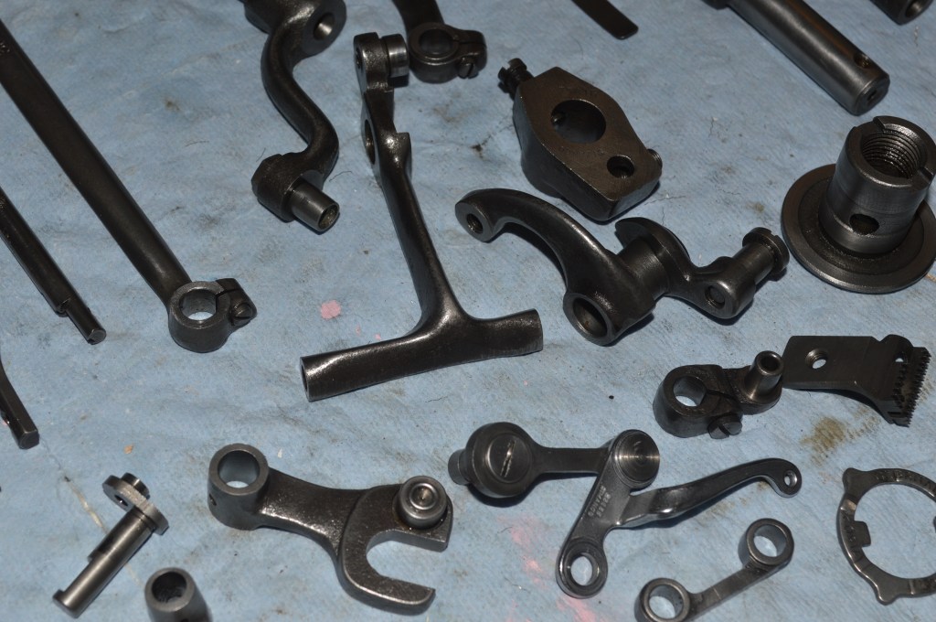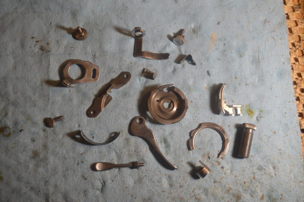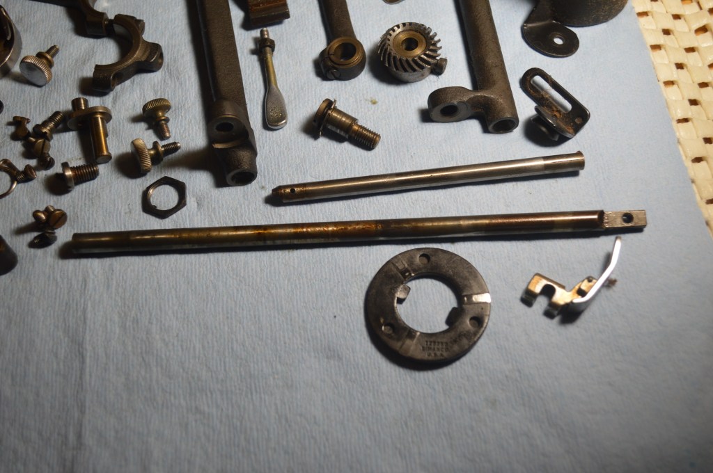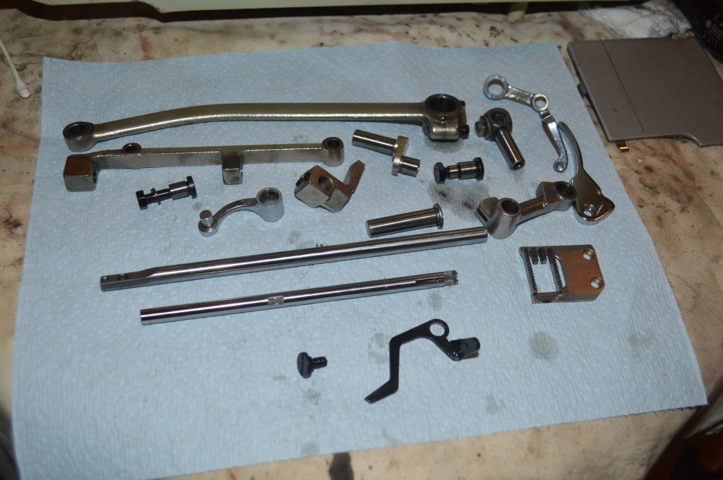 The large plated pieces are cleaned and then polished. Taking pictures of polished pieces isn’t easy, so you will see them shine on the assembled machine! Sorry, but it is worth the wait… The same goes for the little pieces like the stitch length lever, bobbin winder guide, and other little bits and pieces.
