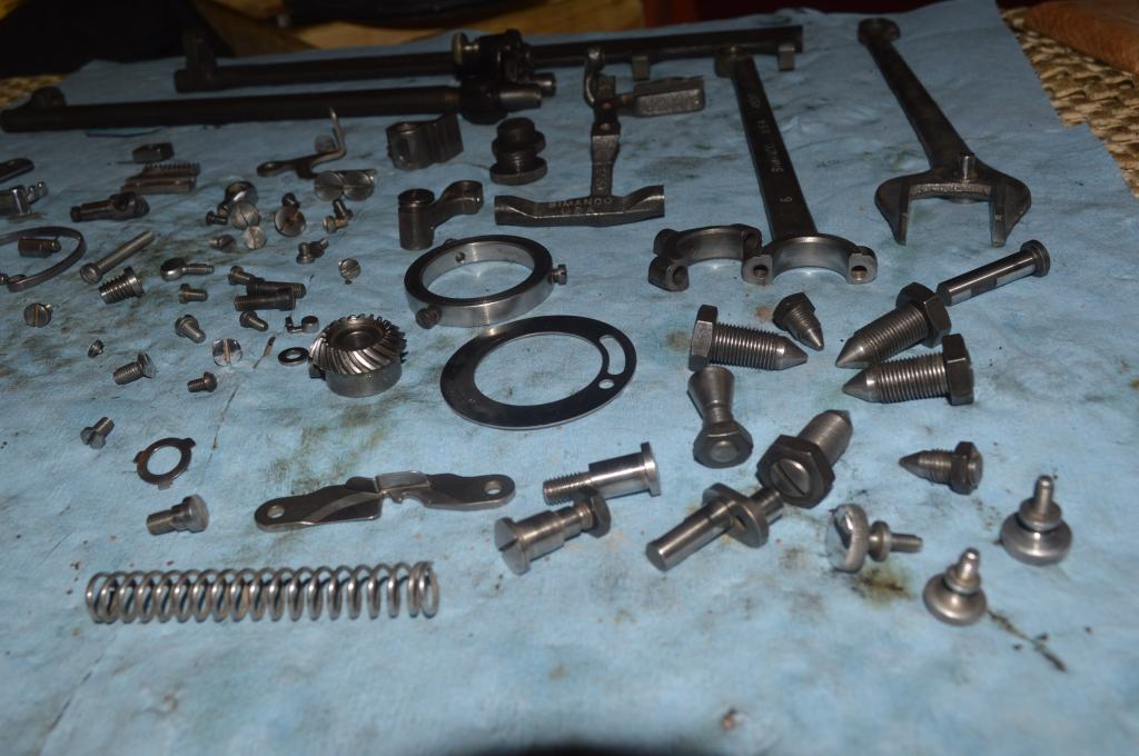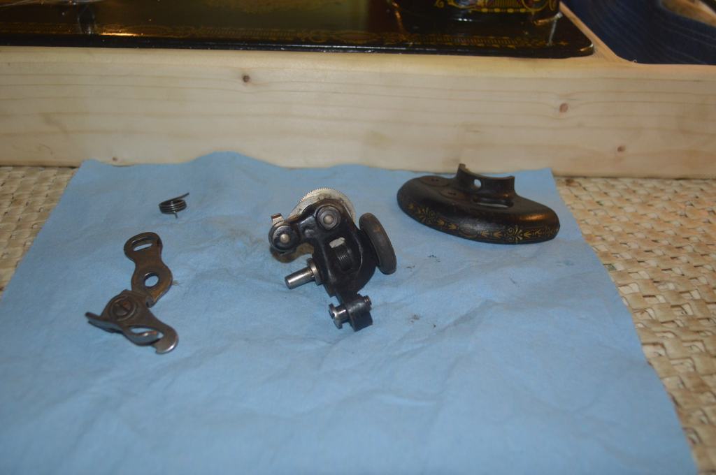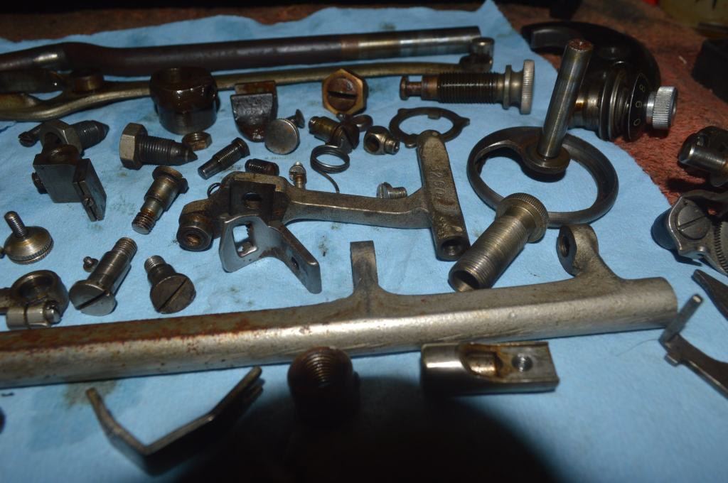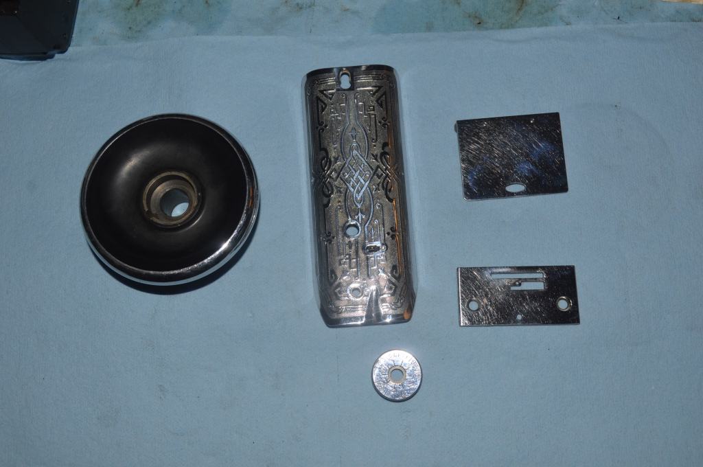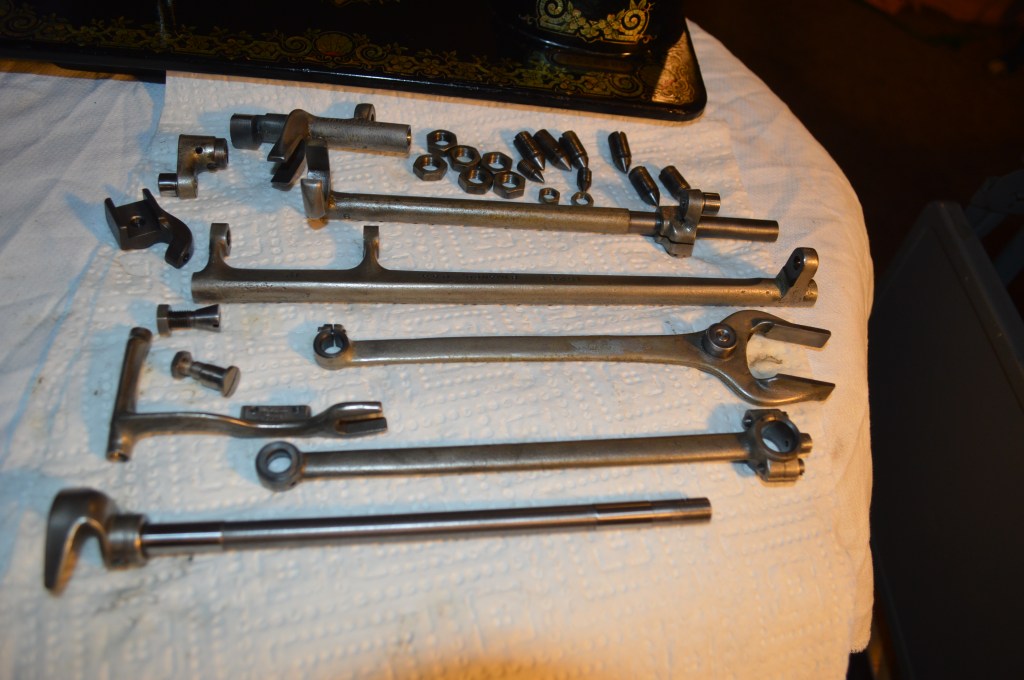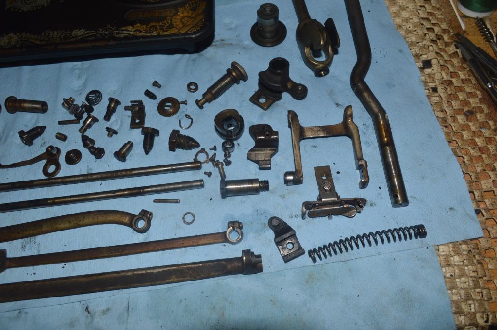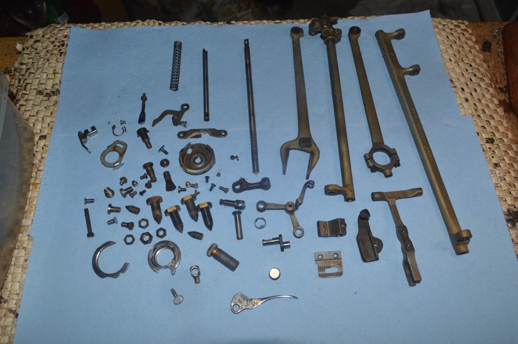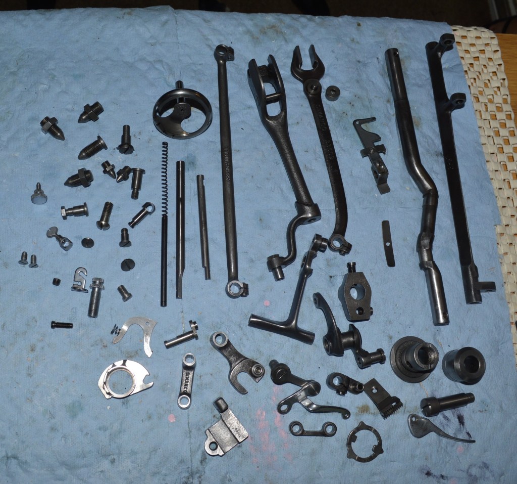 The large plated pieces are cleaned and then polished. Taking pictures of polished pieces isn’t easy, so you will see them shine on the assembled machine! Sorry, but it is worth the wait… The same goes for the little pieces like the stitch length lever, bobbin winder guide, and other little bits and pieces.